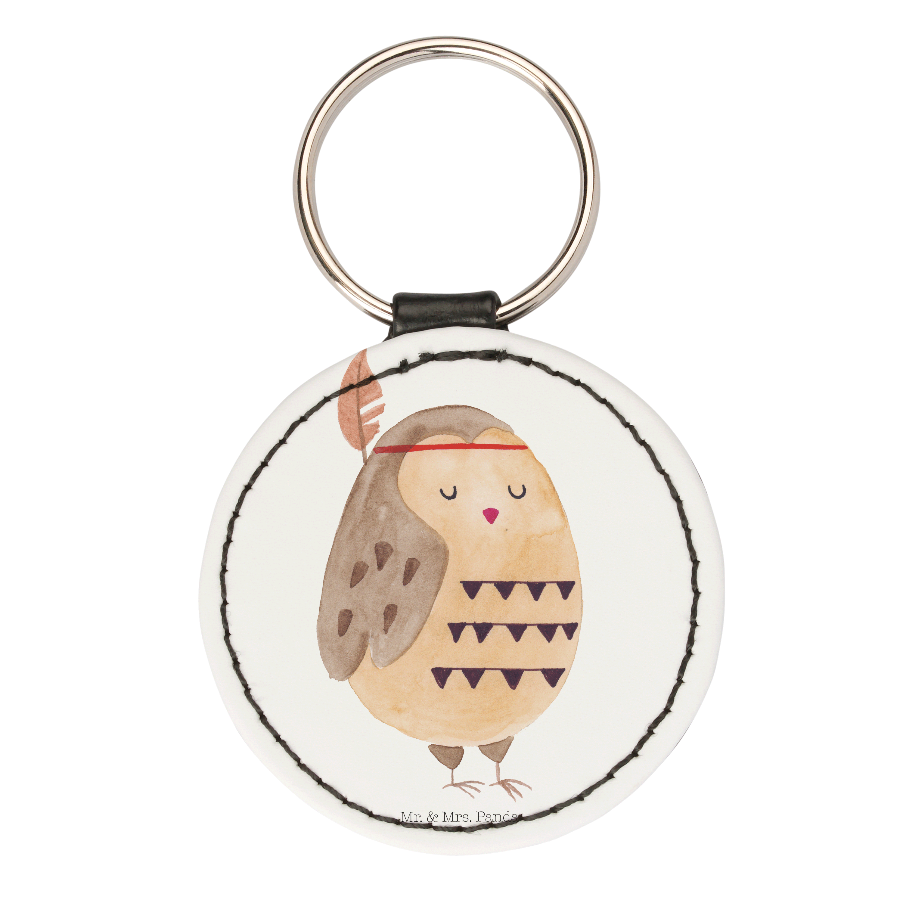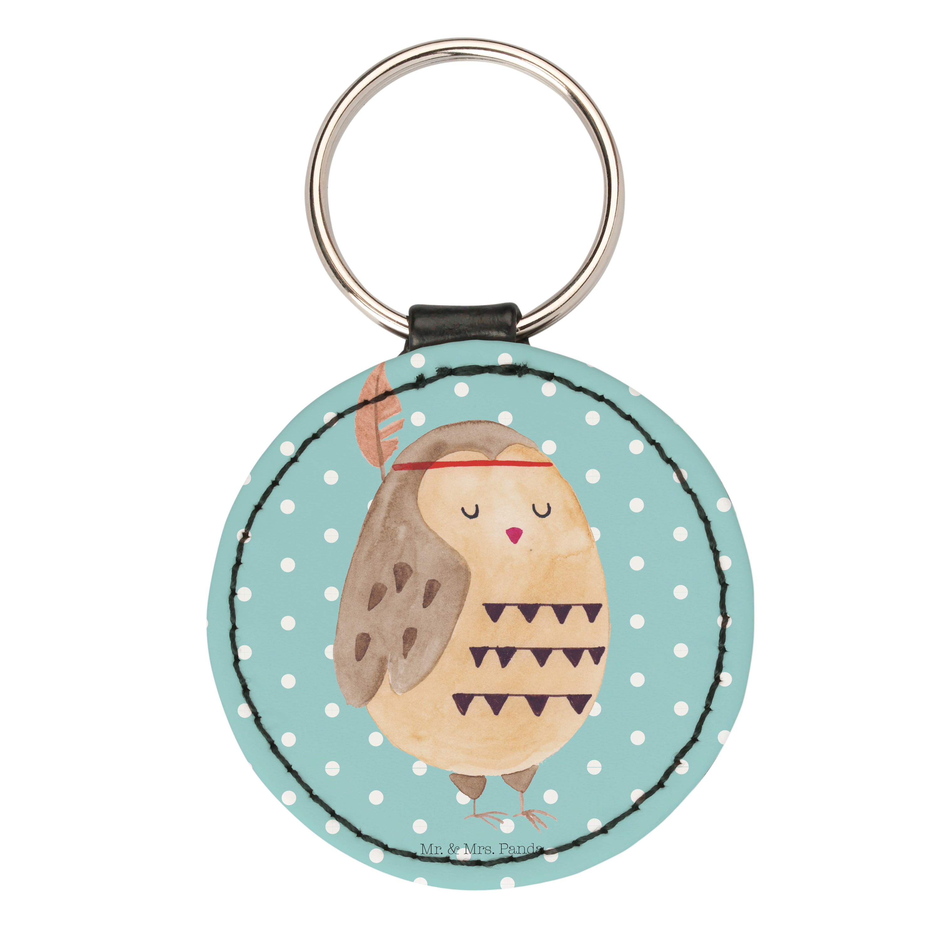 Rund Schlüsselanhänger Eule Federschmuck - Türkis Pastell