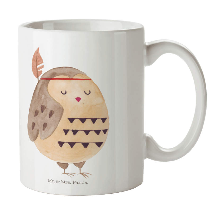 Tasse Eule Federschmuck - ohne Spruch - Weiß