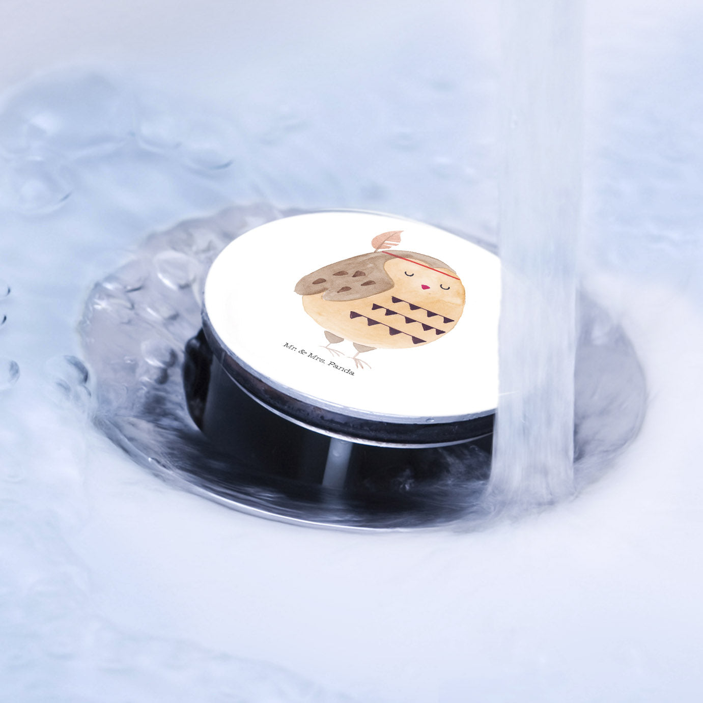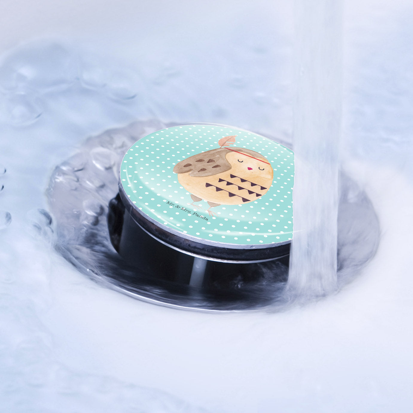 Waschbecken Stöpsel Eule Federschmuck - Türkis Pastell