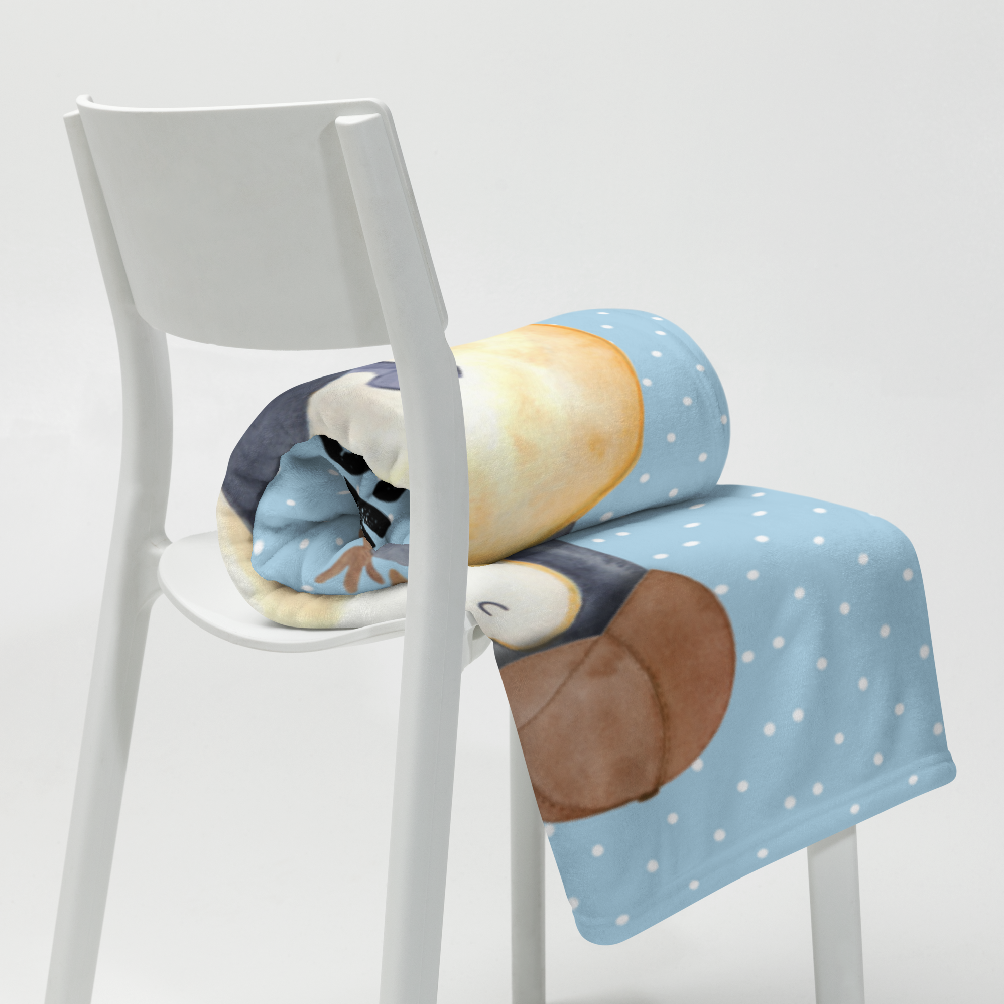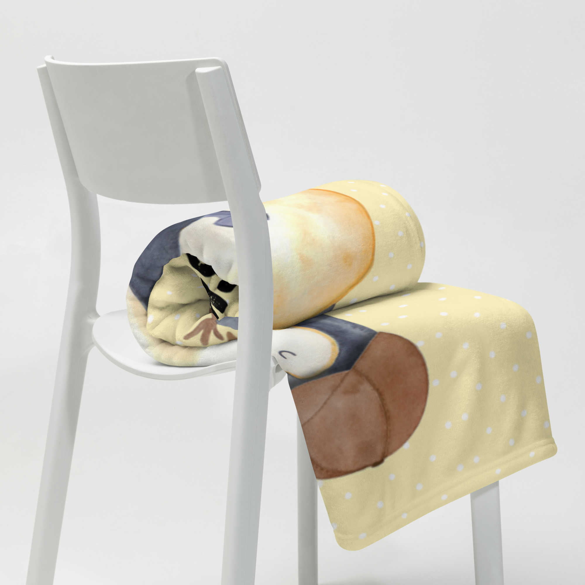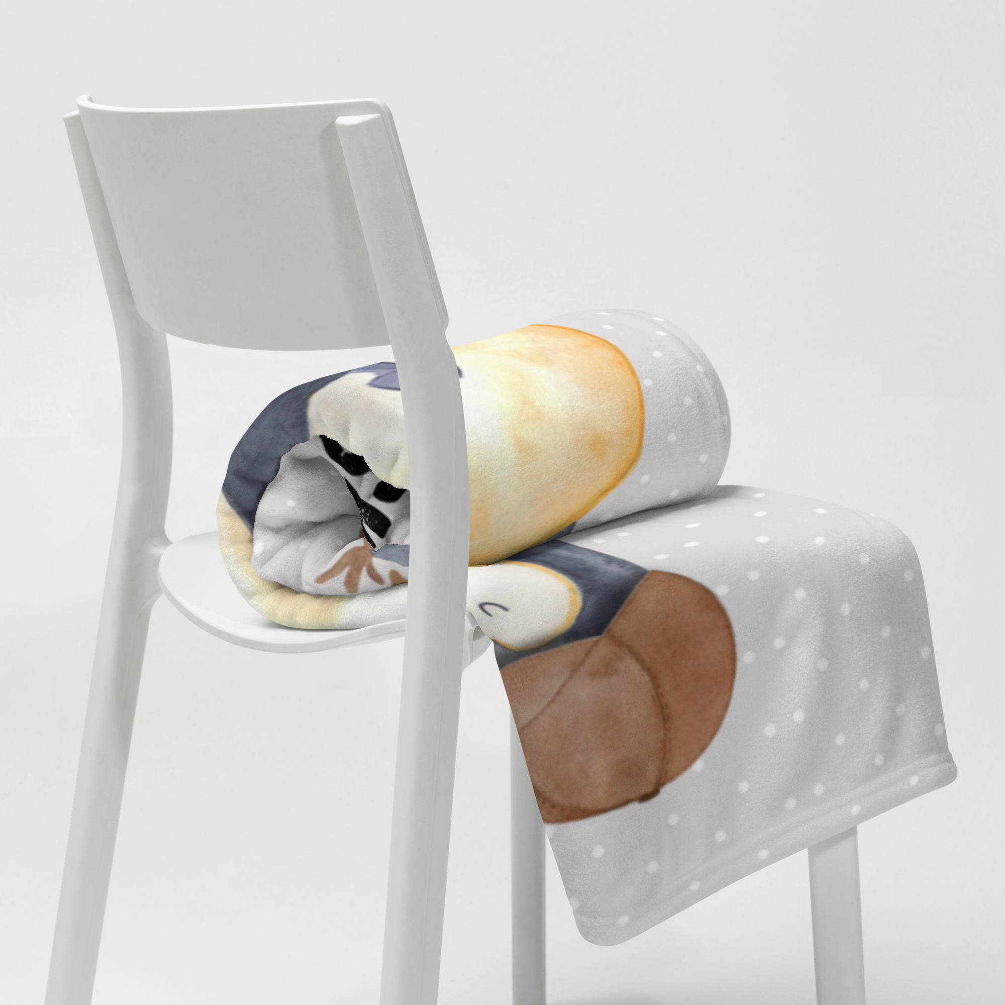 Die super flauschige personalisierte Babydecke mit Namen von Mr. & Mrs. Panda kann mit einem Namen bedruckt werden und ist ideal für kalte Monate und Tage. Die Größe der Kuscheldecke beträgt 127 x 153 cm und ist somit perfekt, um es sich im Wohnzimmer auf dem Sofa oder im Schlafzimmer auf dem Bett gemütlich zu machen.Die Sofadecke besteht aus Kuschel Fleece Mikrofaser und ist extrem flauschig. Die fellartige Kuscheldecke schmiegt sich herrlich weich an deinen Körper und wärmt außerordentlich gut, so wirst du sicherlich nicht frieren. Die Decke zeichnet sich durch ihre hochwertige und strapazierfähige Qualität aus. Alternativ kannst du die Decke auch 140x200 cm kaufen. Sie eignet sich auch optimal als Tagesdecke für Kinder und Erwachsene.