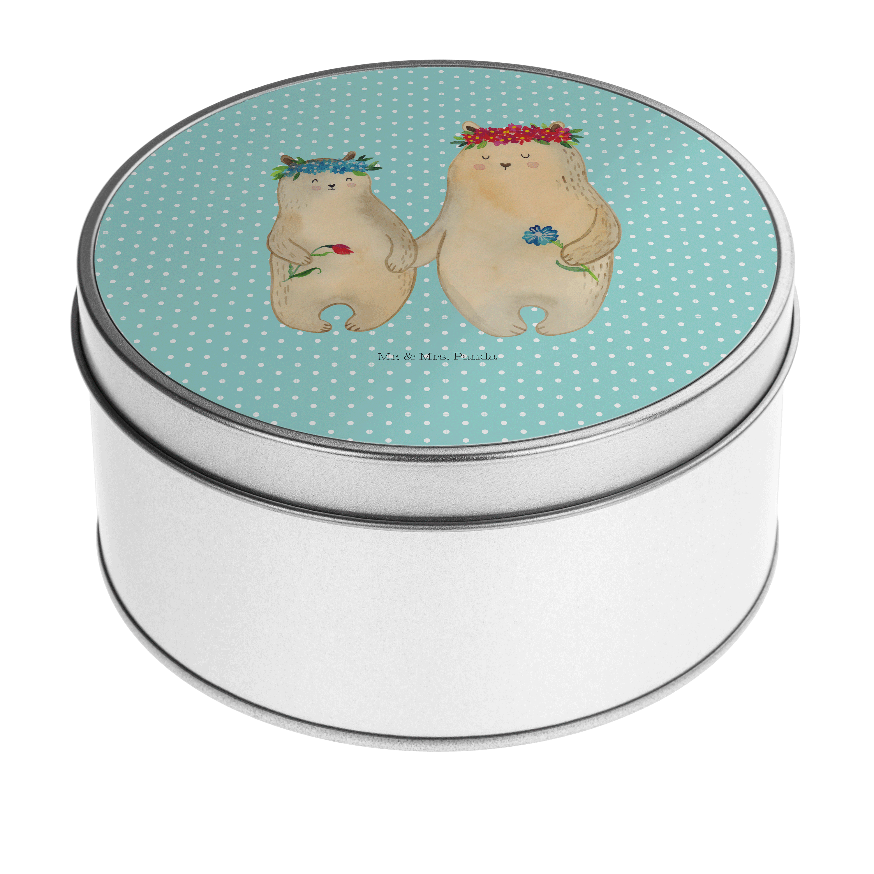 Blechdose rund Bären mit Blumenkranz - mit Spruch - Blau Pastell