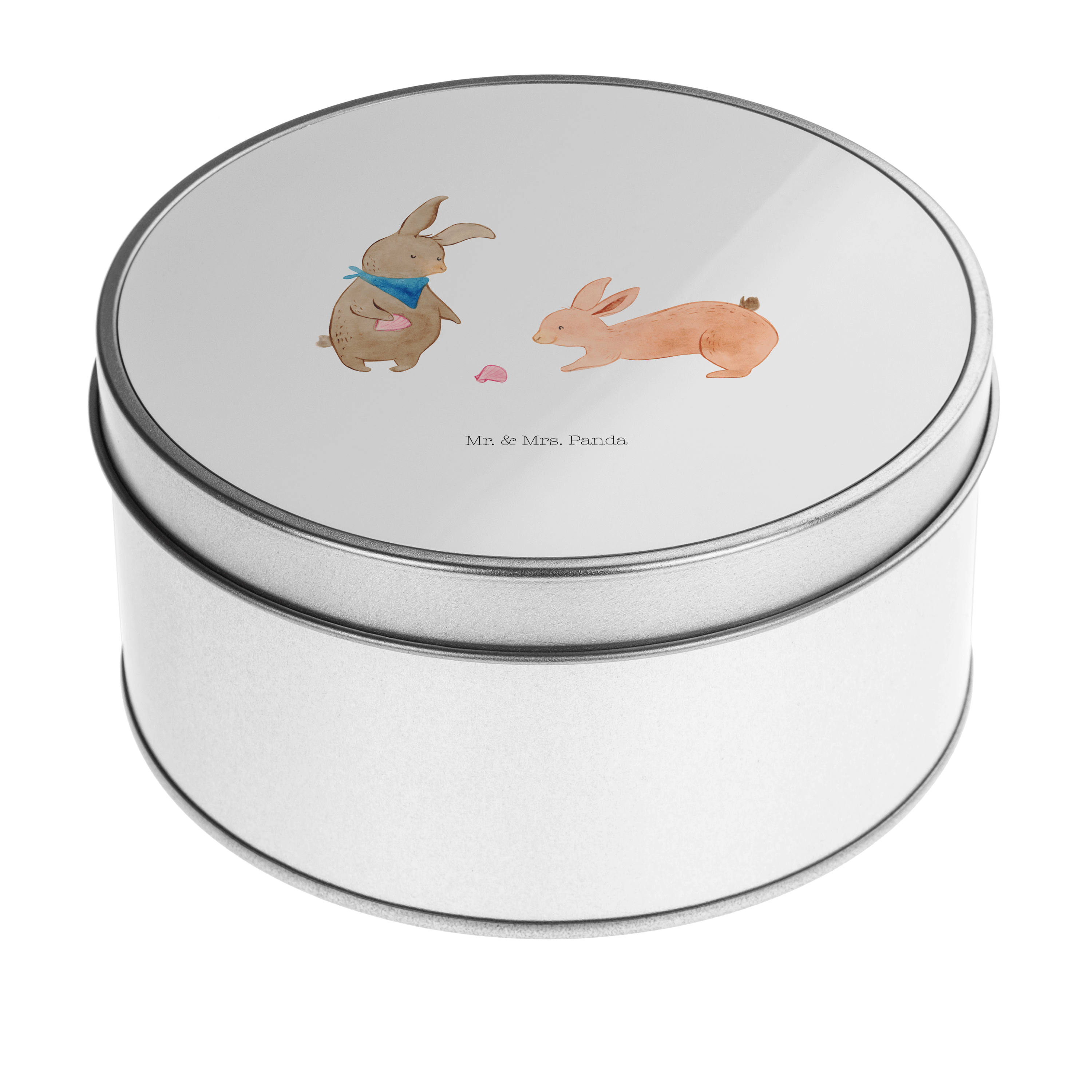Blechdose rund Hasen Muschel - mit Spruch - Weiß