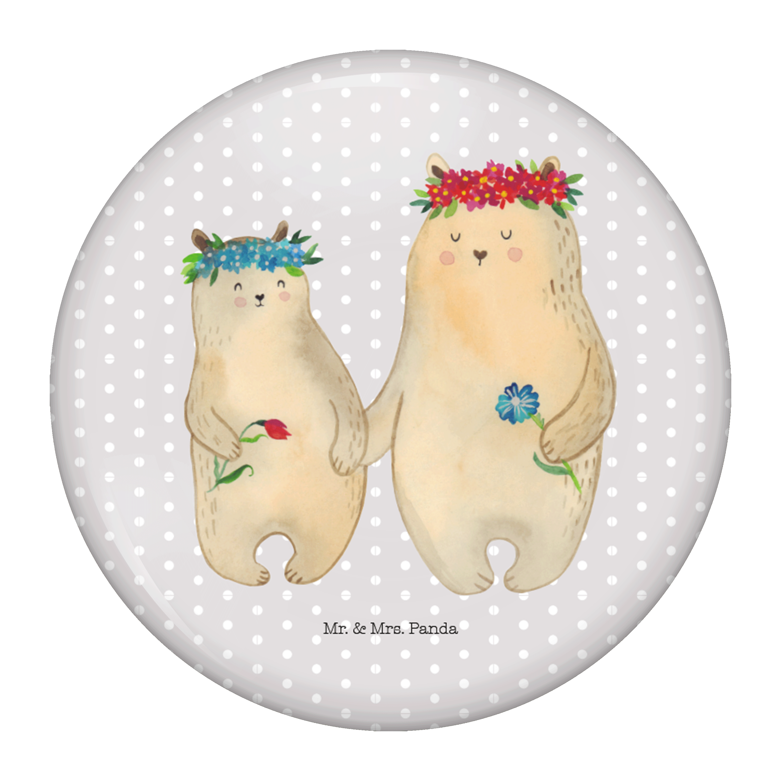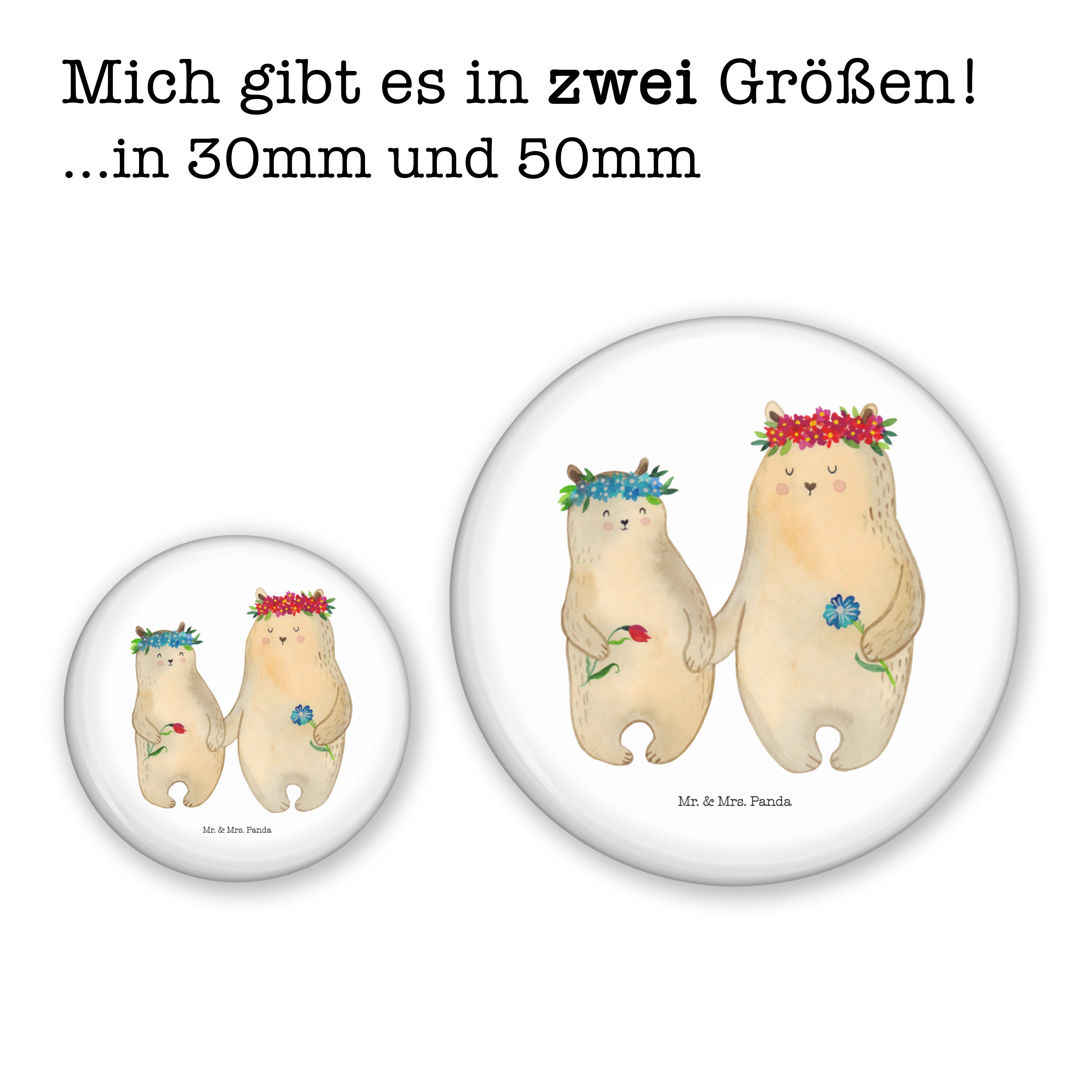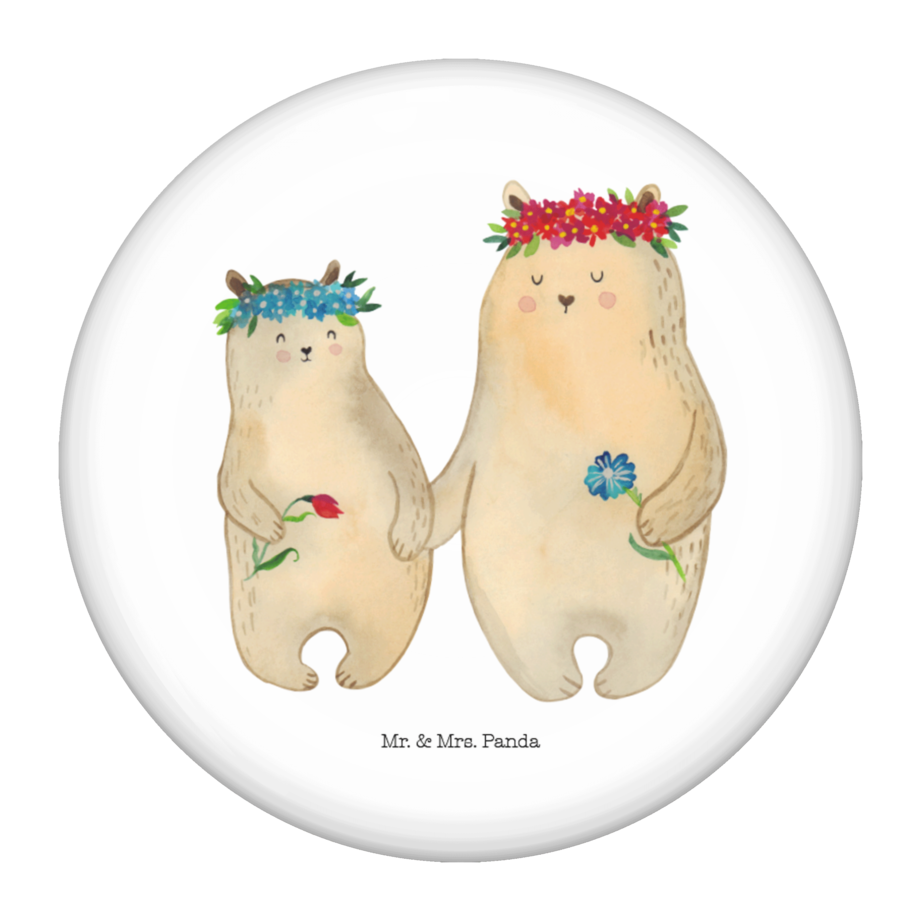 50mm Button Bären mit Blumenkranz - mit Spruch - Weiß