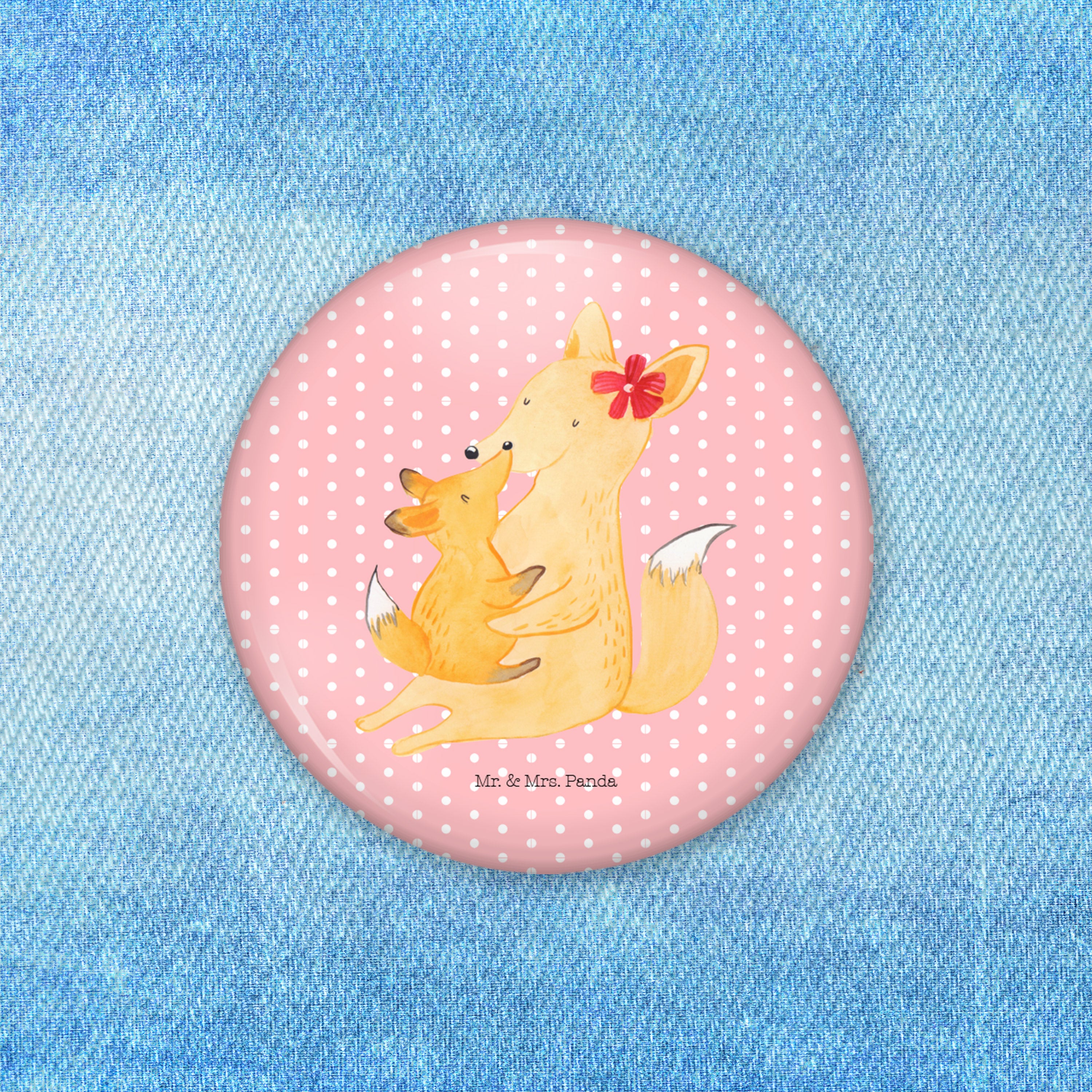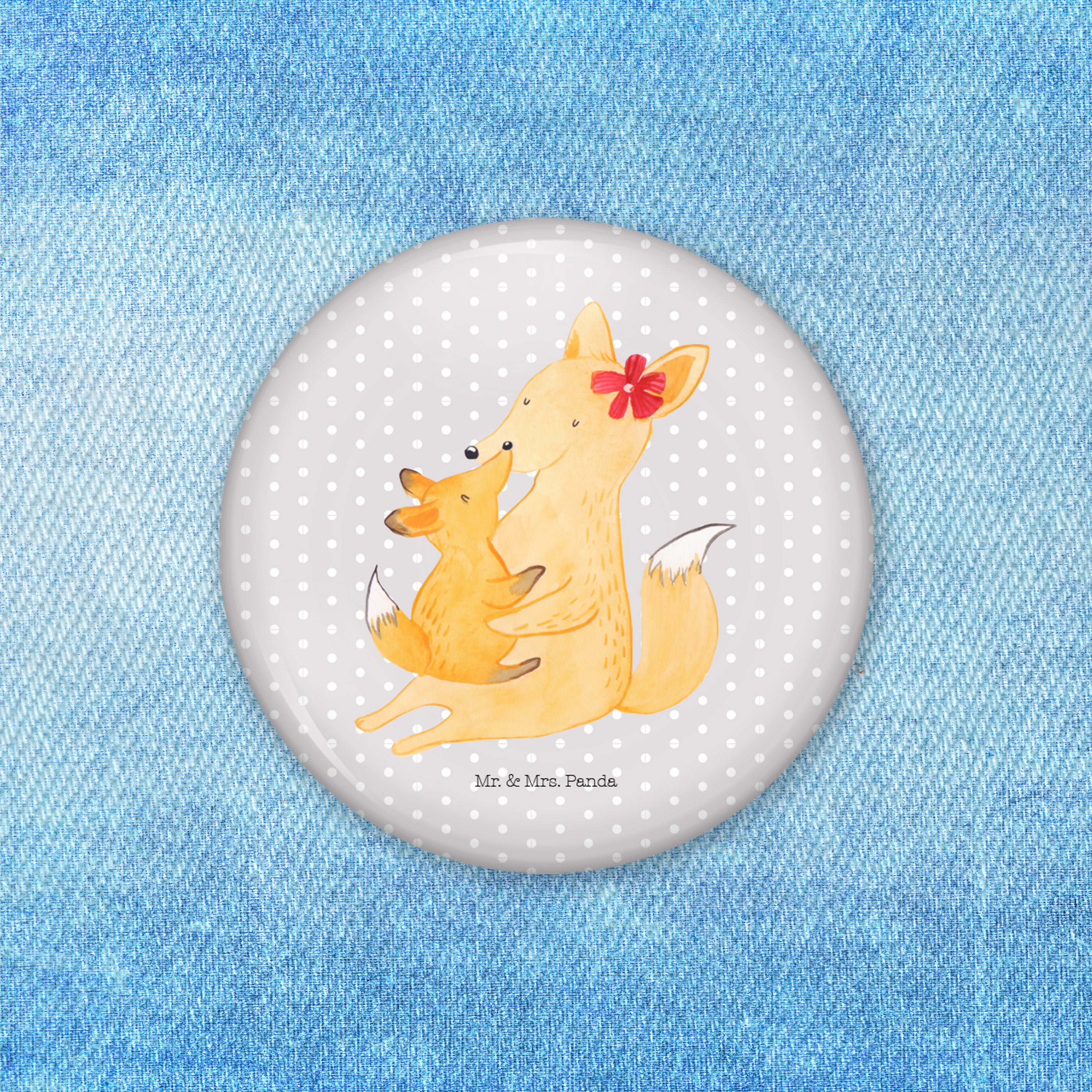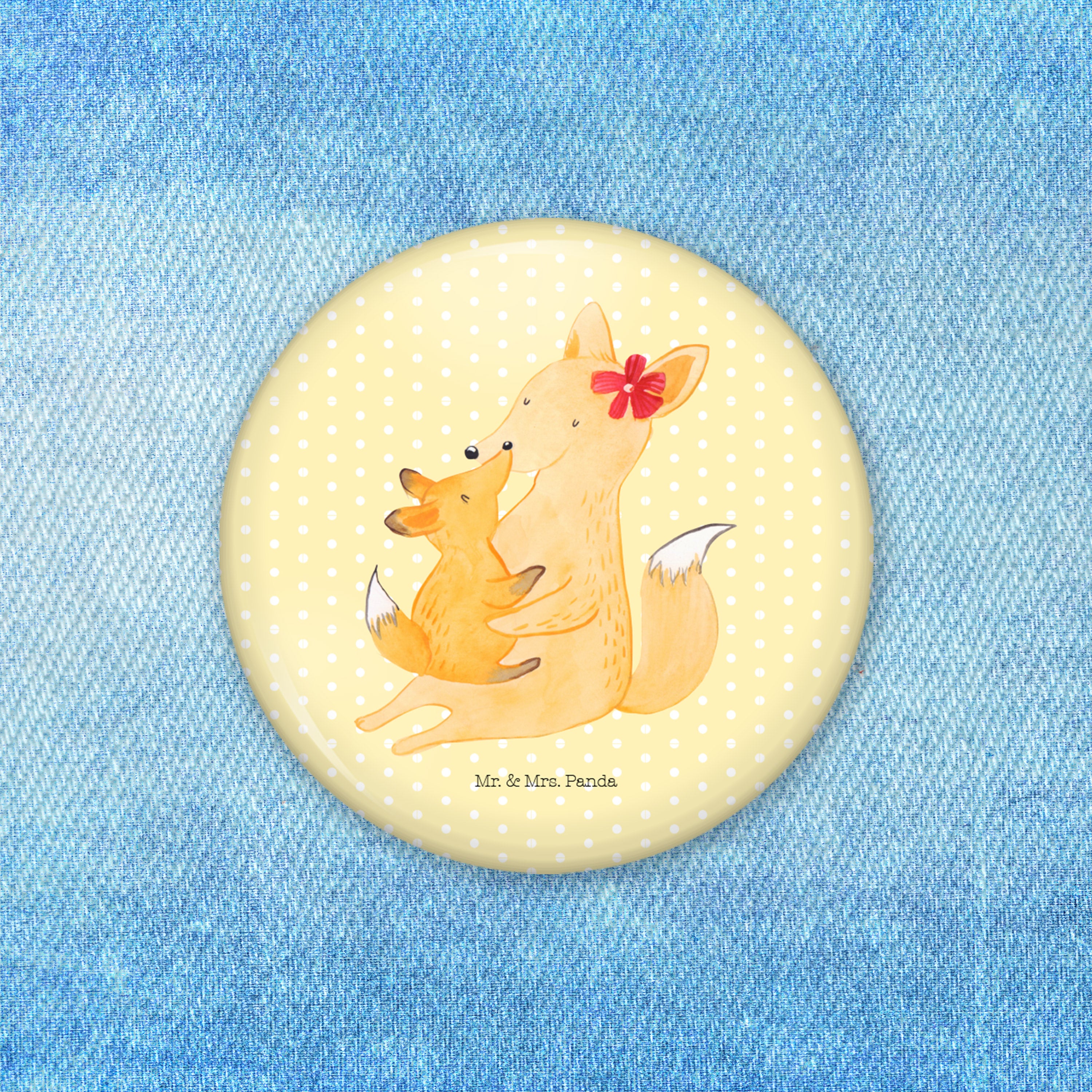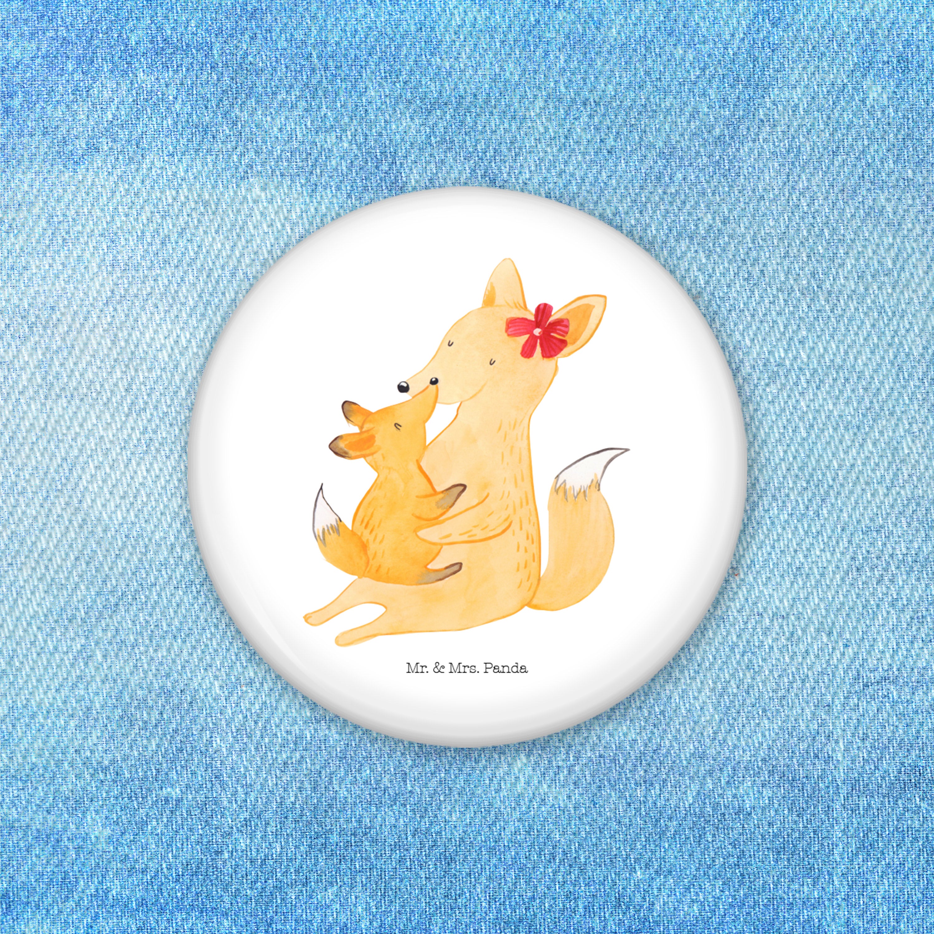 50mm Button Fuchs Mama & Kind - mit Spruch - Weiß
