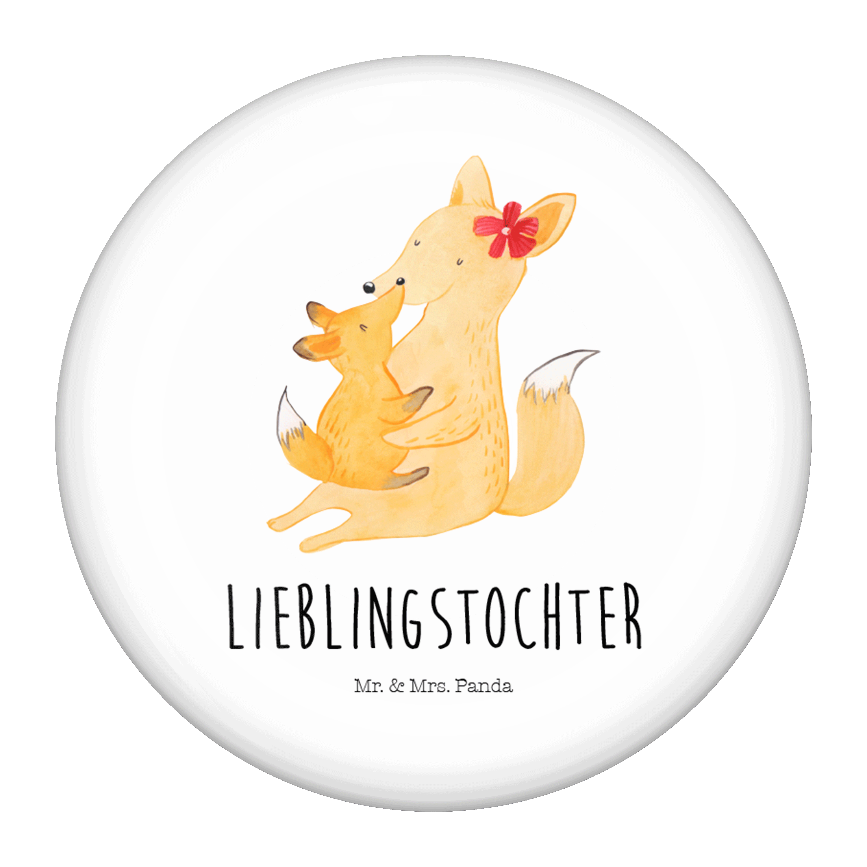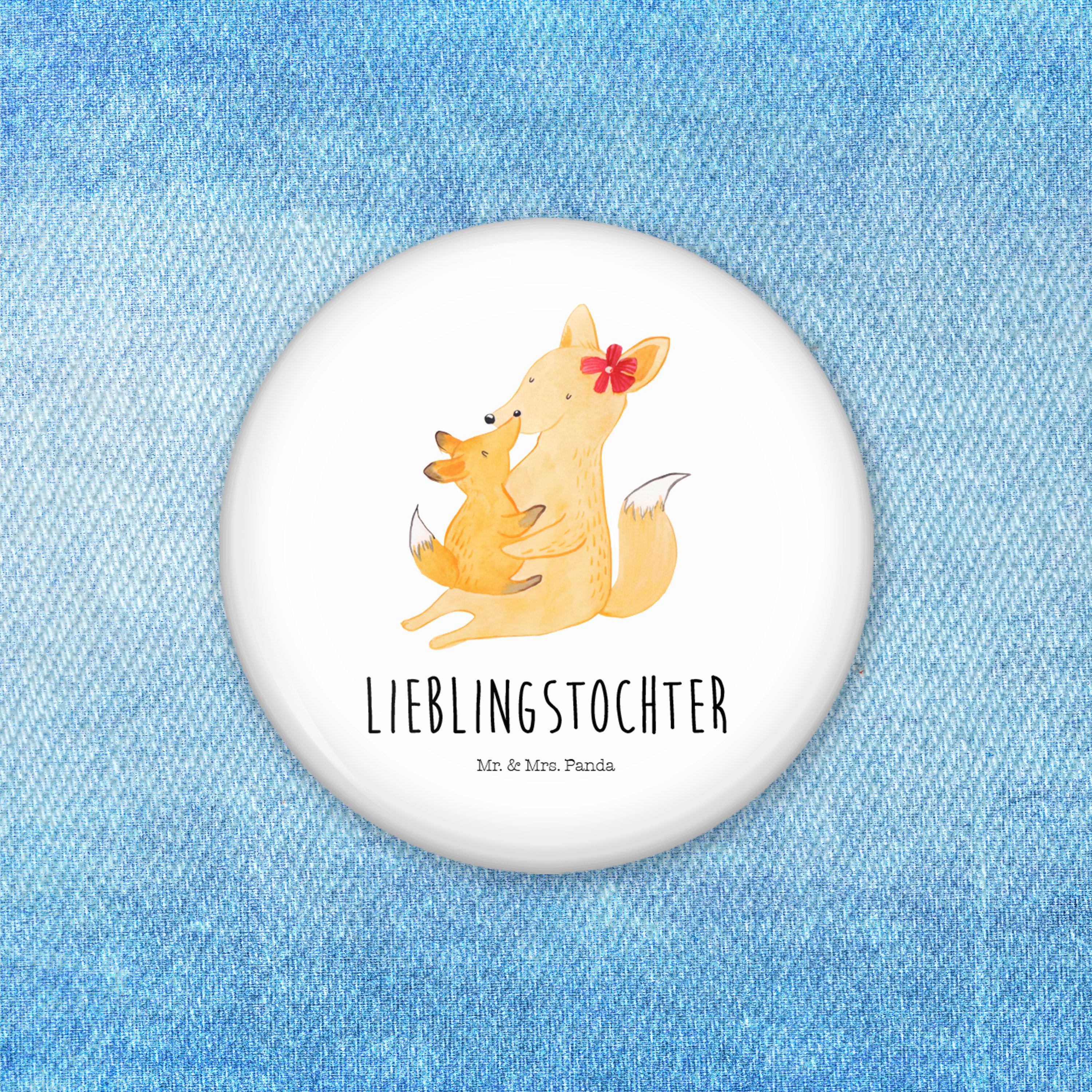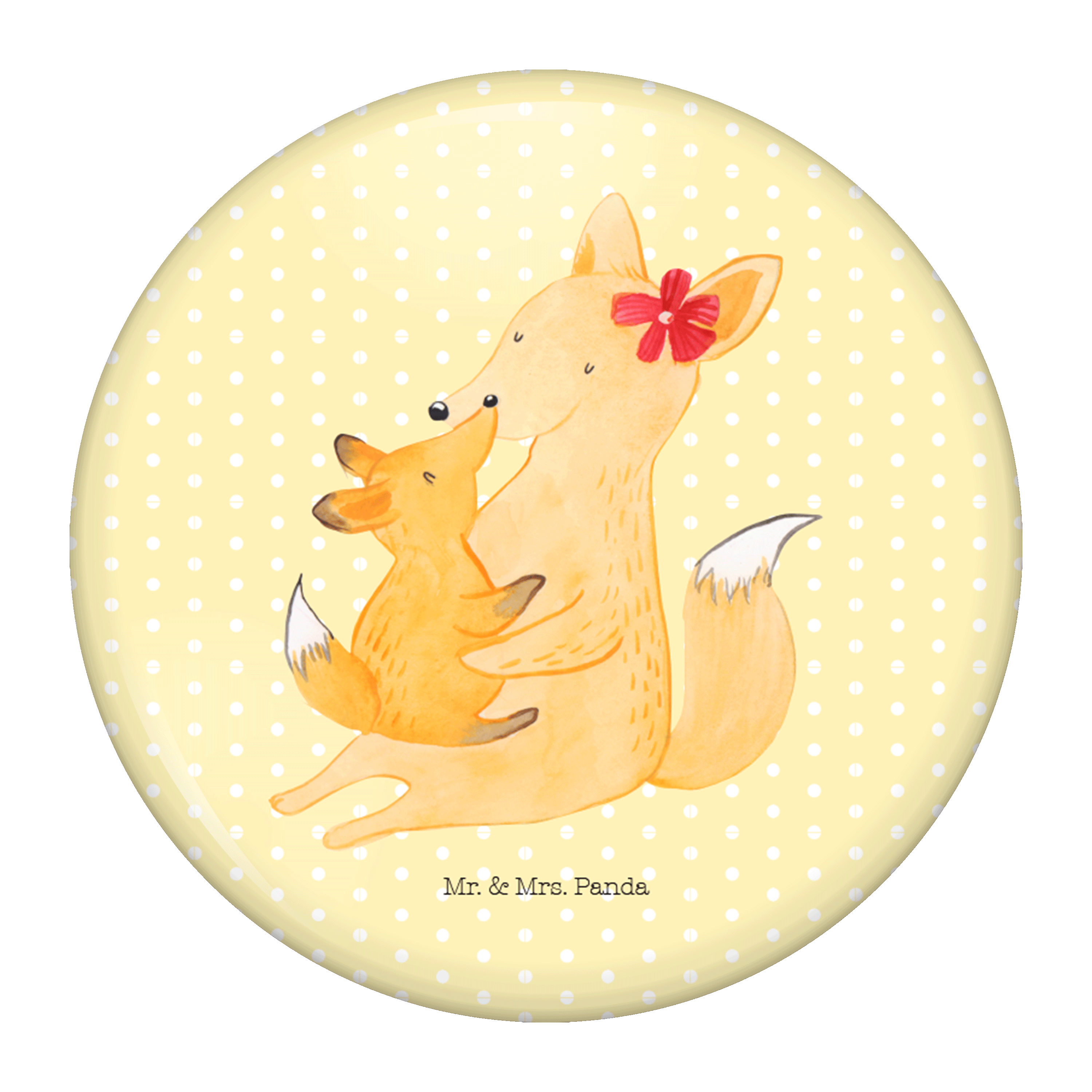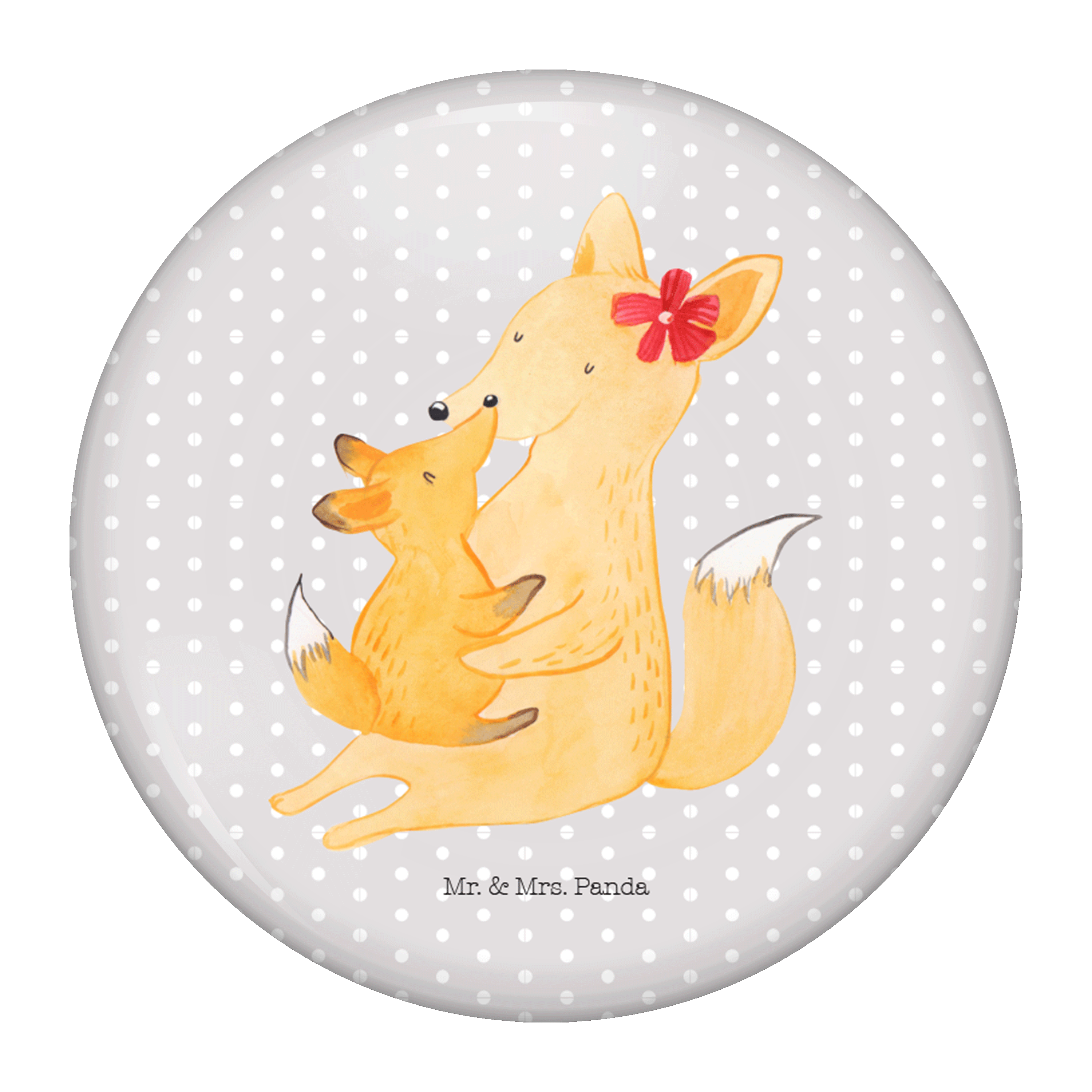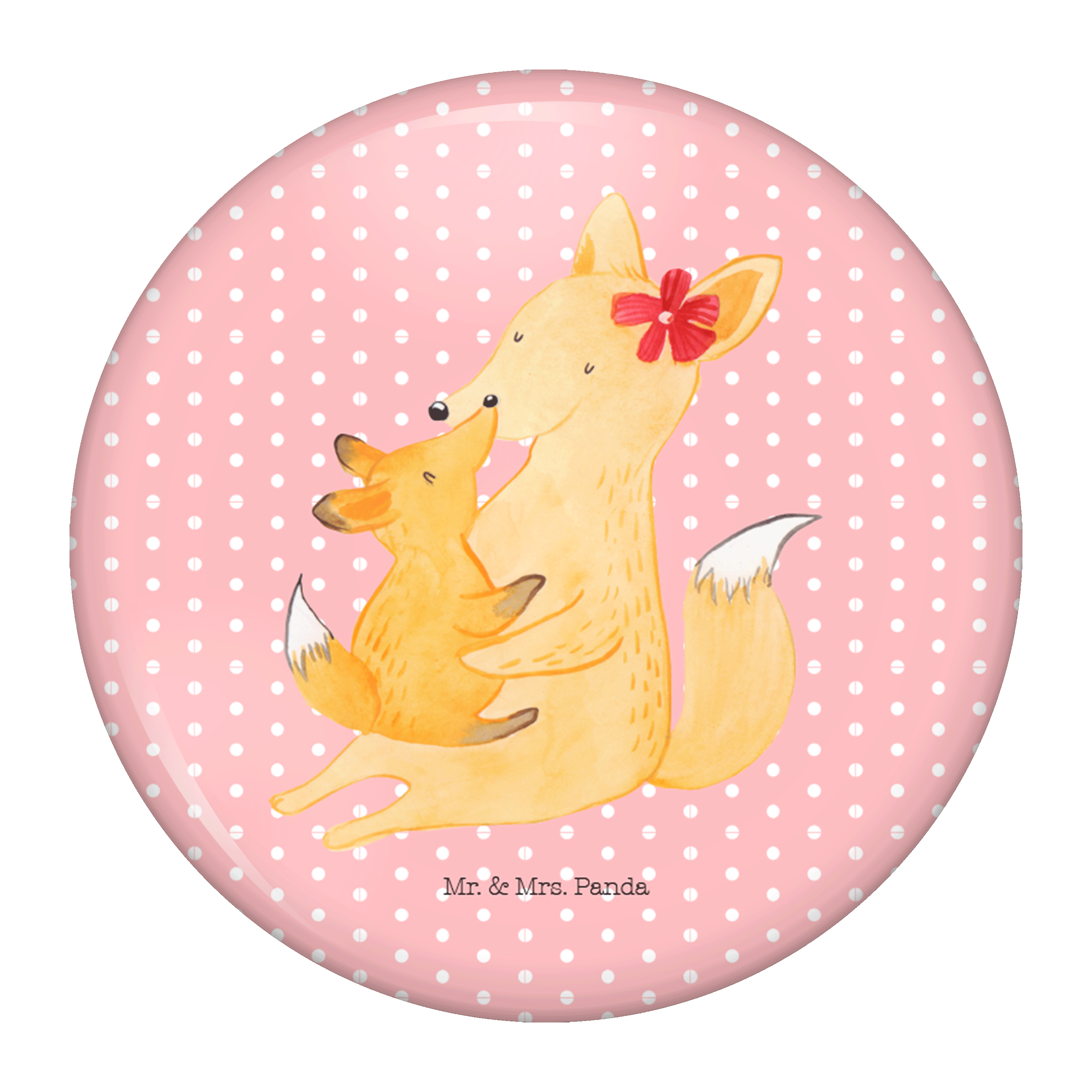 50mm Button Fuchs Mama & Kind - mit Spruch - Weiß
