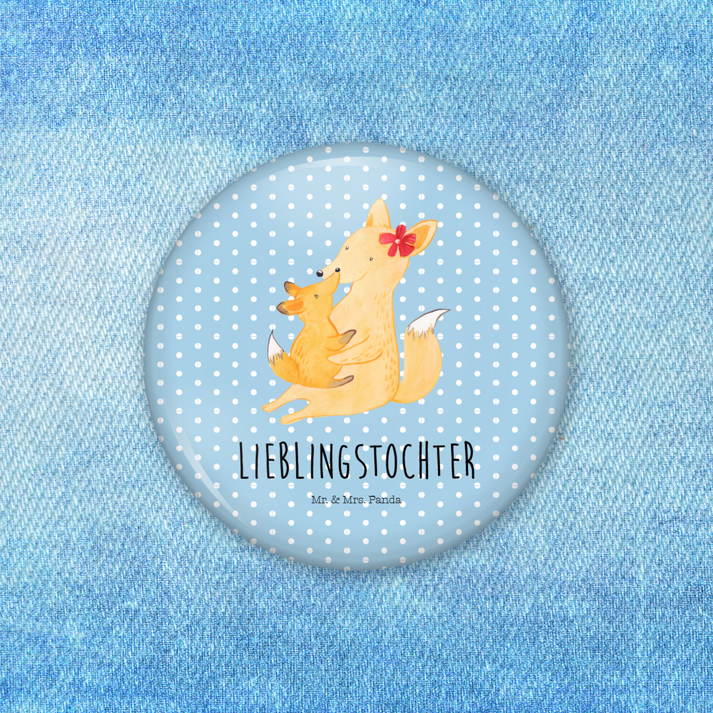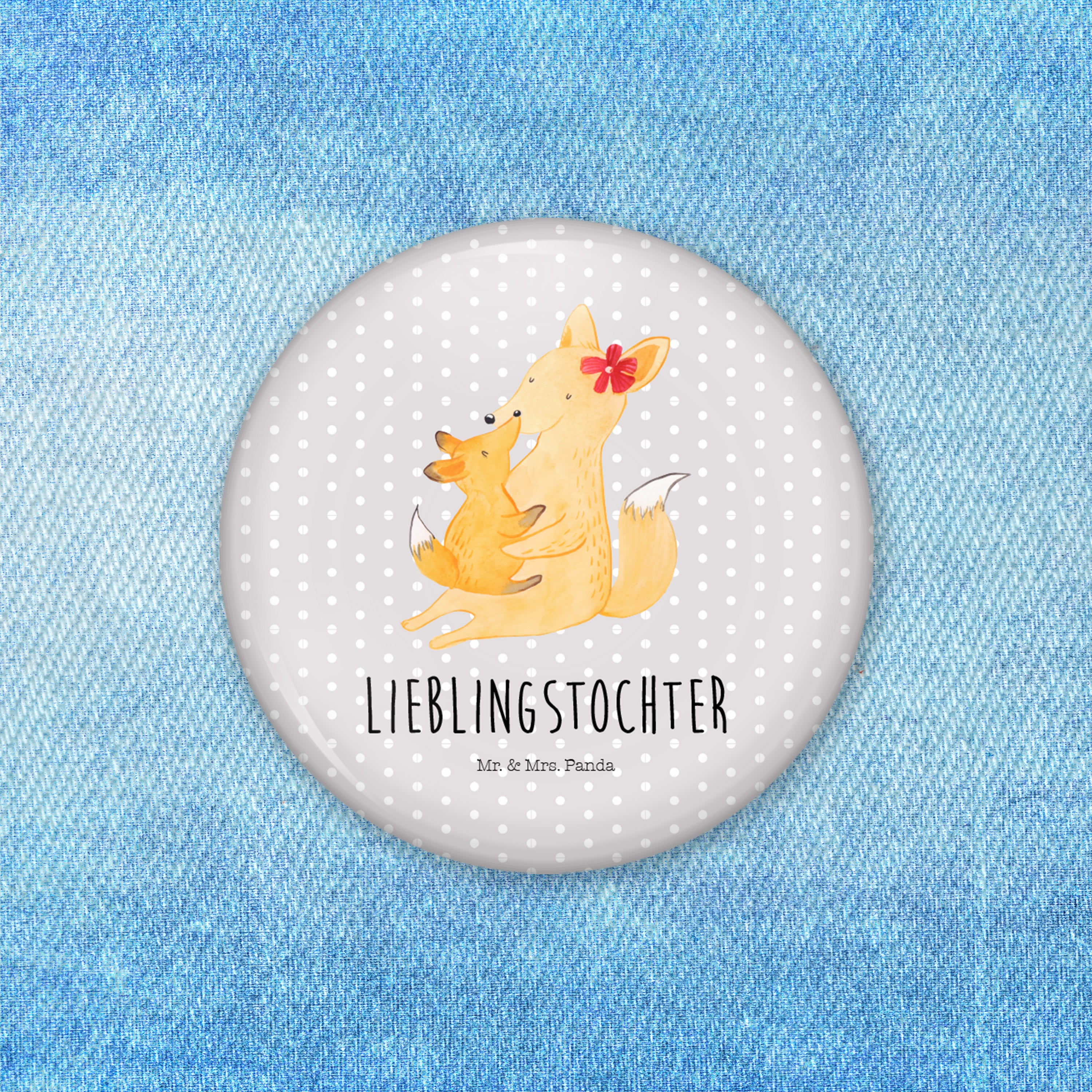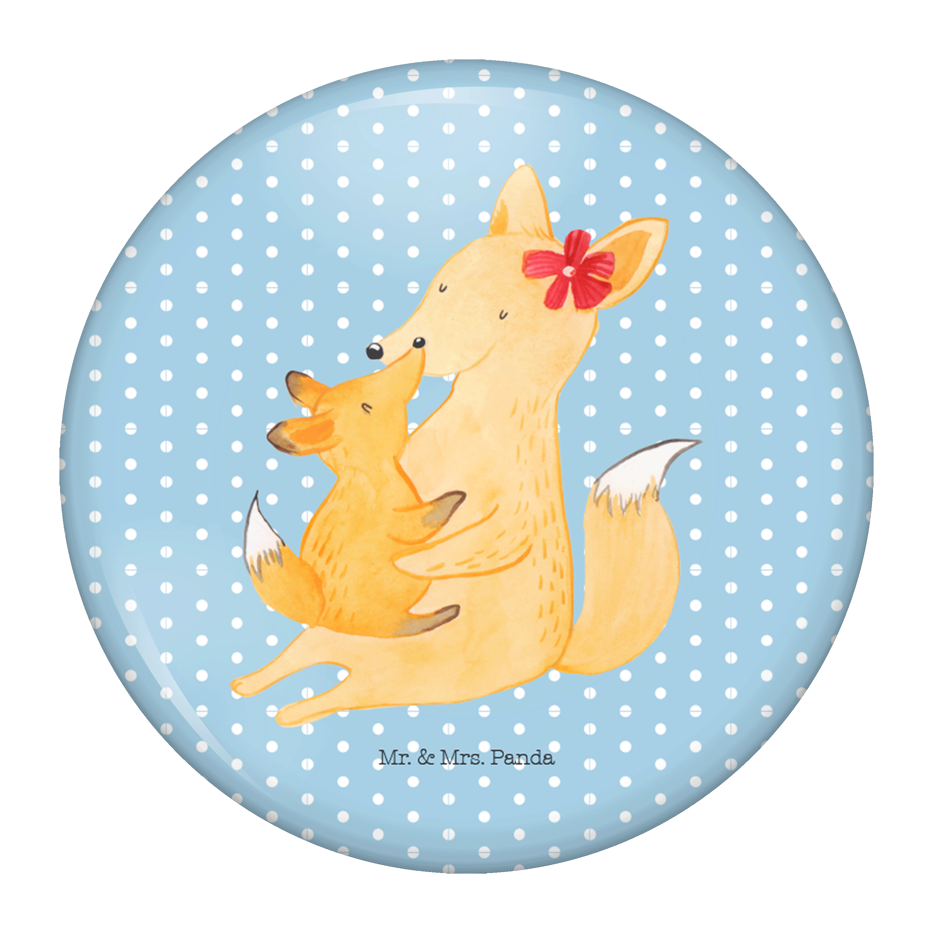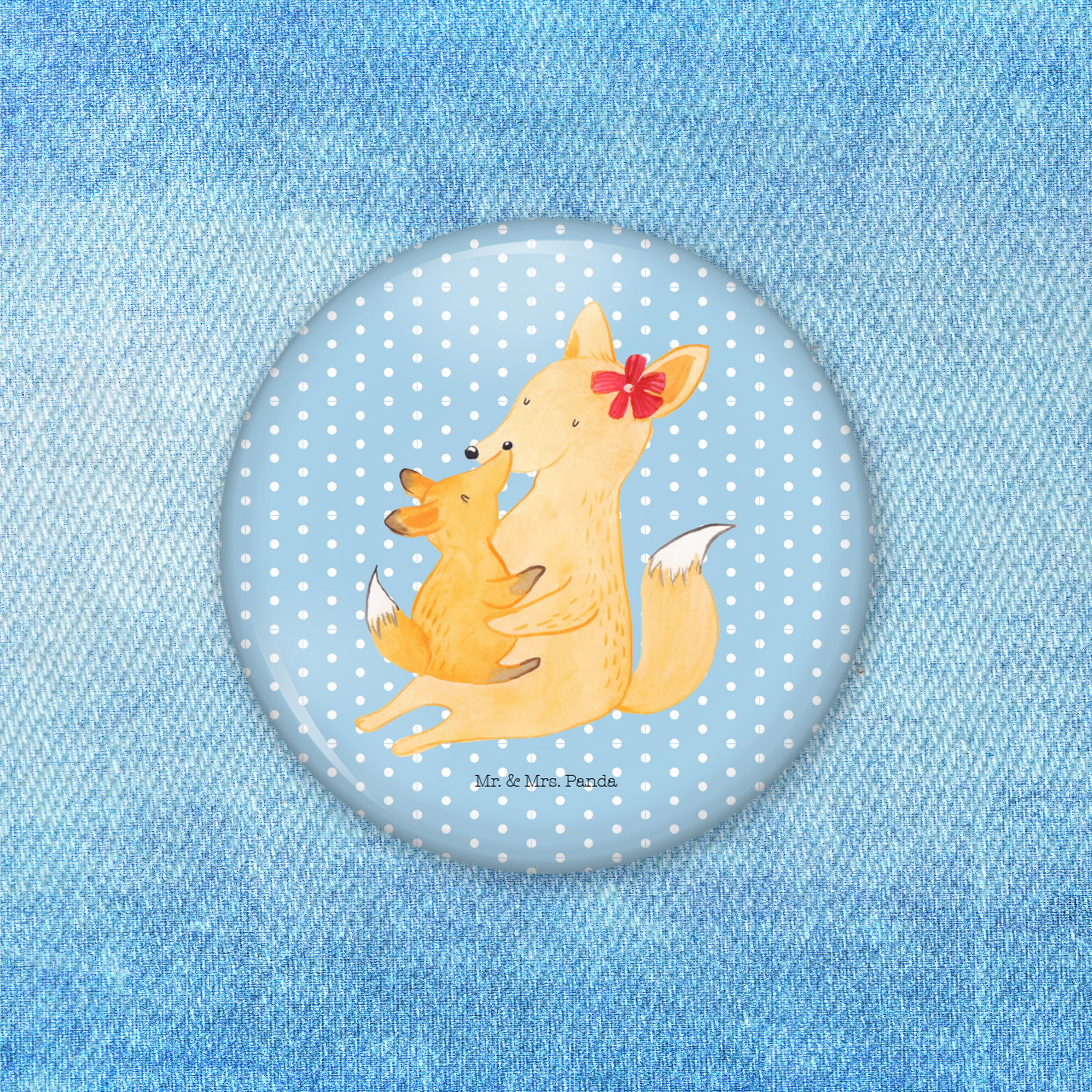 50mm Button Fuchs Mama & Kind - mit Spruch - Weiß