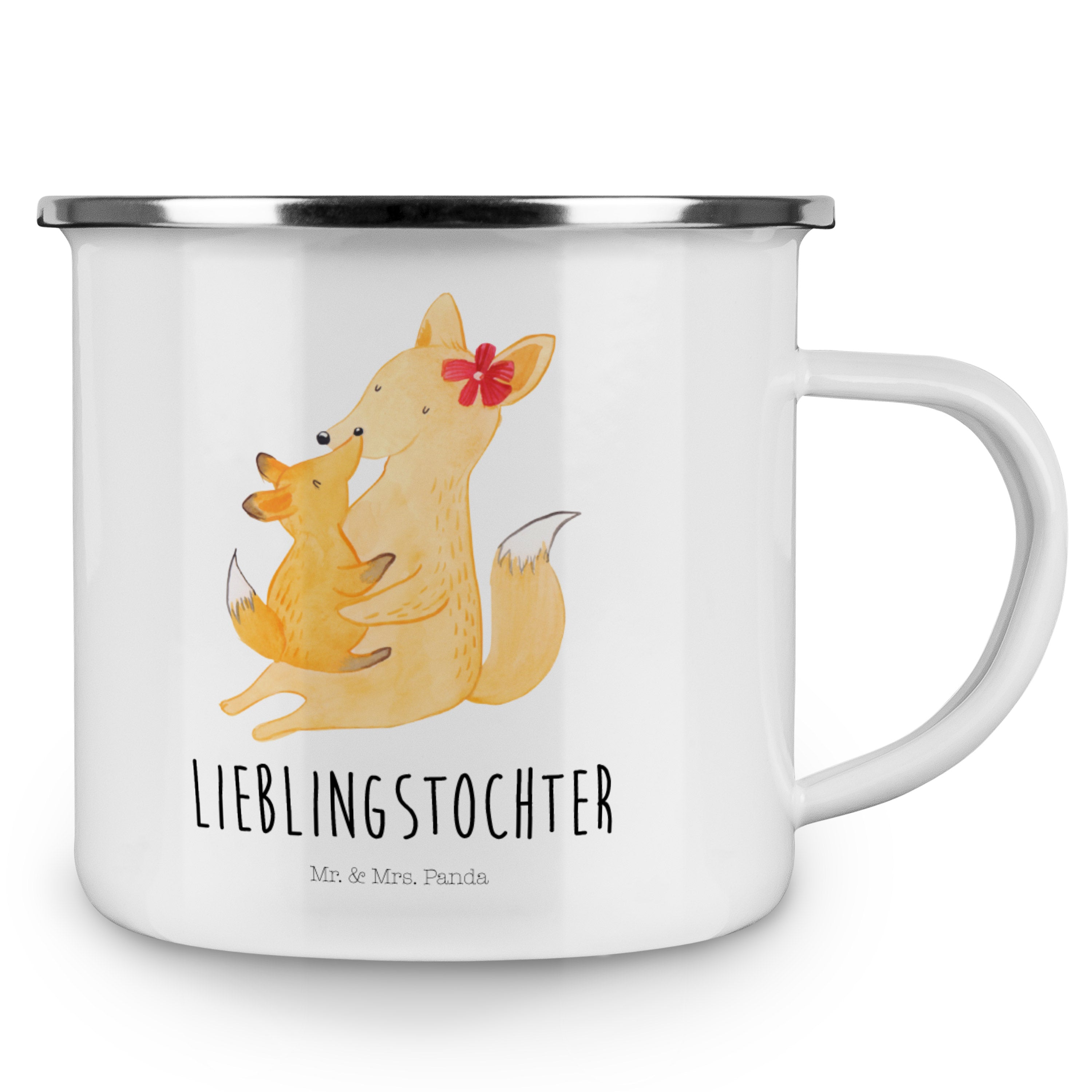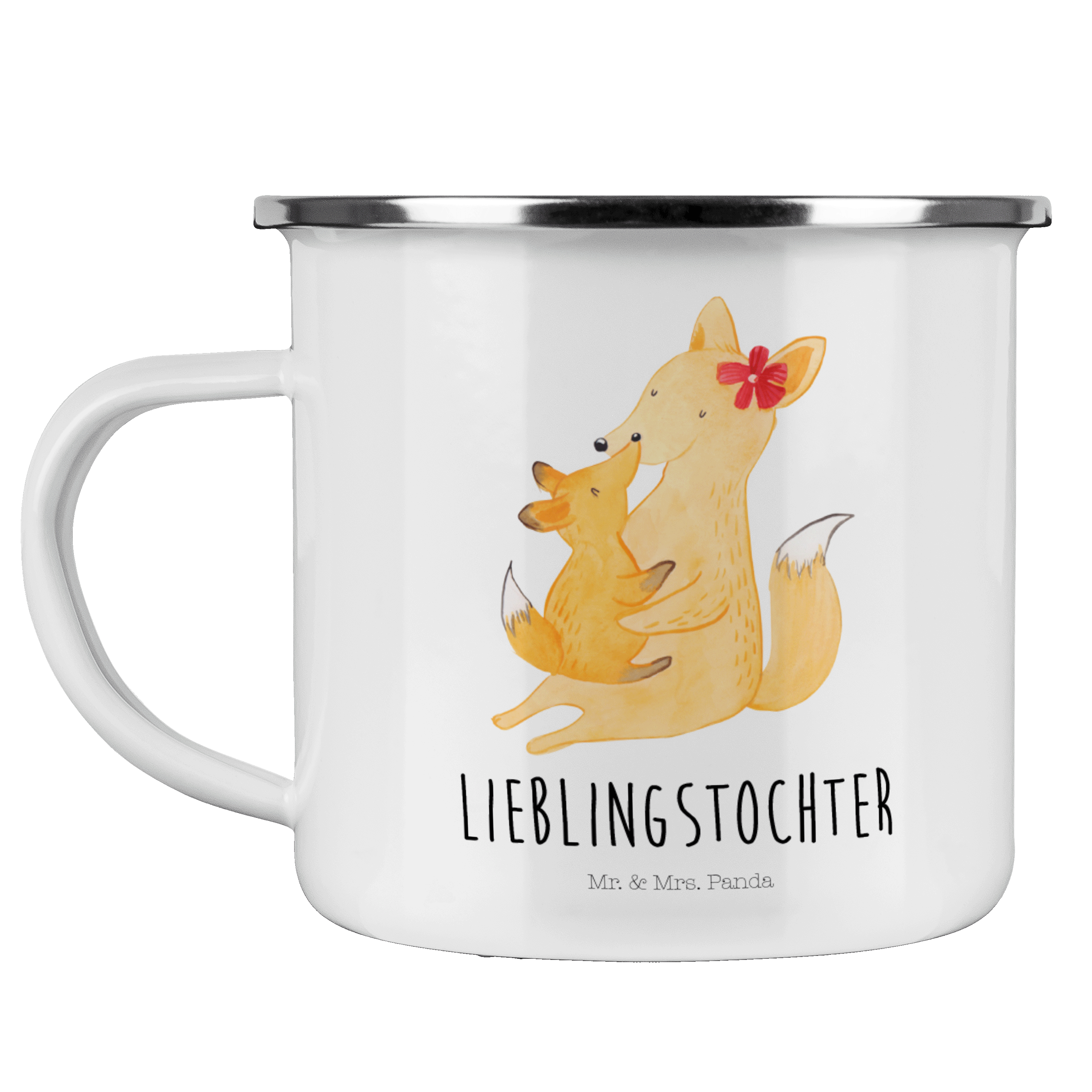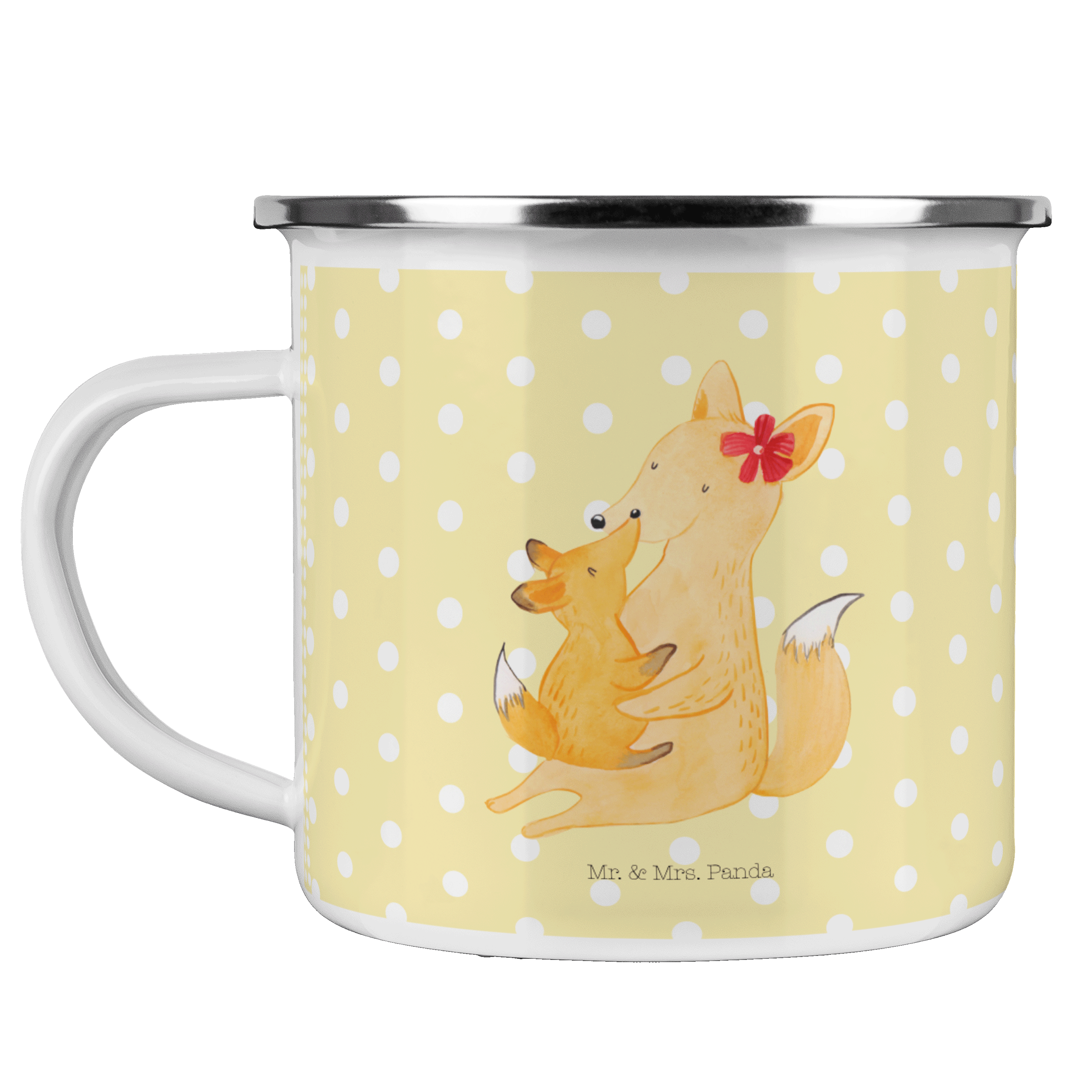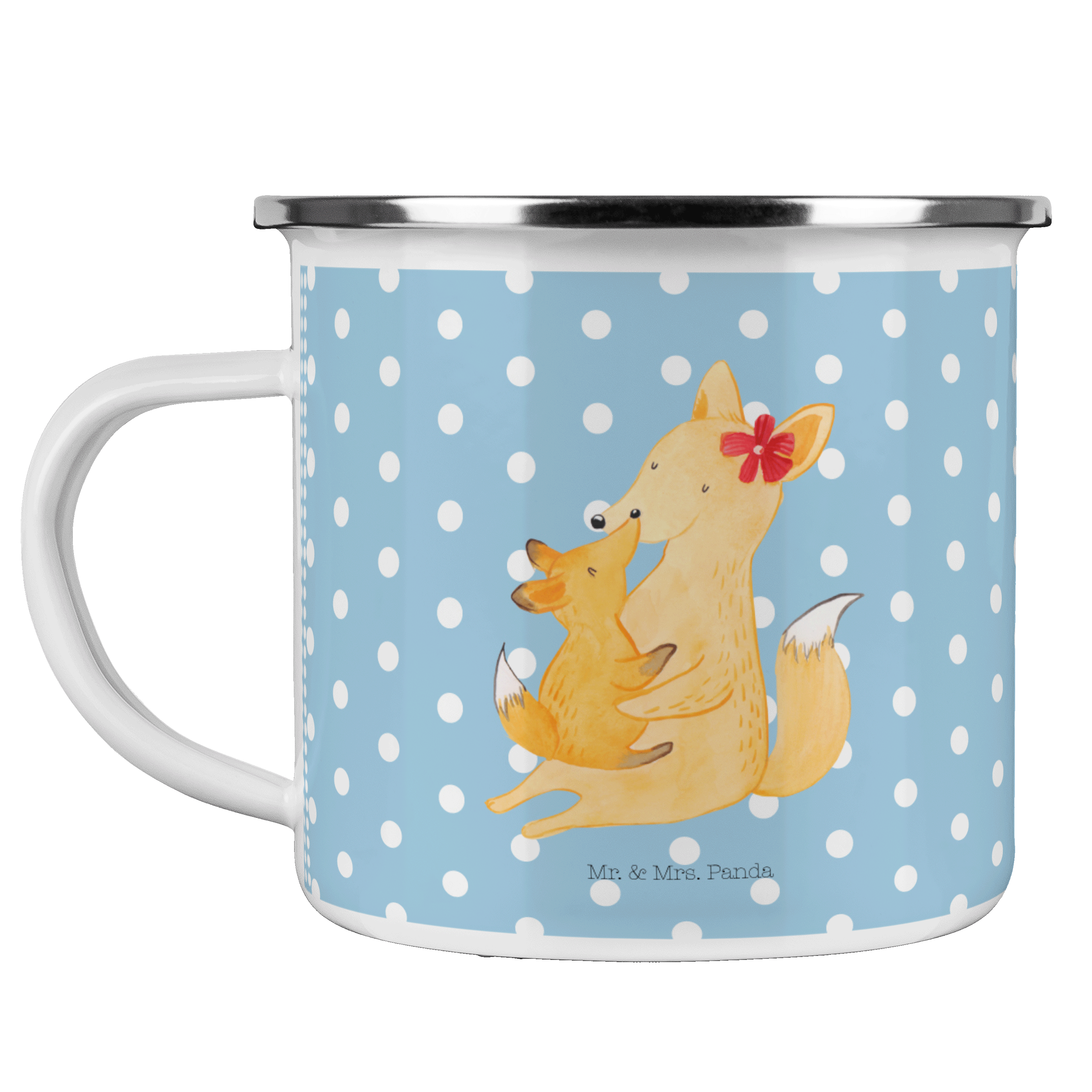 Camping Emaille Tasse Fuchs Mama & Kind - mit Spruch - Weiß