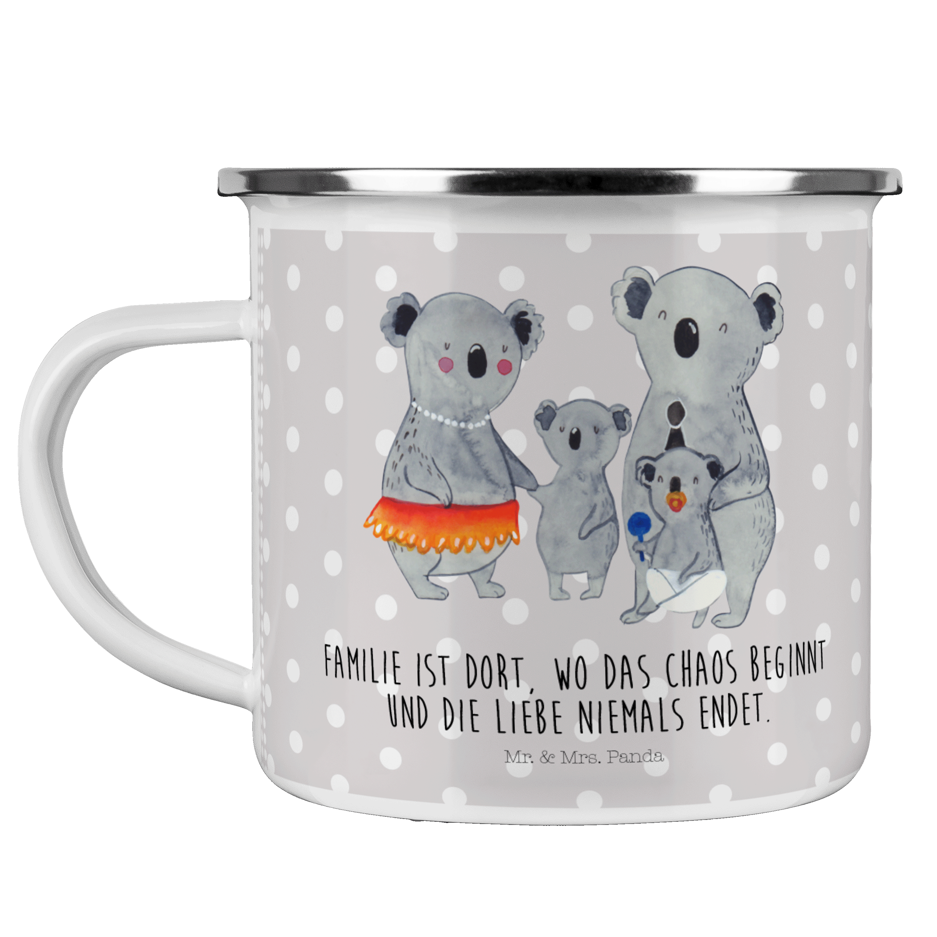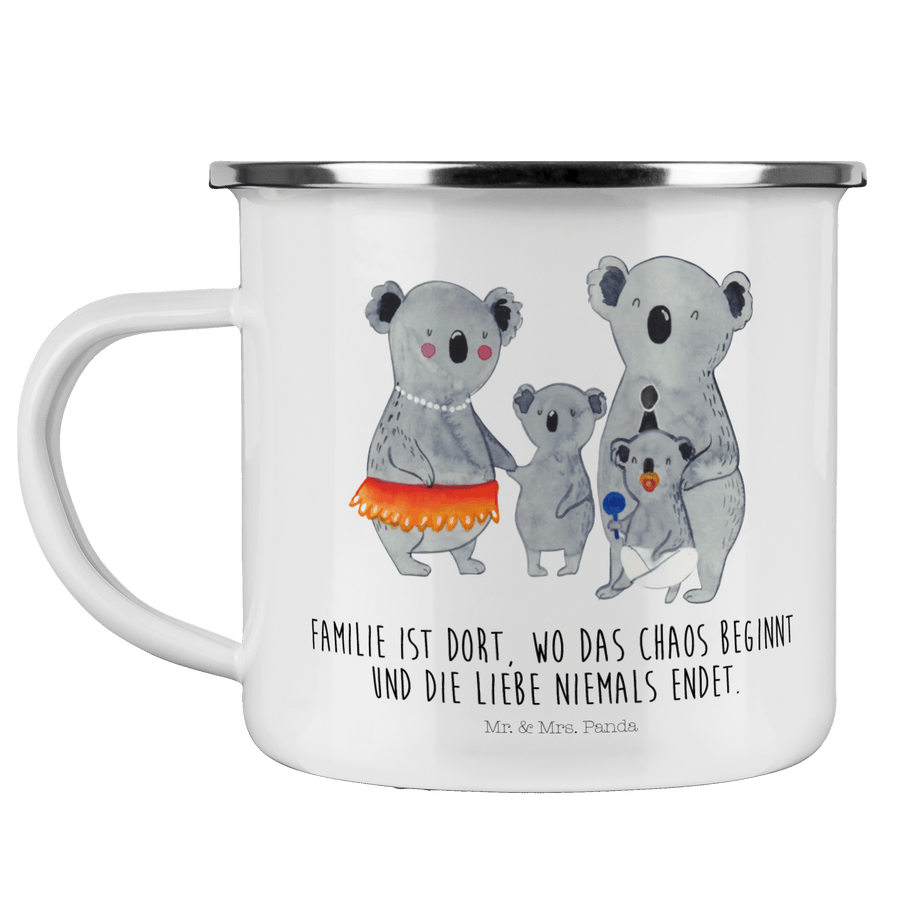Camping Emaille Tasse Koala Familie - mit Spruch - Weiß