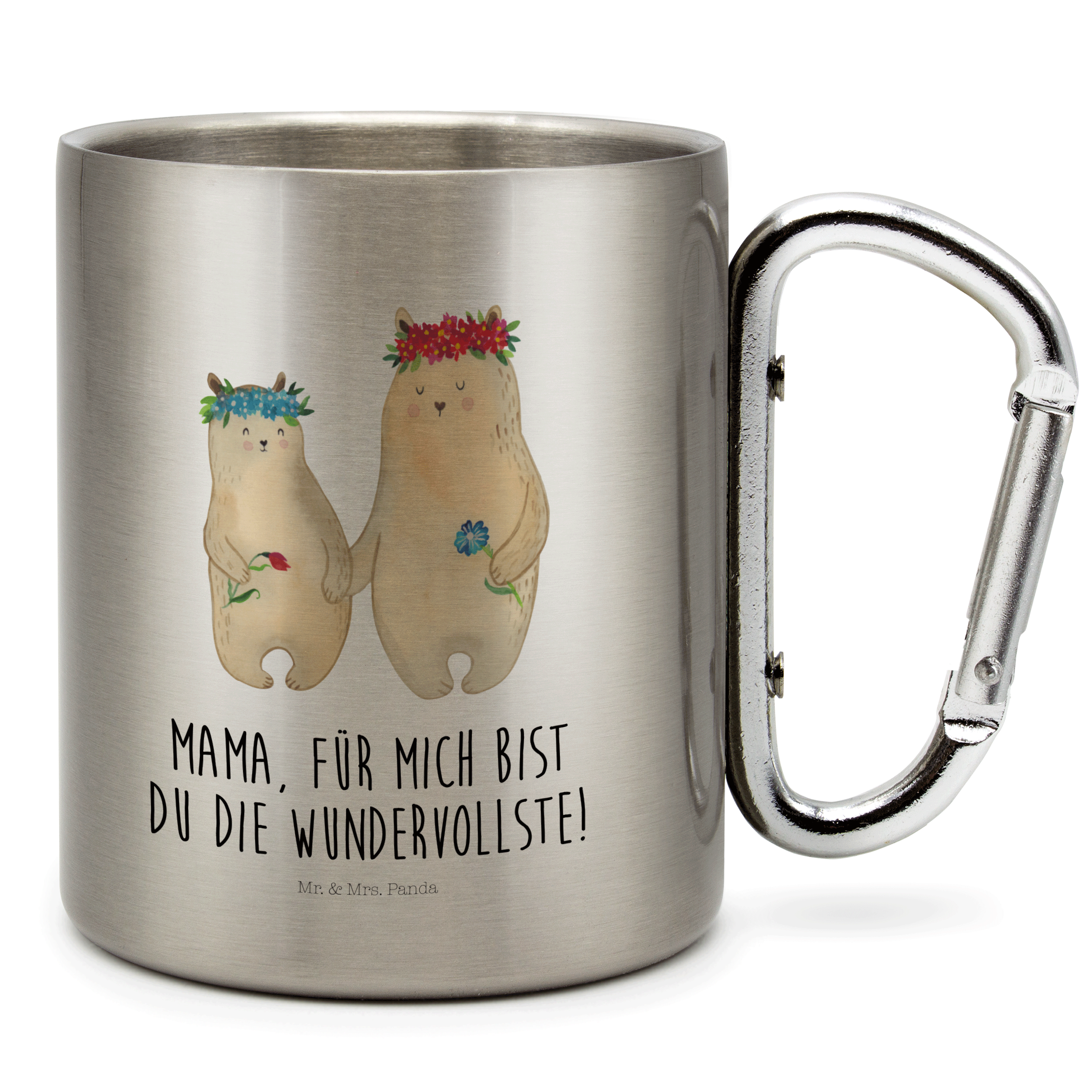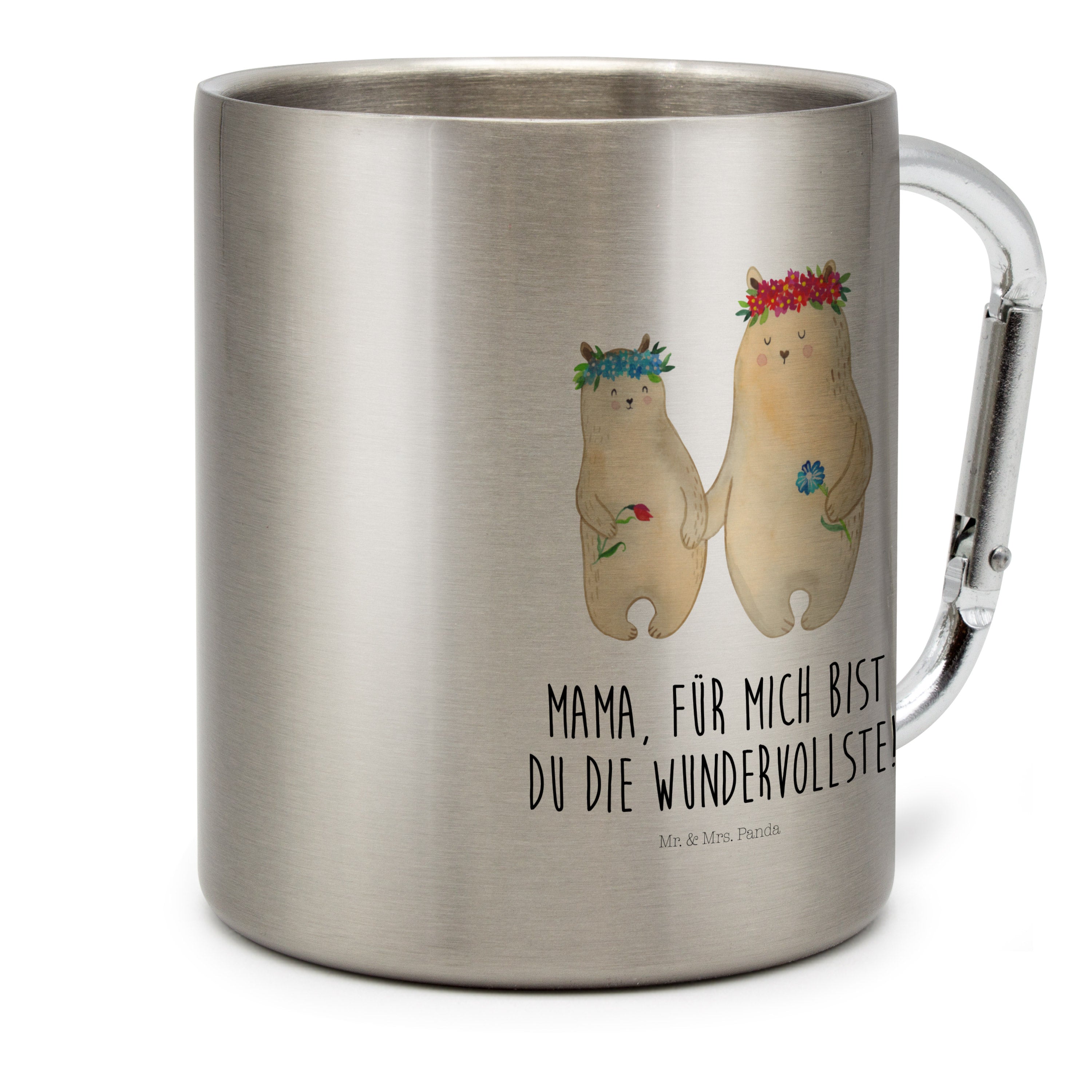 Edelstahlbecher Bären mit Blumenkranz - mit Spruch