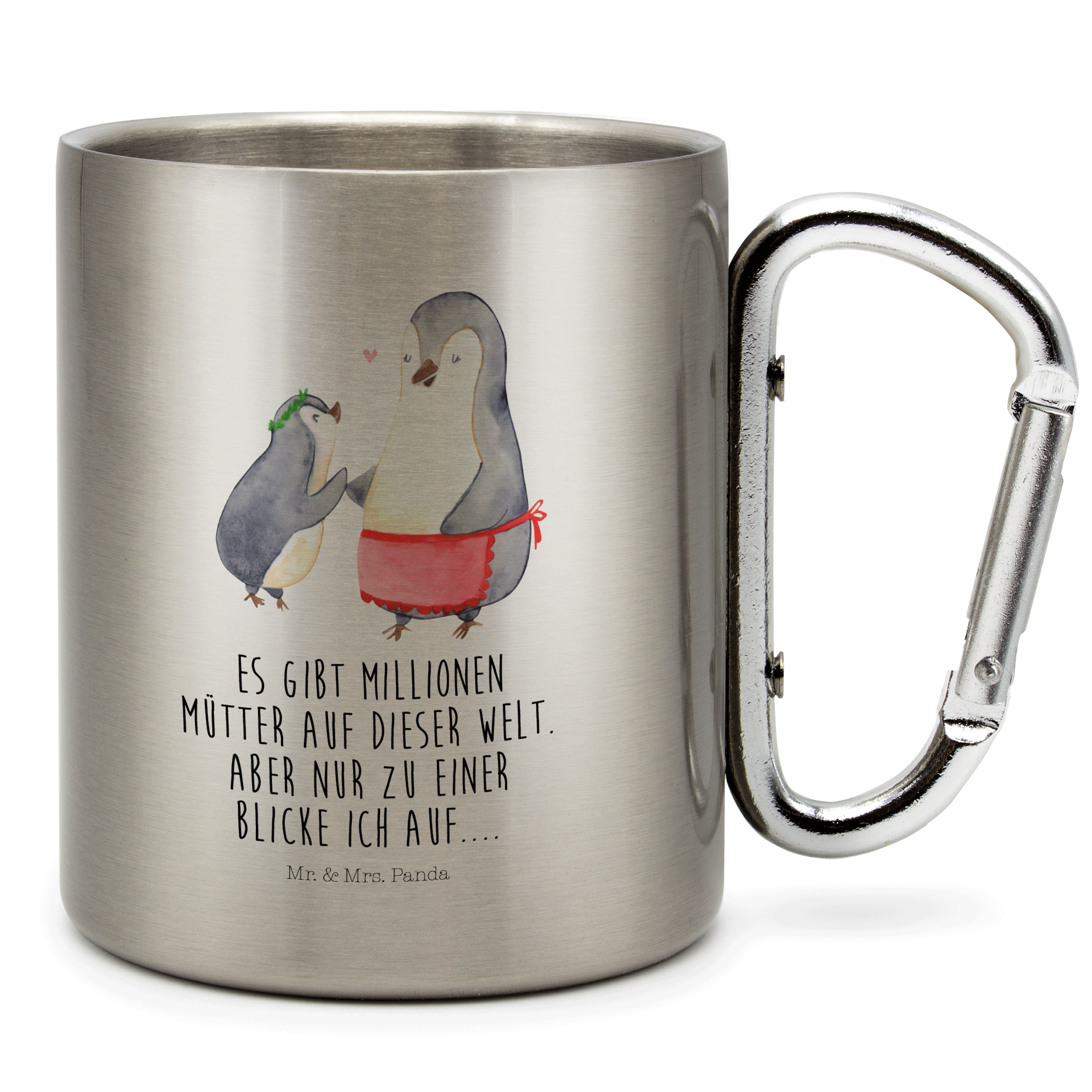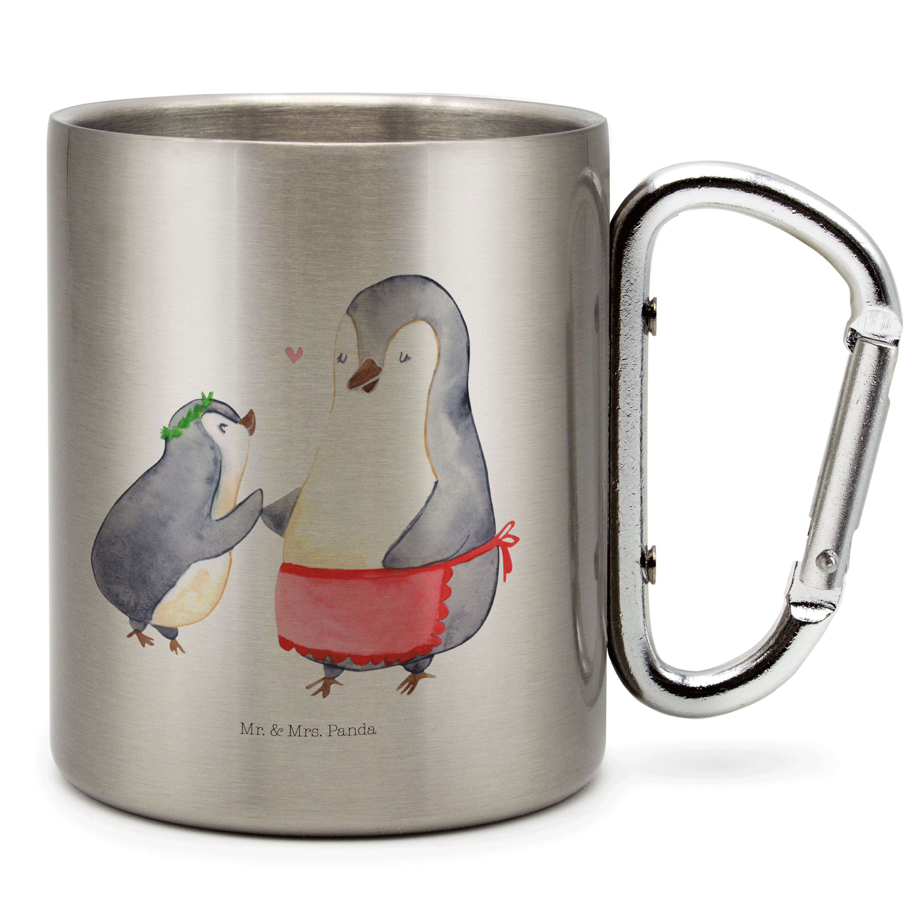Edelstahlbecher Pinguin mit Kind - mit Spruch