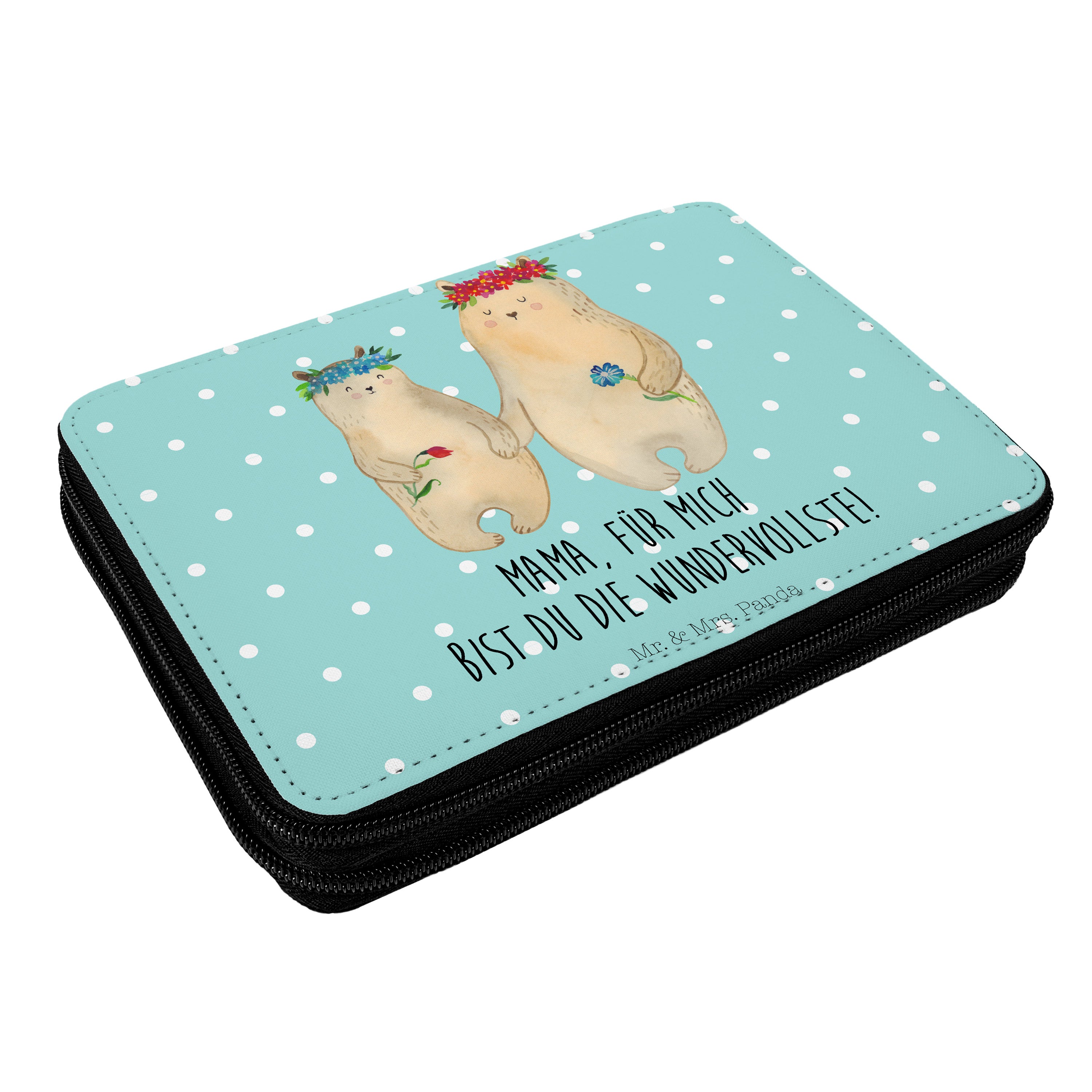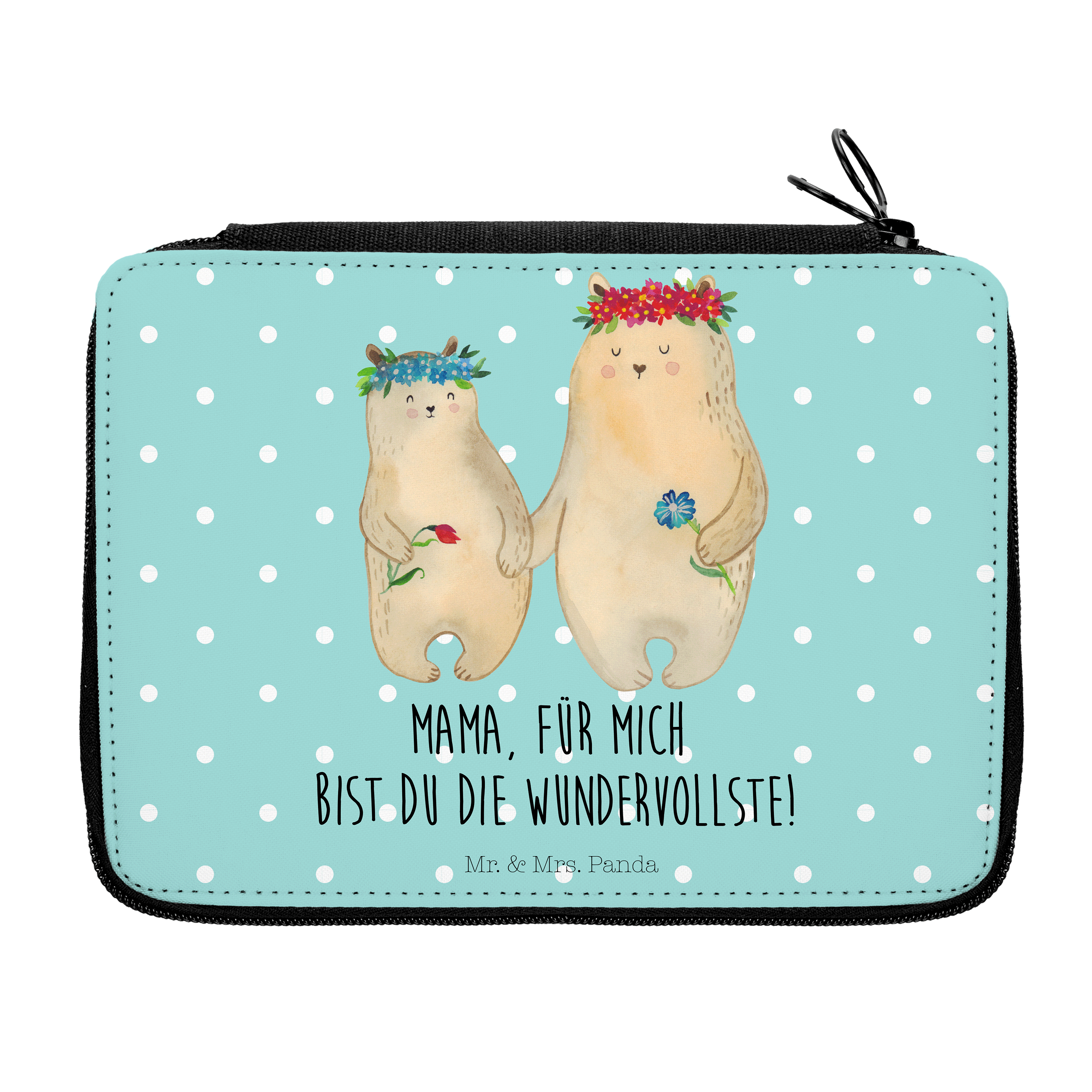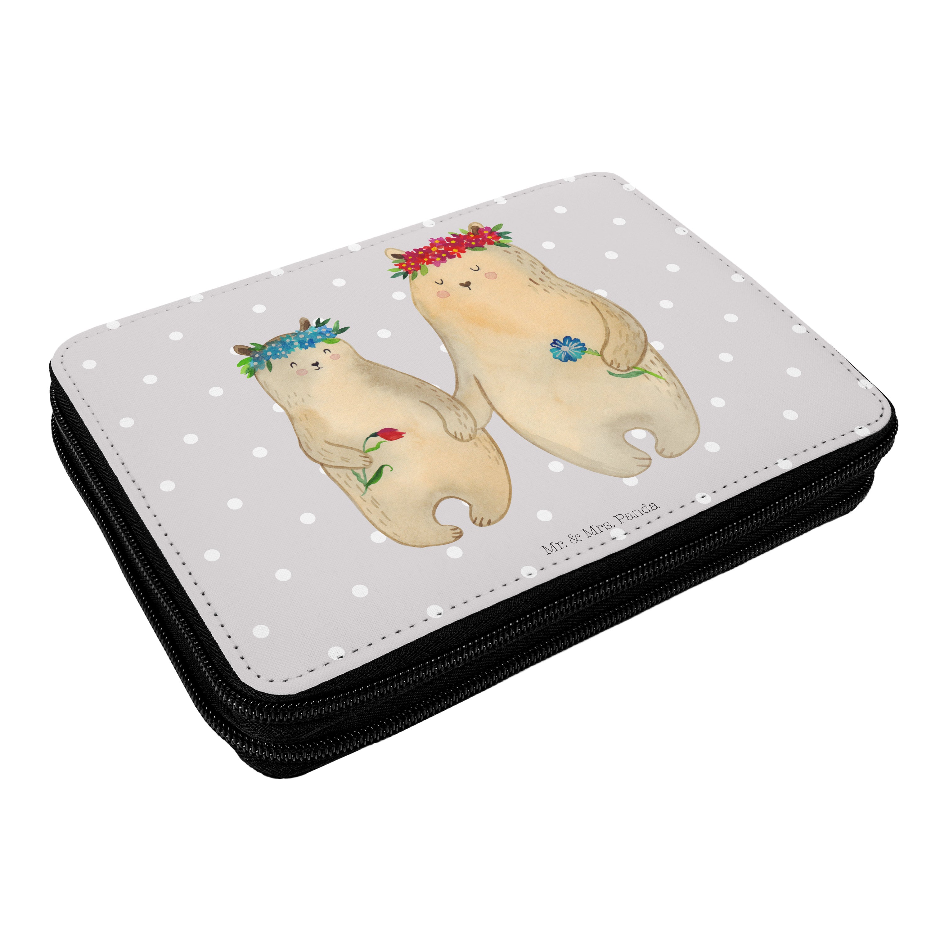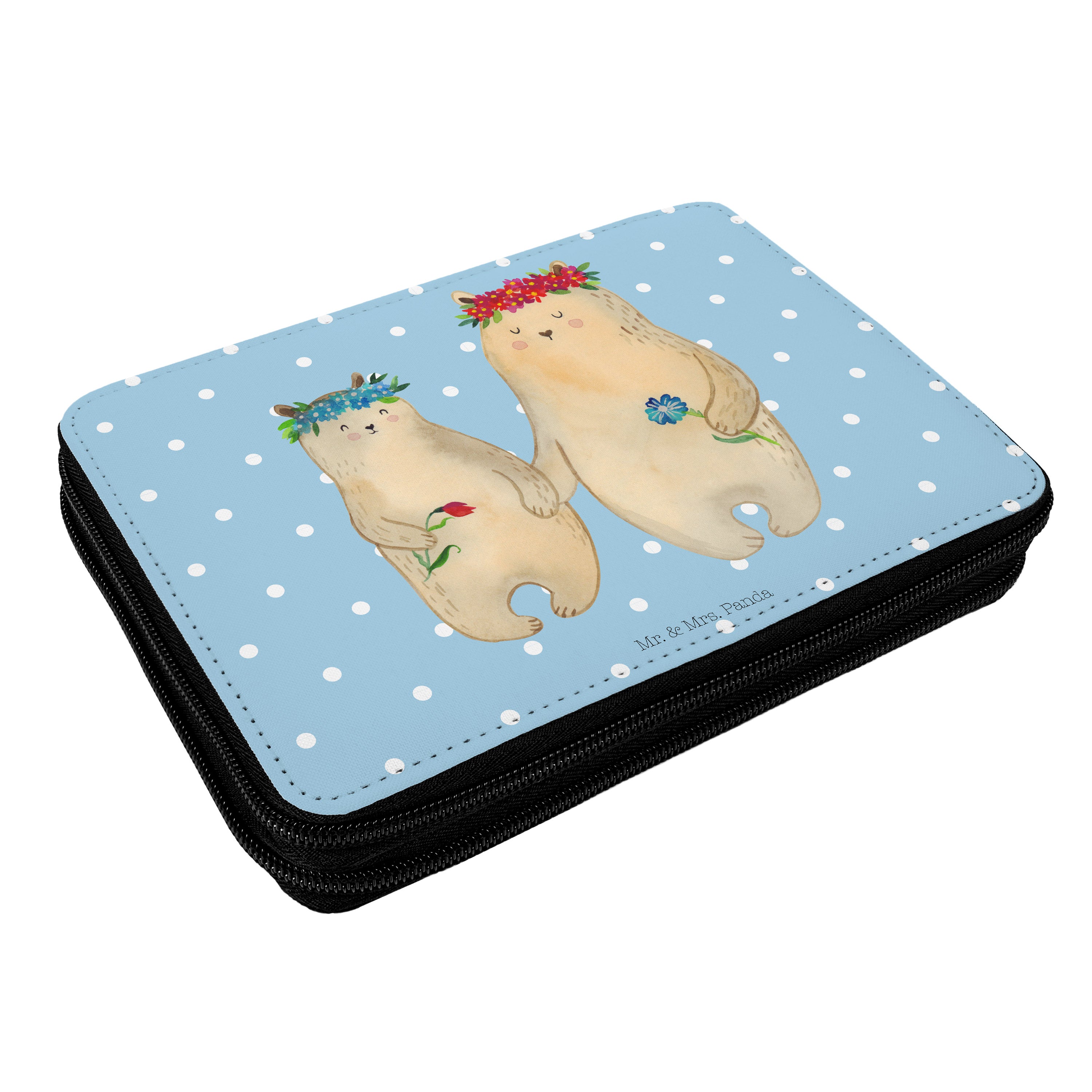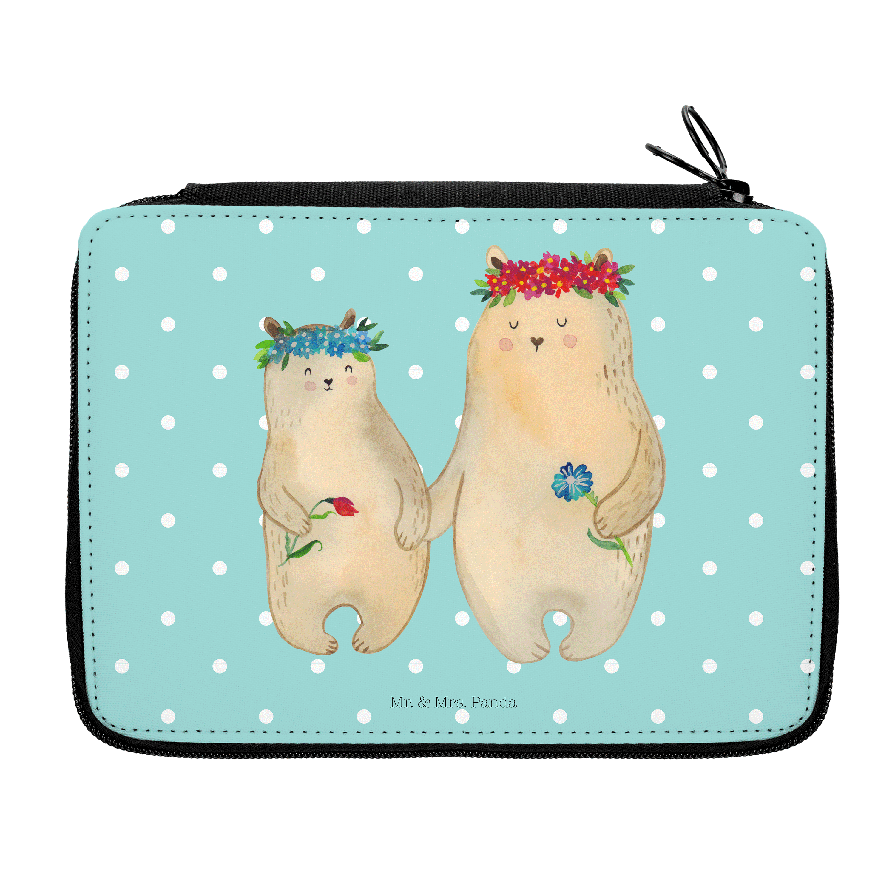 Federmappe Bären mit Blumenkranz - mit Spruch - Blau Pastell