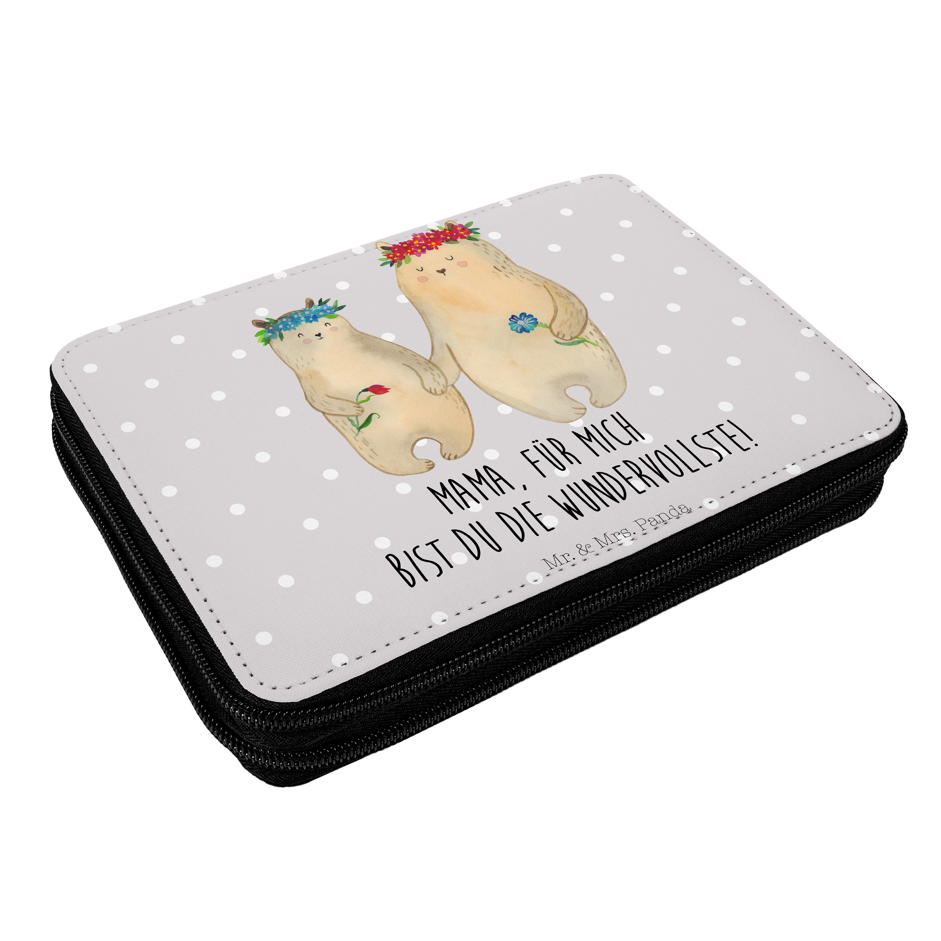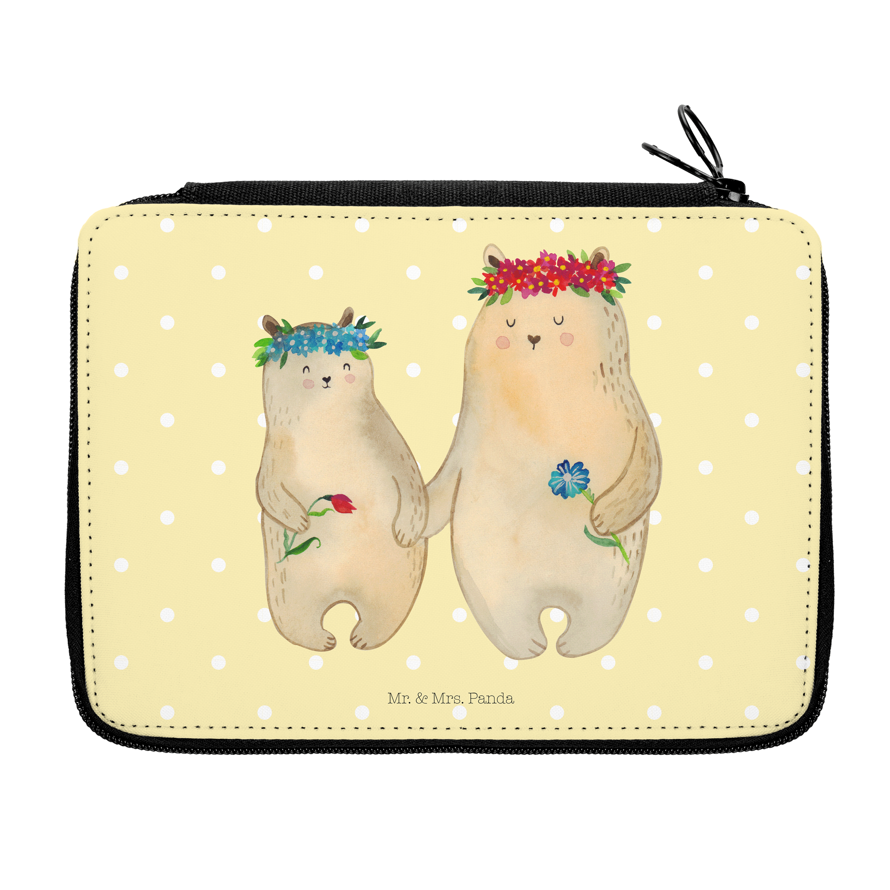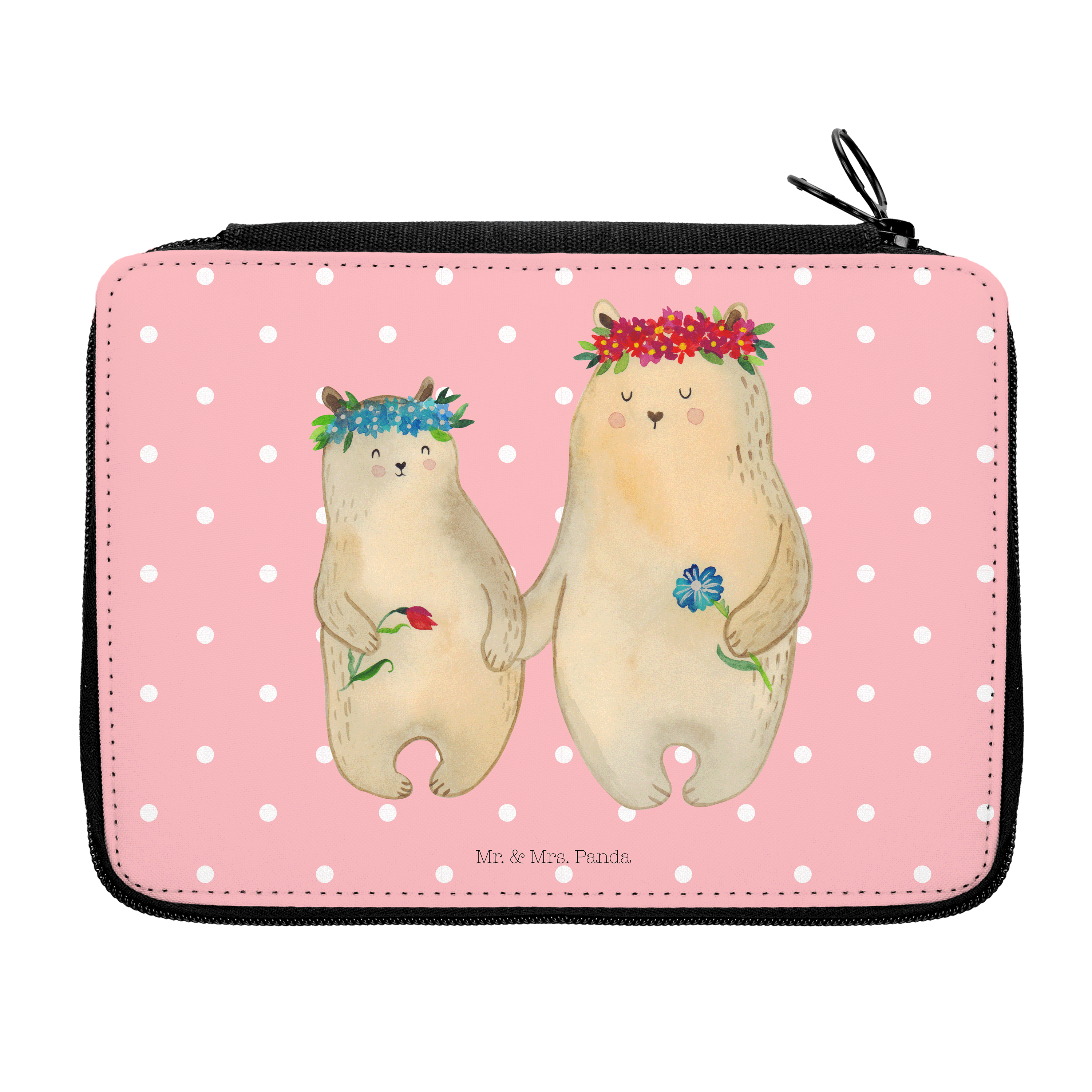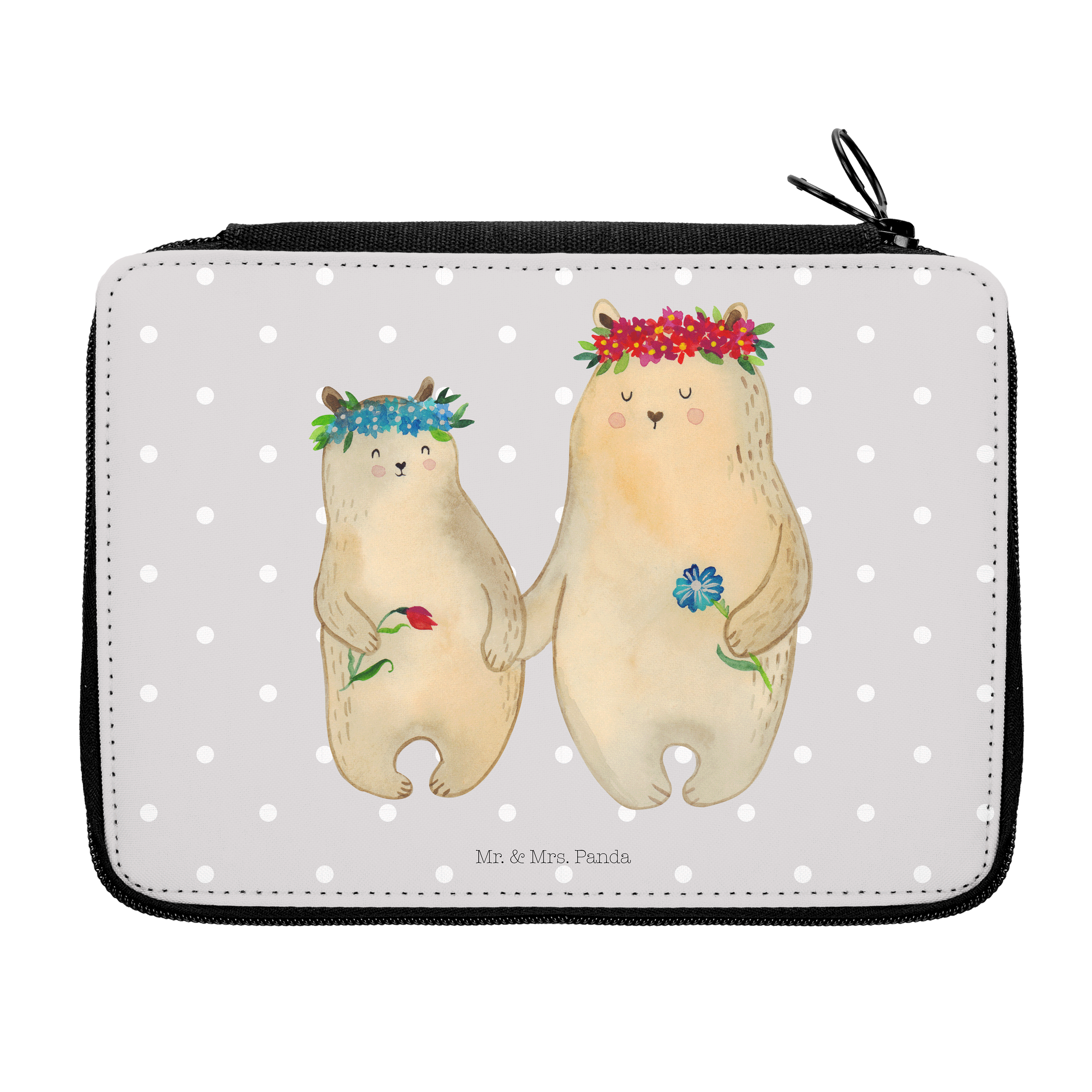 Federmappe Bären mit Blumenkranz - mit Spruch - Blau Pastell