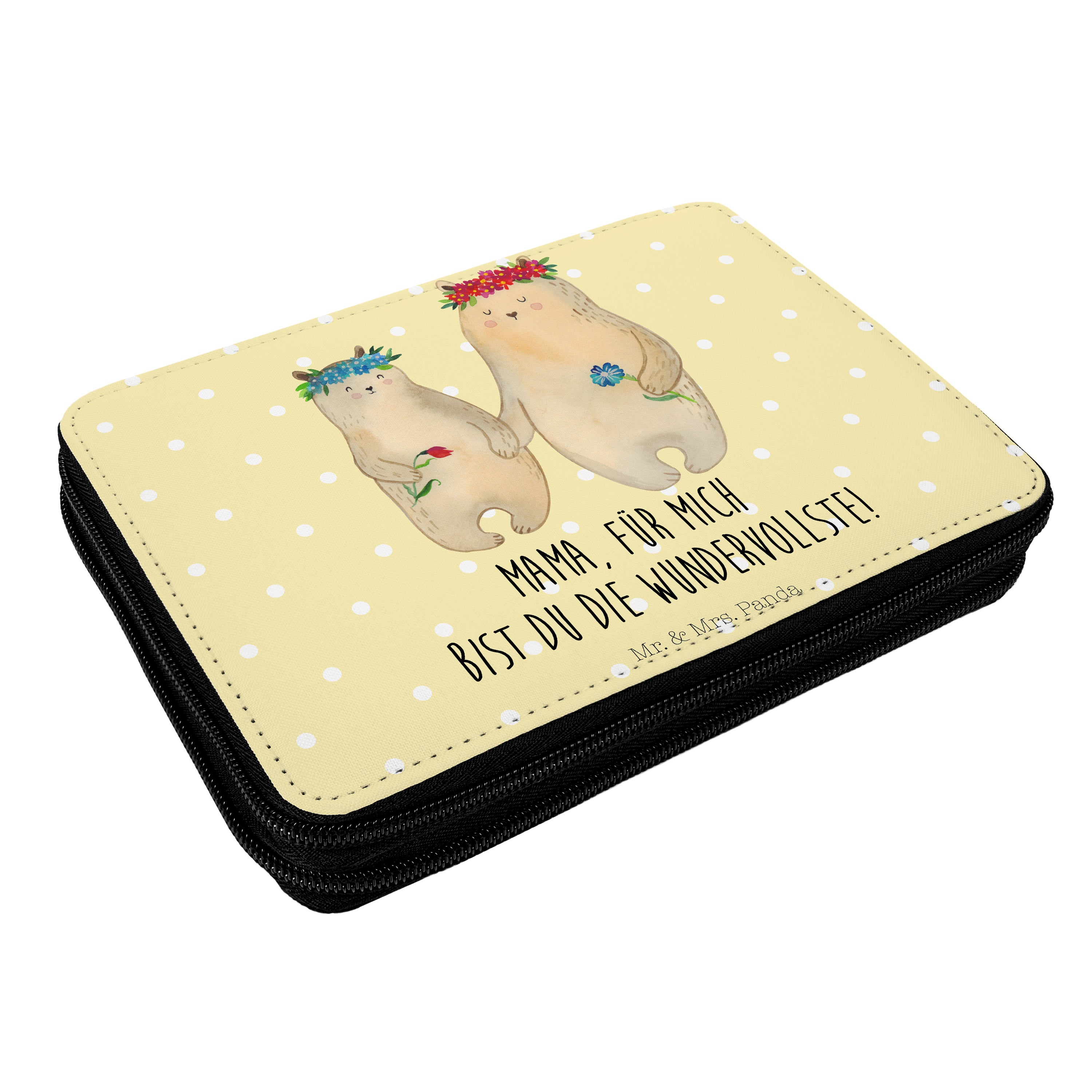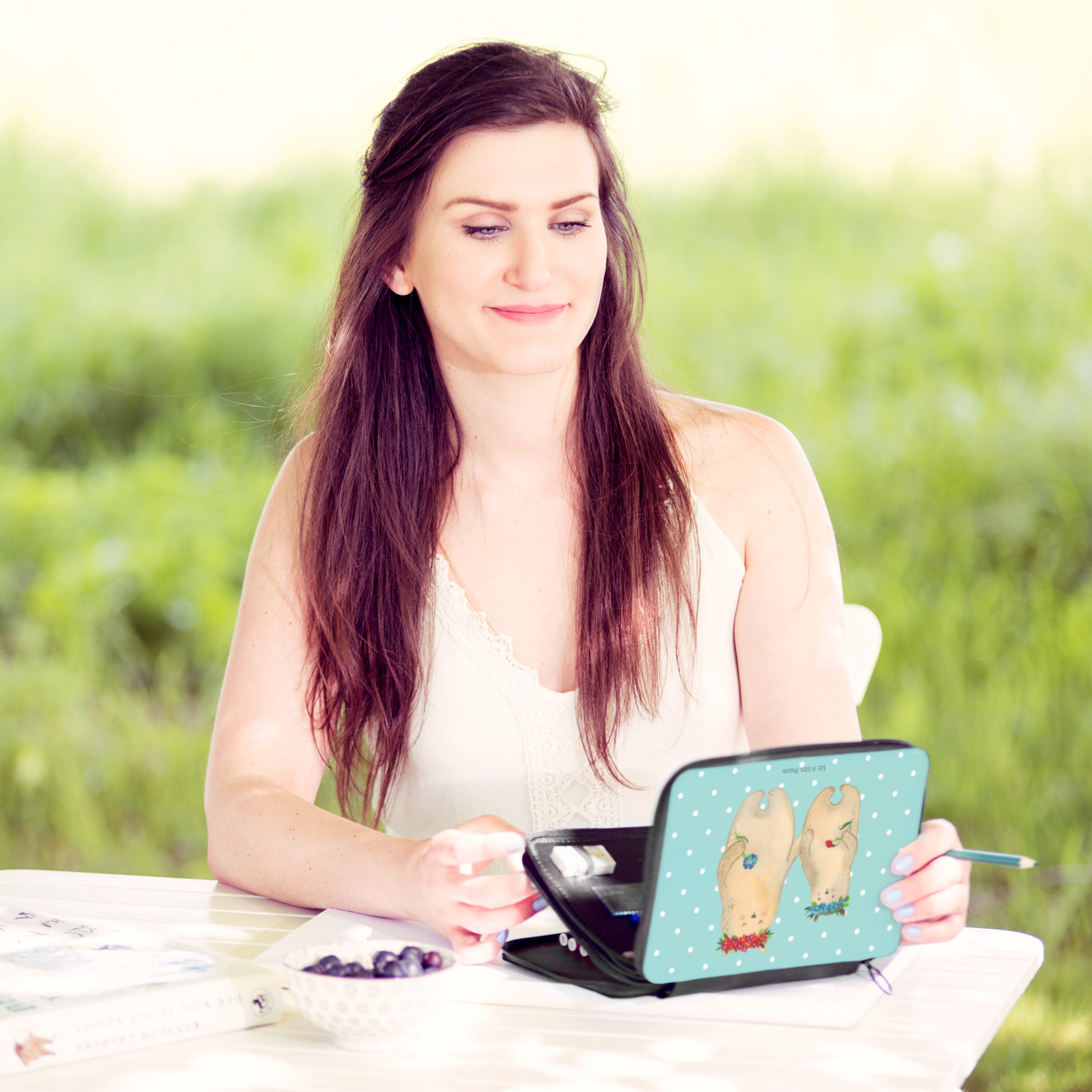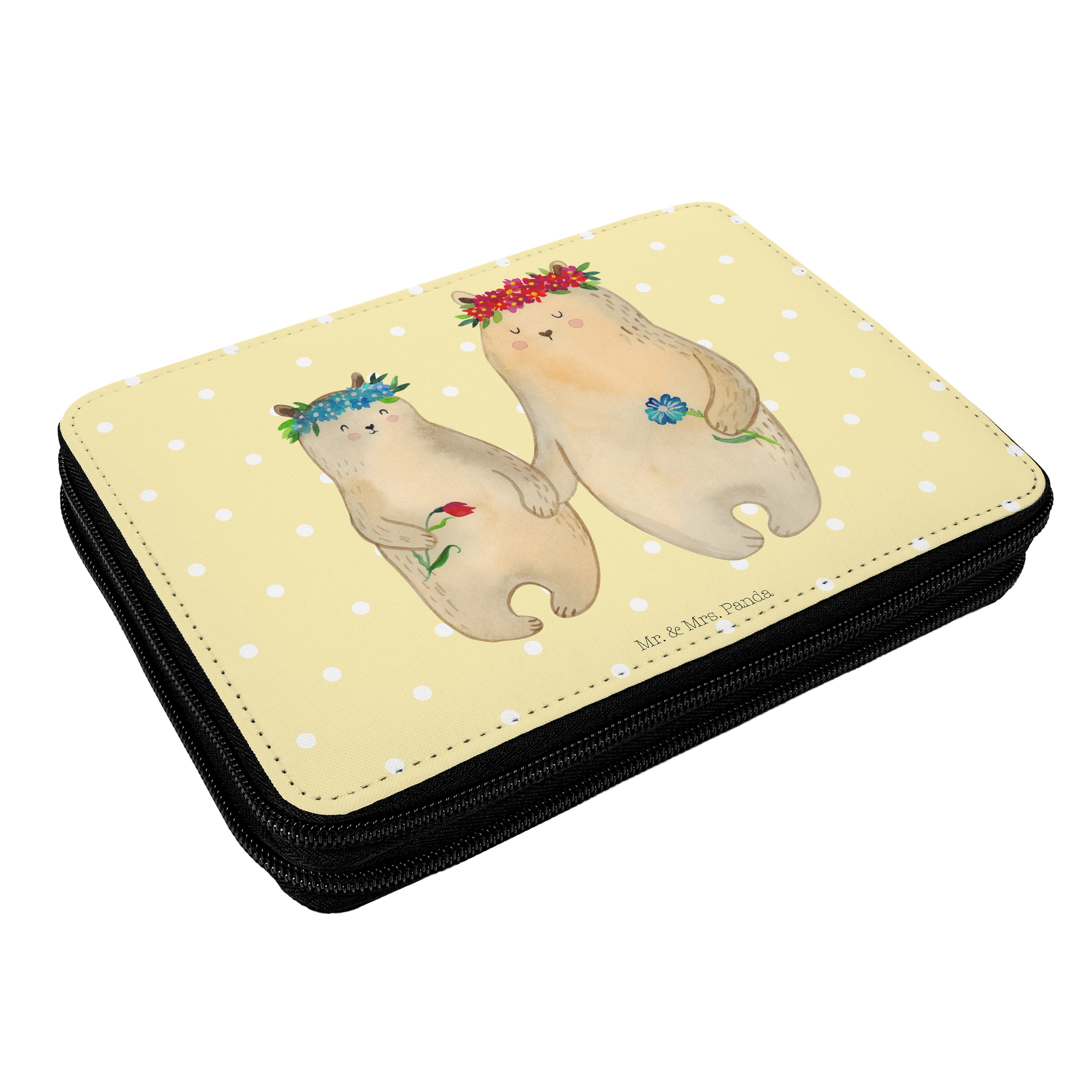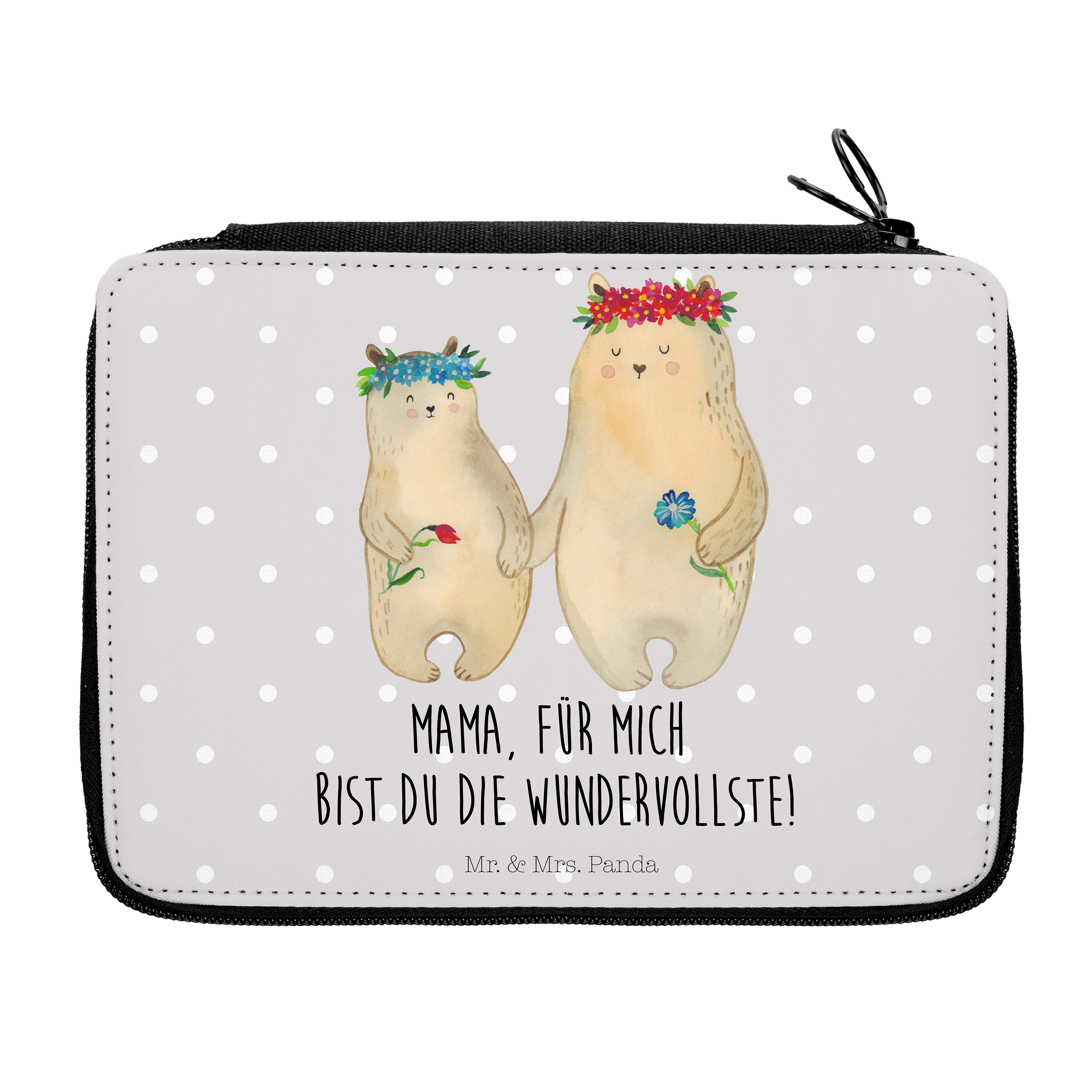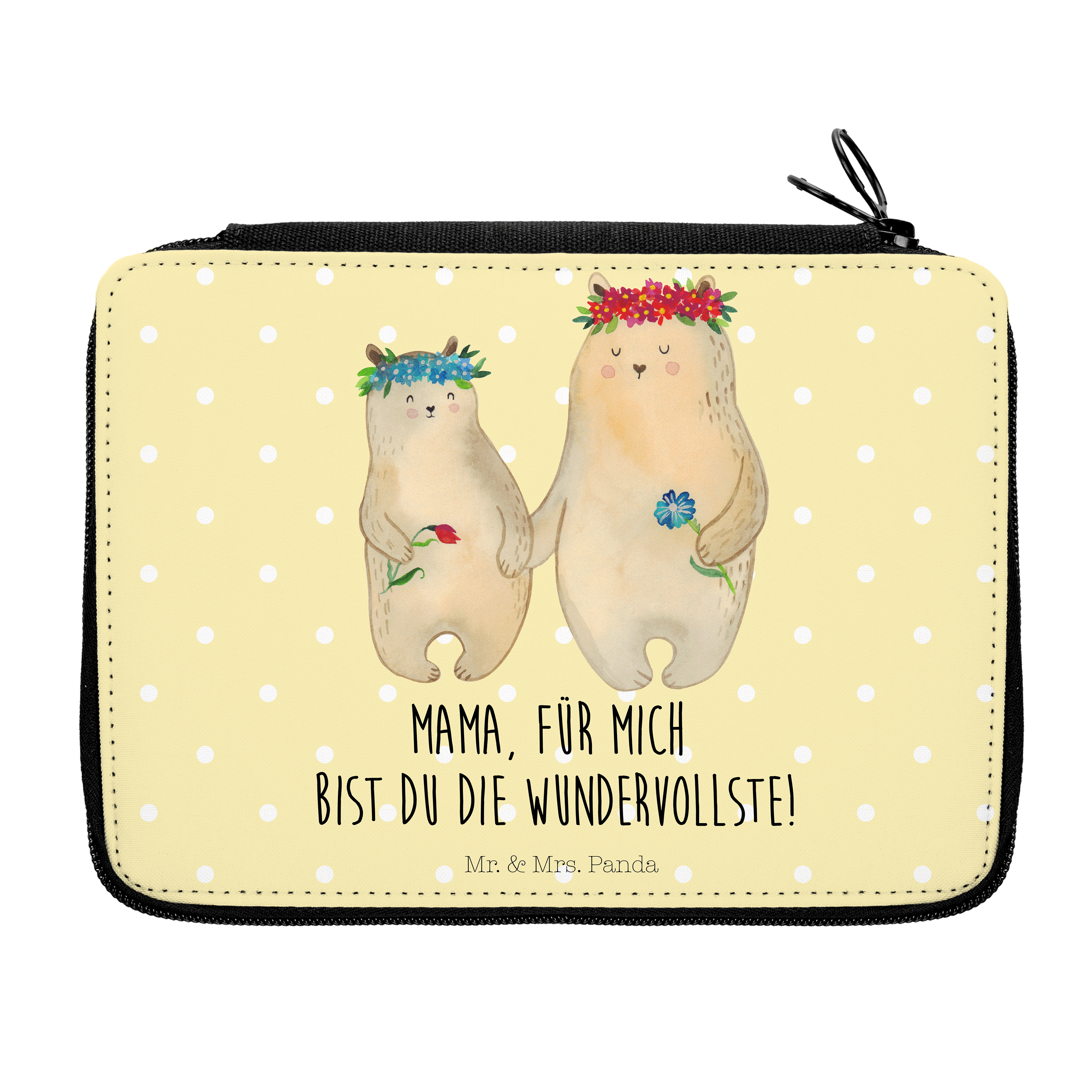 Federmappe Bären mit Blumenkranz - mit Spruch - Blau Pastell