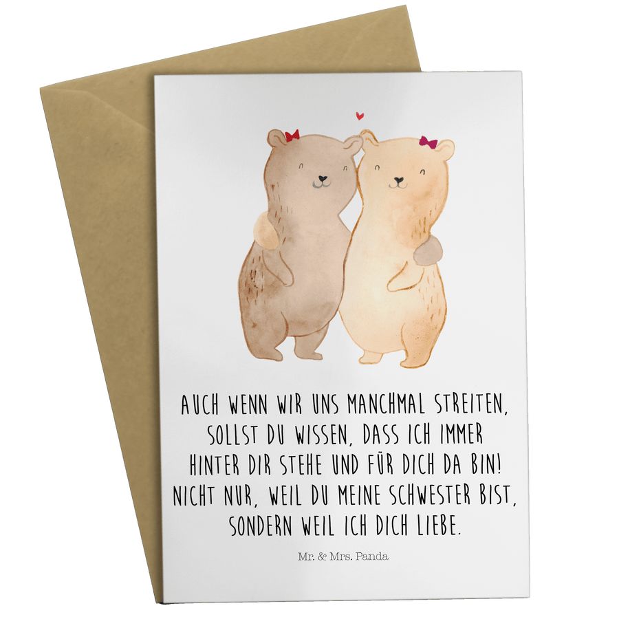 Grußkarte Bären Schwestern - mit Spruch - Weiß