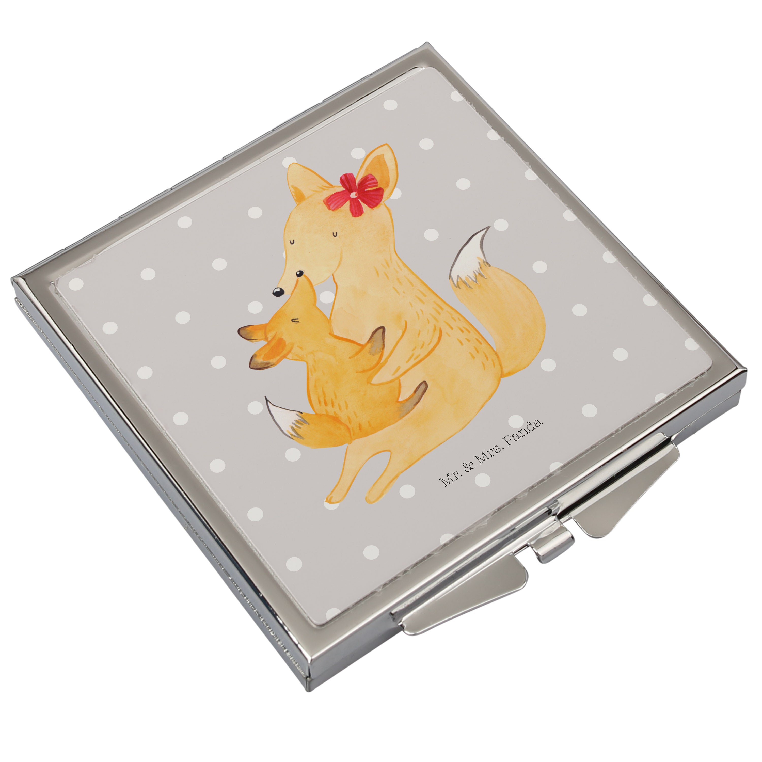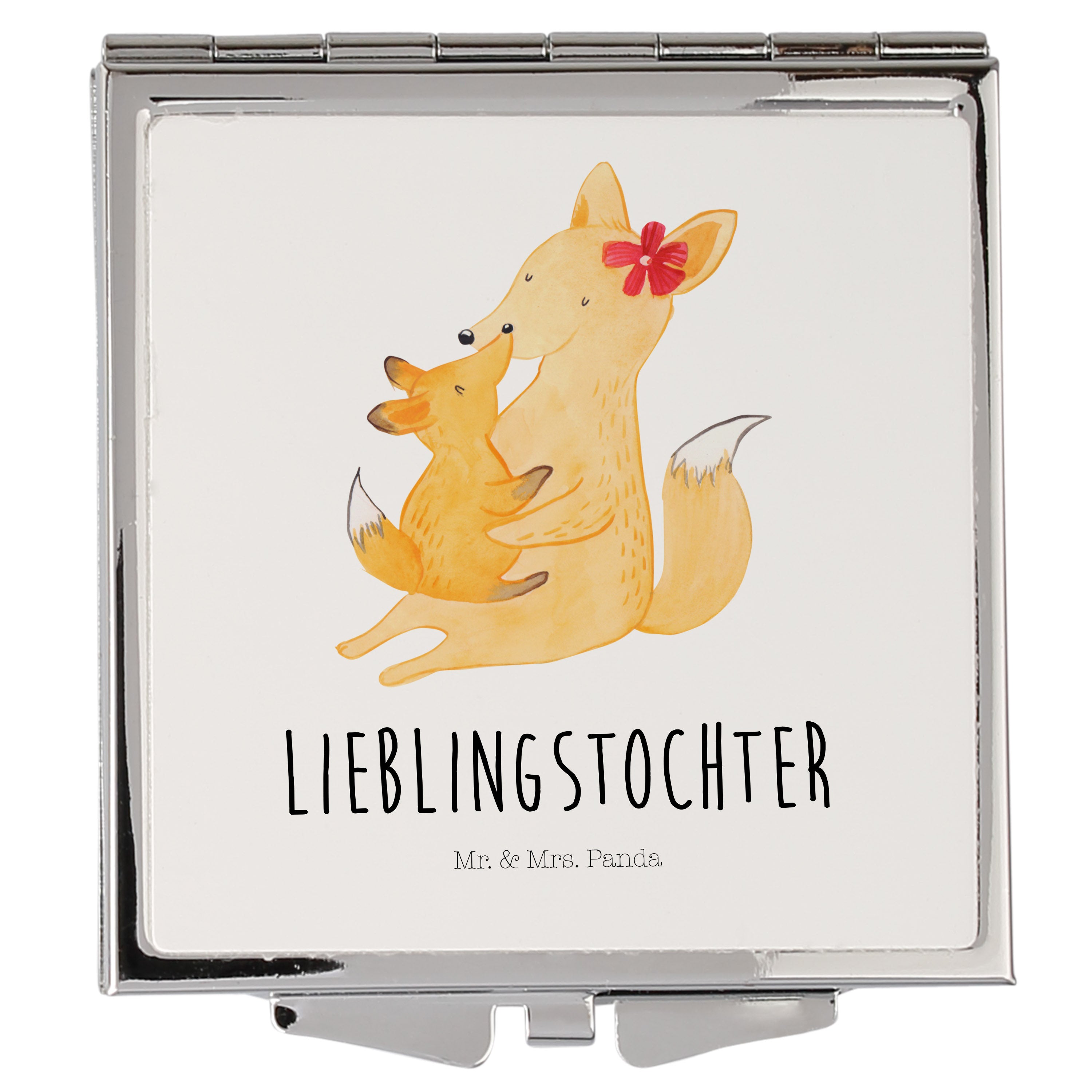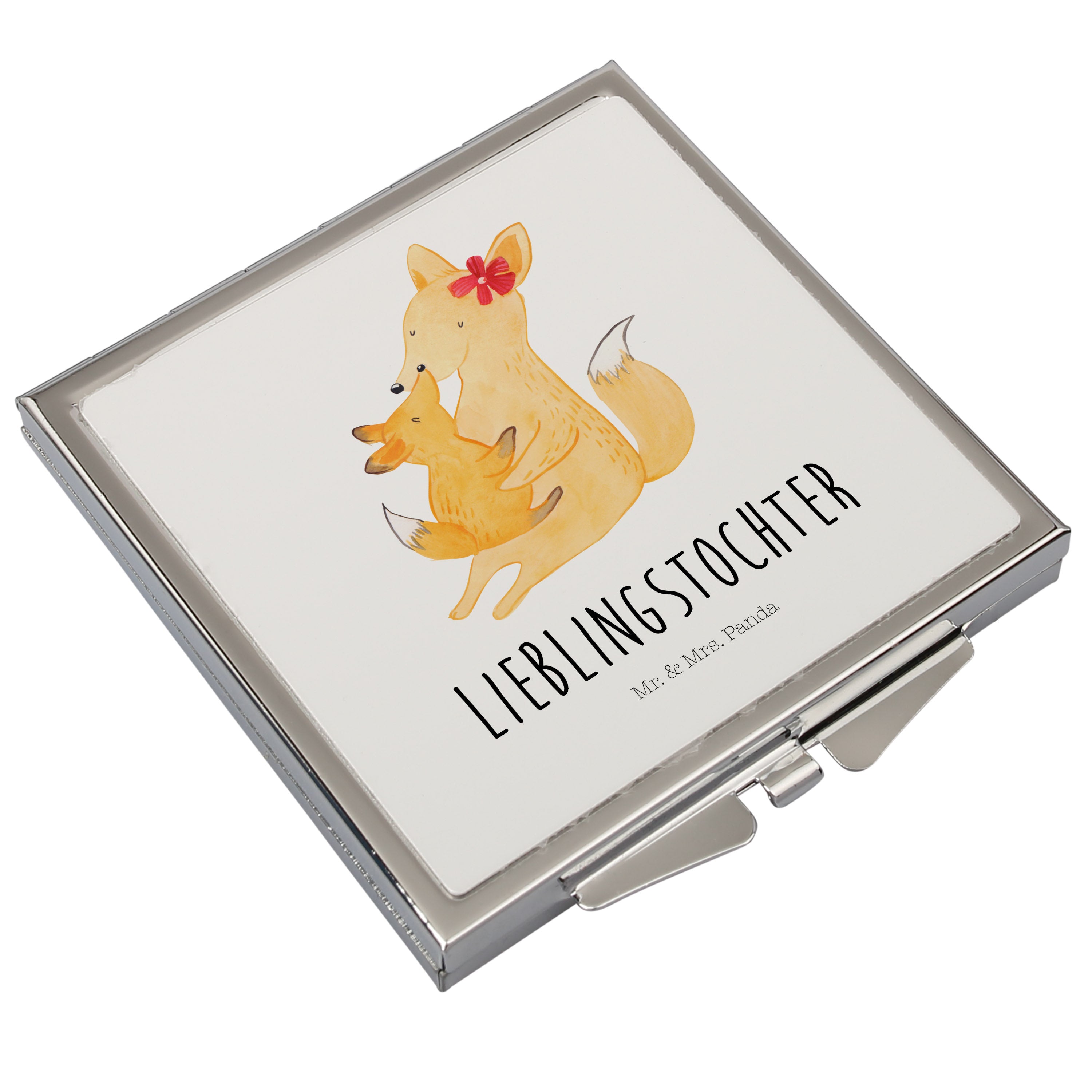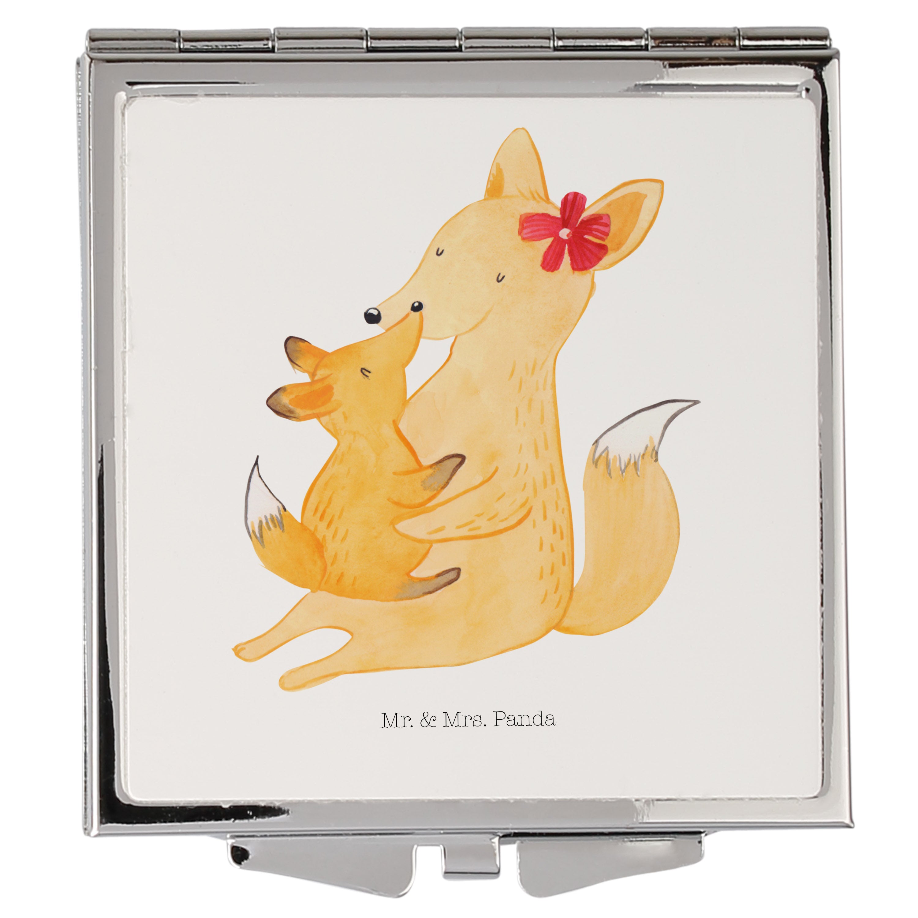 Handtaschenspiegel quadratisch Fuchs Mama & Kind - mit Spruch - Weiß