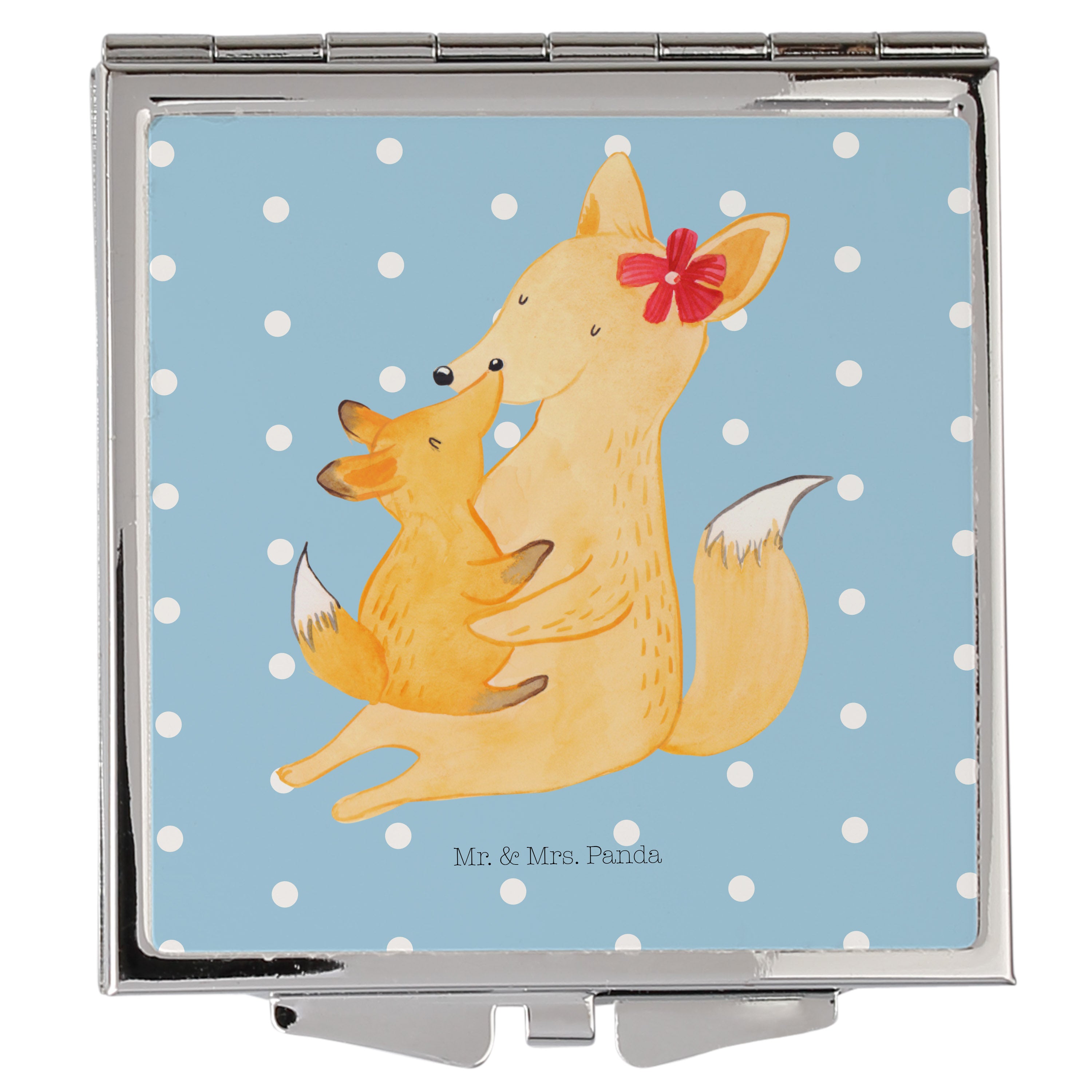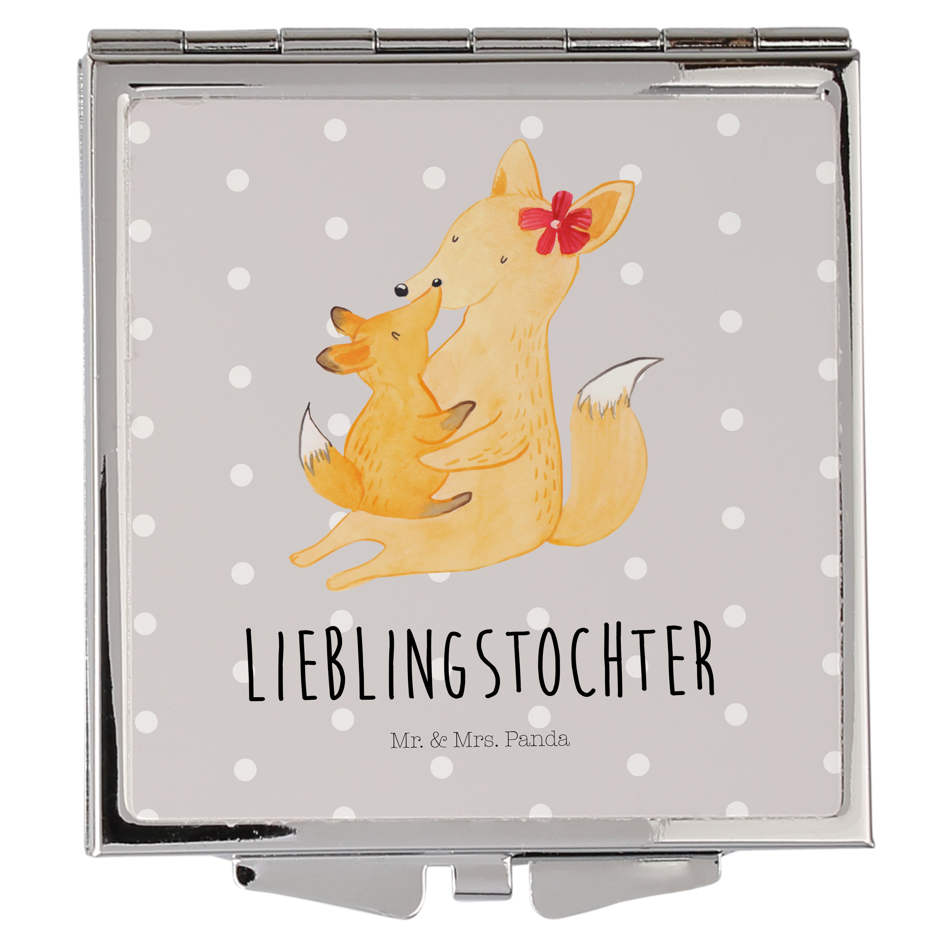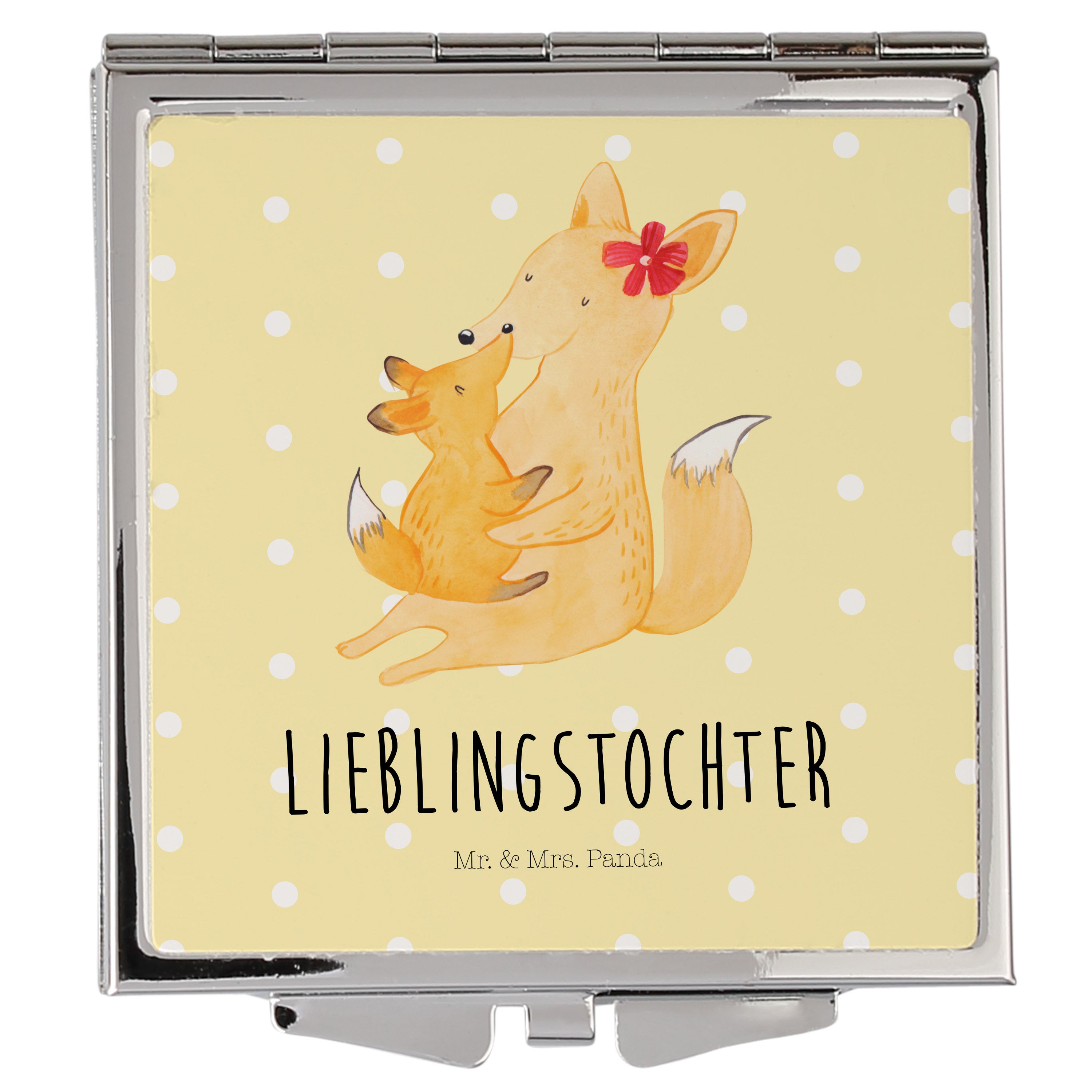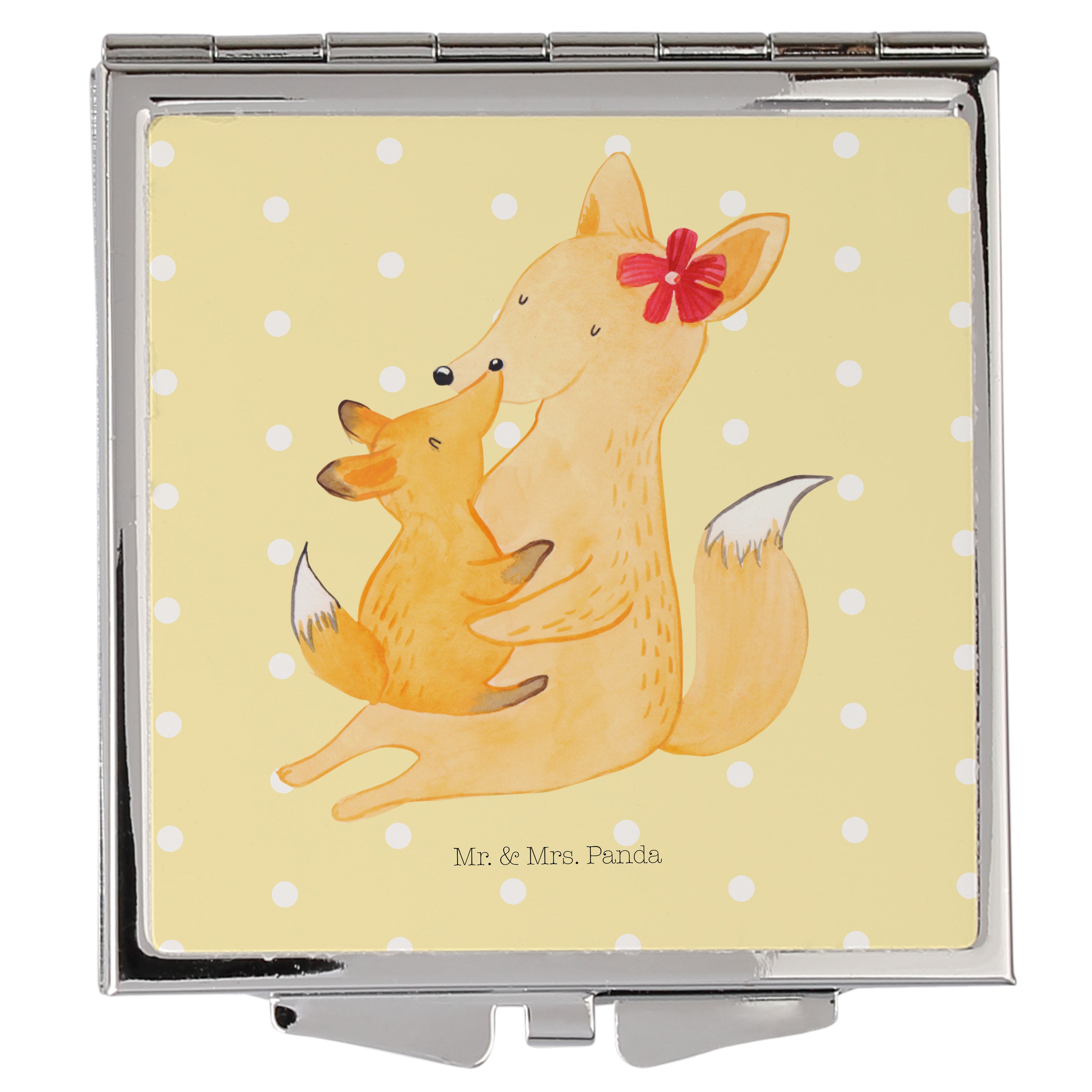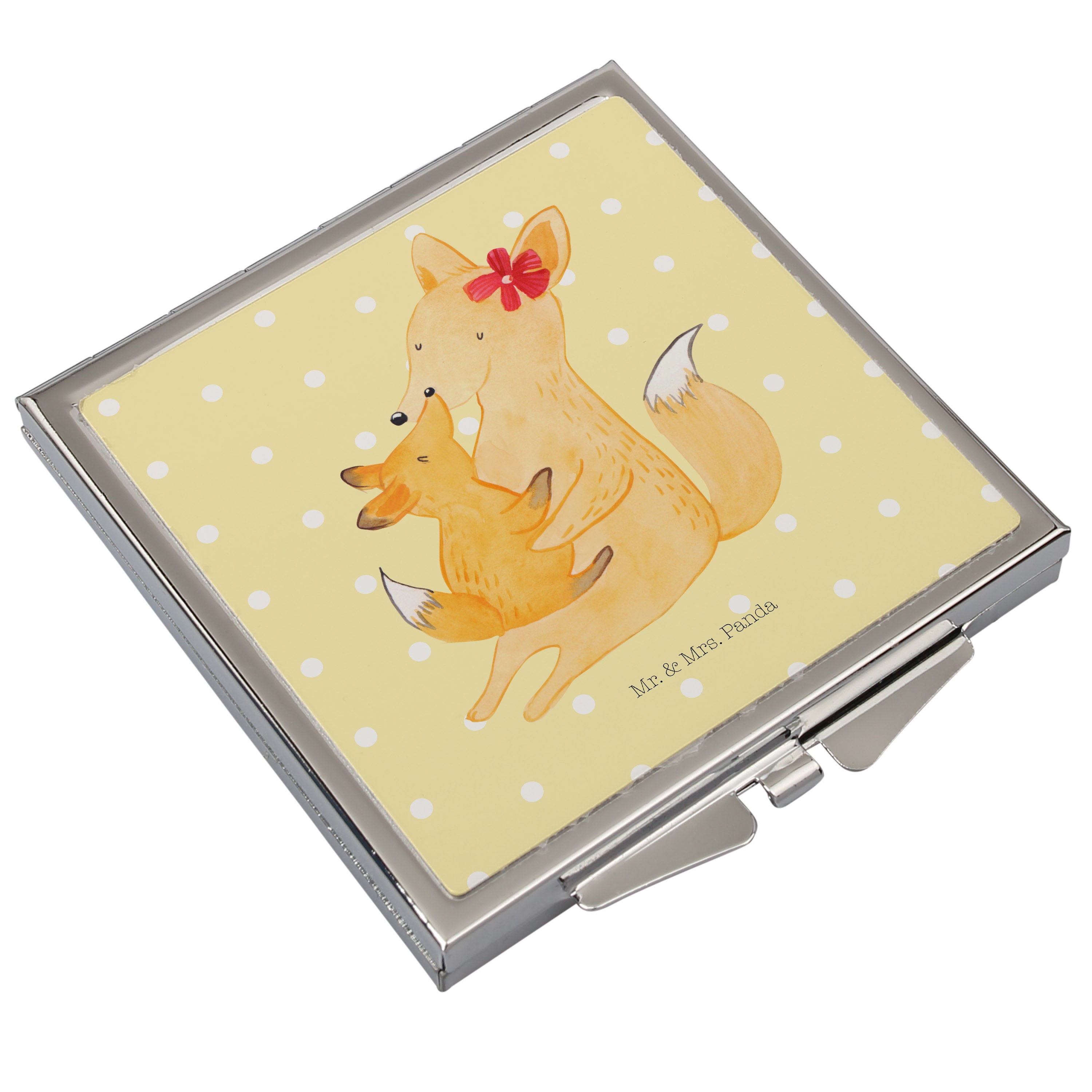 Handtaschenspiegel quadratisch Fuchs Mama & Kind - mit Spruch - Weiß