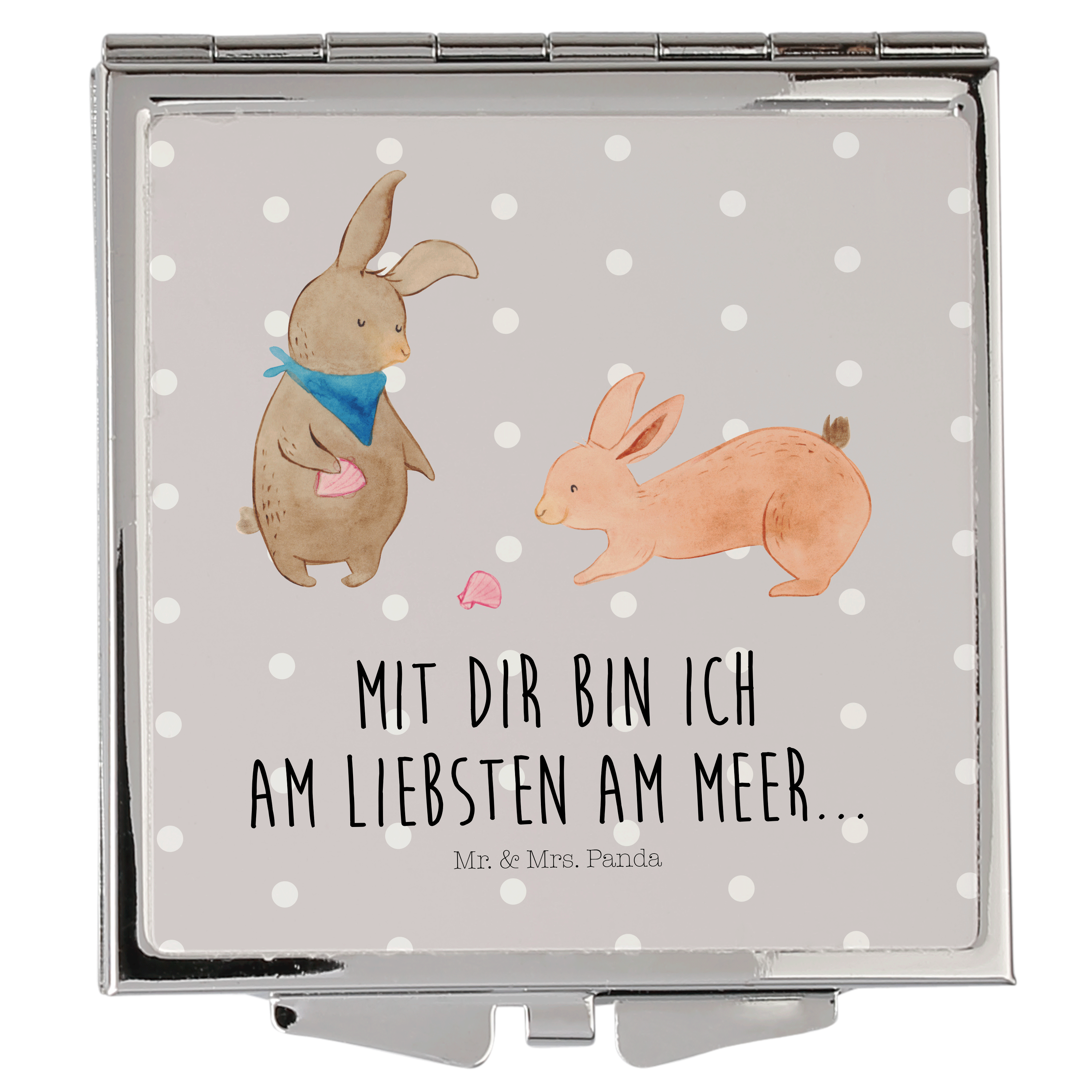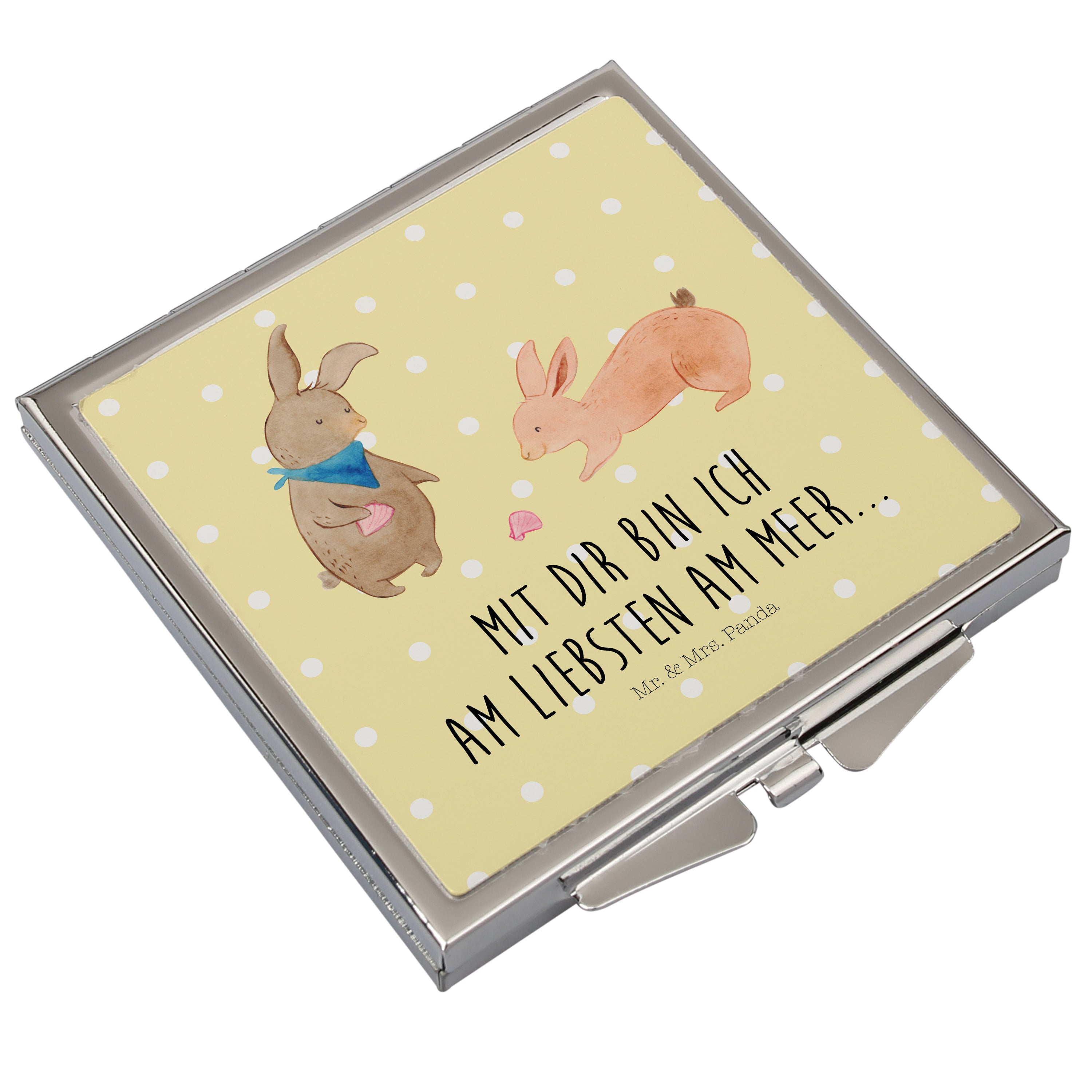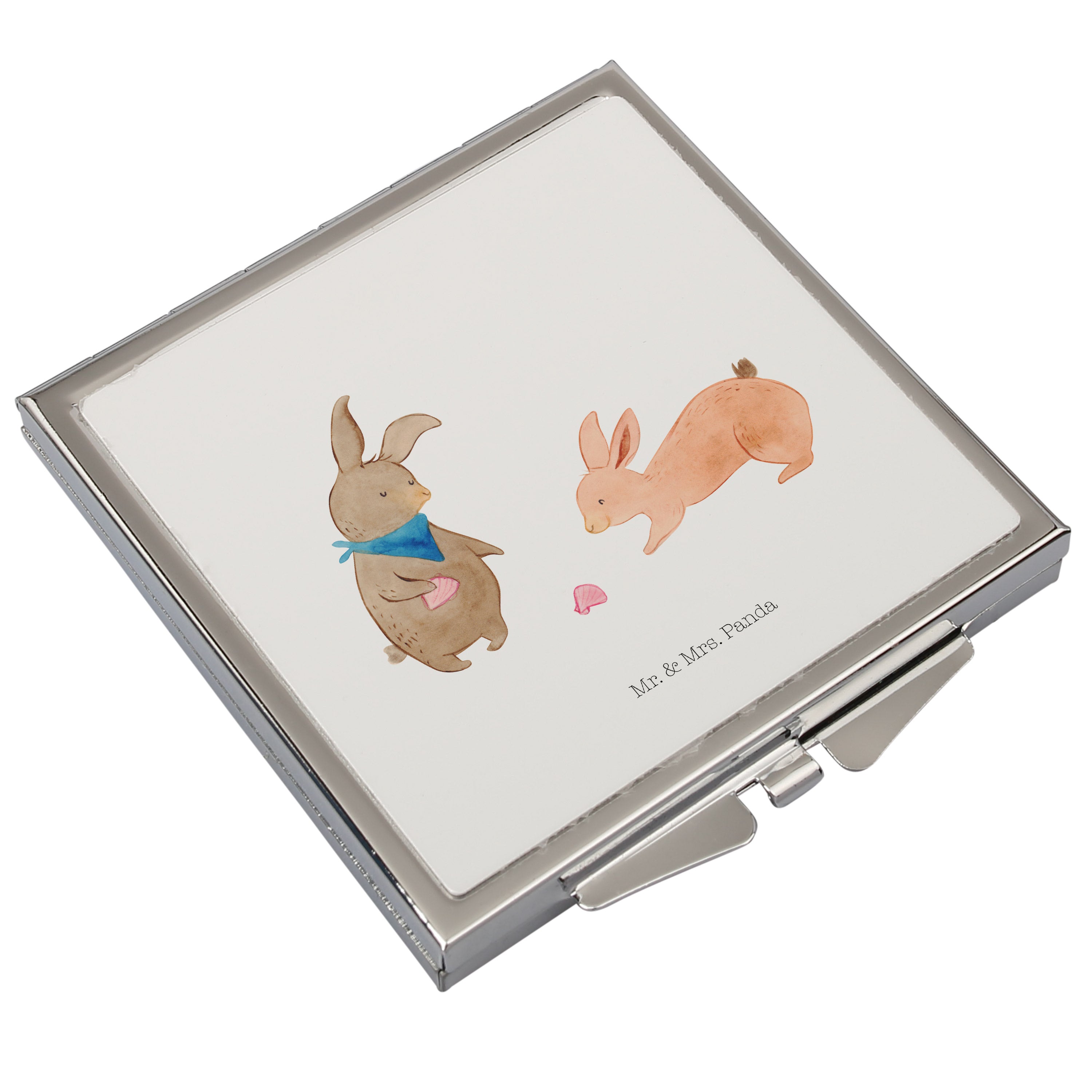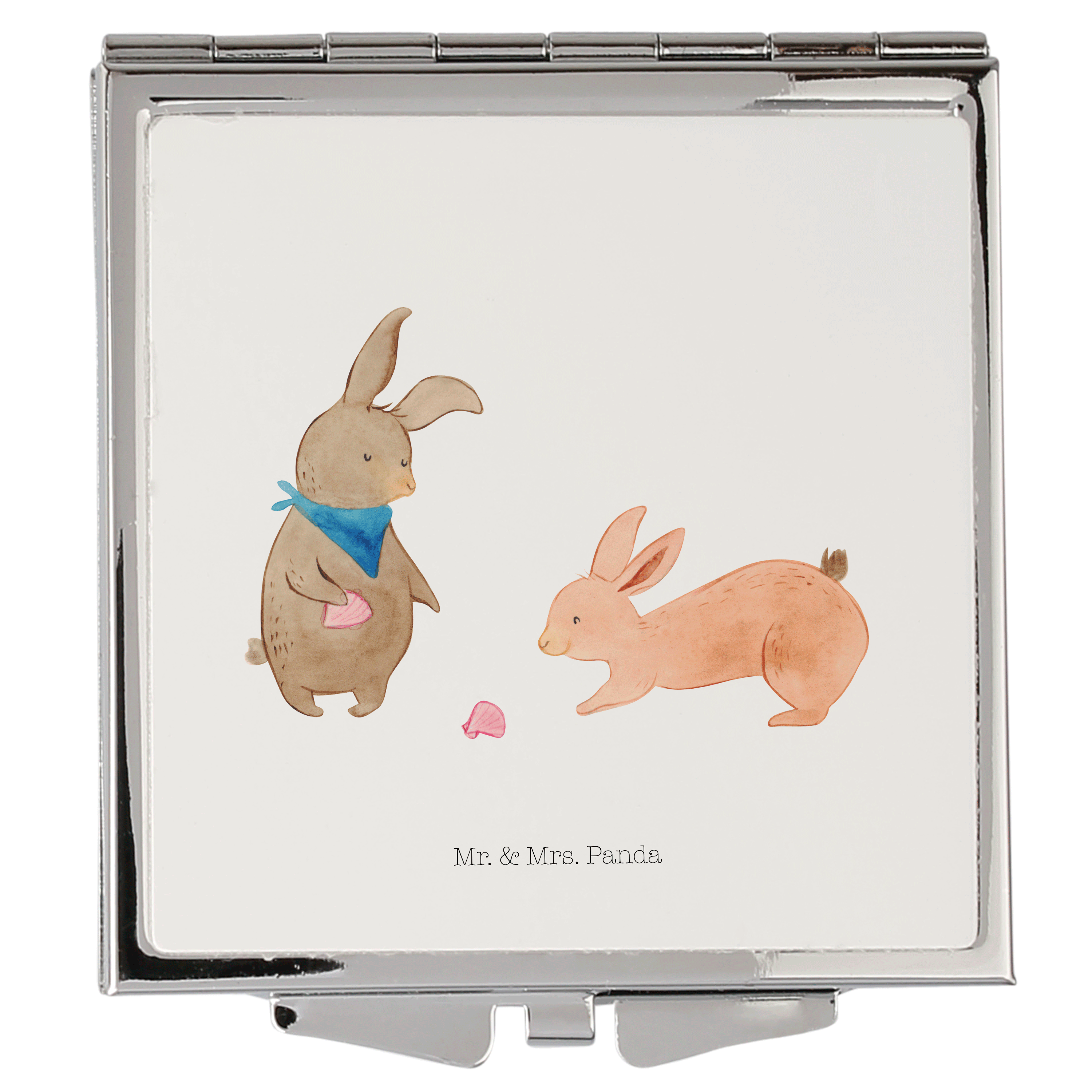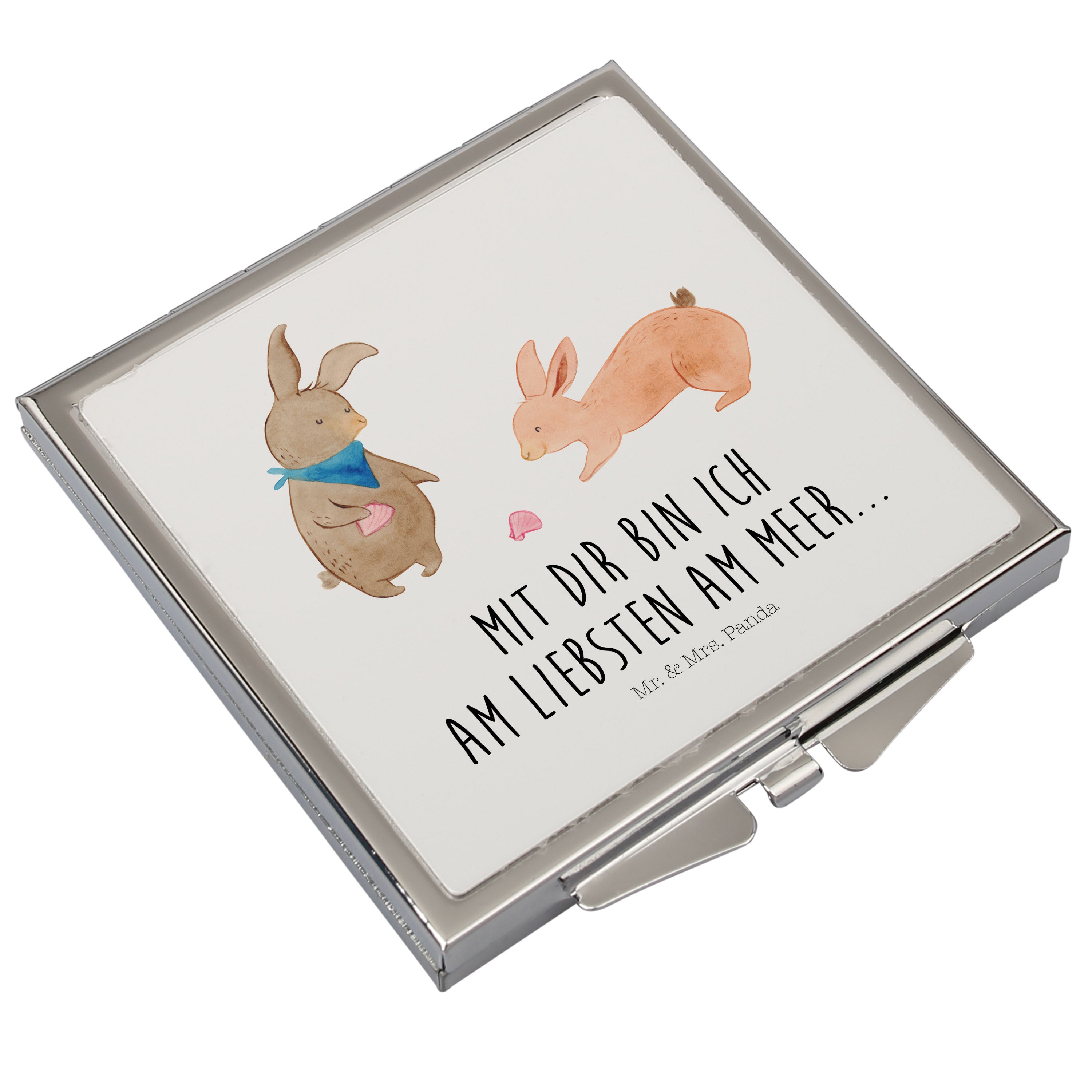 Handtaschenspiegel quadratisch Hasen Muschel - mit Spruch - Weiß