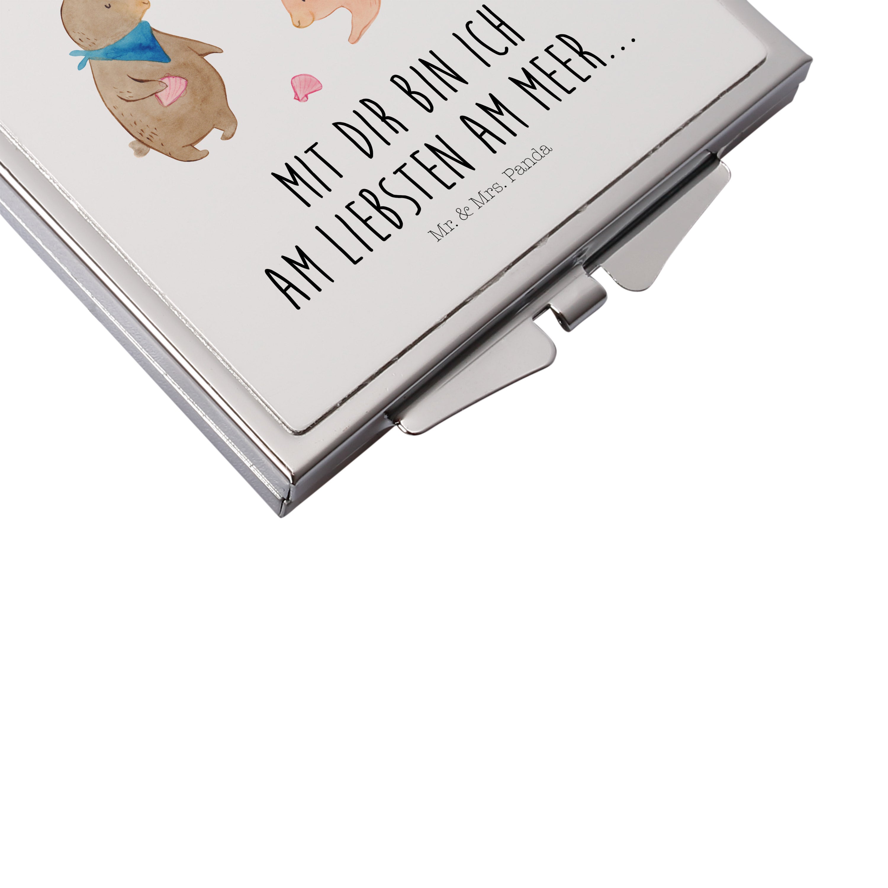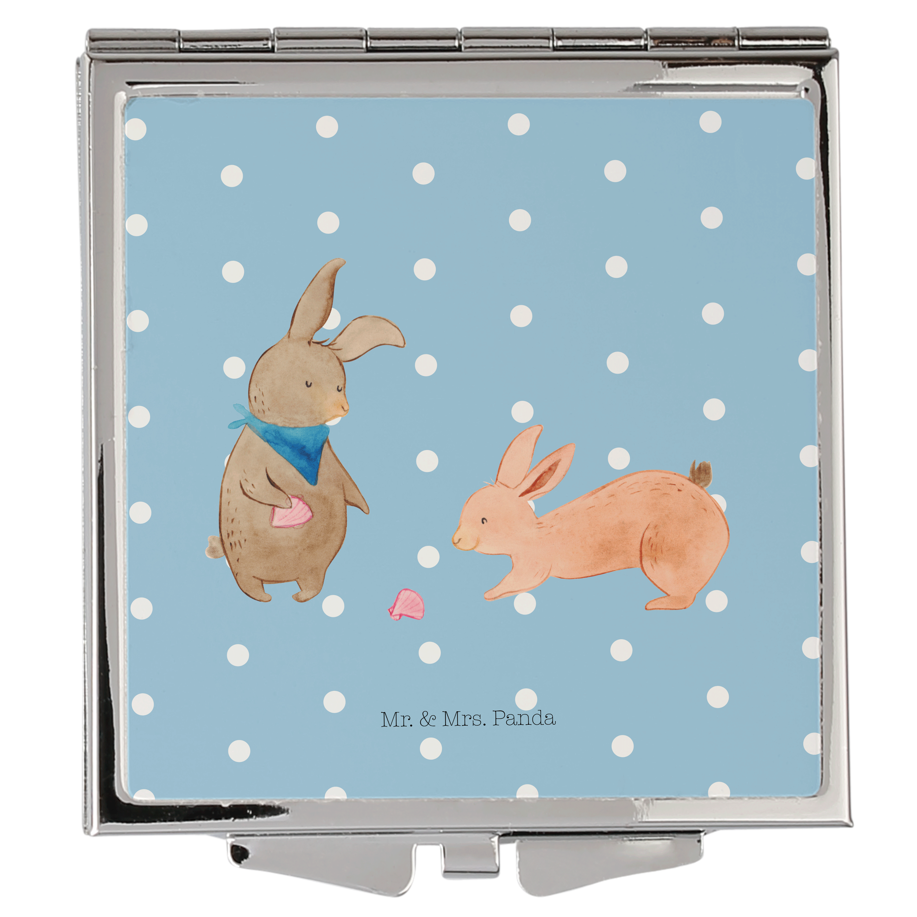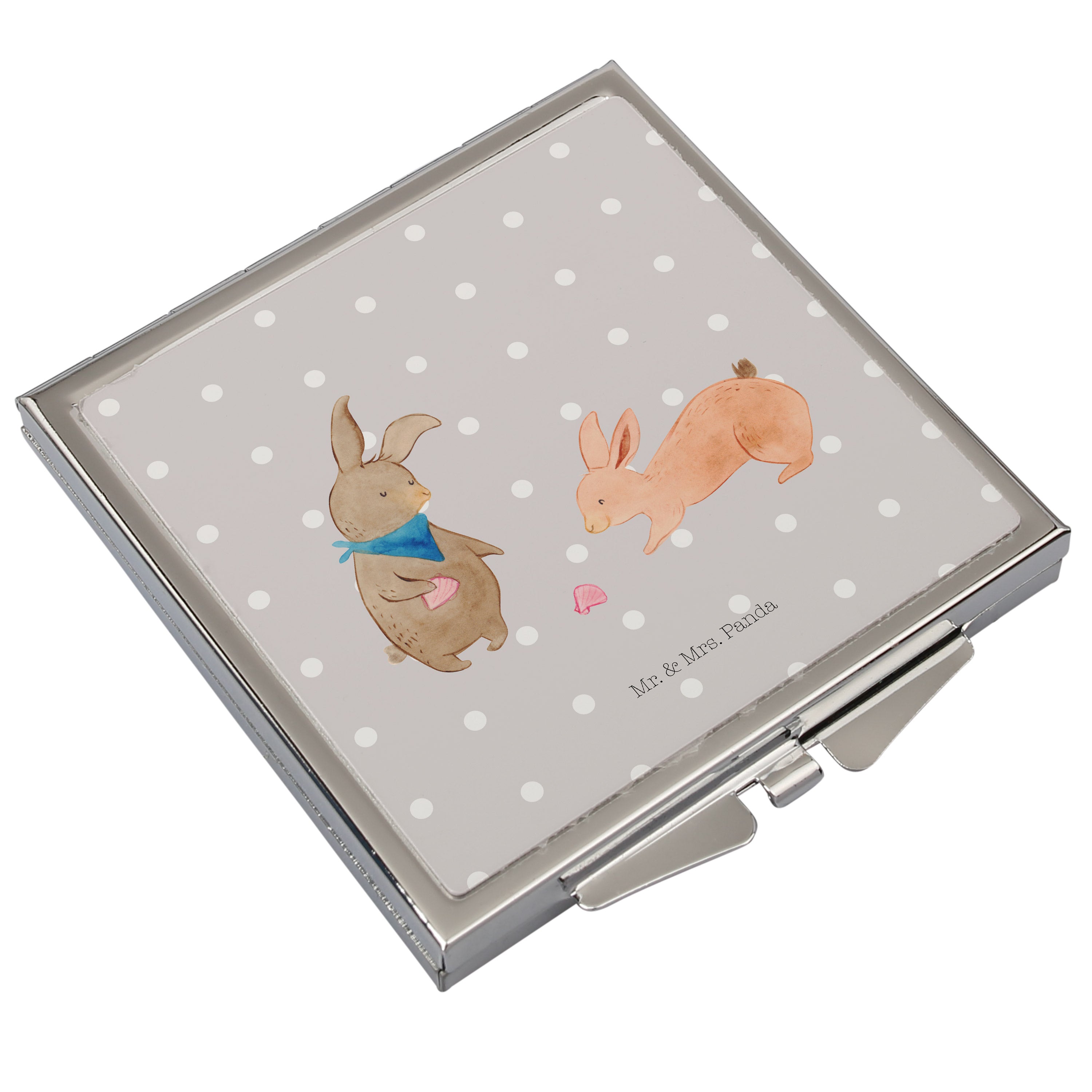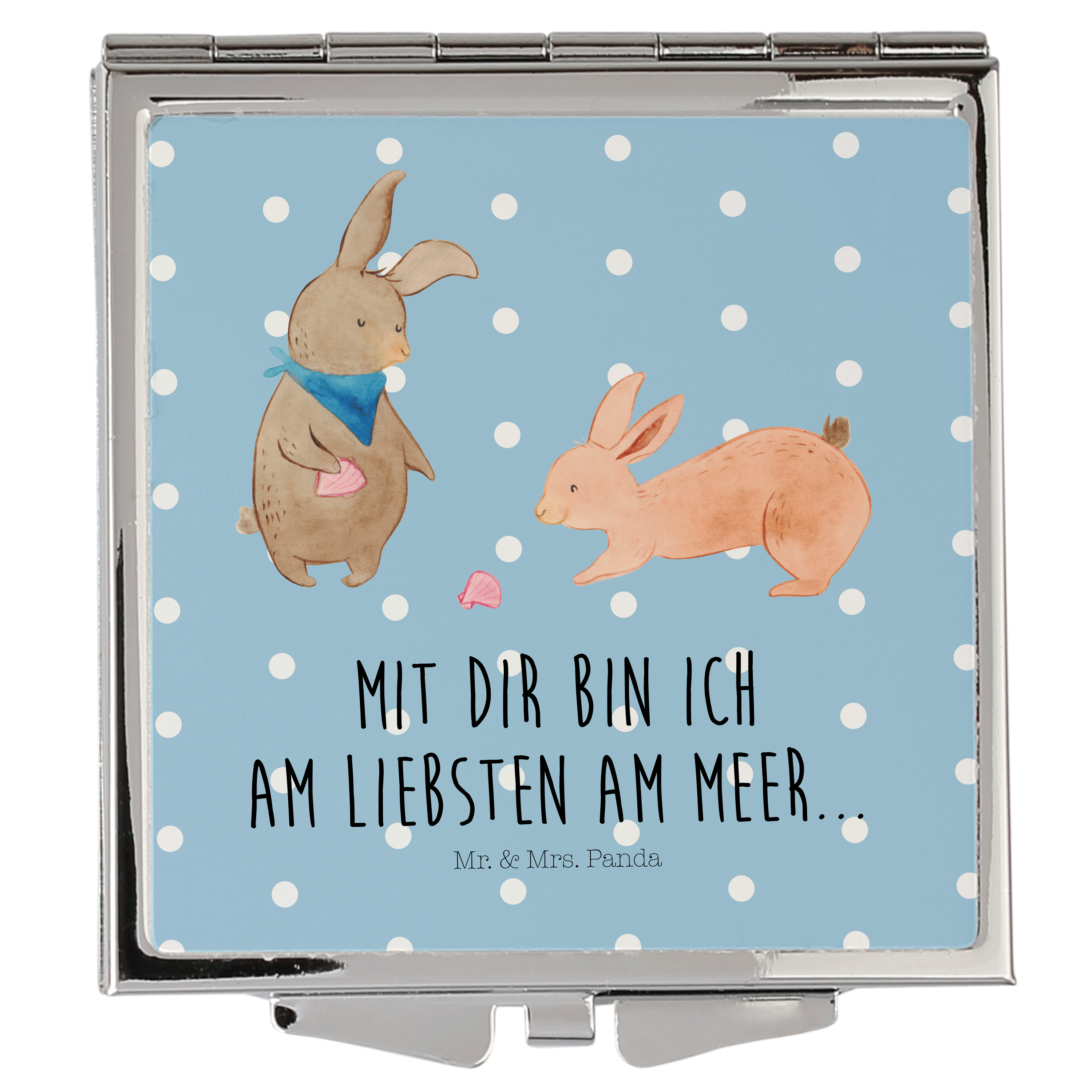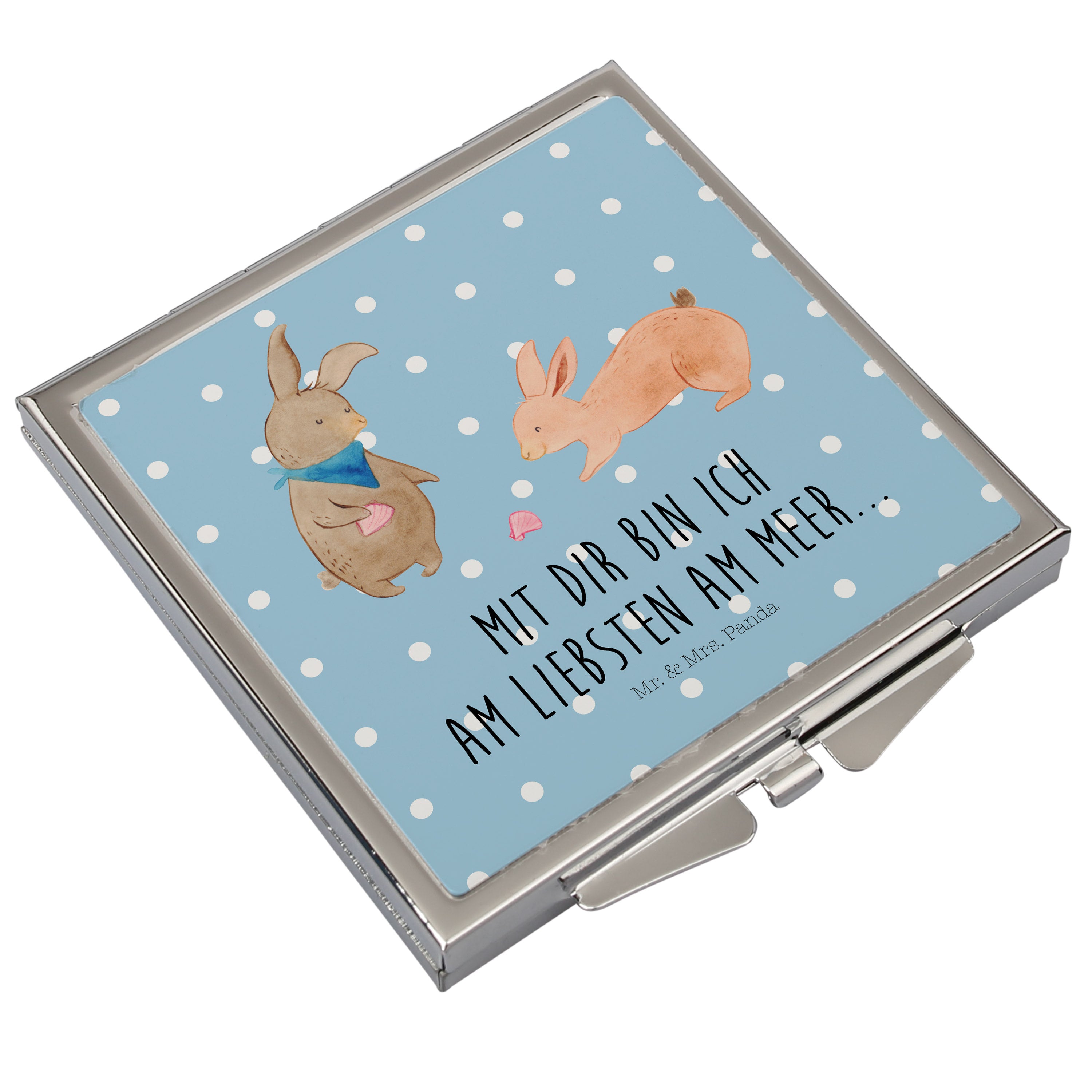 Handtaschenspiegel quadratisch Hasen Muschel - mit Spruch - Weiß