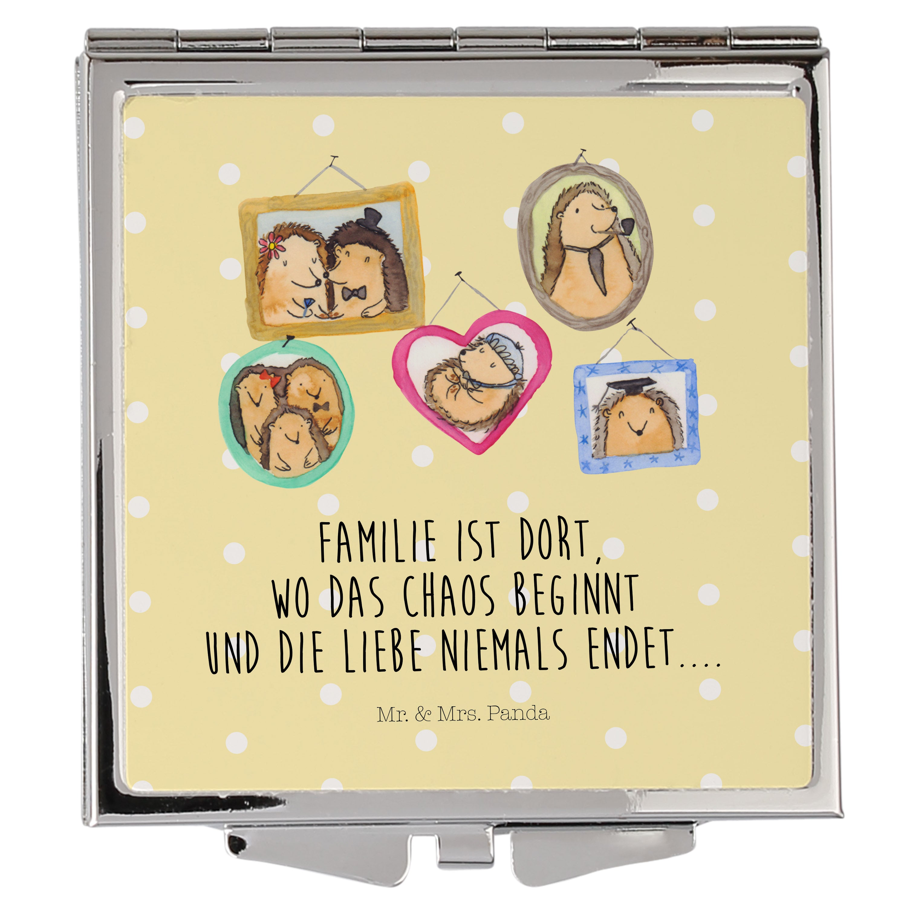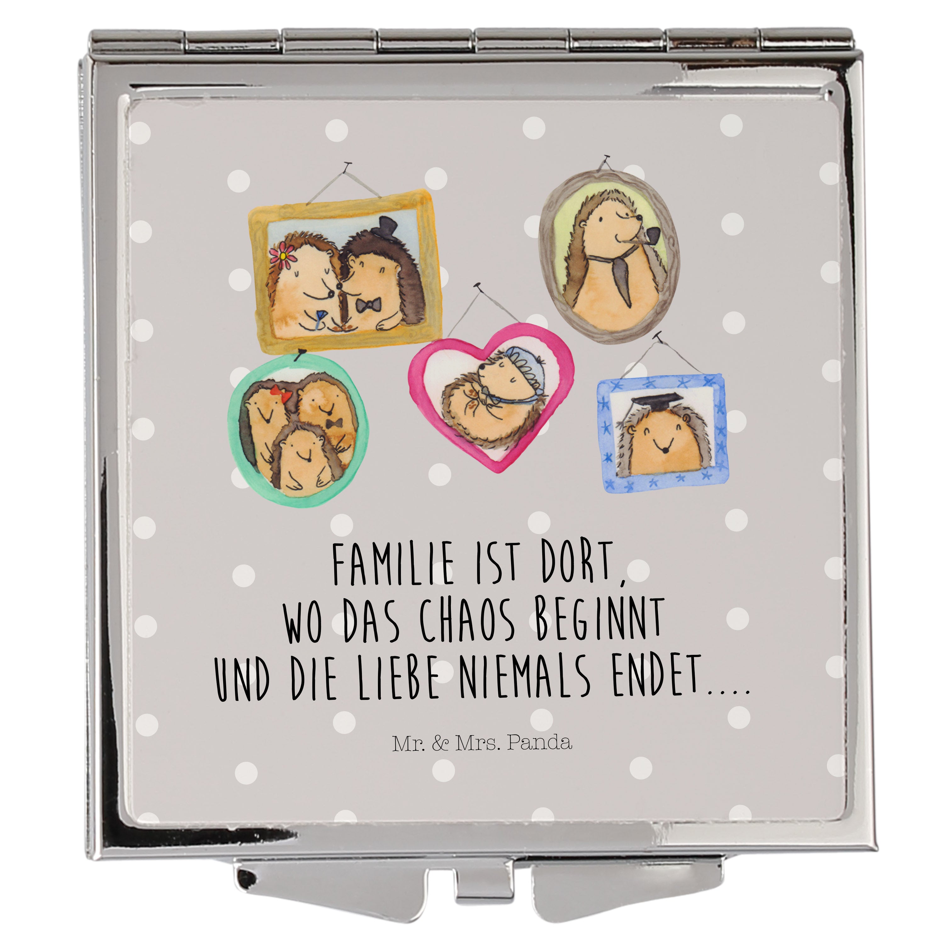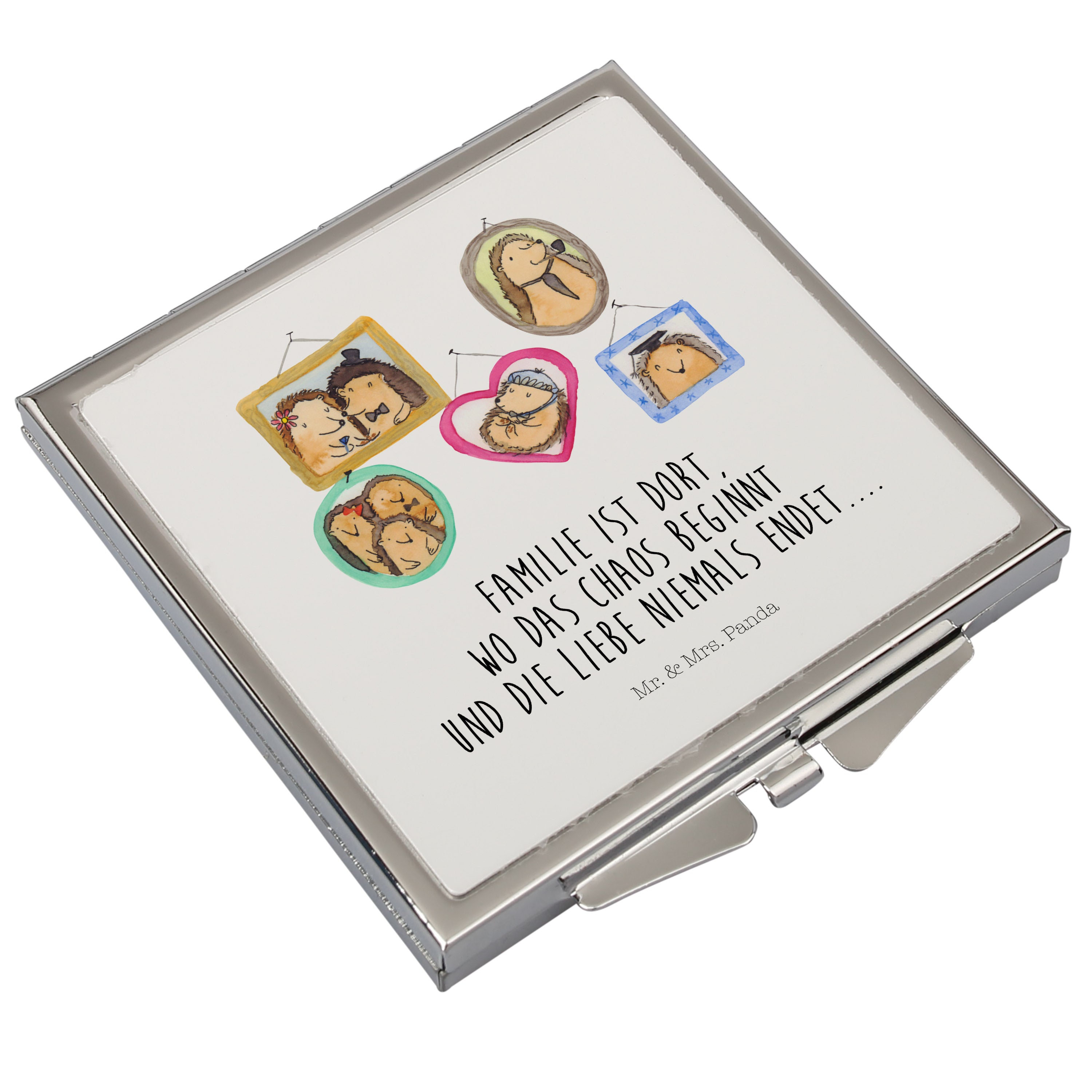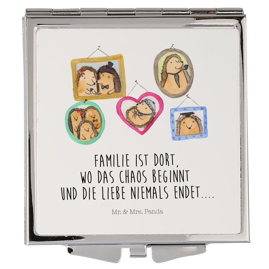 Handtaschenspiegel quadratisch Igel Familie - mit Spruch - Weiß