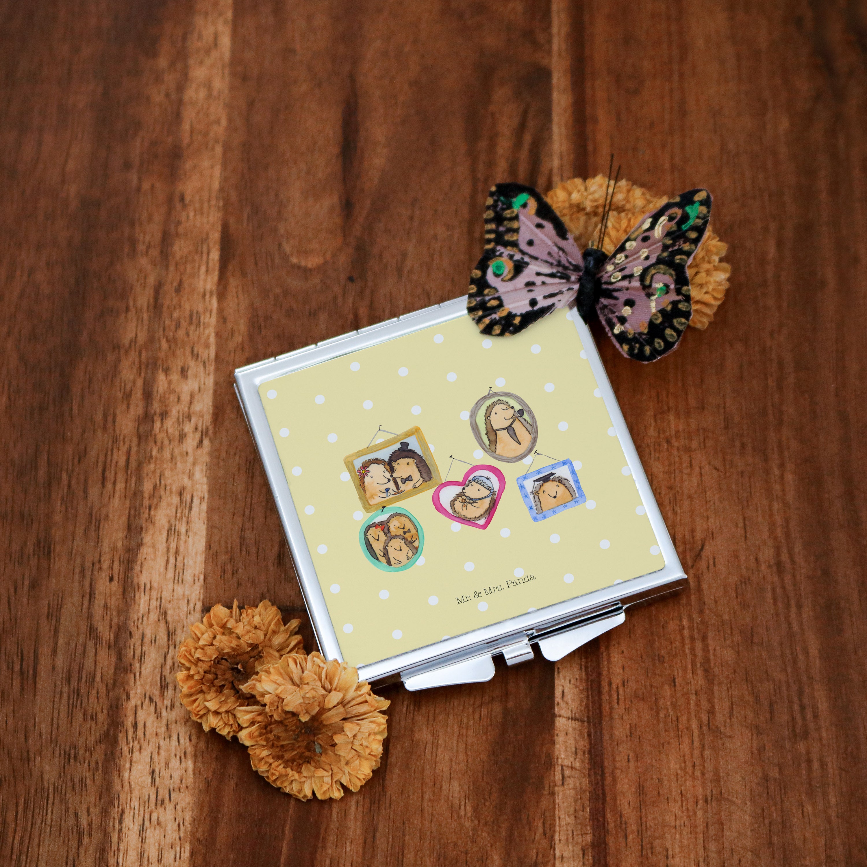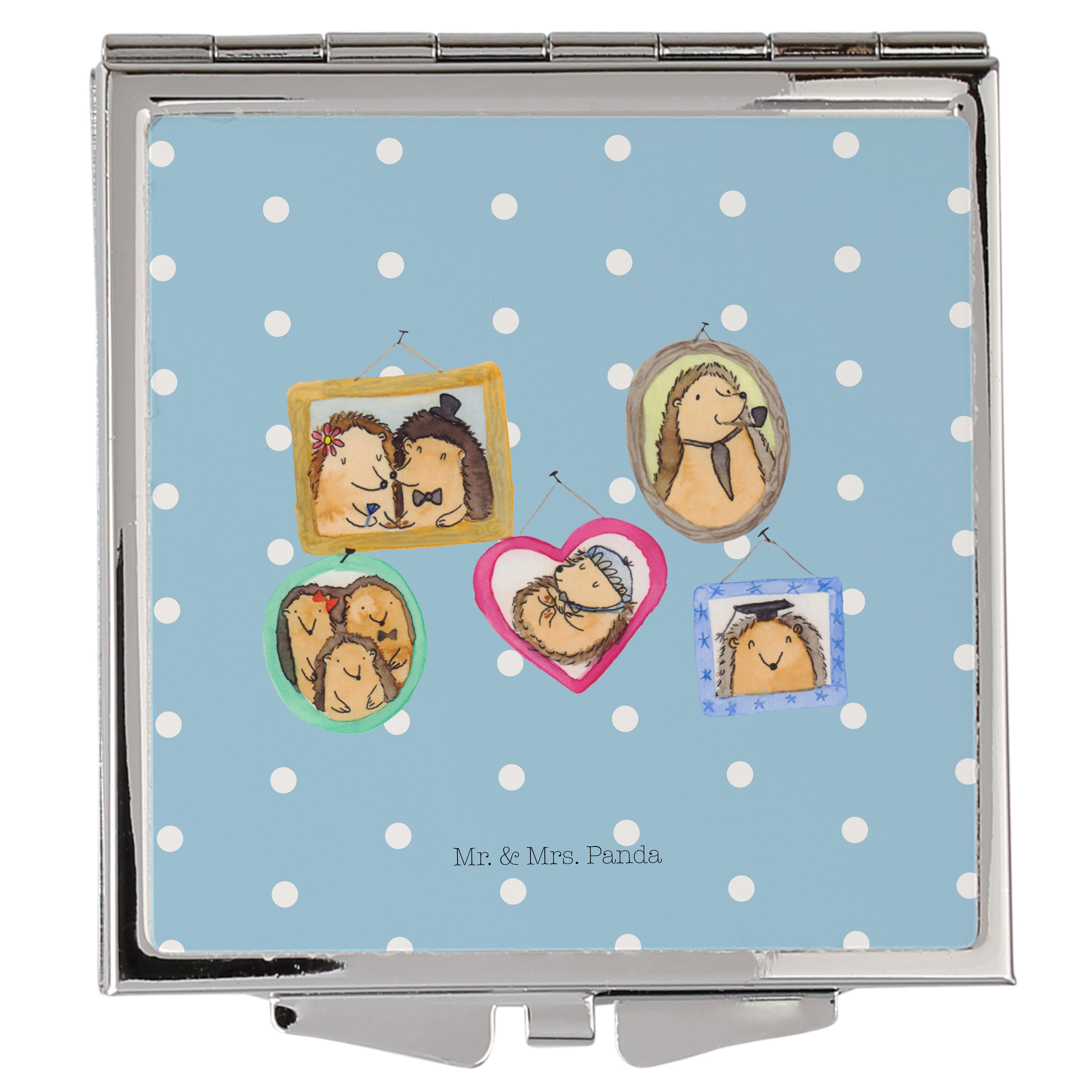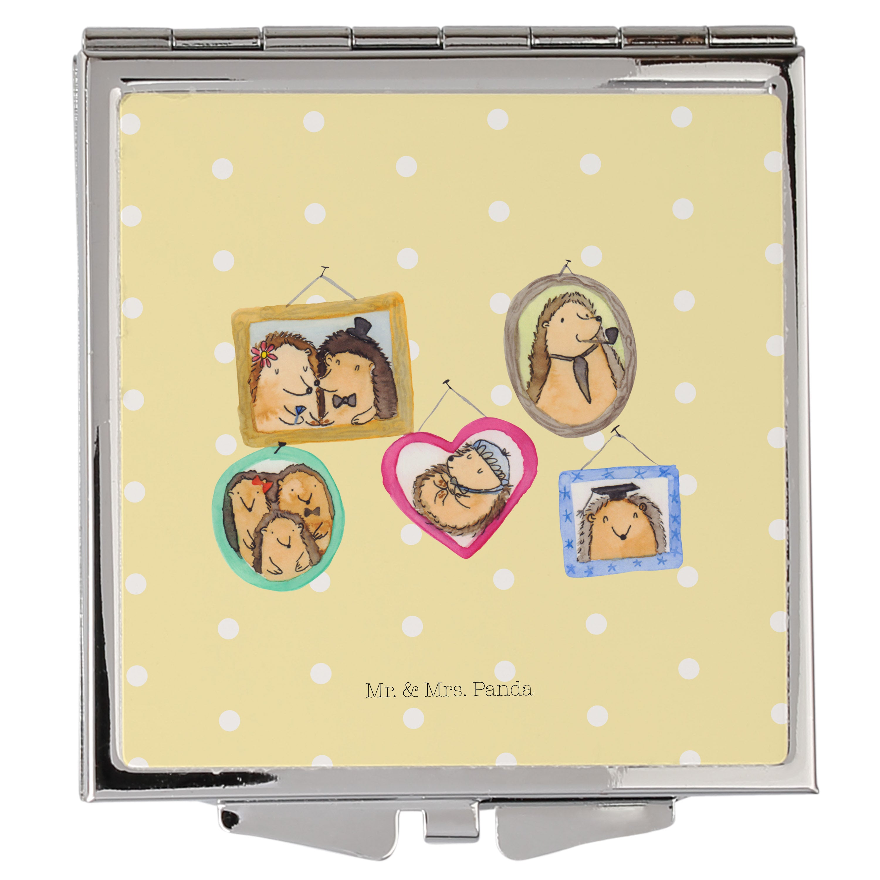 Handtaschenspiegel quadratisch Igel Familie - mit Spruch - Weiß