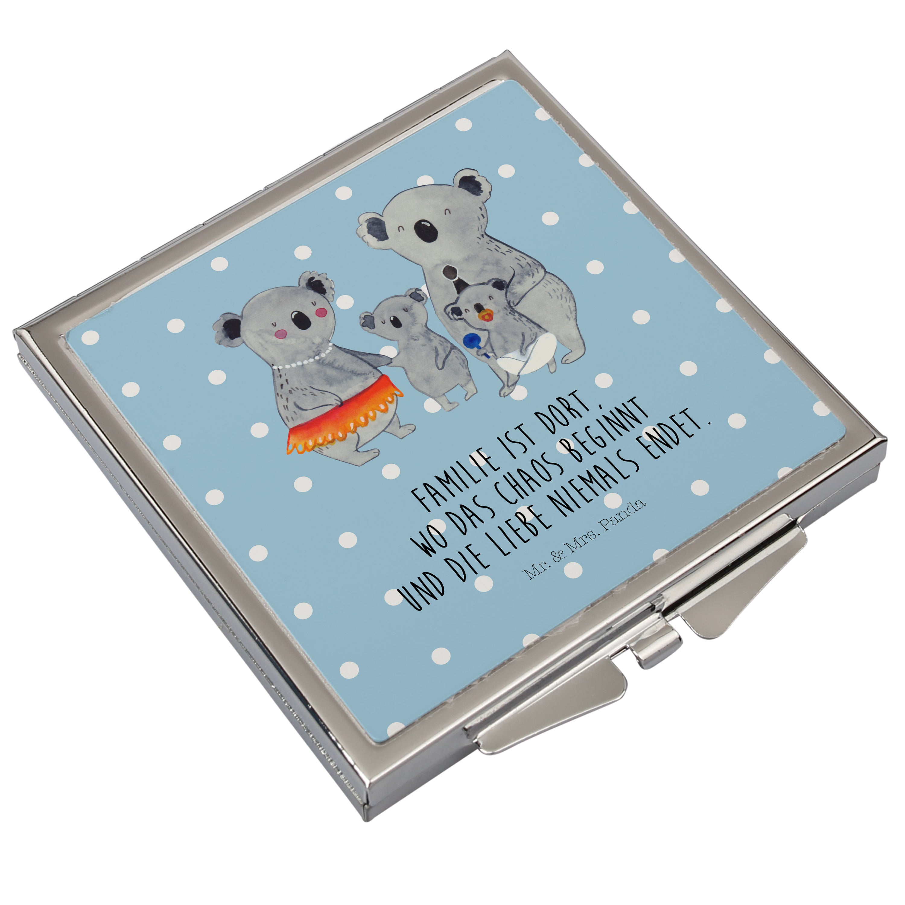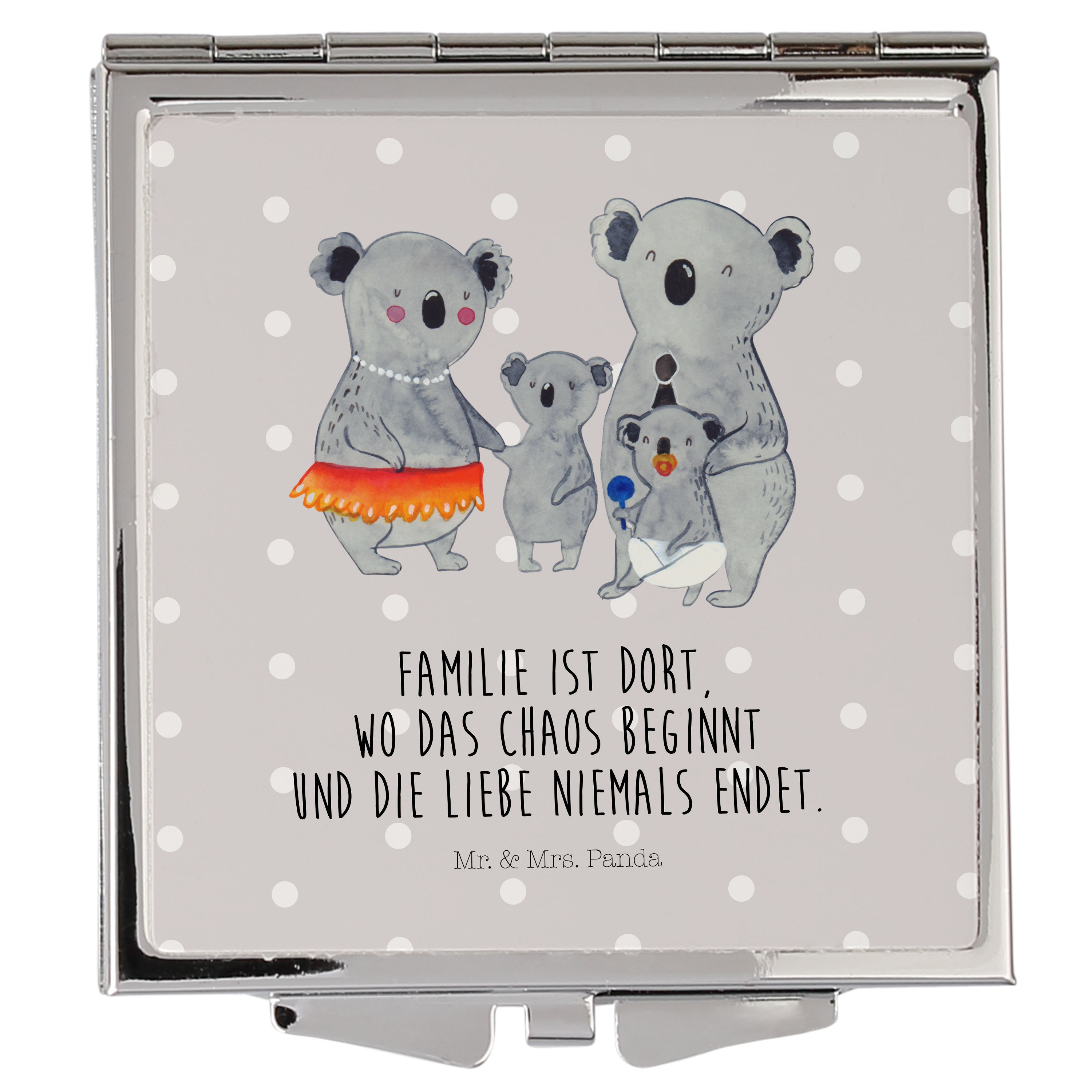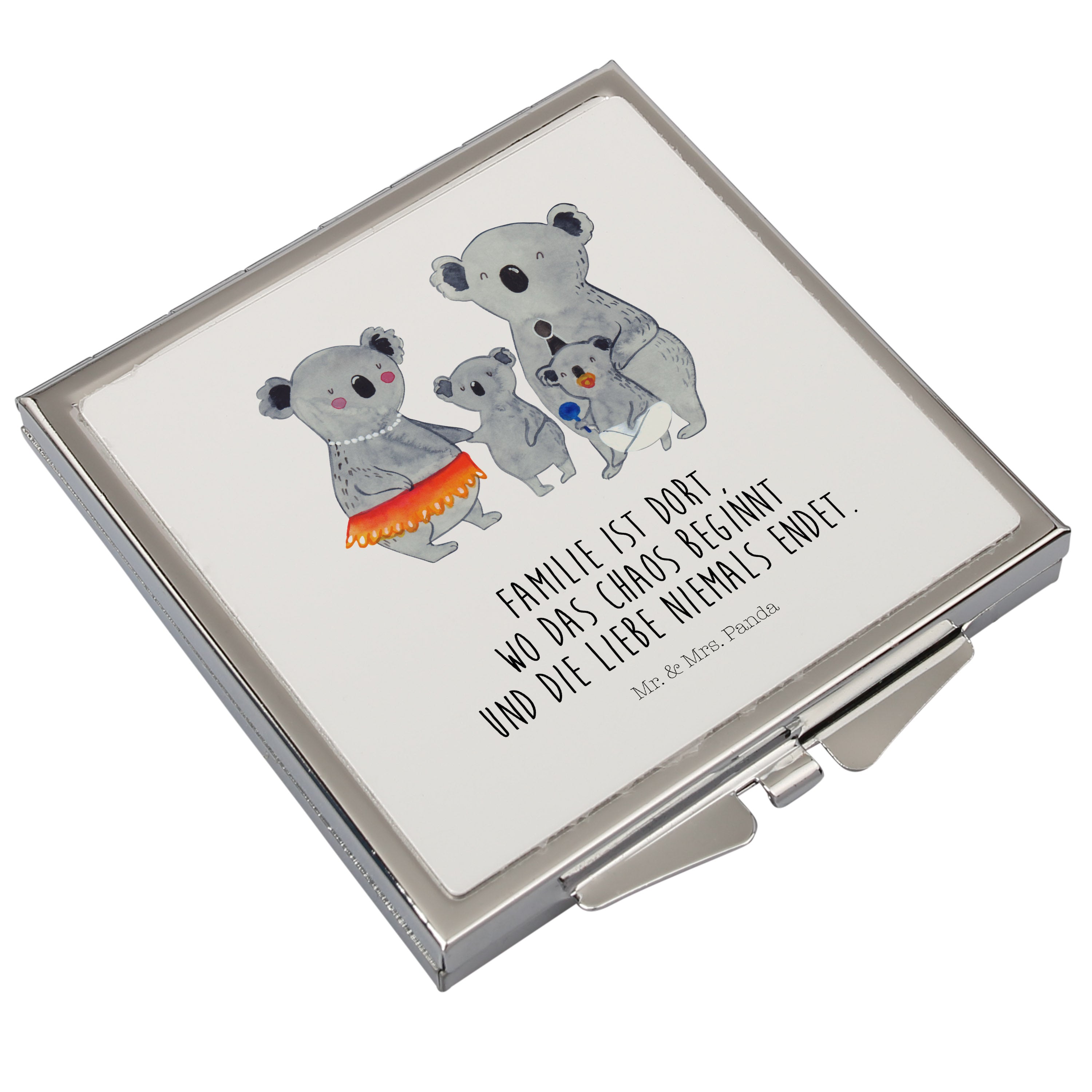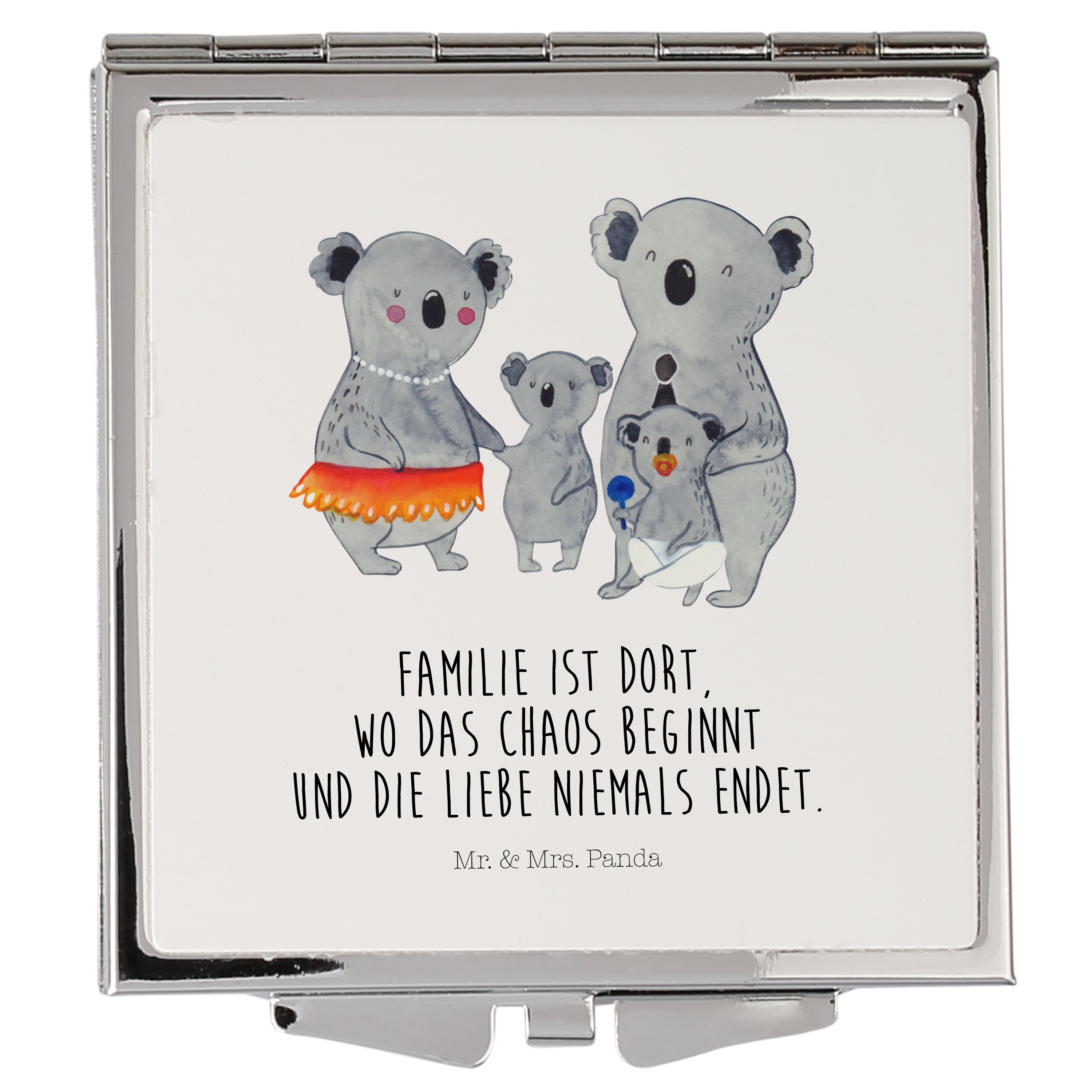 Handtaschenspiegel quadratisch Koala Familie - mit Spruch - Weiß