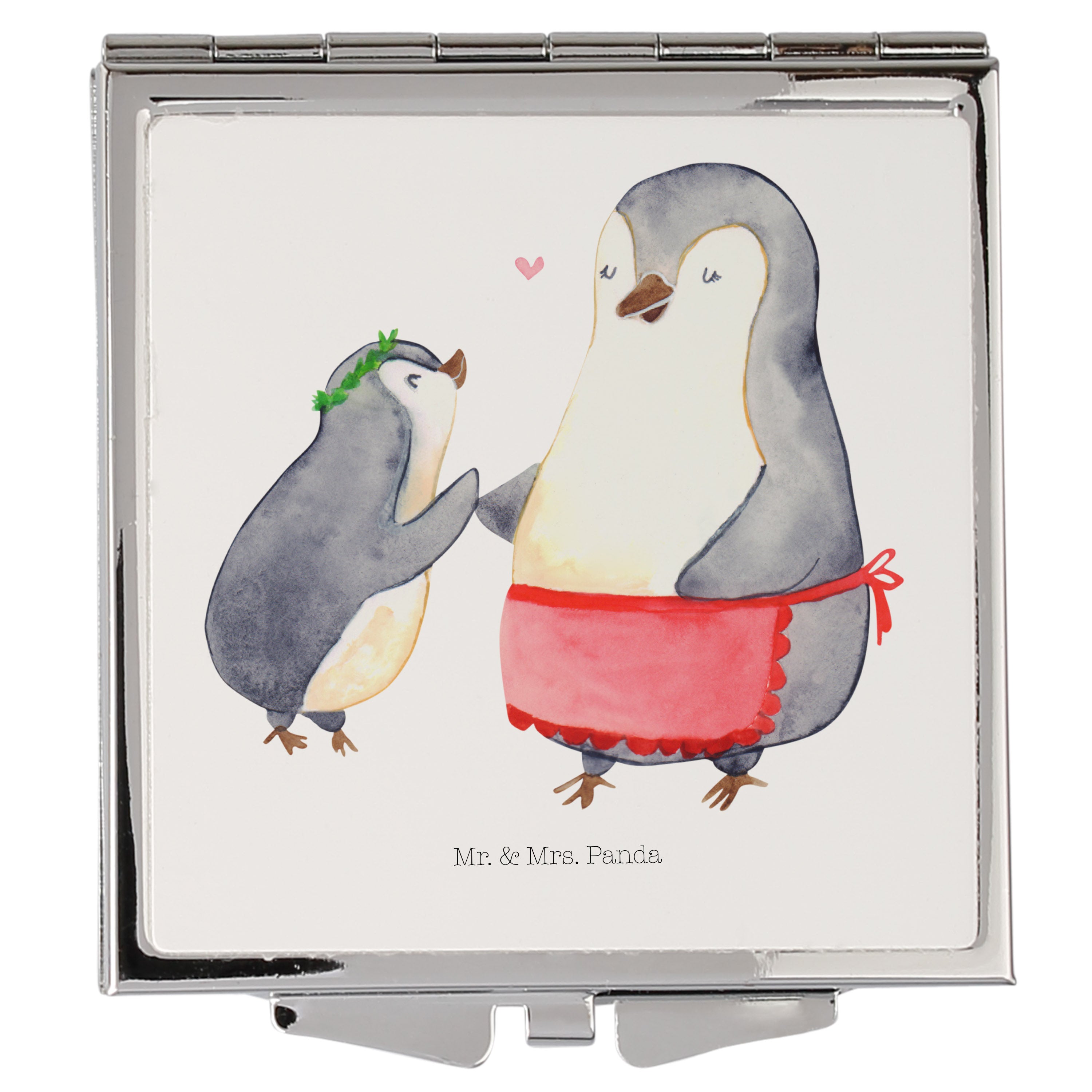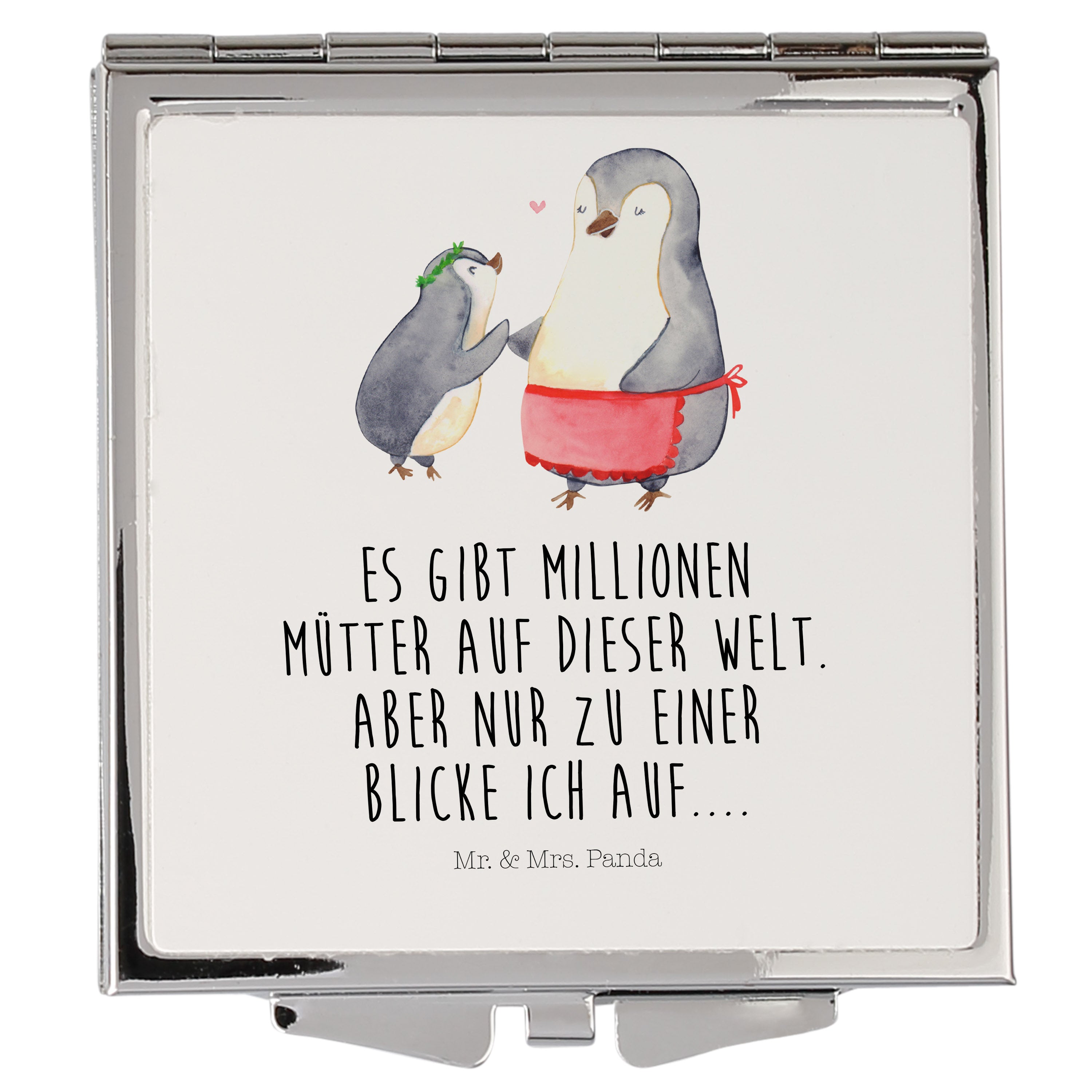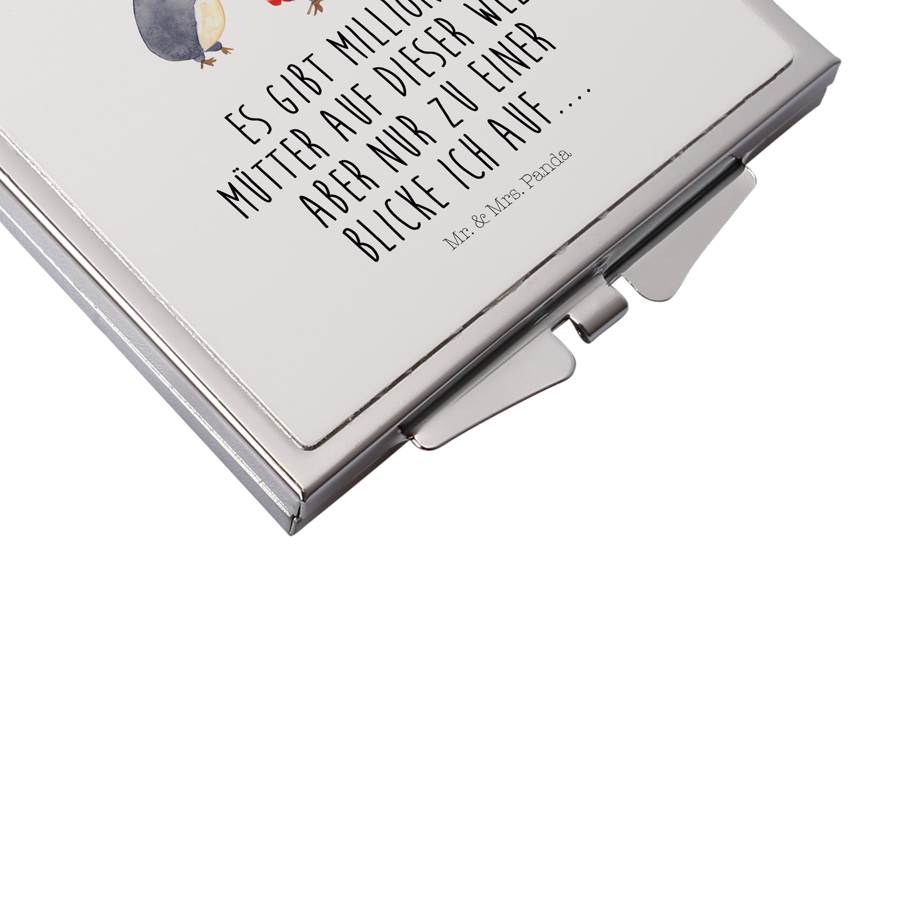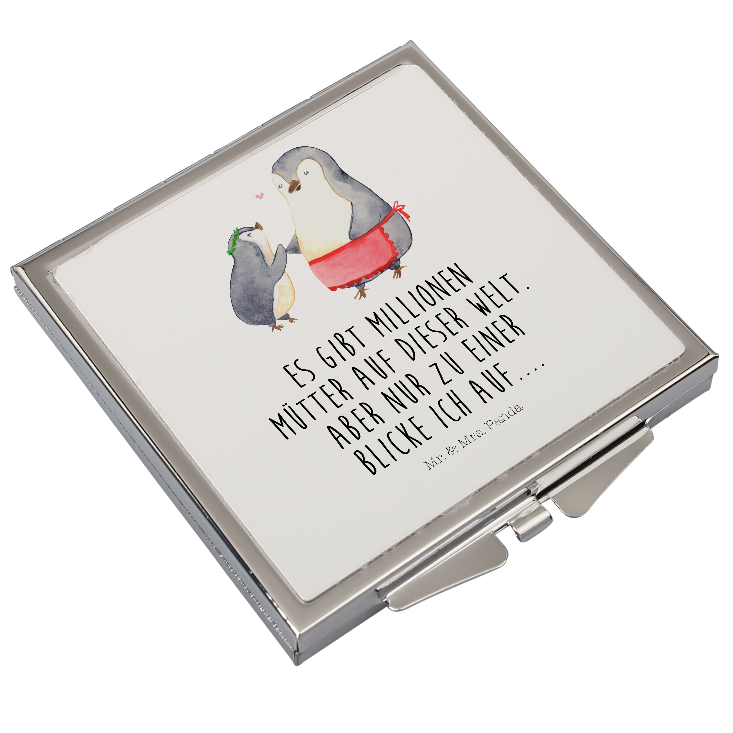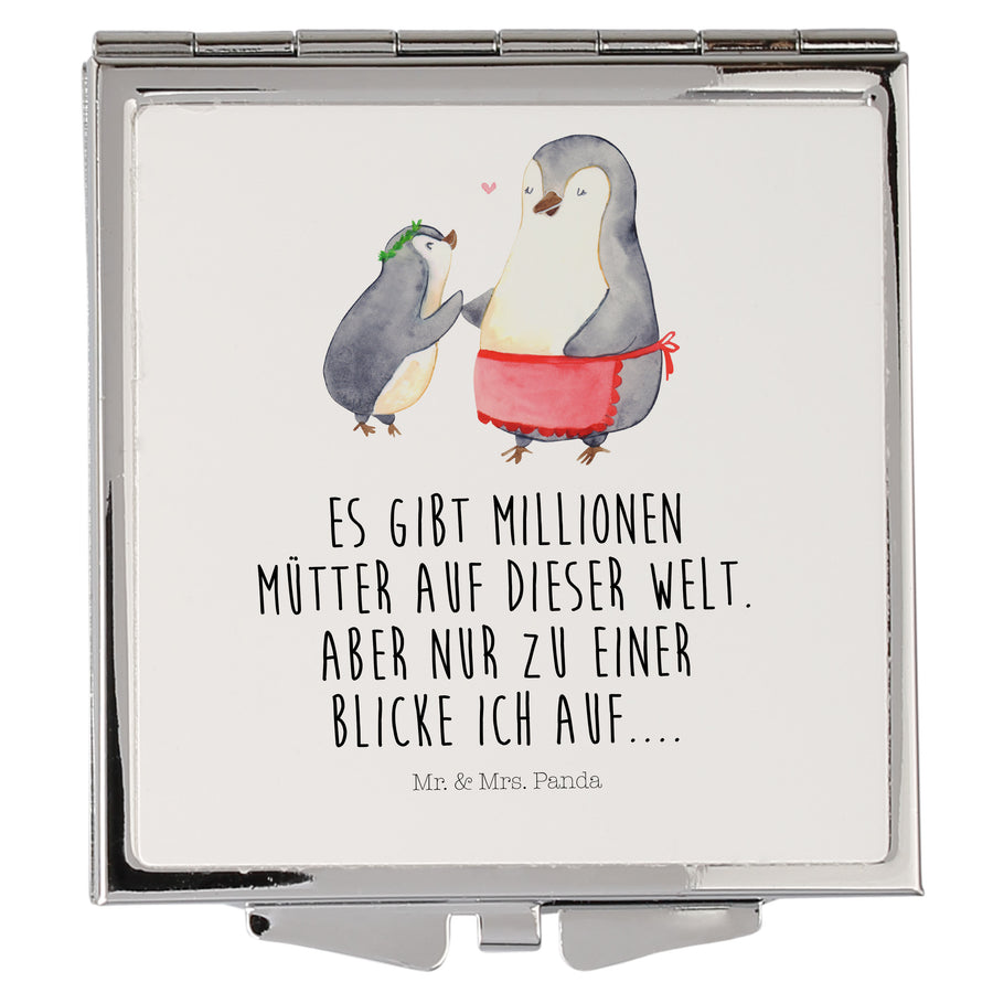 Handtaschenspiegel quadratisch Pinguin mit Kind - mit Spruch - Weiß