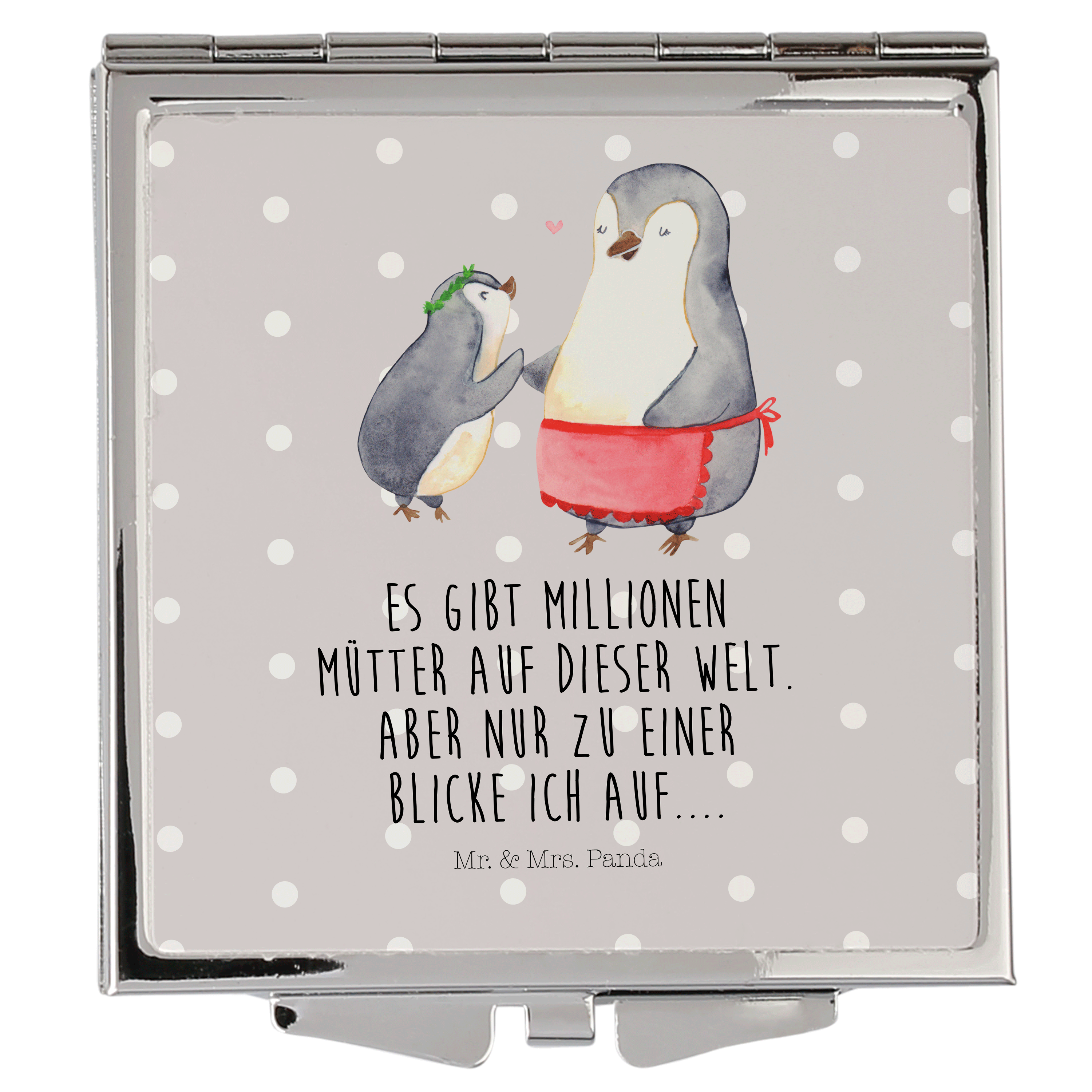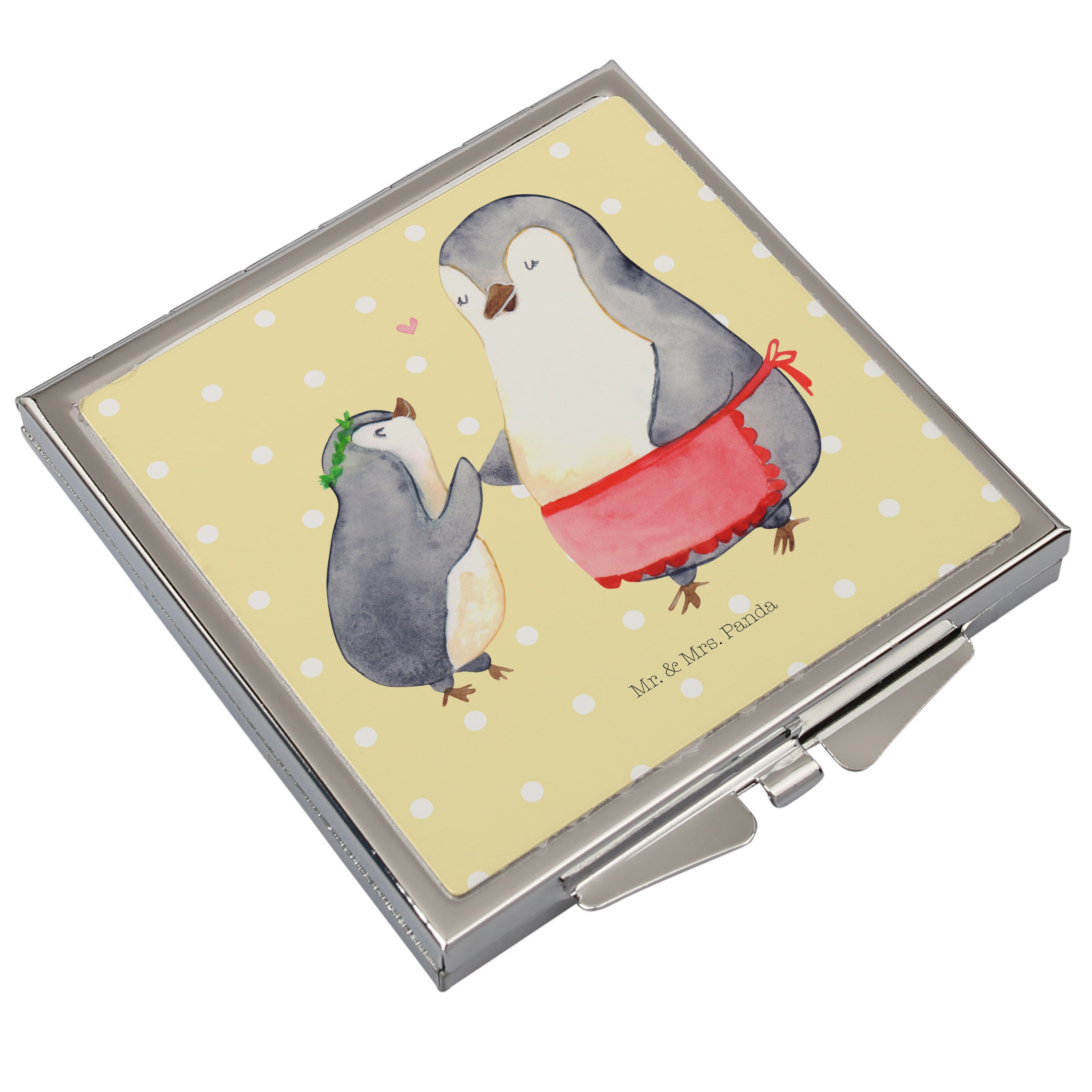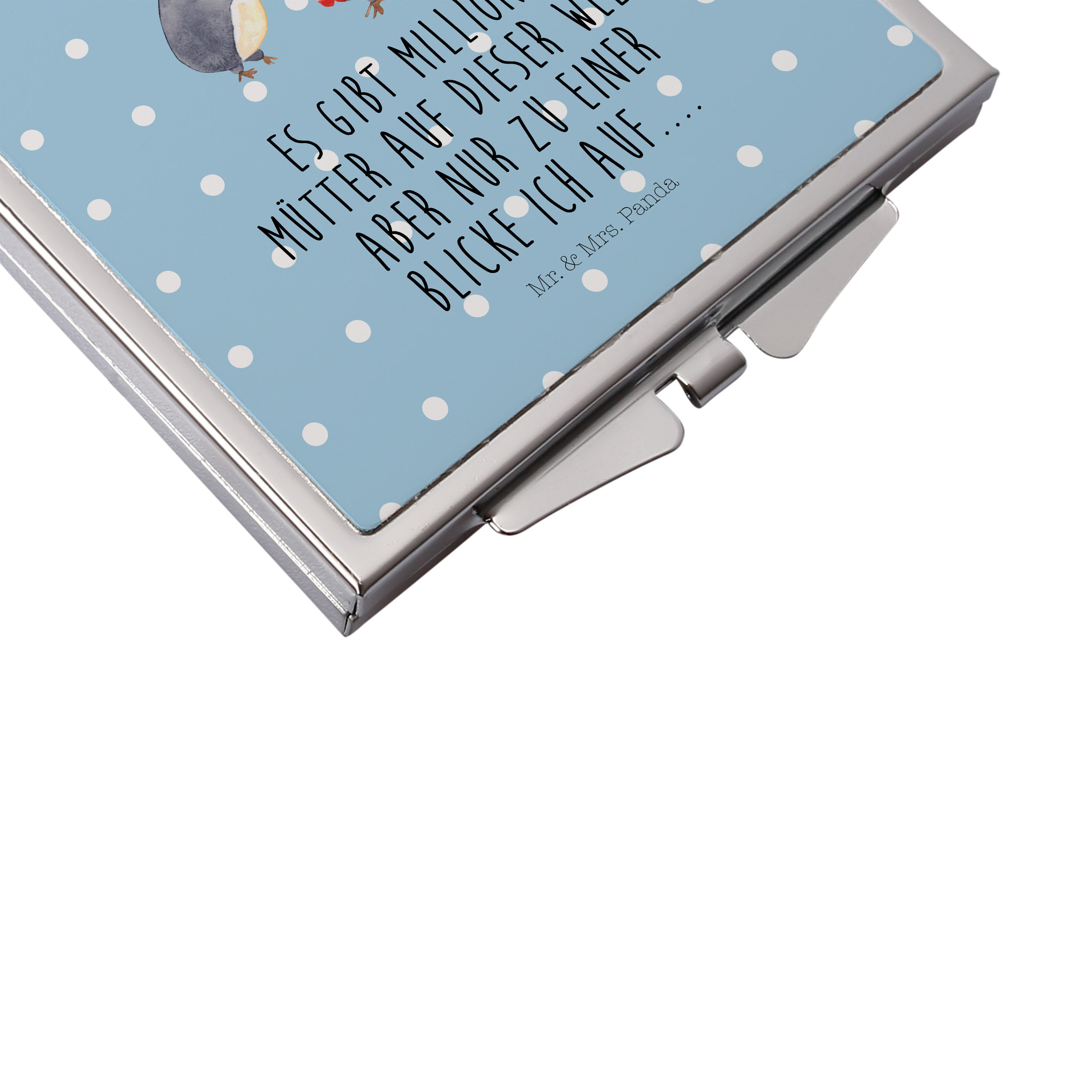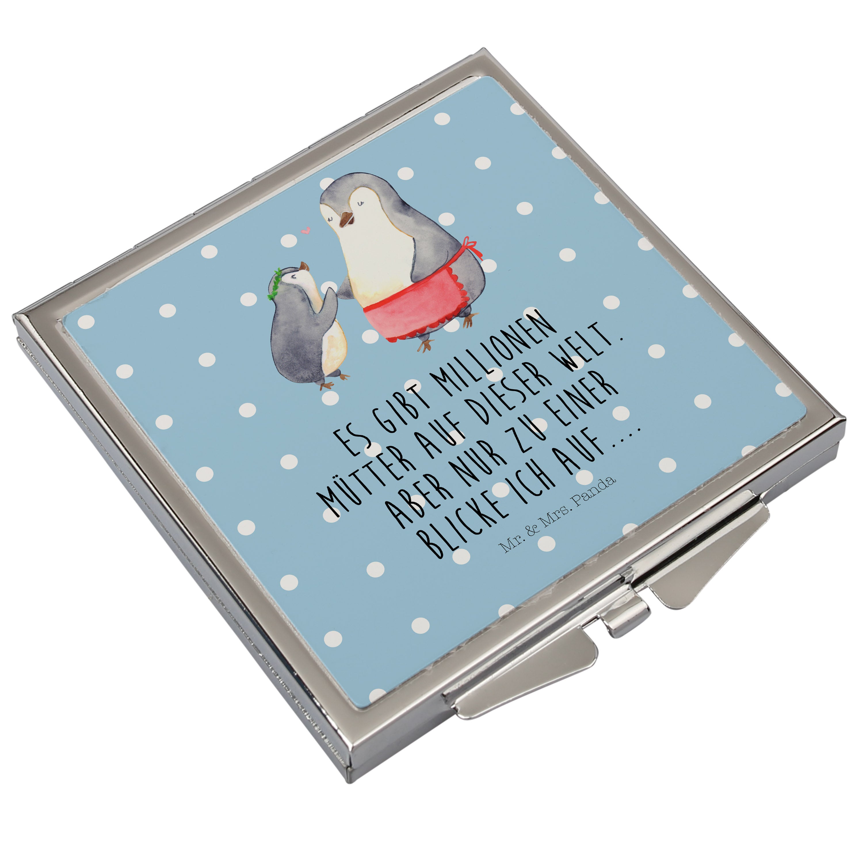 Handtaschenspiegel quadratisch Pinguin mit Kind - mit Spruch - Weiß