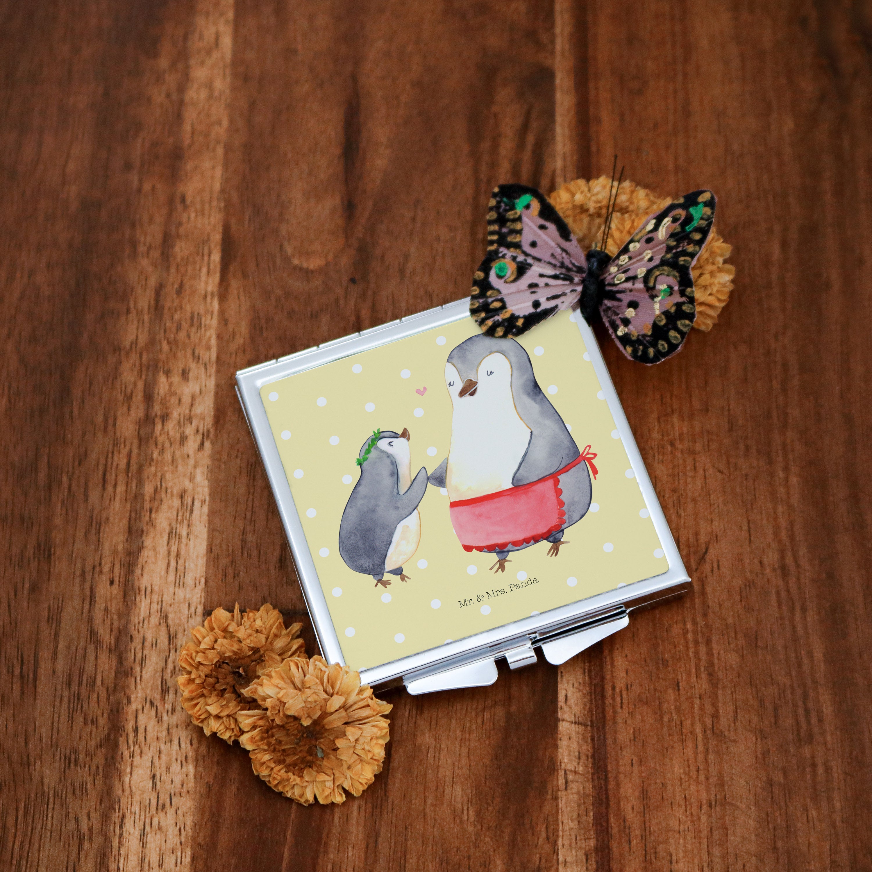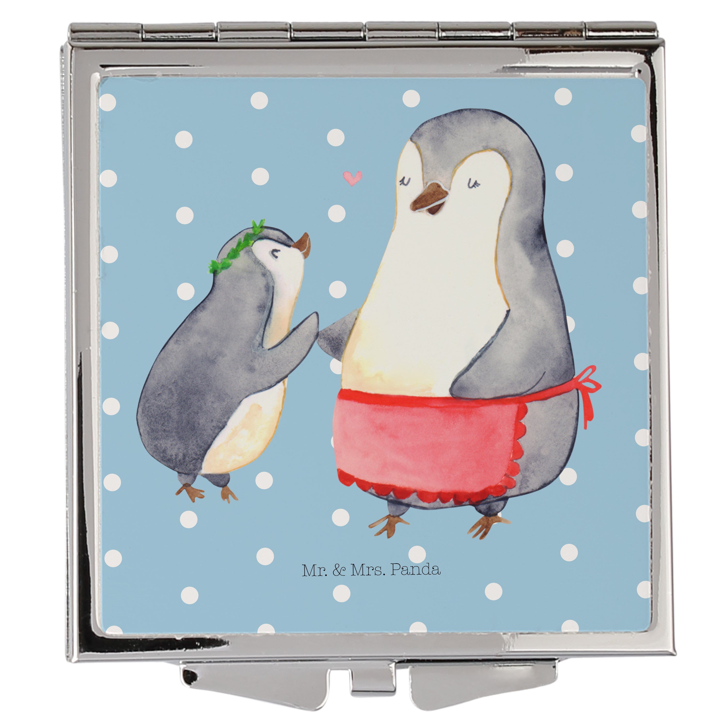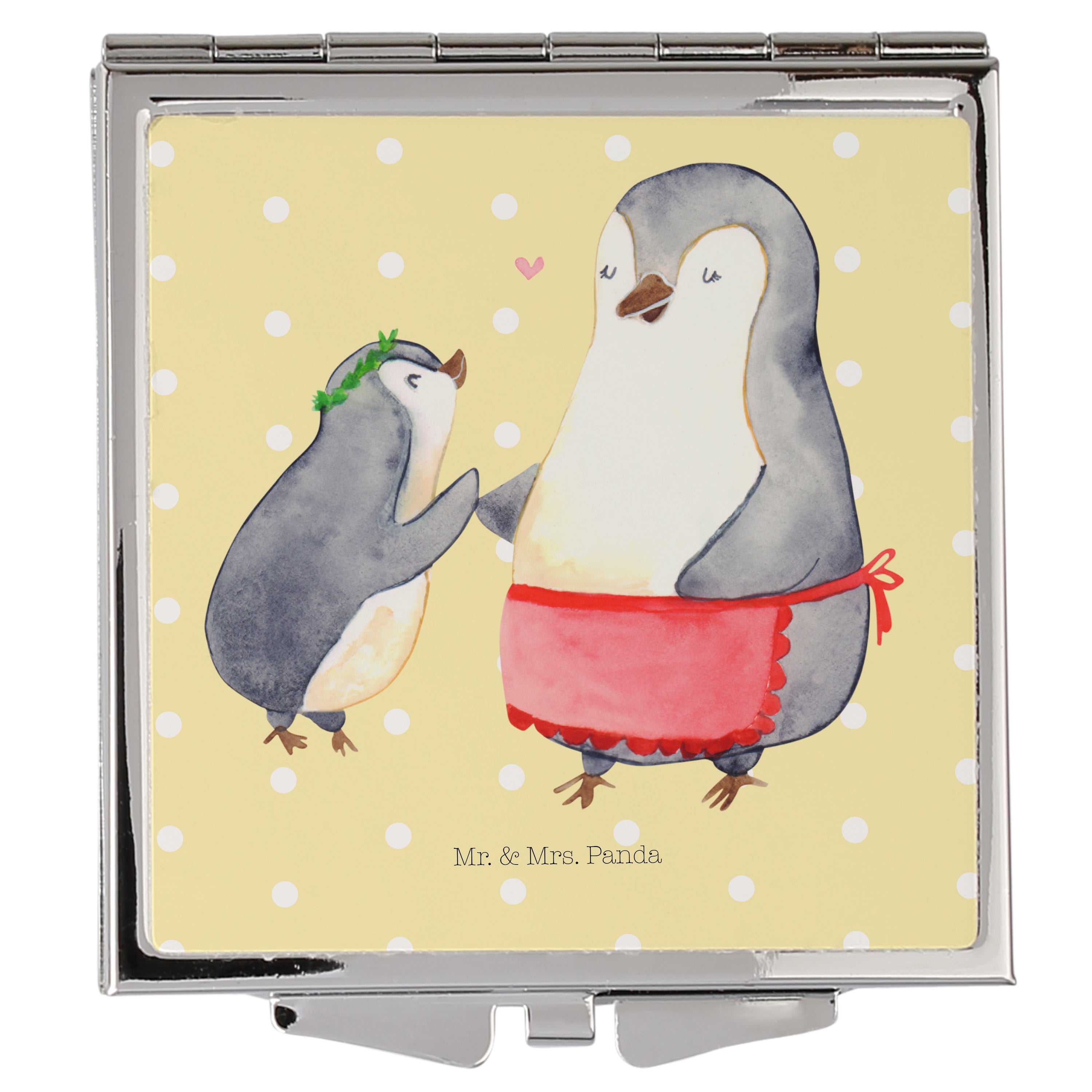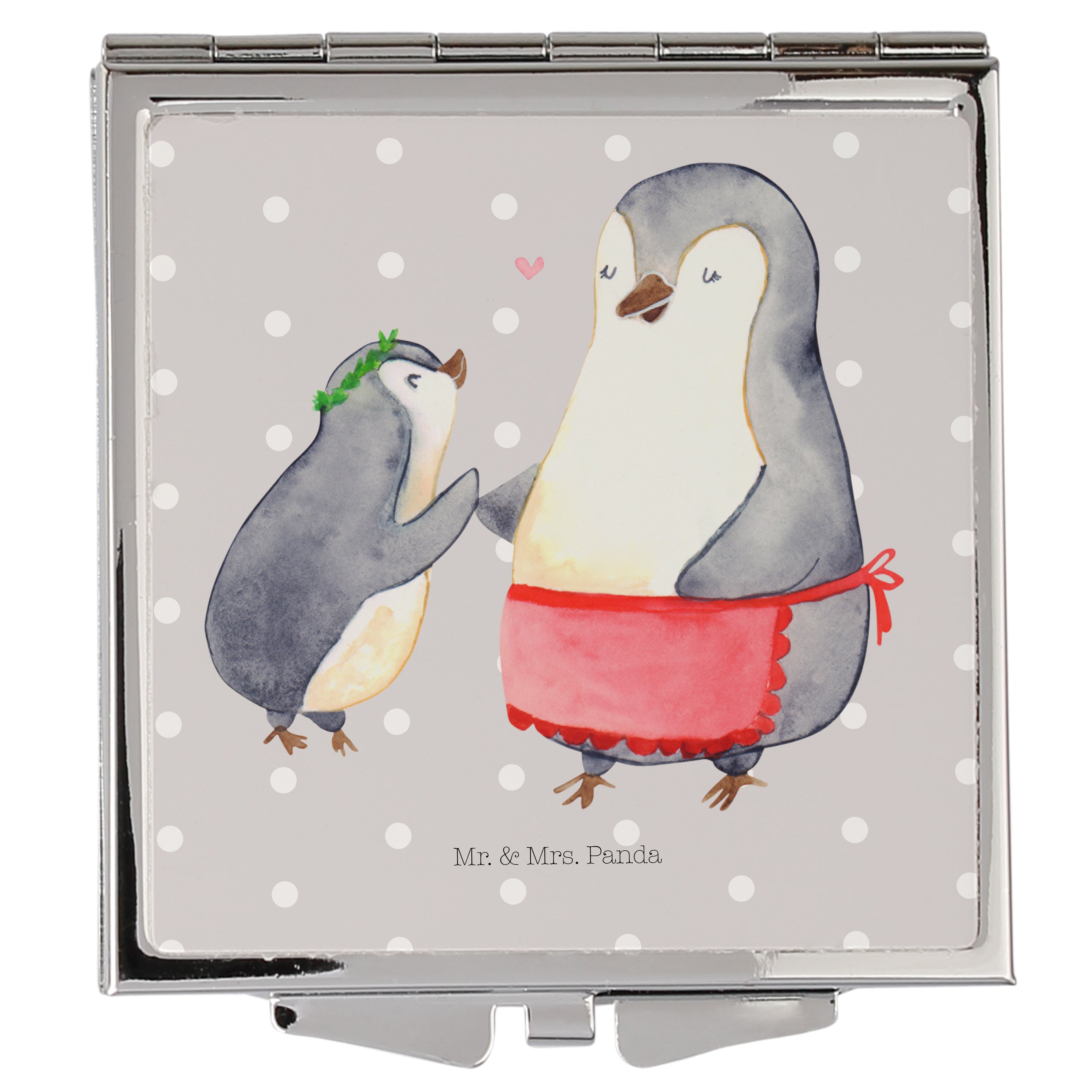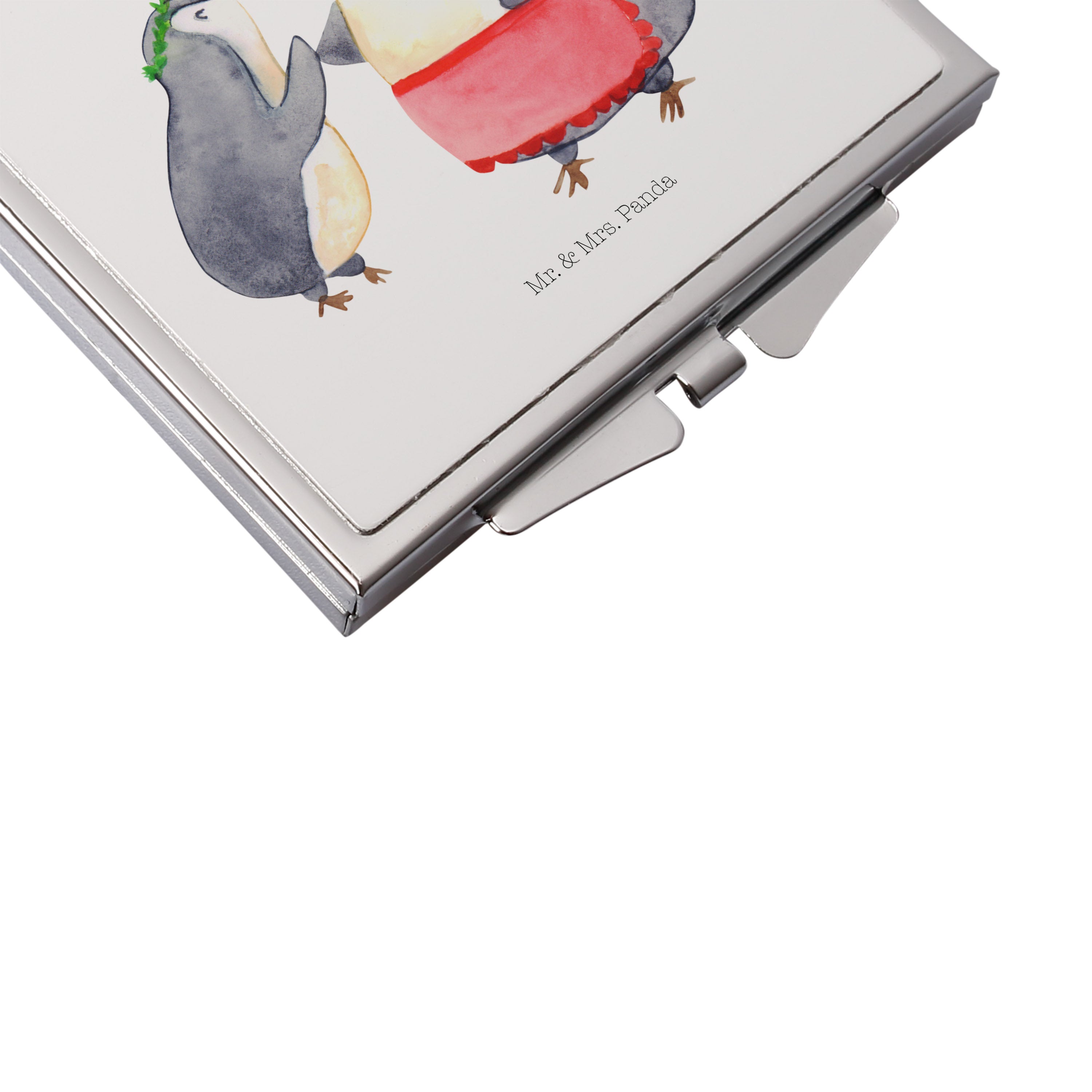 Handtaschenspiegel quadratisch Pinguin mit Kind - mit Spruch - Weiß