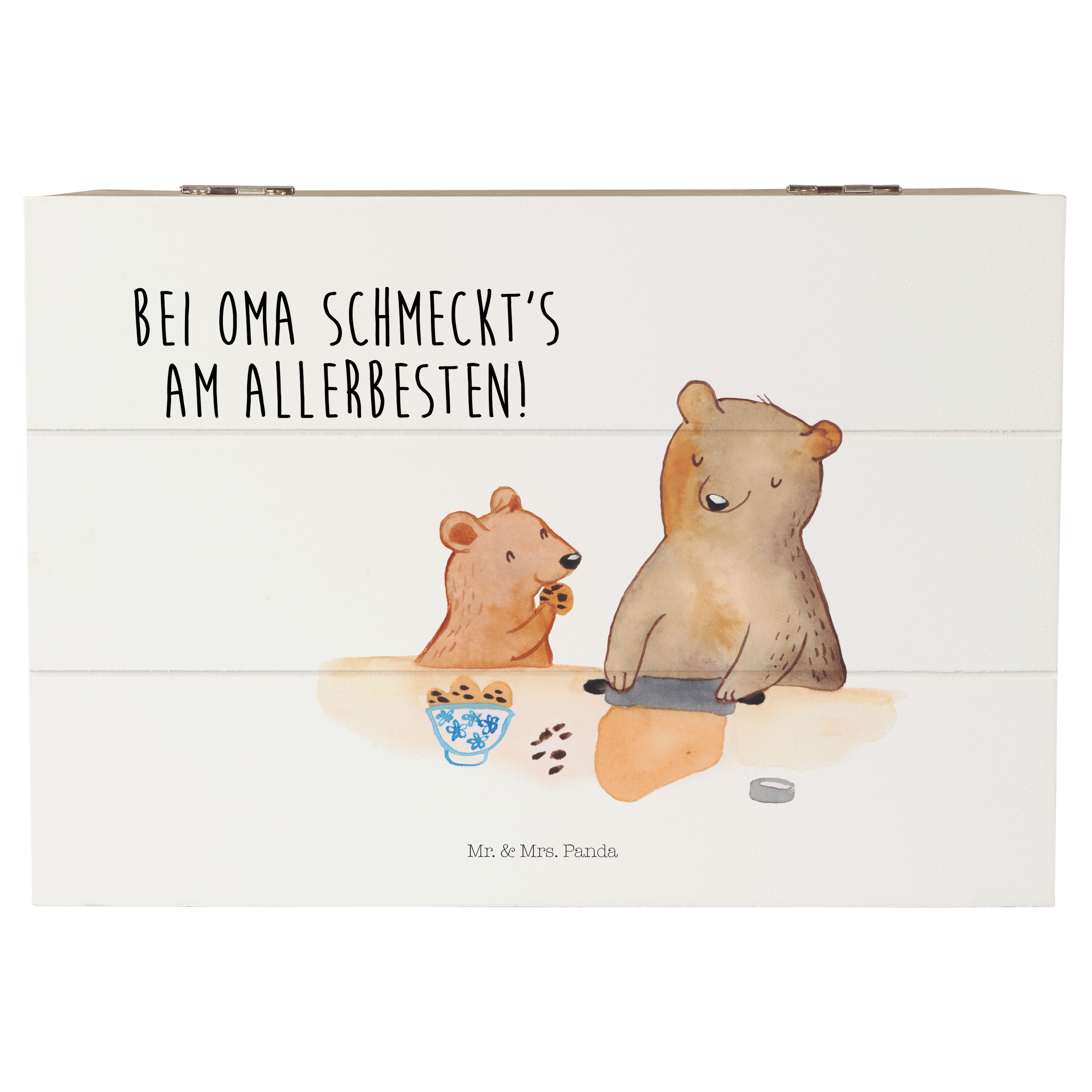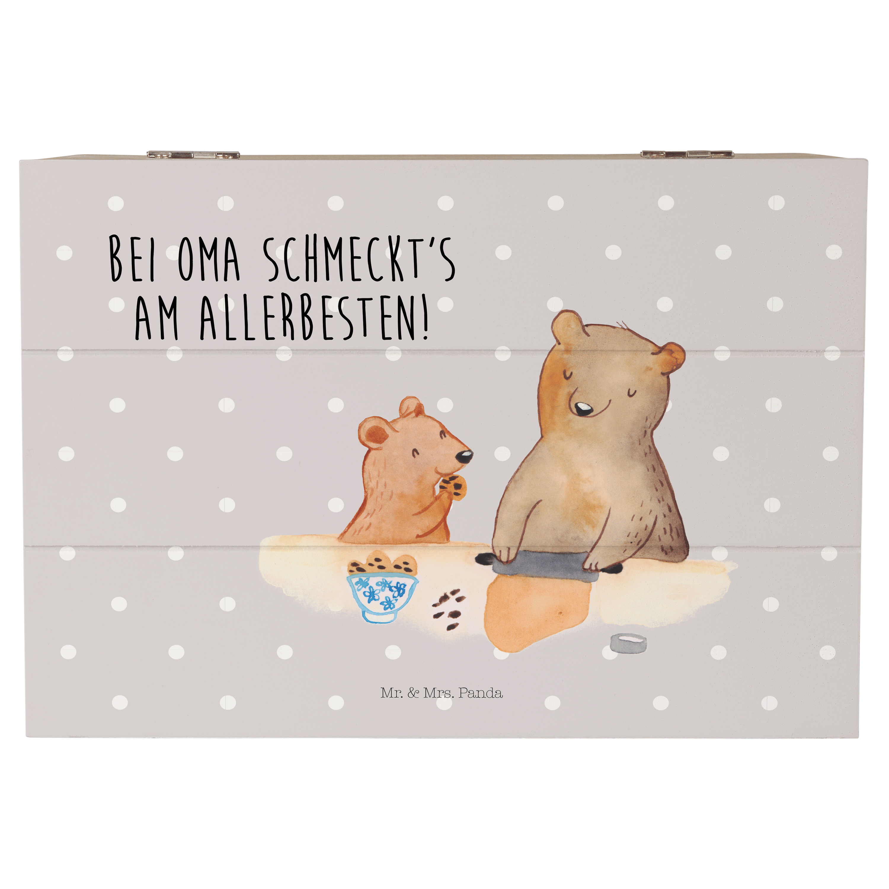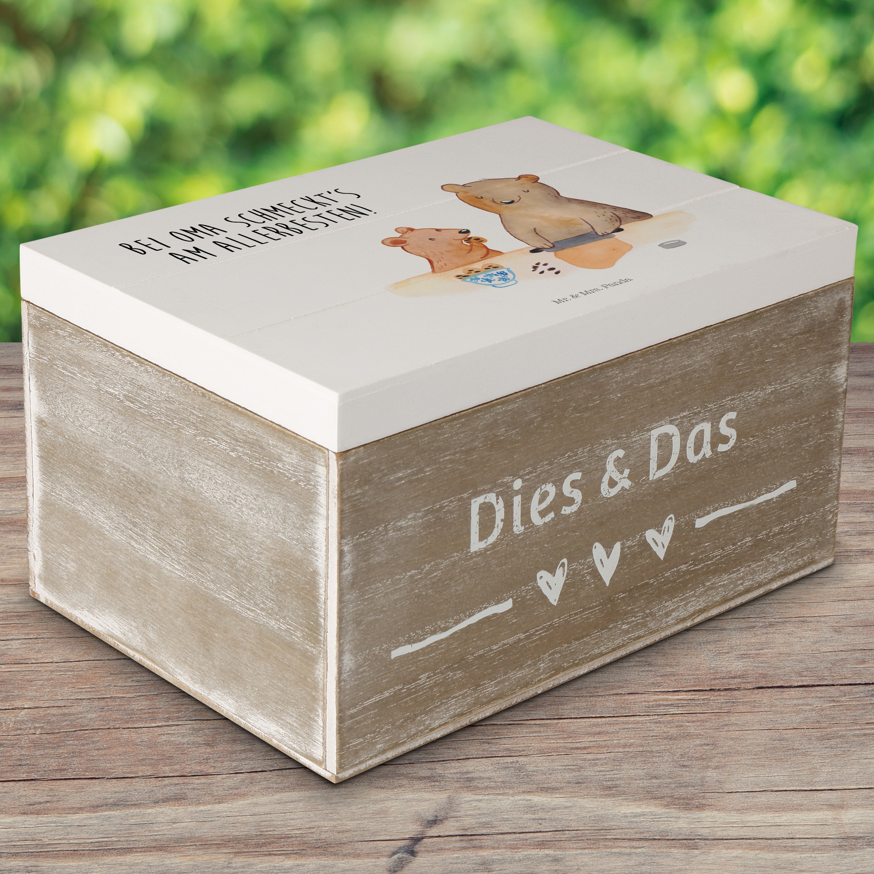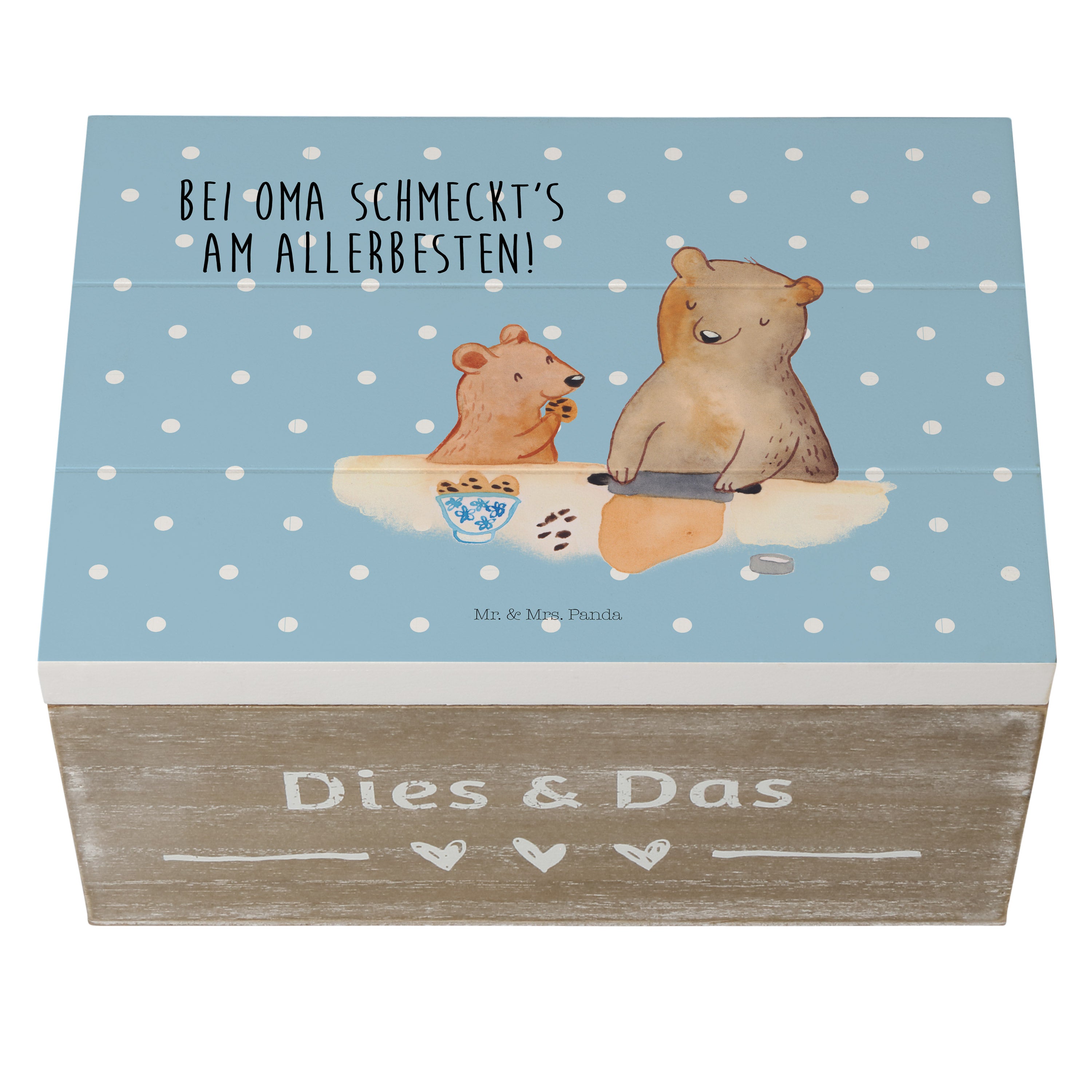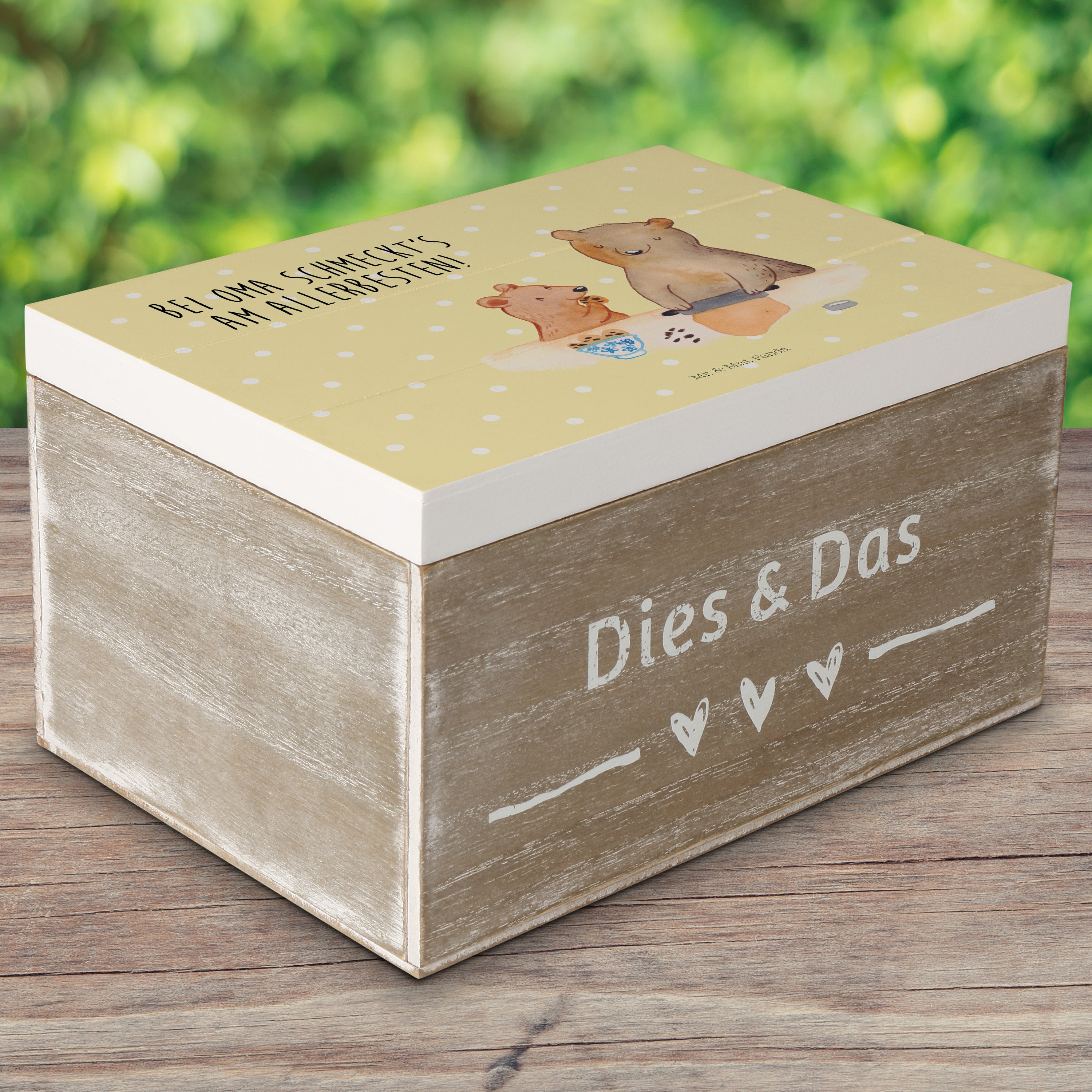Holzkiste Oma Bär backen - mit Spruch - Gelb Pastell