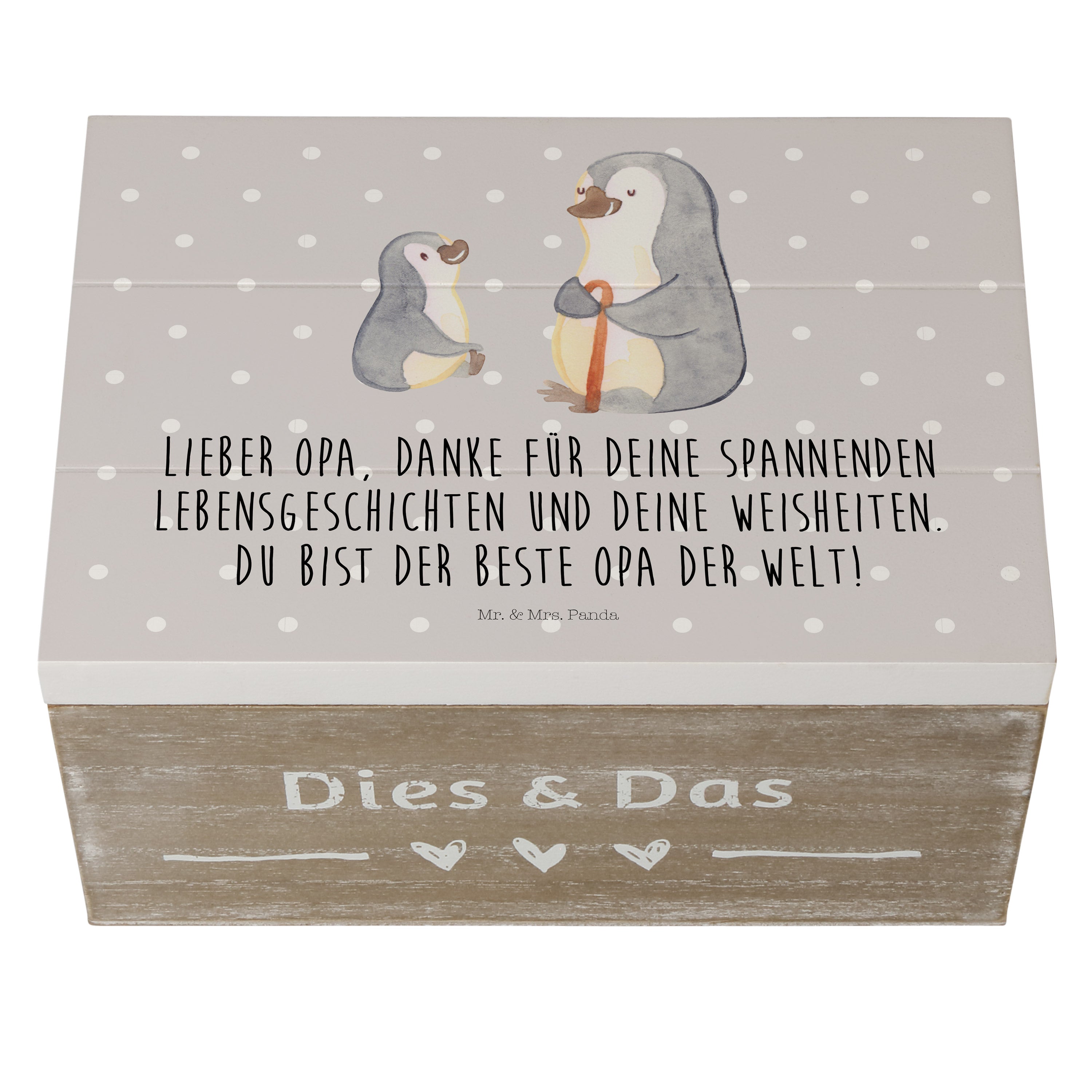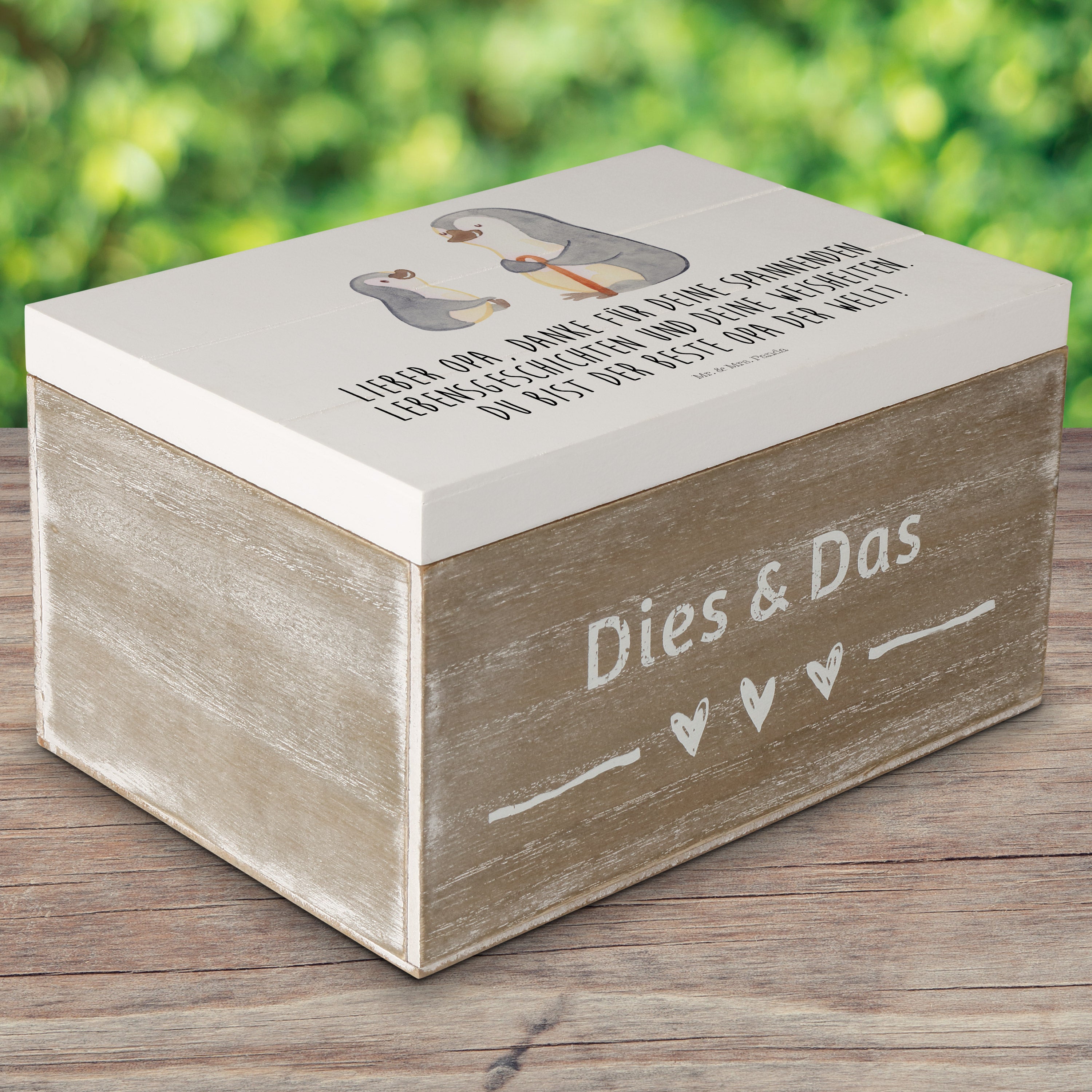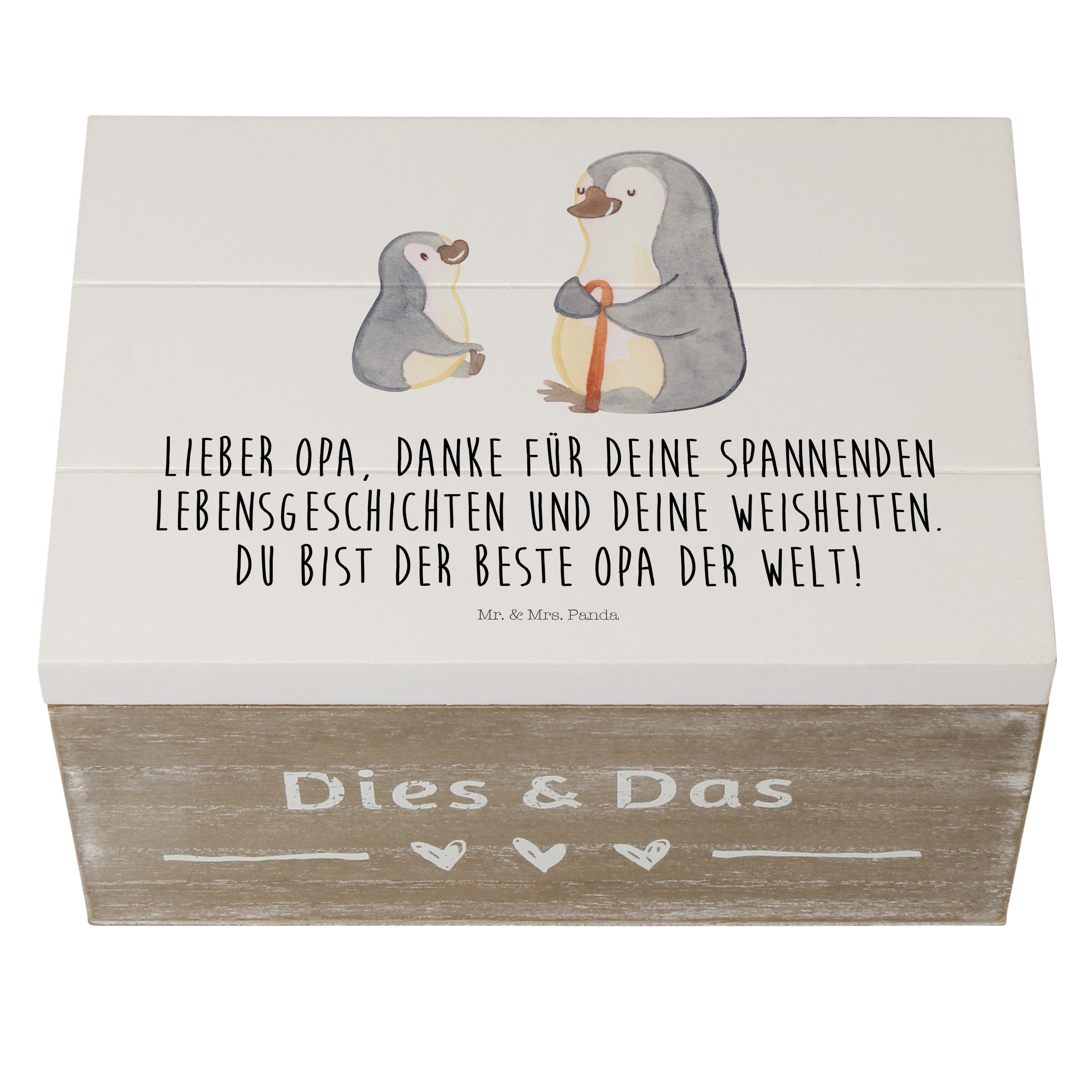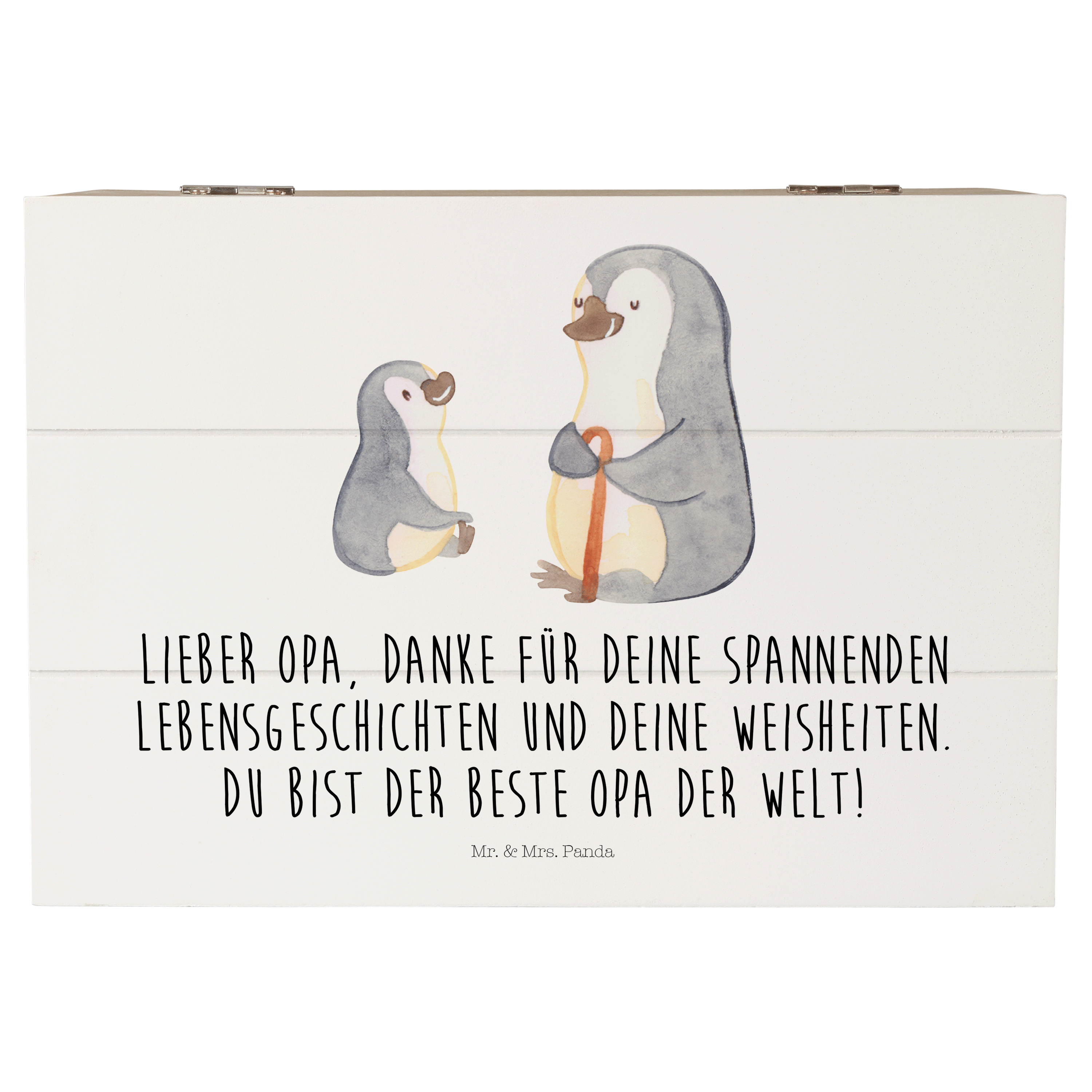 Holzkiste Pinguin Opa Enkel - mit Spruch - Weiß
