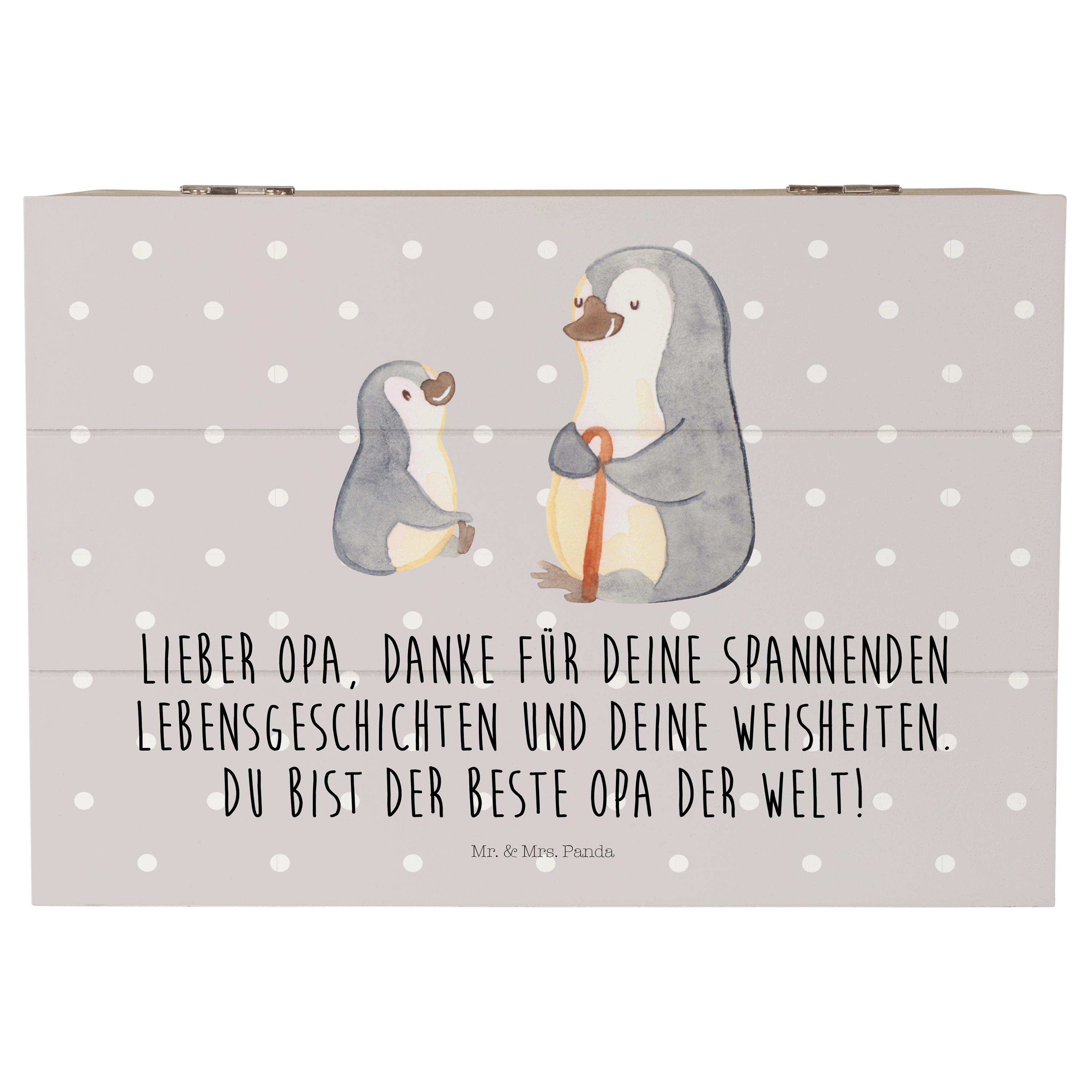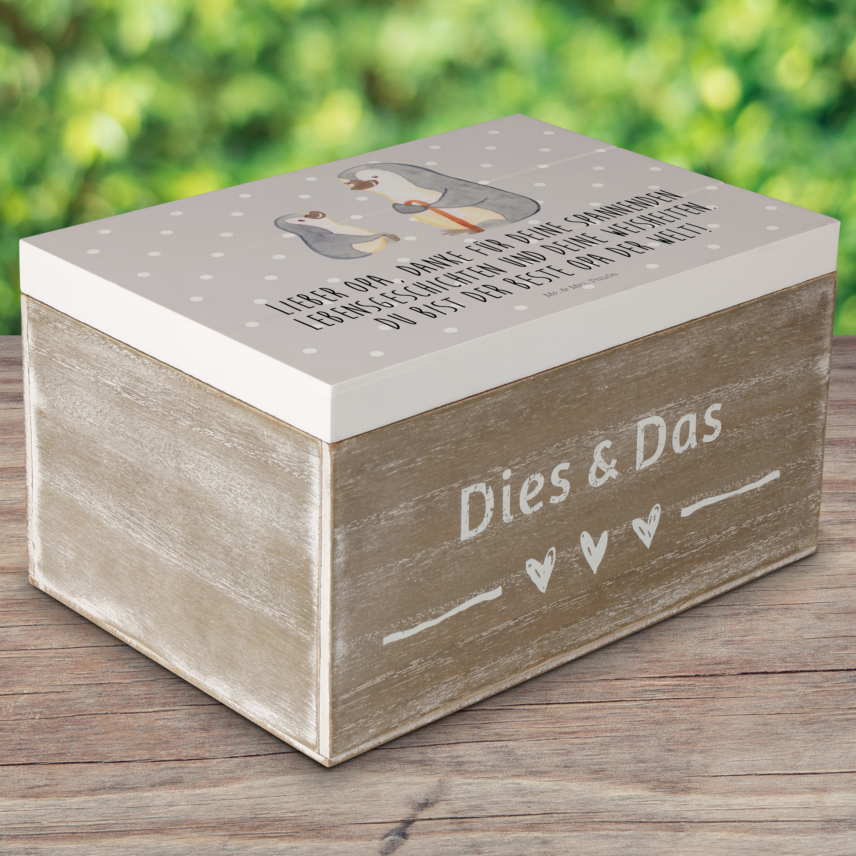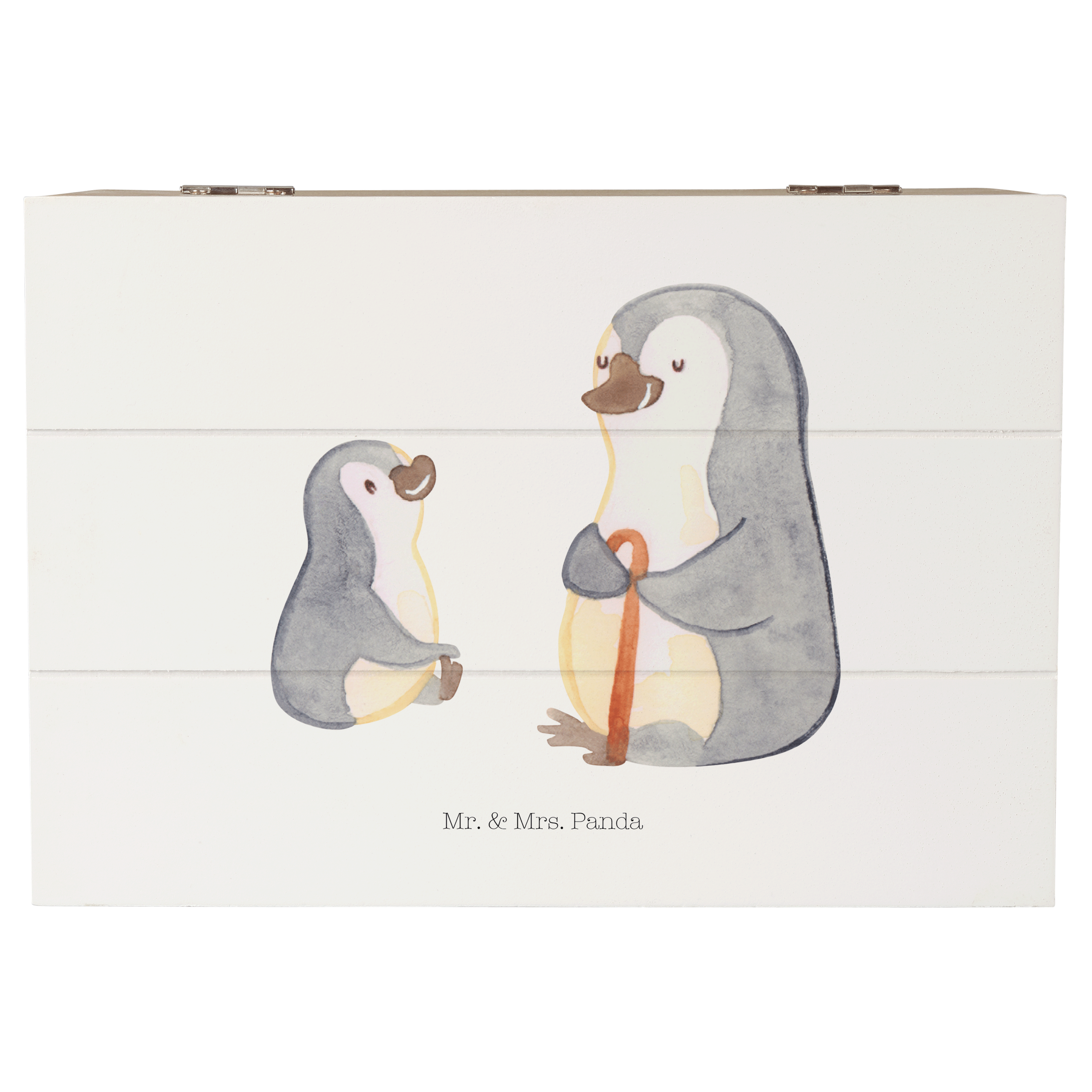 Holzkiste Pinguin Opa Enkel - mit Spruch - Weiß