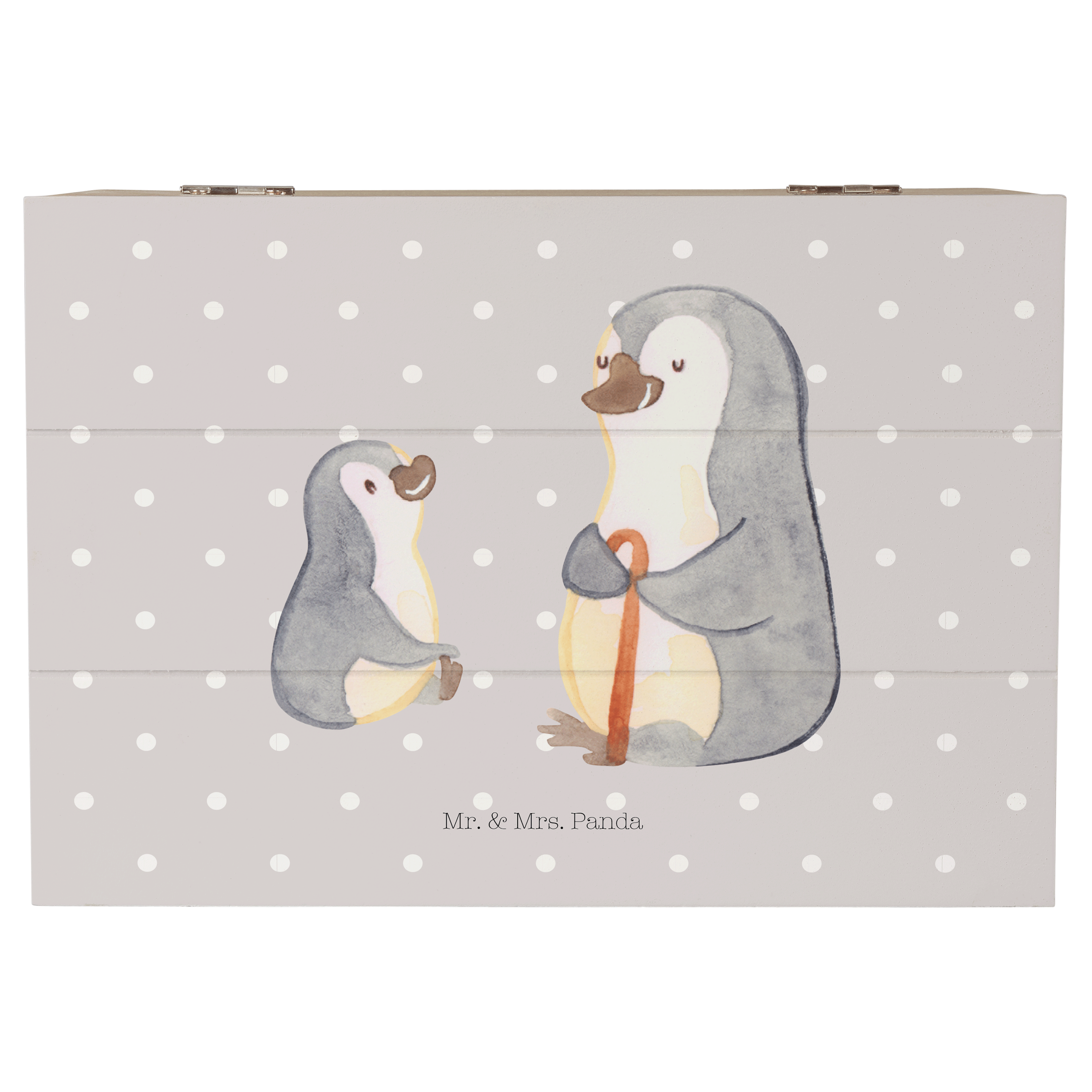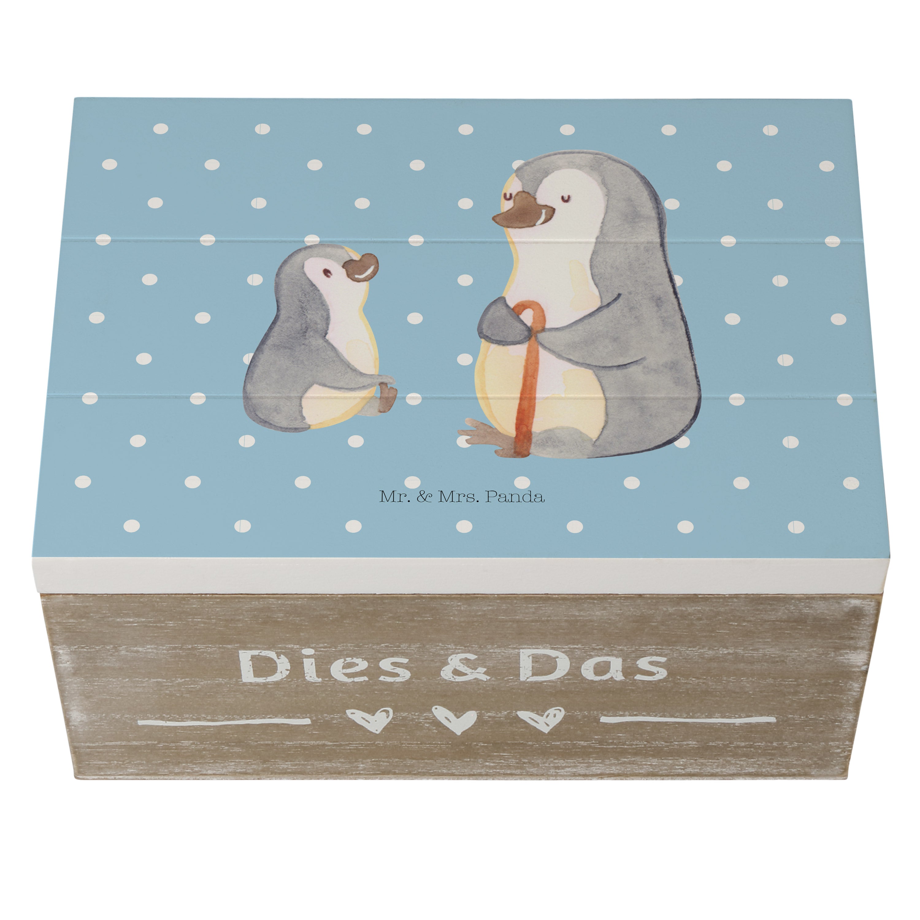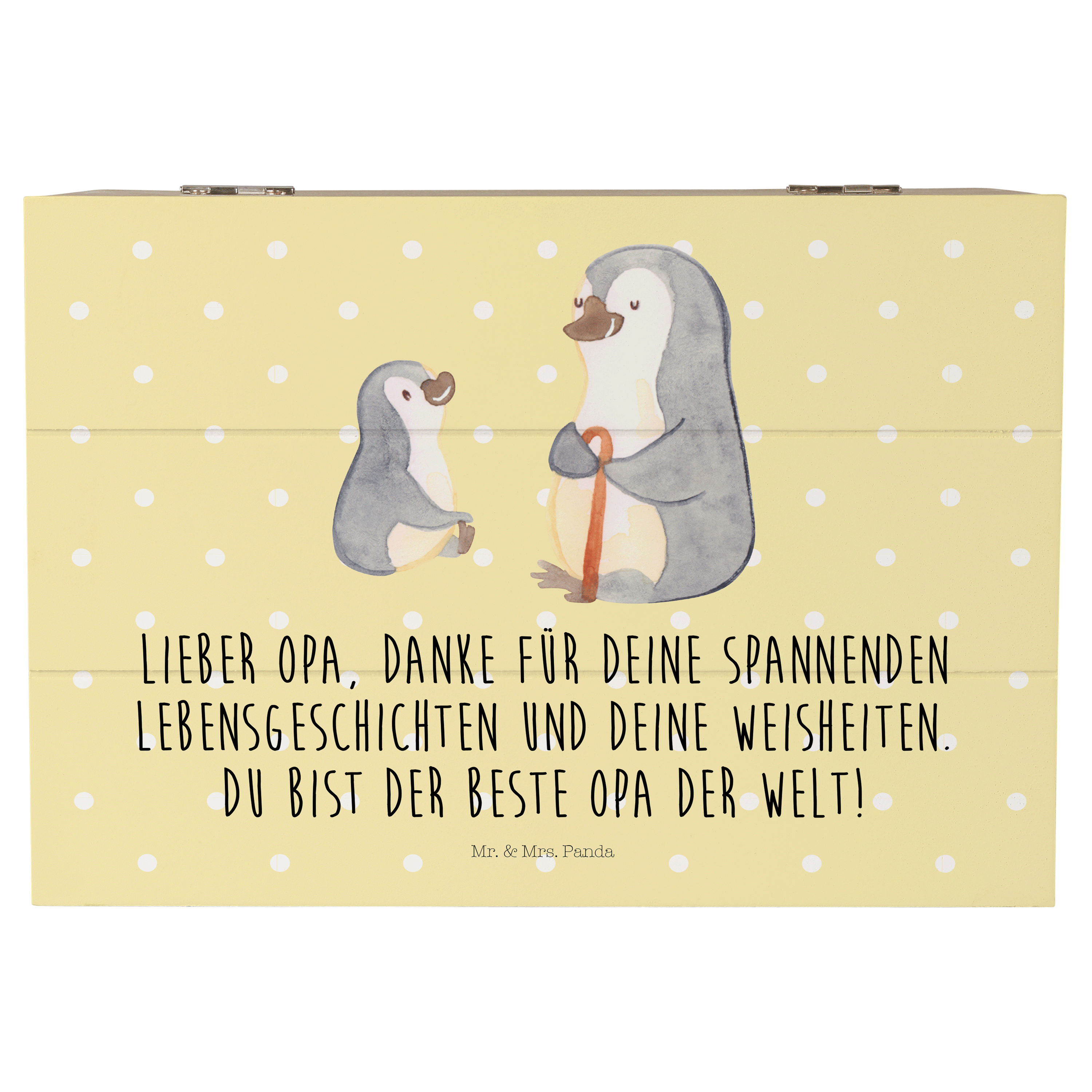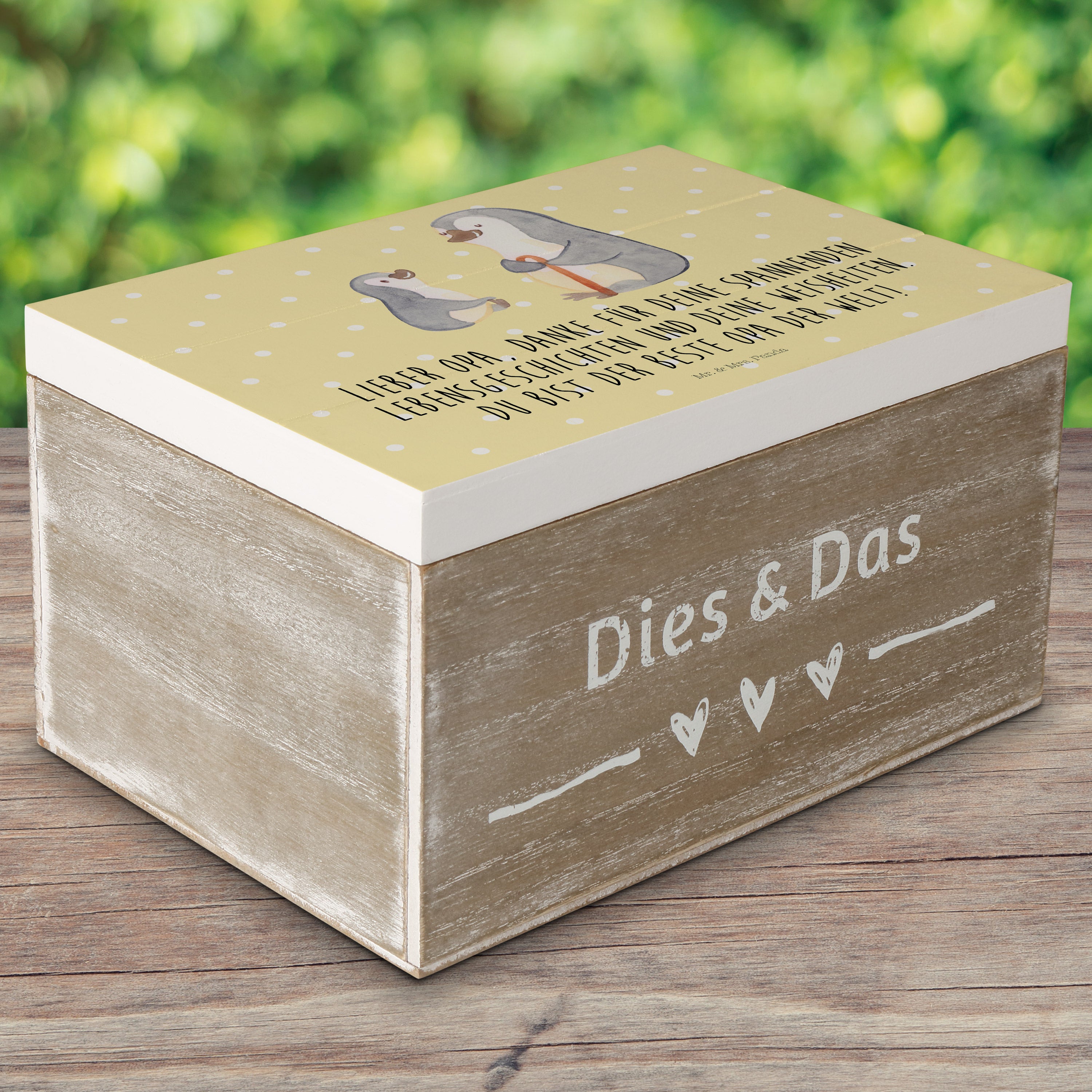Holzkiste Pinguin Opa Enkel - mit Spruch - Weiß