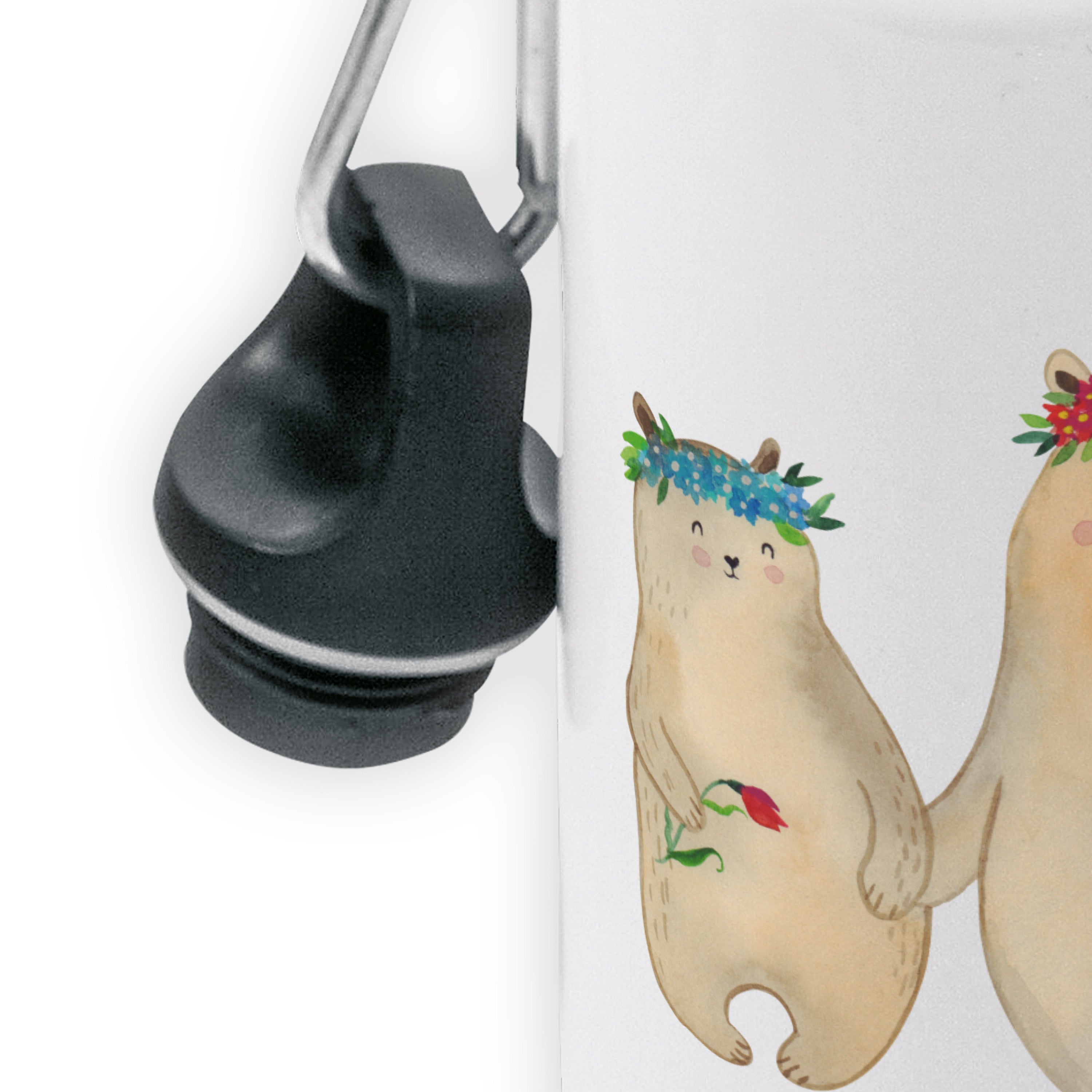 Kindertrinkflasche Bären mit Blumenkranz - mit Spruch