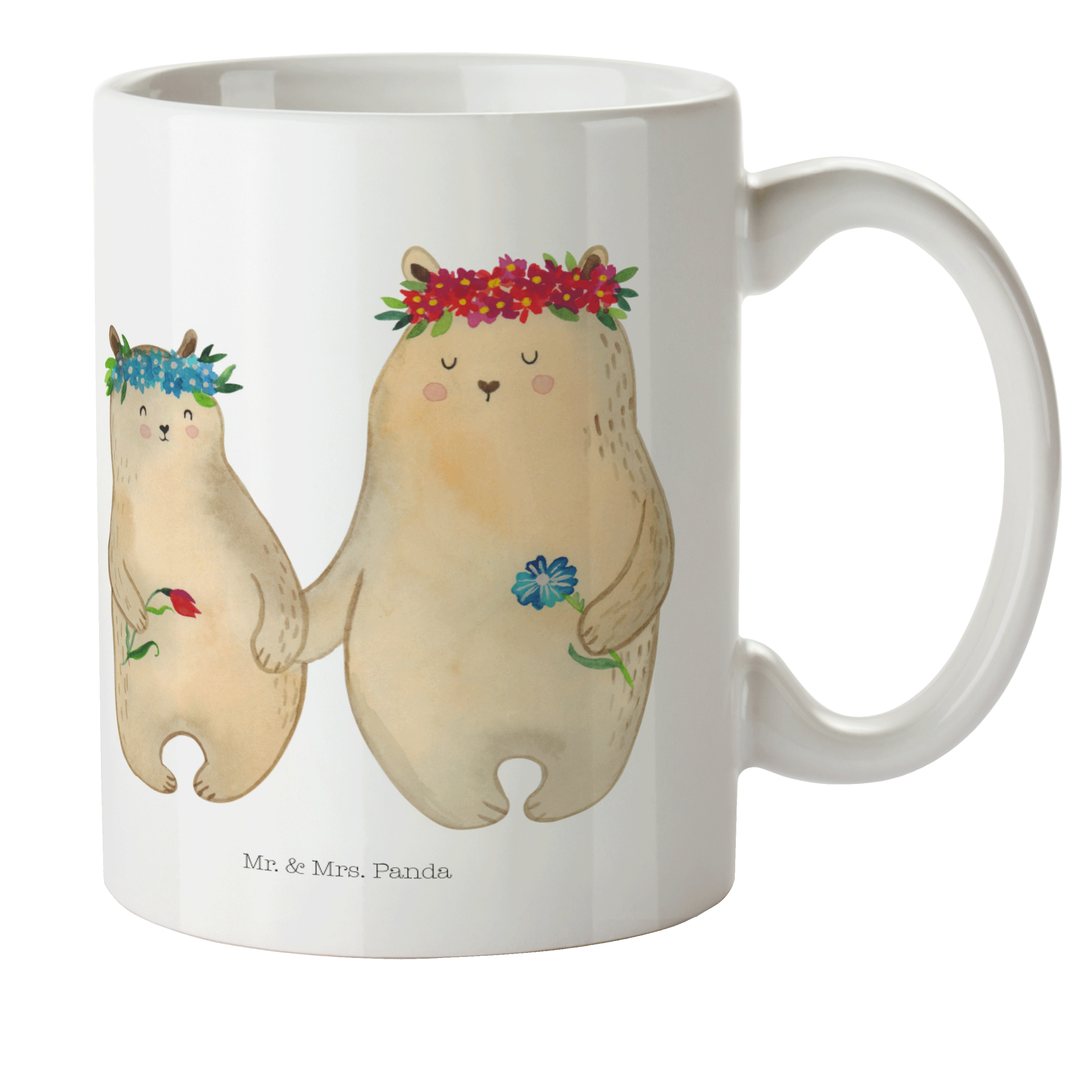 Kindertasse Bären mit Blumenkranz - mit Spruch - Weiß