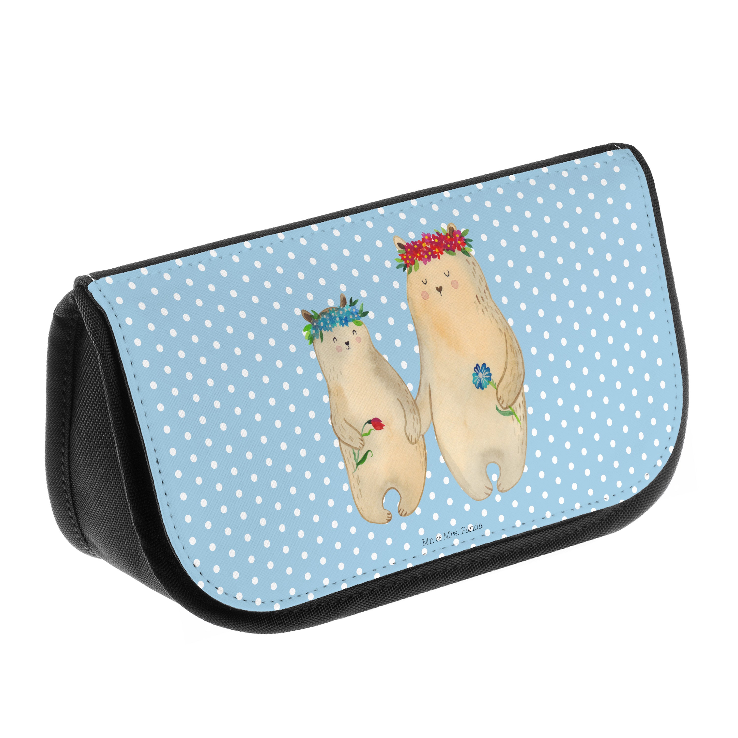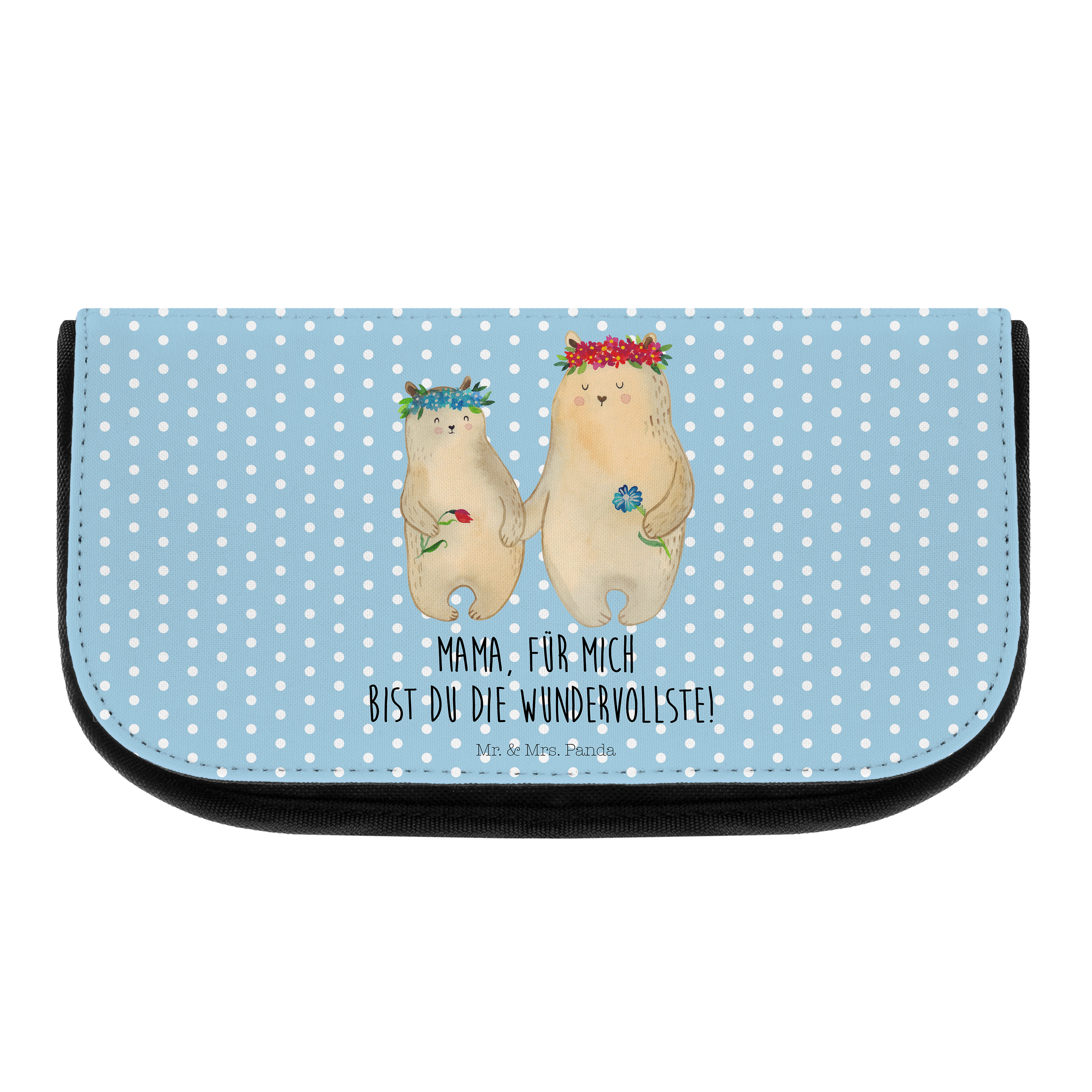 Kosmetiktasche Bären mit Blumenkranz - mit Spruch - Blau Pastell