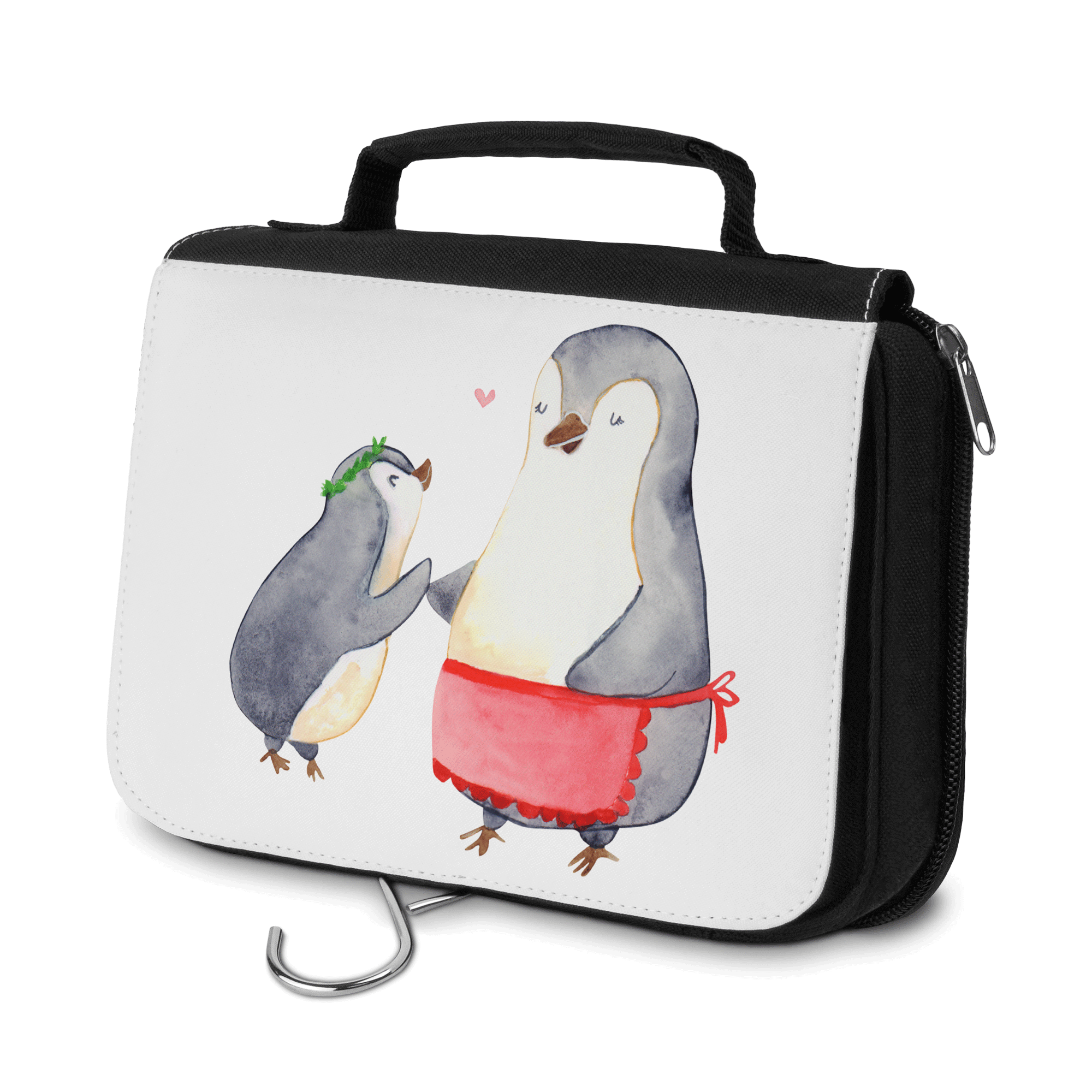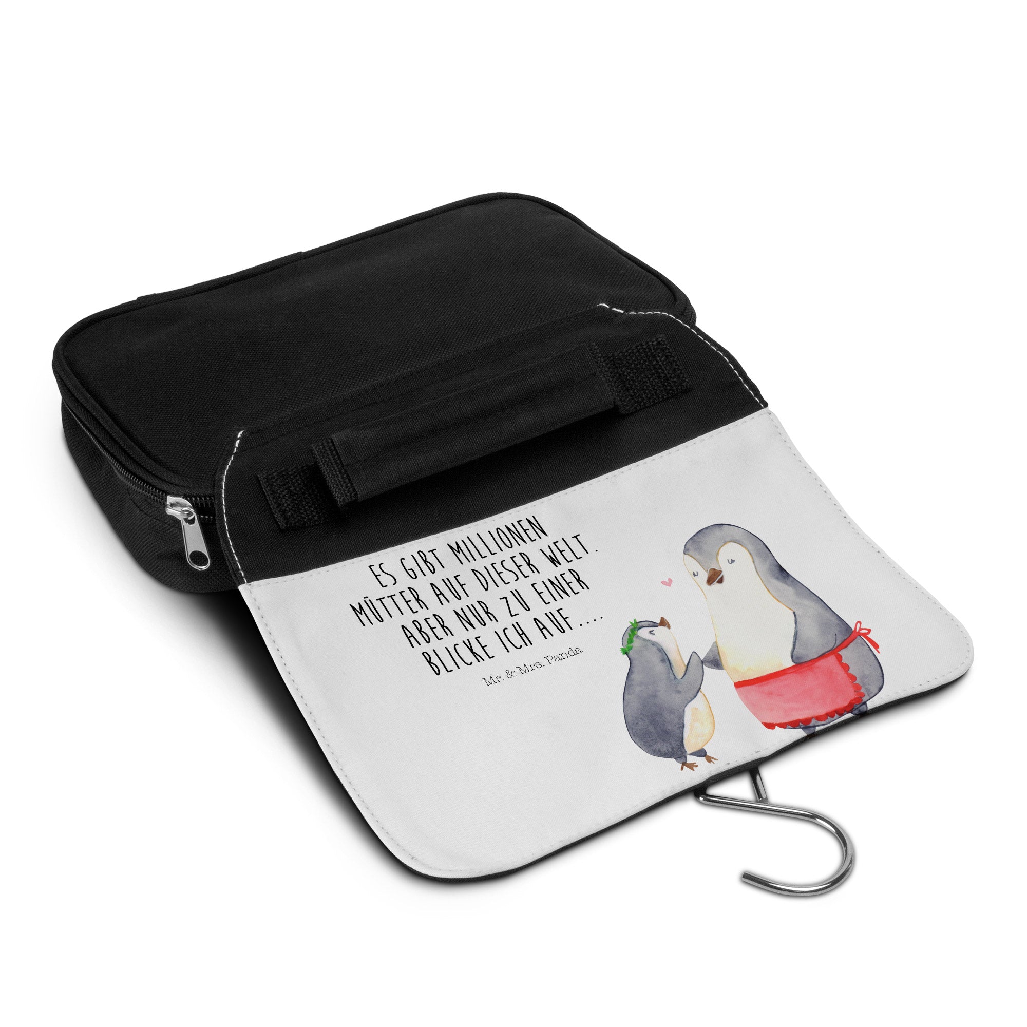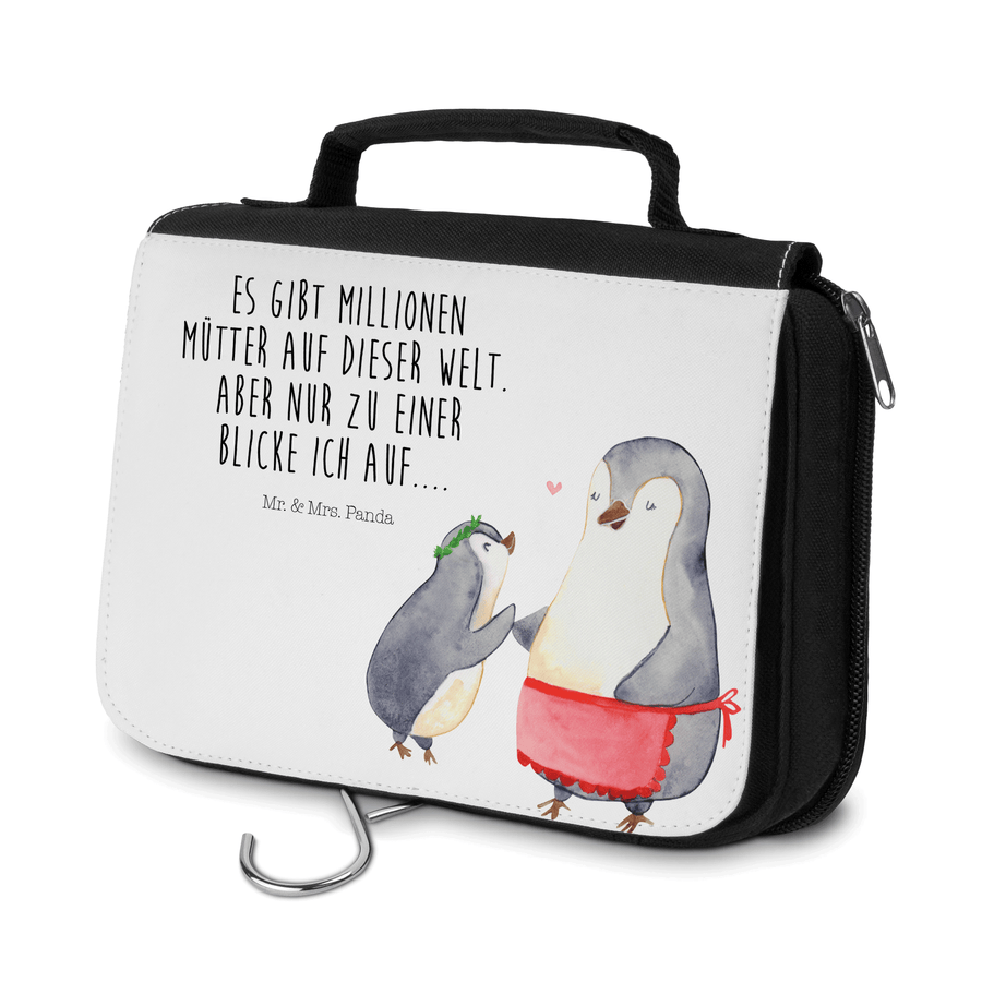 Kulturbeutel Pinguin mit Kind - mit Spruch - Weiß
