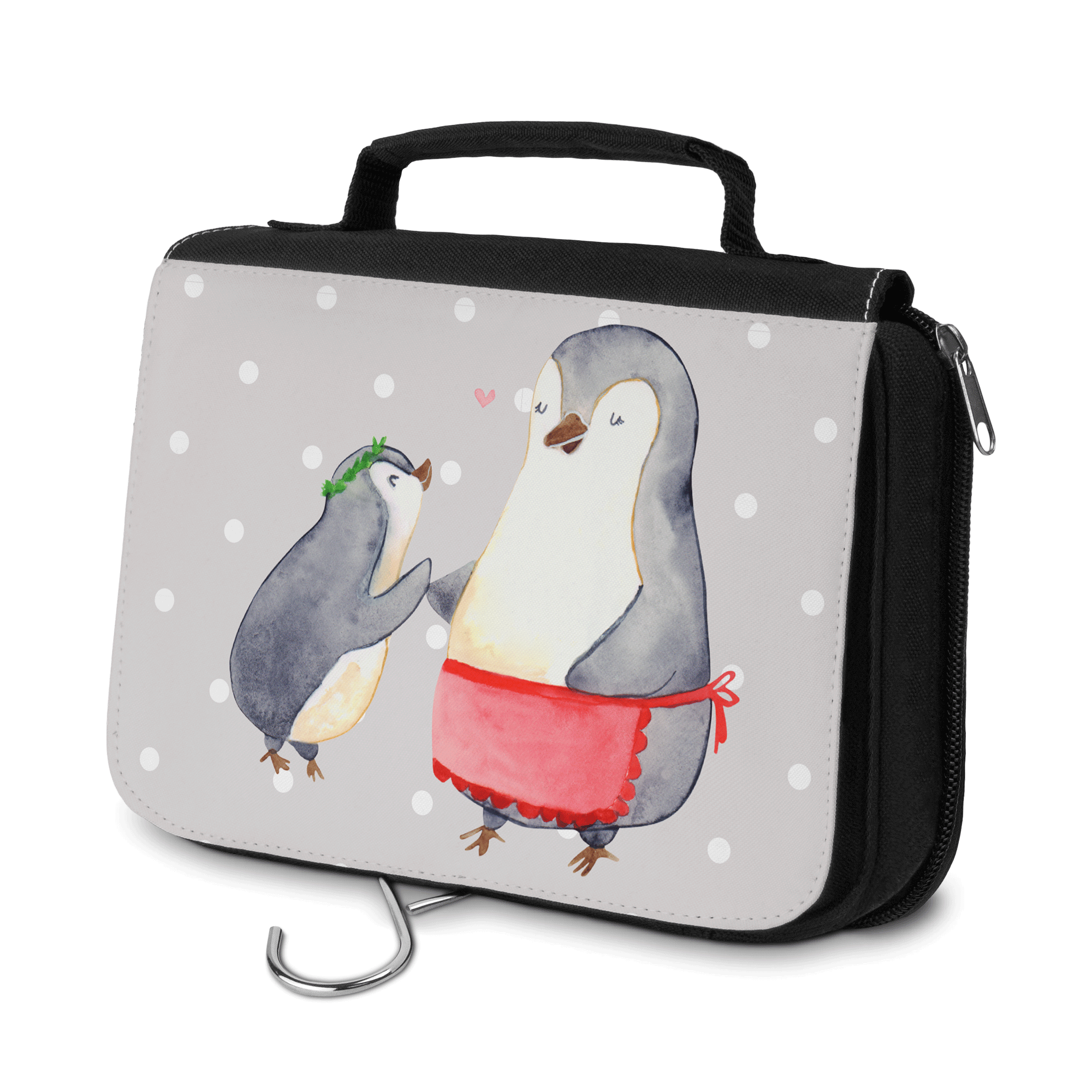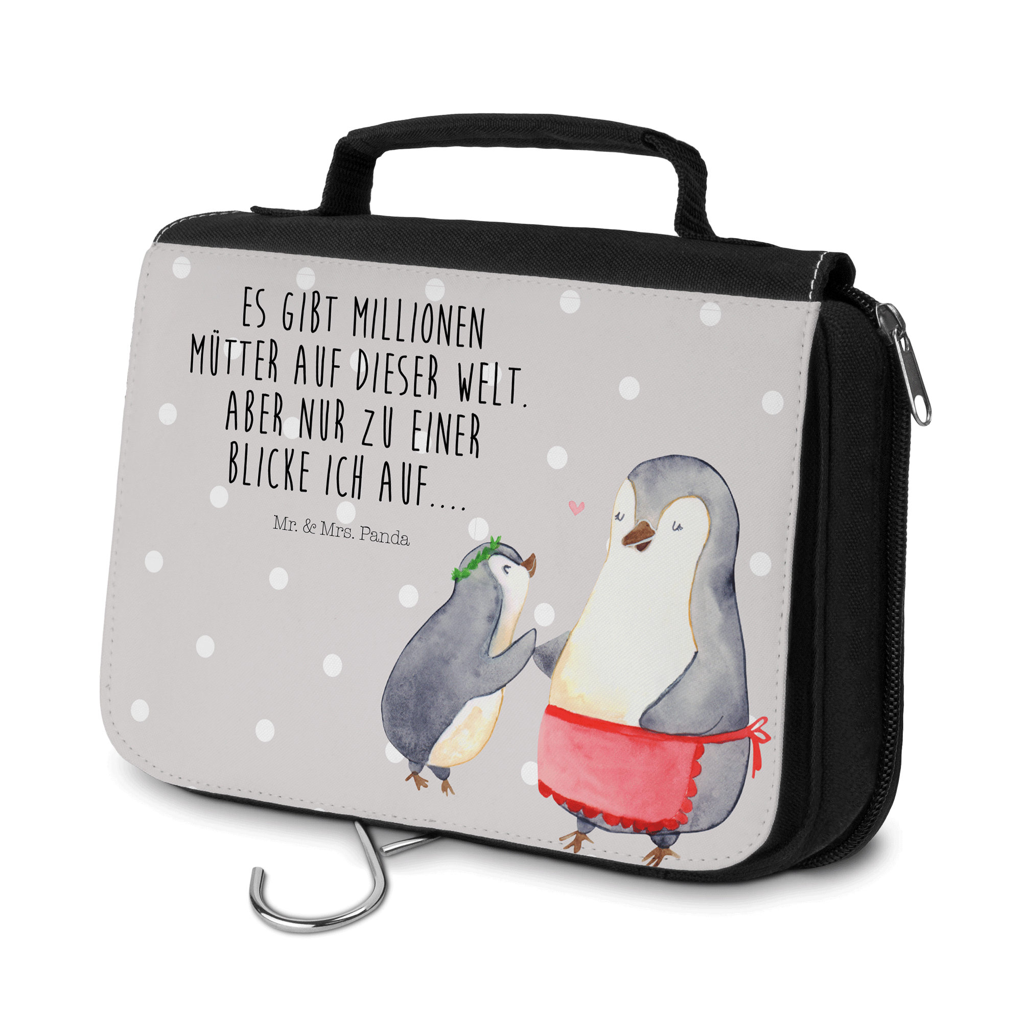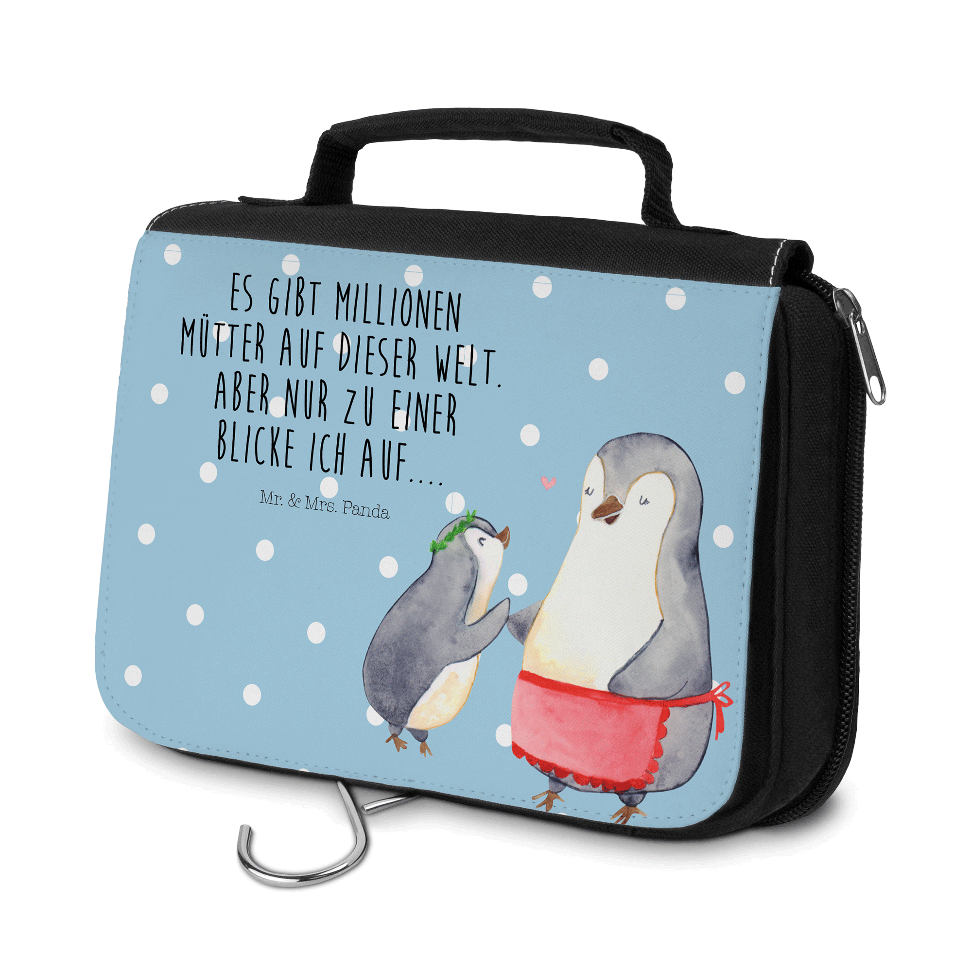 Kulturbeutel Pinguin mit Kind - mit Spruch - Weiß