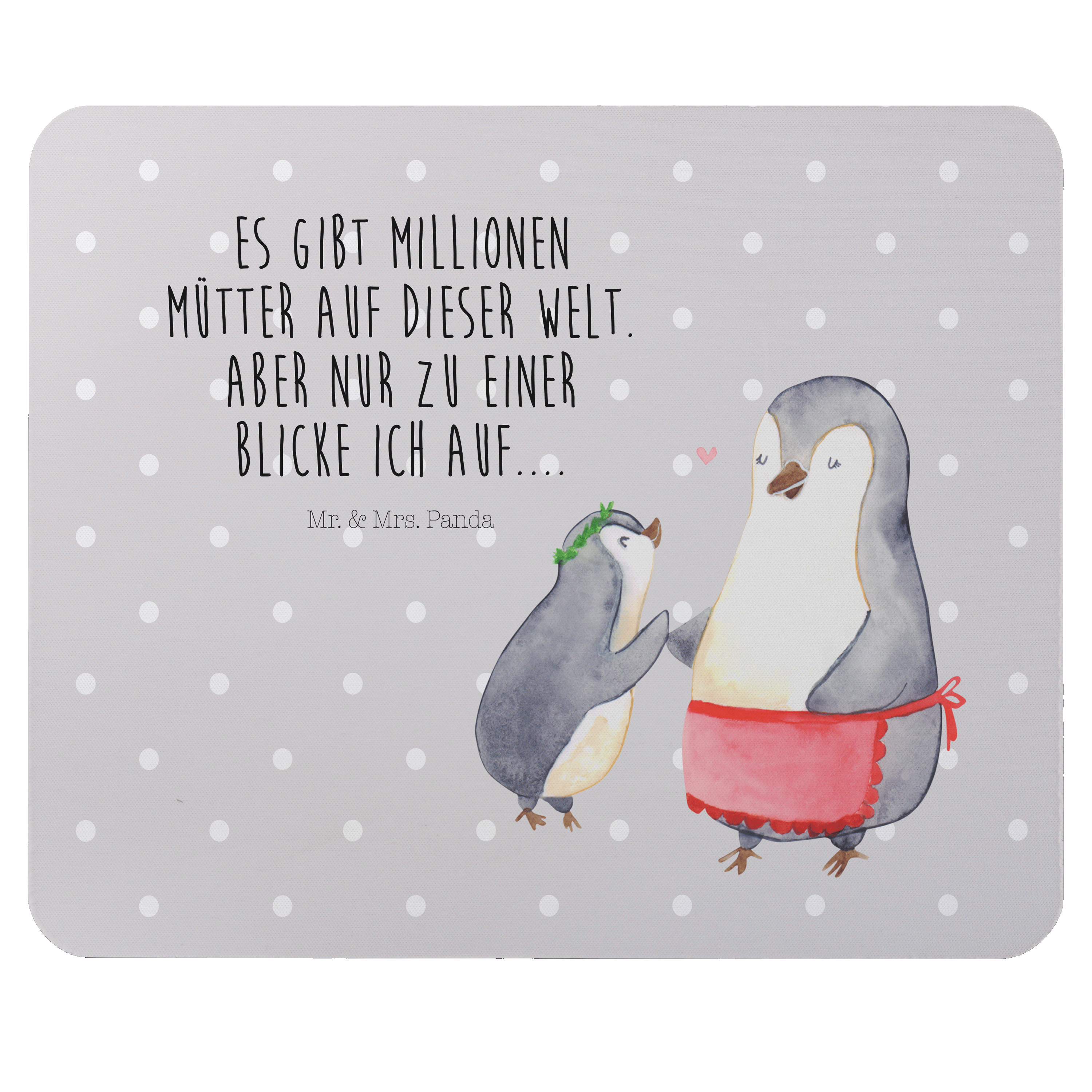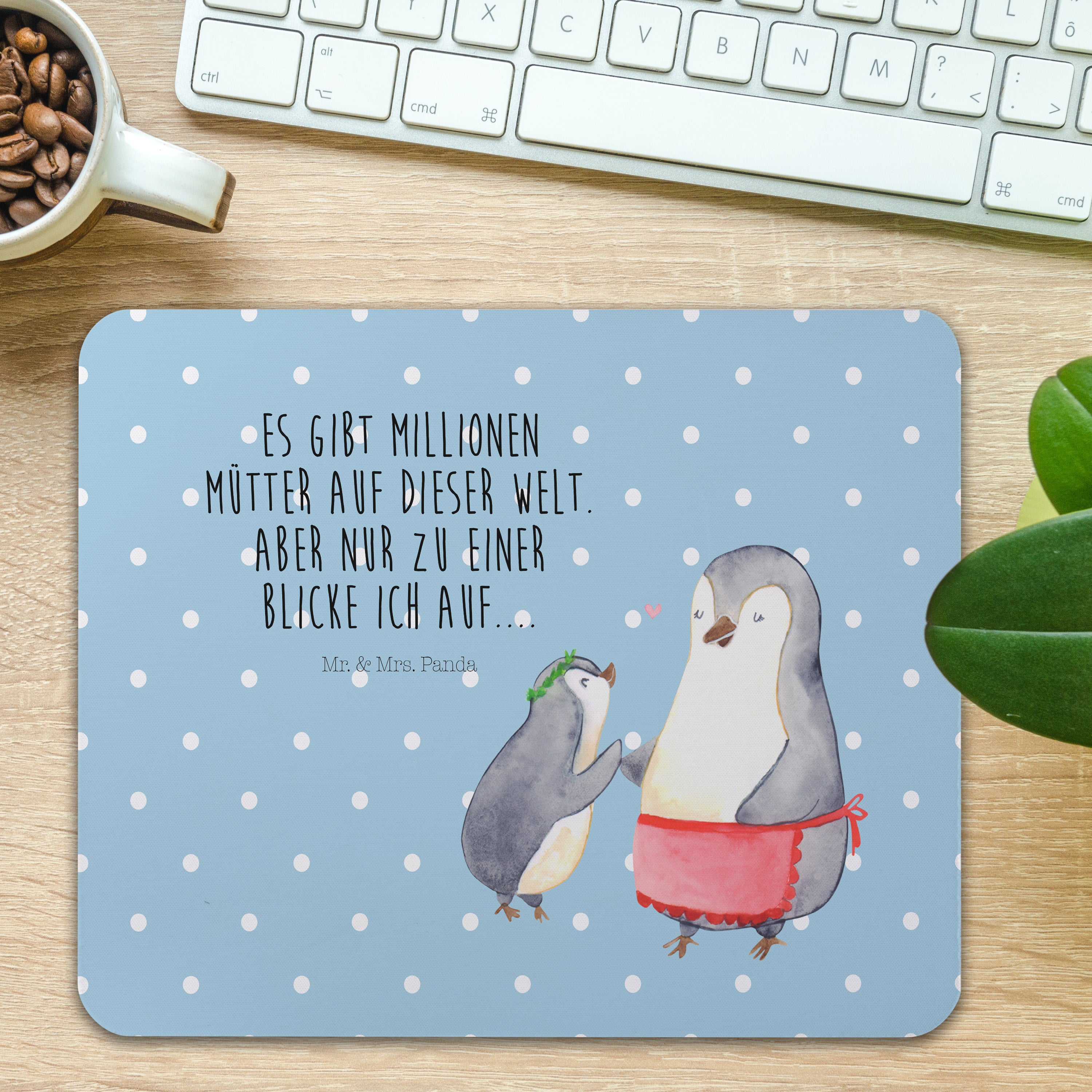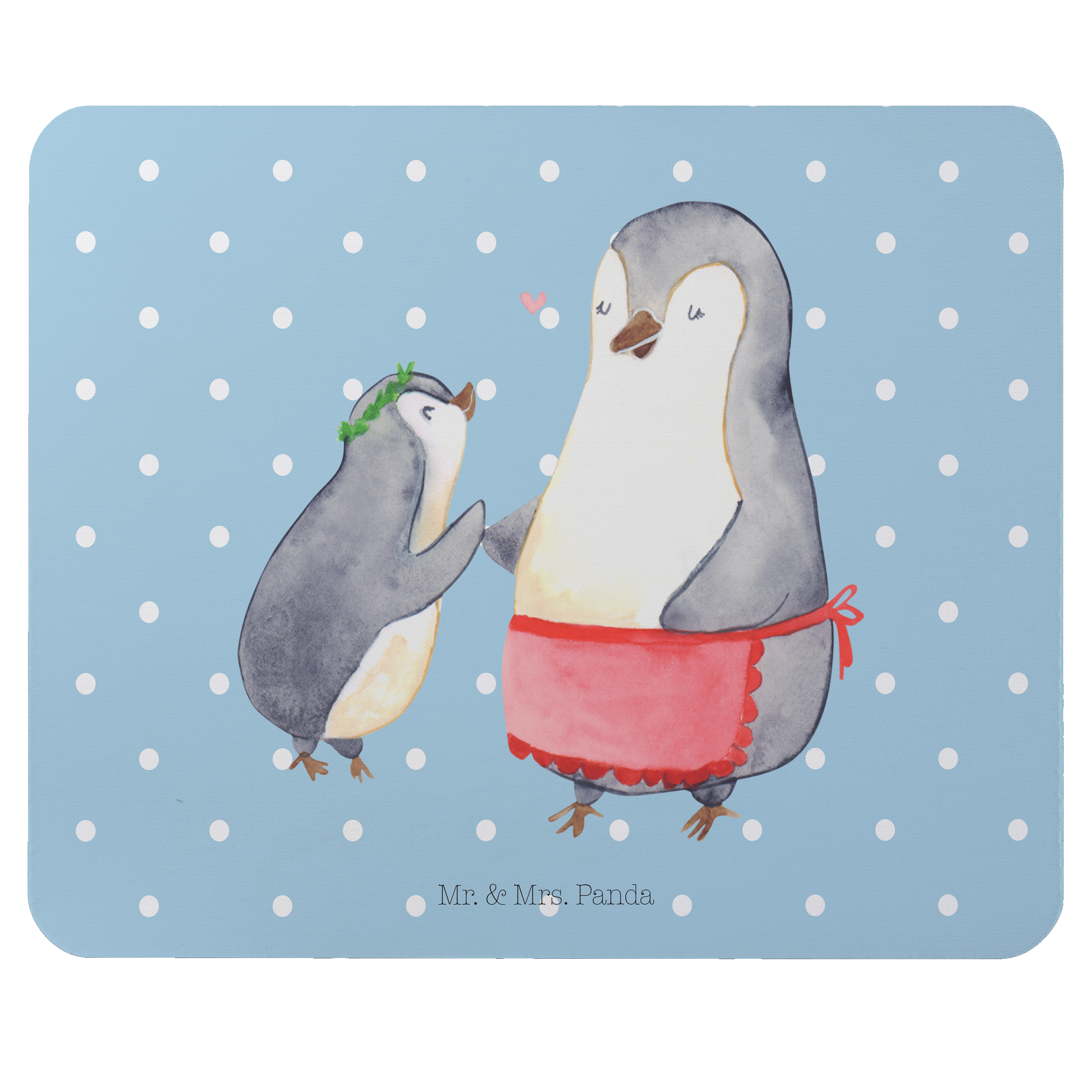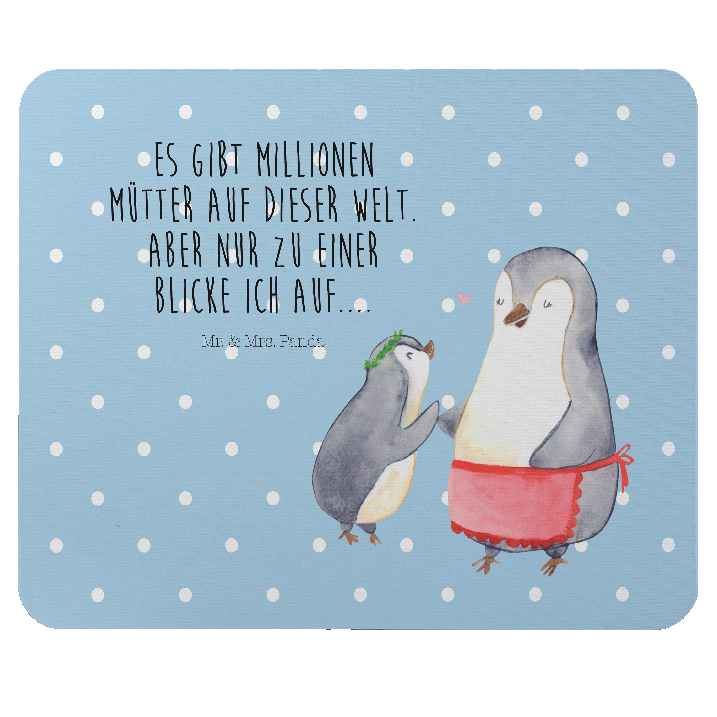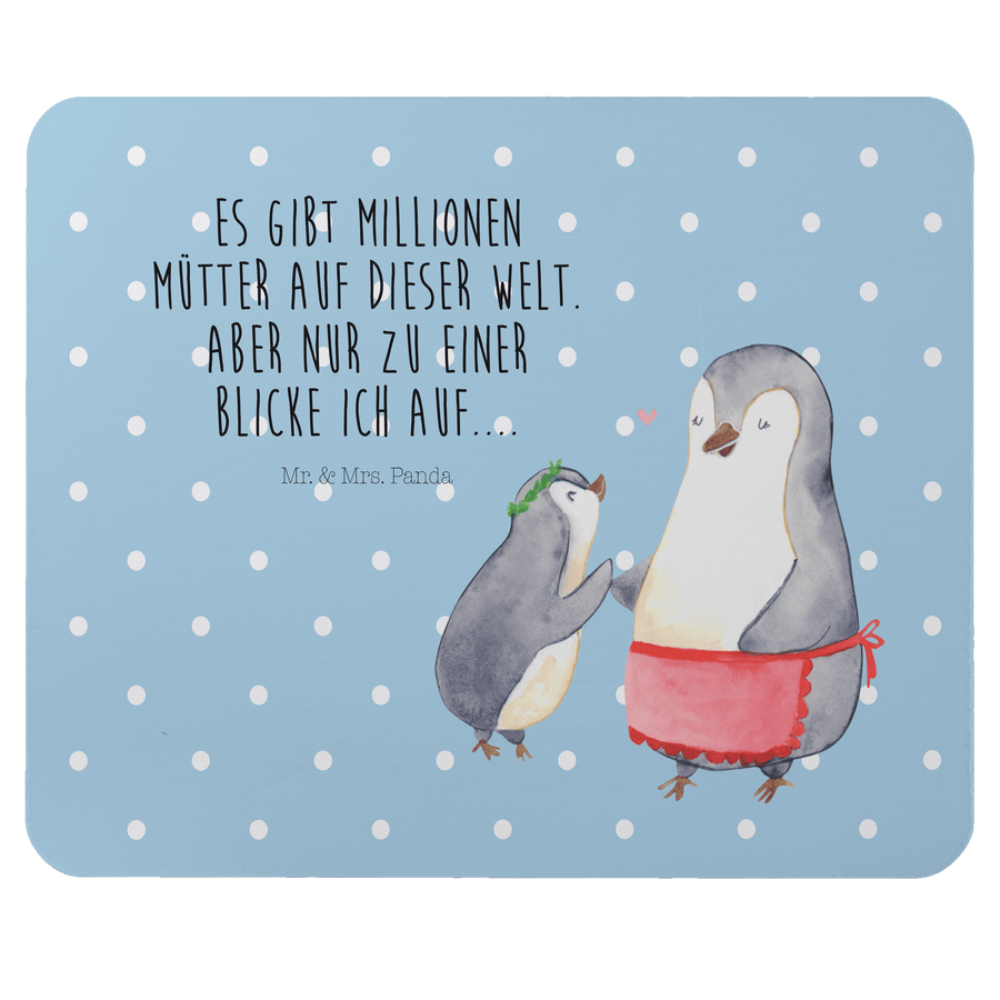 Mauspad Pinguin mit Kind - mit Spruch - Blau Pastell
