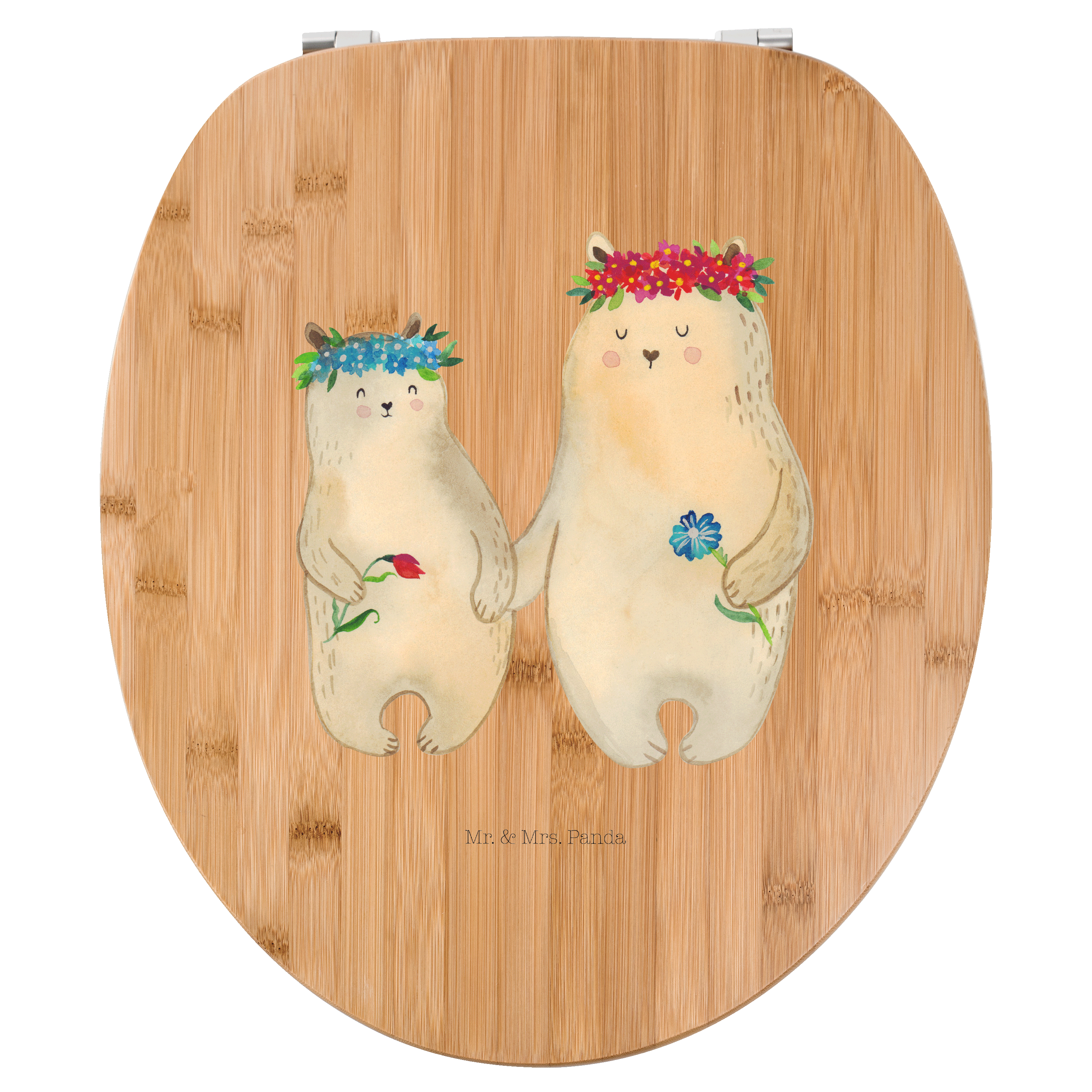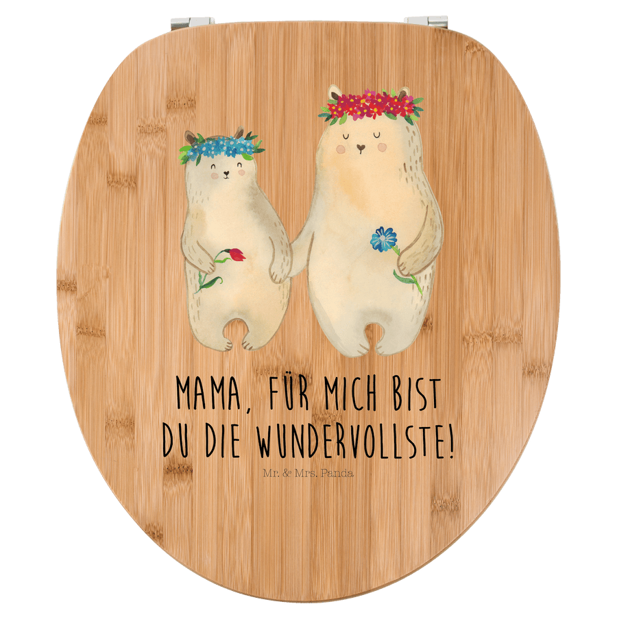 Motiv WC Sitz Bären mit Blumenkranz - mit Spruch - Transparent