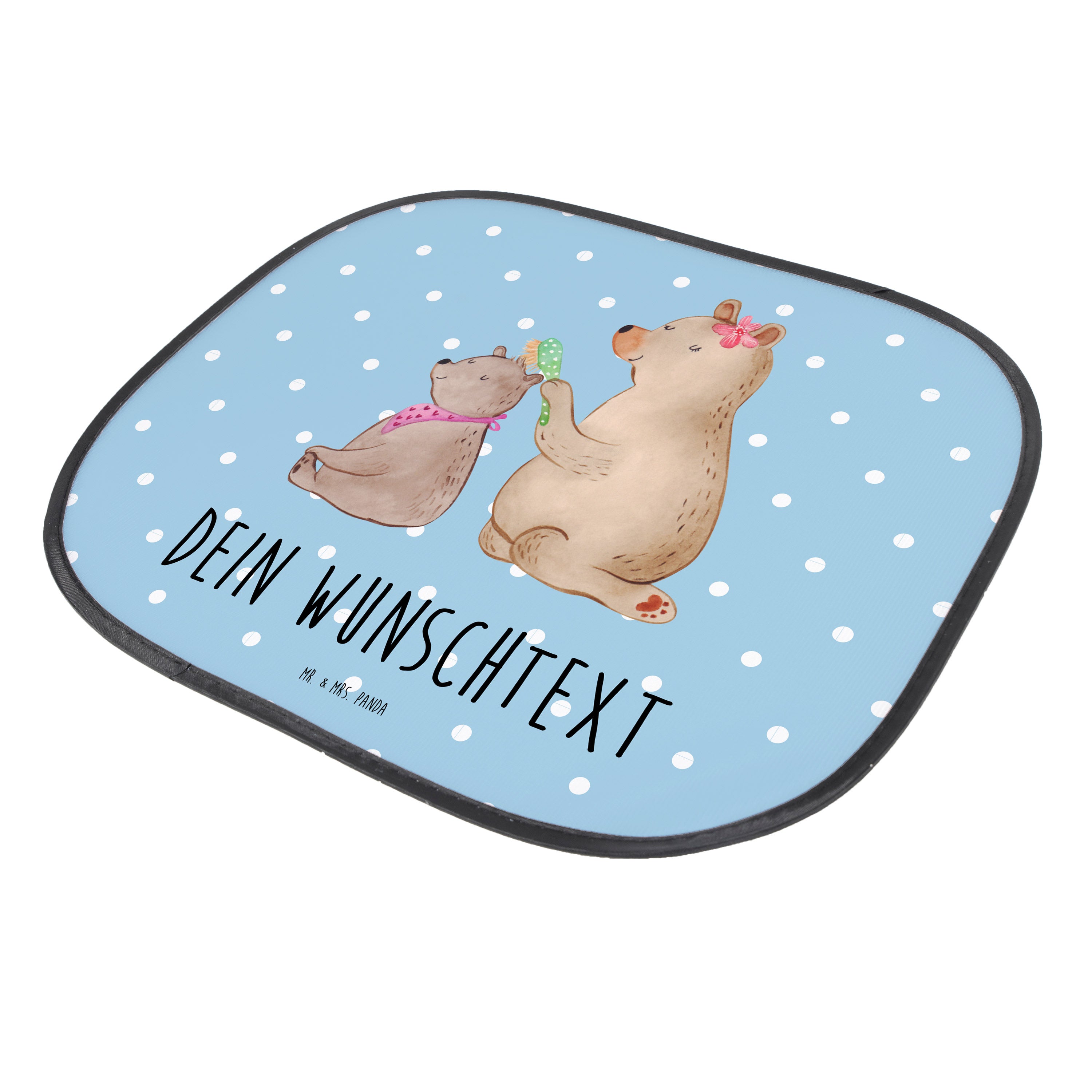 Personalisierbarer Sonnenschutz Bär mit Kind - Blau Pastell