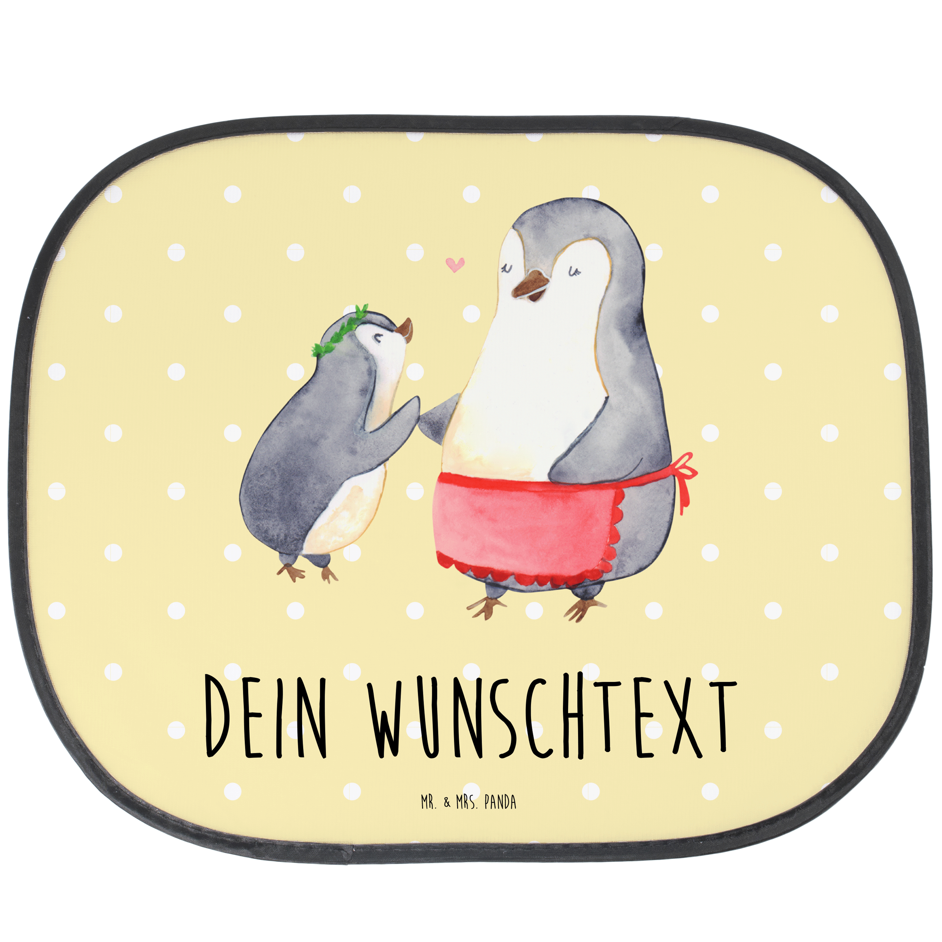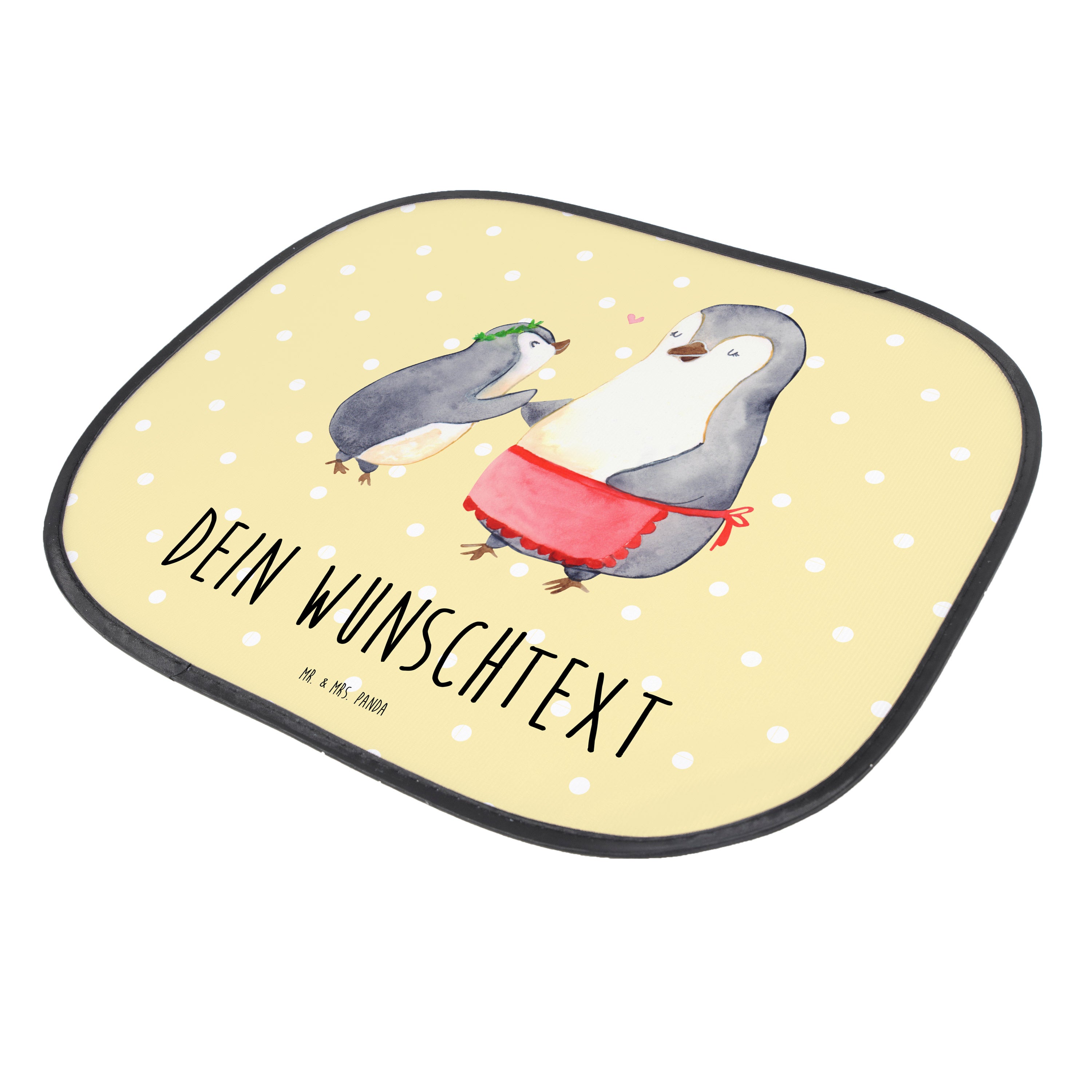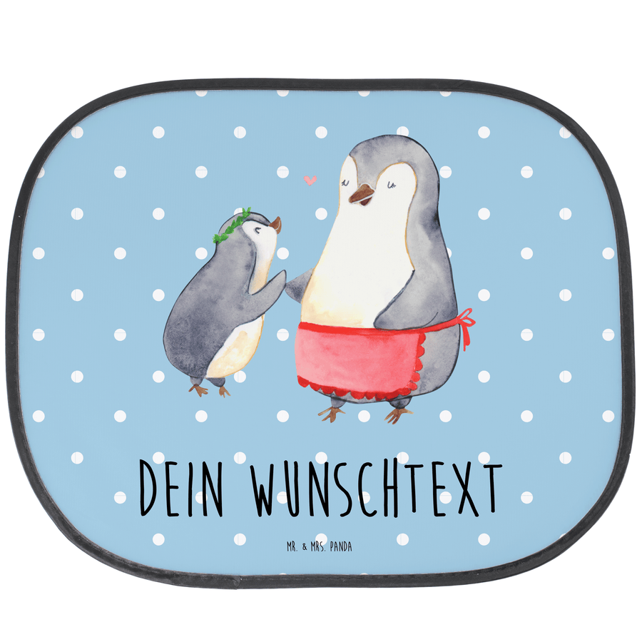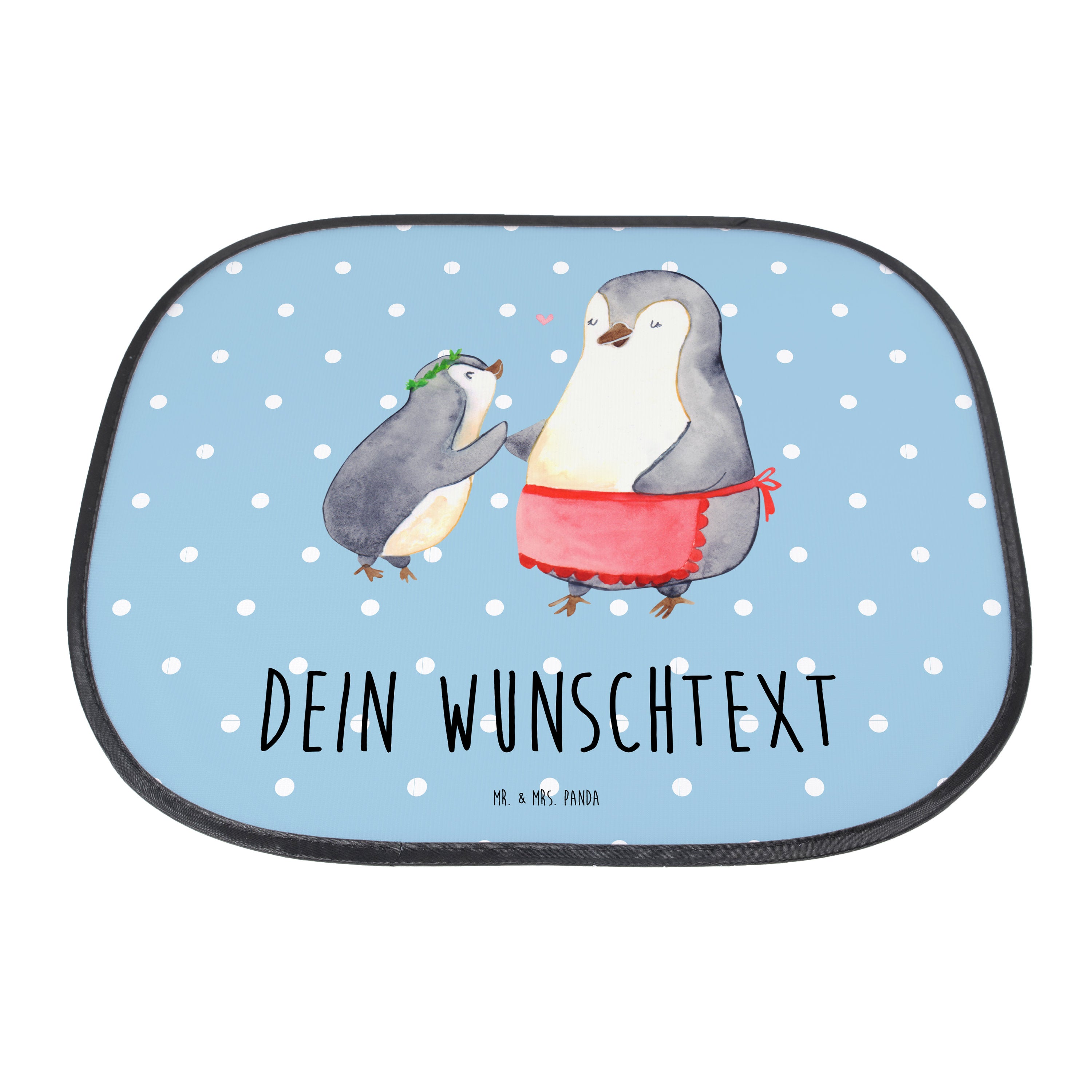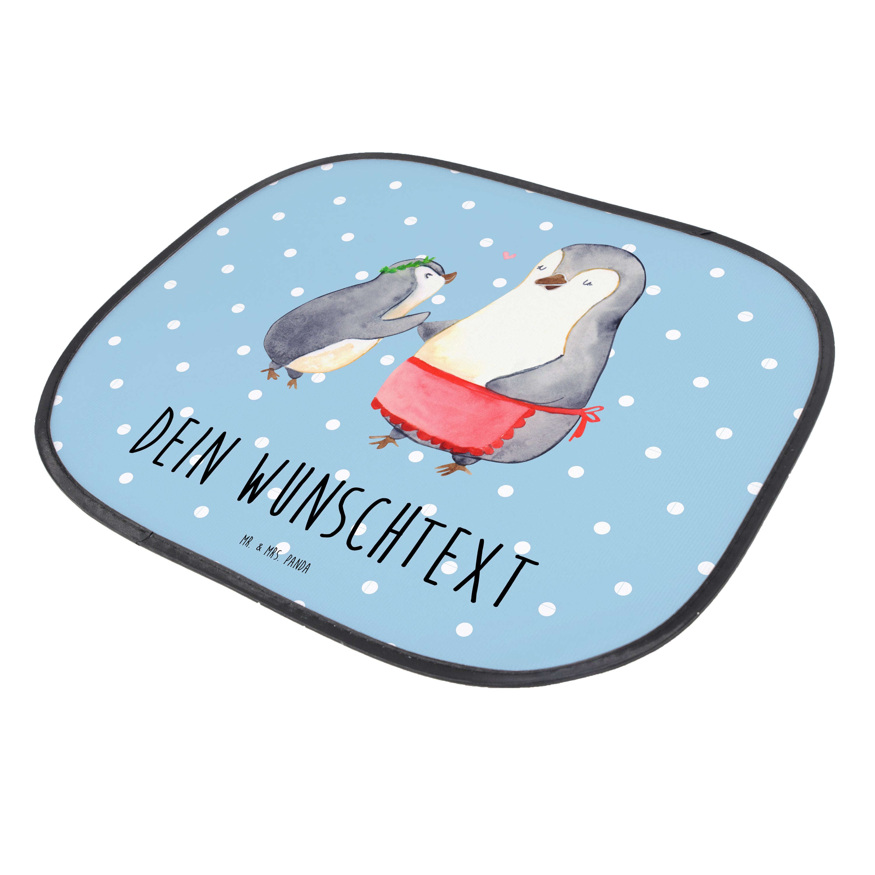 Personalisierbarer Sonnenschutz Pinguin mit Kind - Blau Pastell