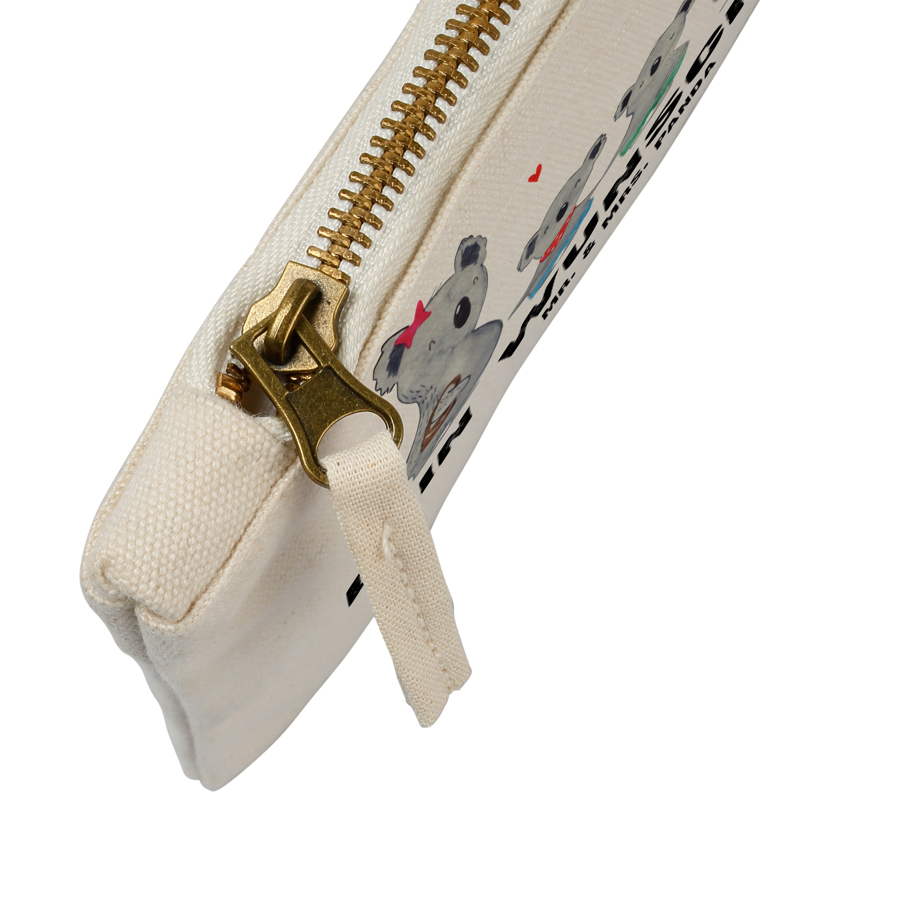 Eine wunderschöne Schminktasche von Mr. & Mrs. Panda mit Reißverschlussfach. Diese Kosmetiktasche oder Kosmetikbeutel ist aus 100% Baumwolle und bedruckt mit unseren wunderschönen handgezeichneten Motiven. Hol dir dieses einzigartige Etui direkt nach Hause - du kannst die Tasche auch perfekt als Stiftemäppchen, Federmappe, Schlamper oder Etui verwenden.