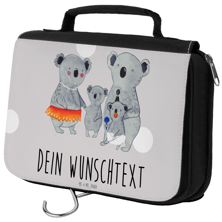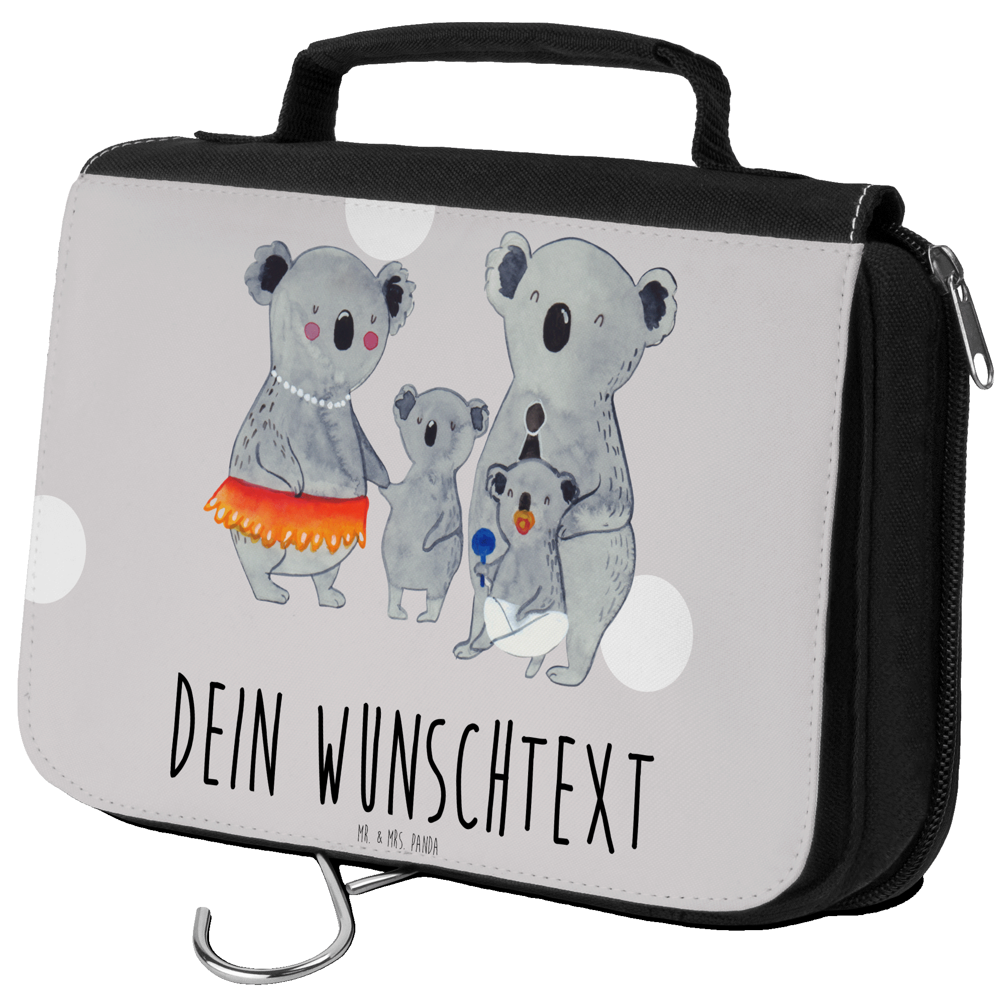 Personalisierter Kulturbeutel Koala Familie - Grau Pastell