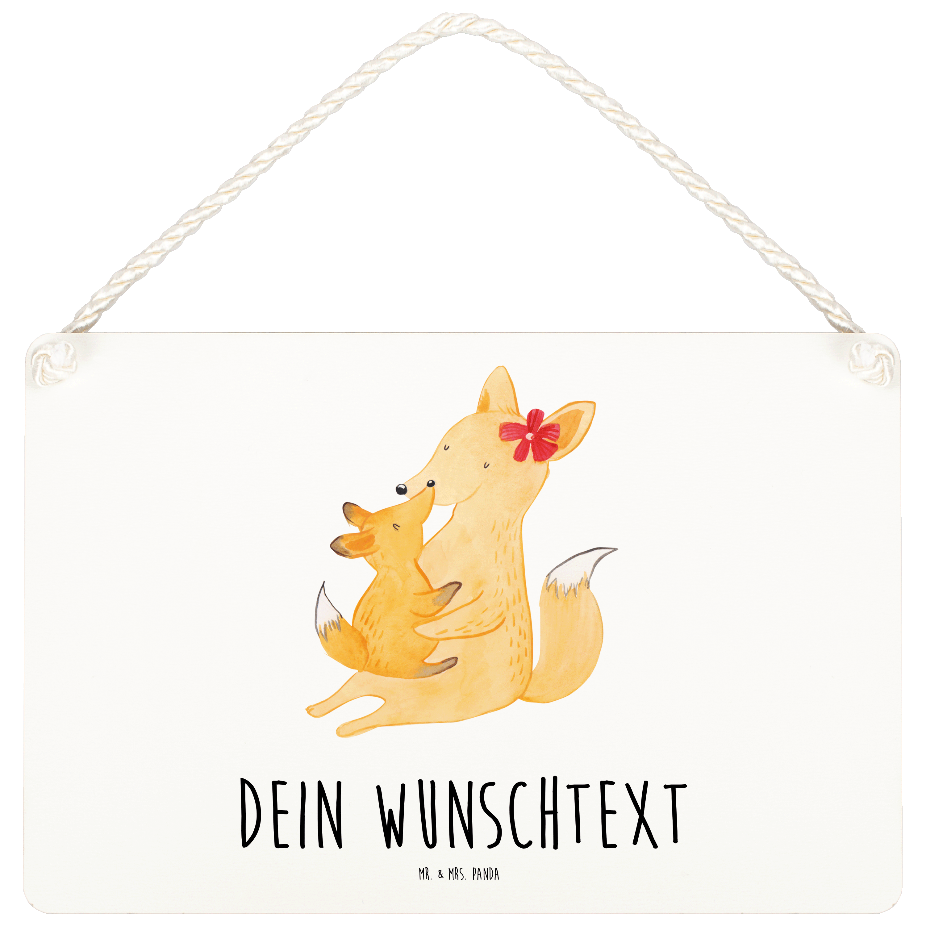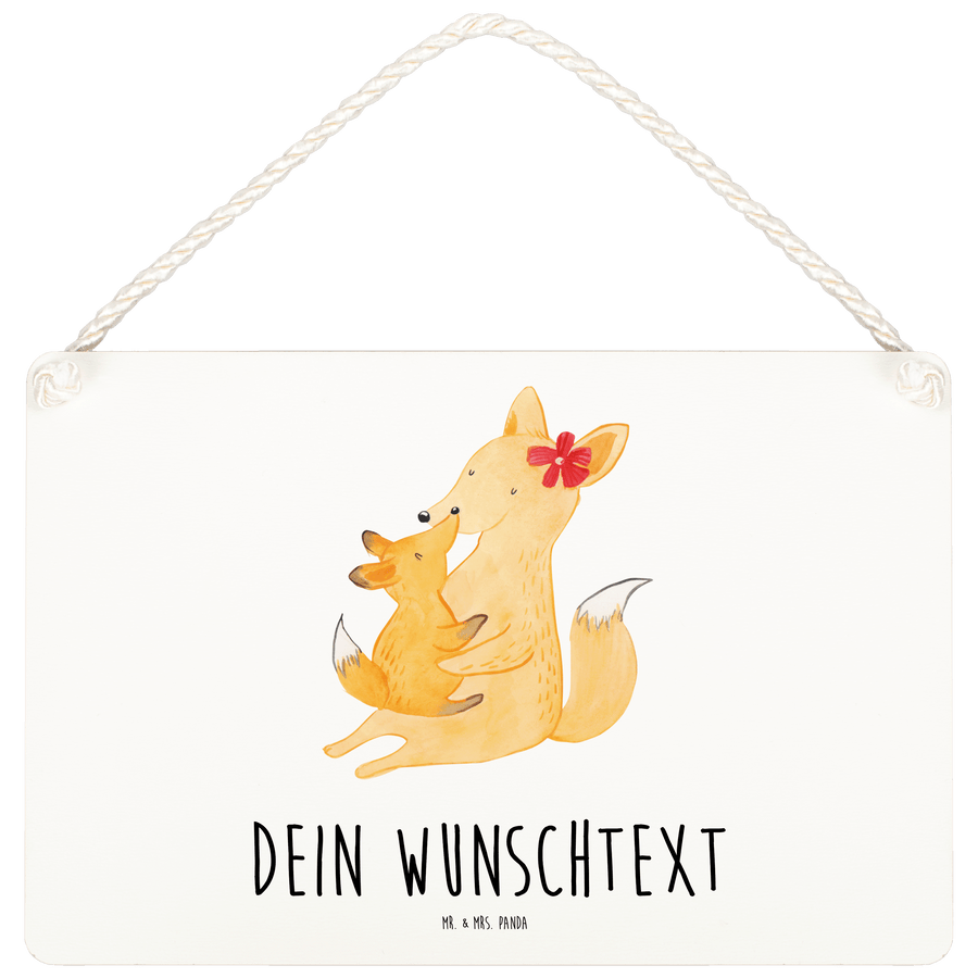 Personalisiertes Deko Schild Fuchs Mama & Kind - Weiß - DIN A6