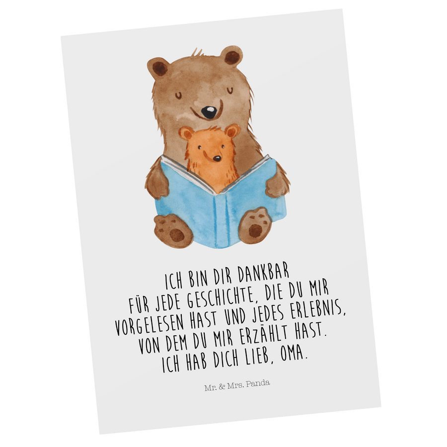 Postkarte Bären Buch - mit Spruch - Weiß