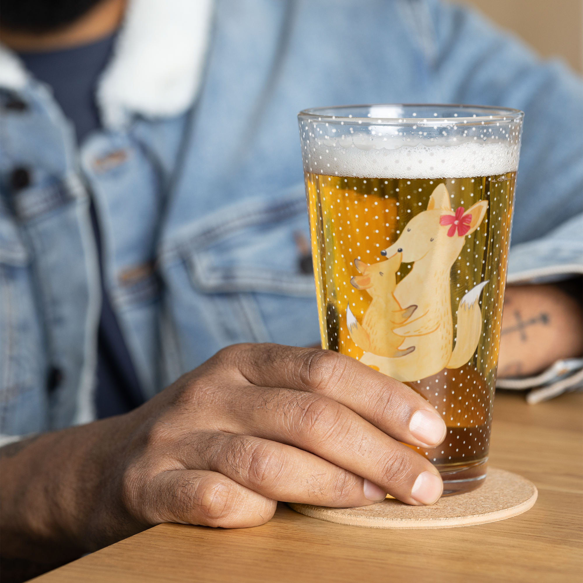 Premium Trinkglas Fuchs Mama & Kind - mit Spruch