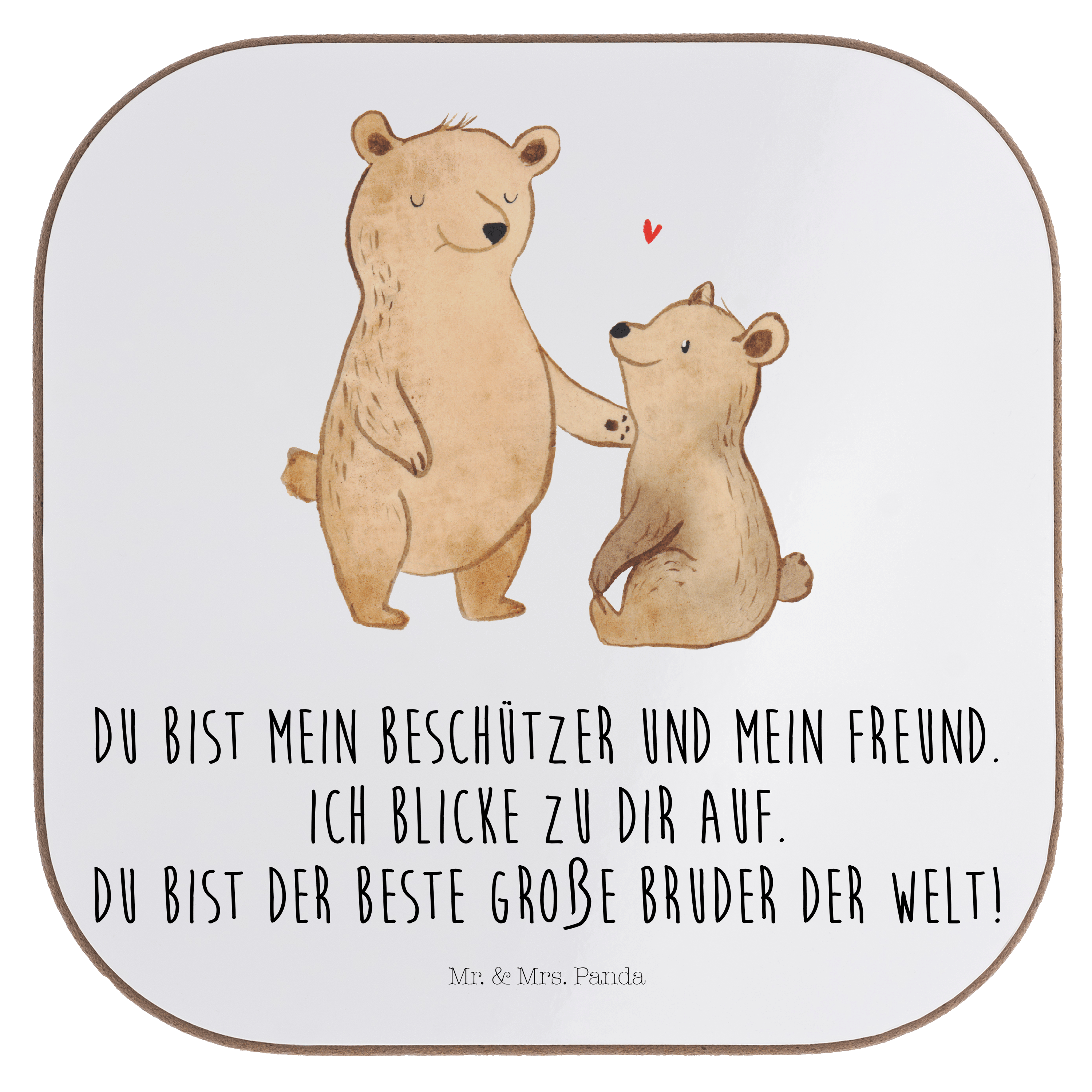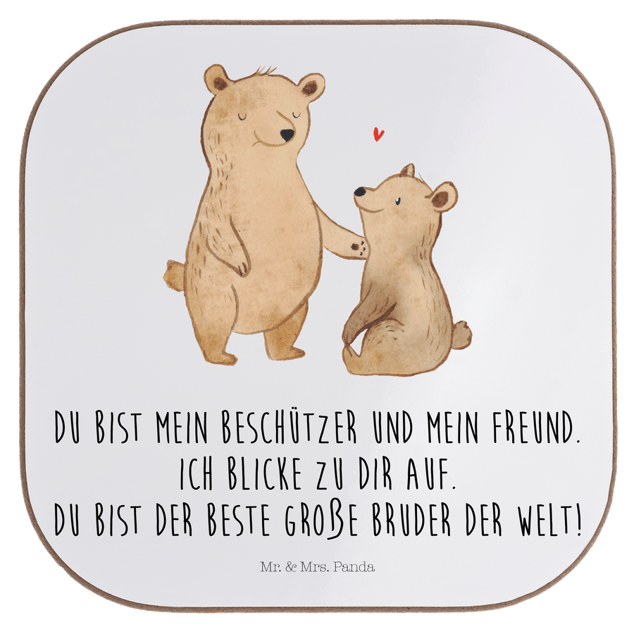 Quadratische Untersetzer Bär Großer Bruder - mit Spruch