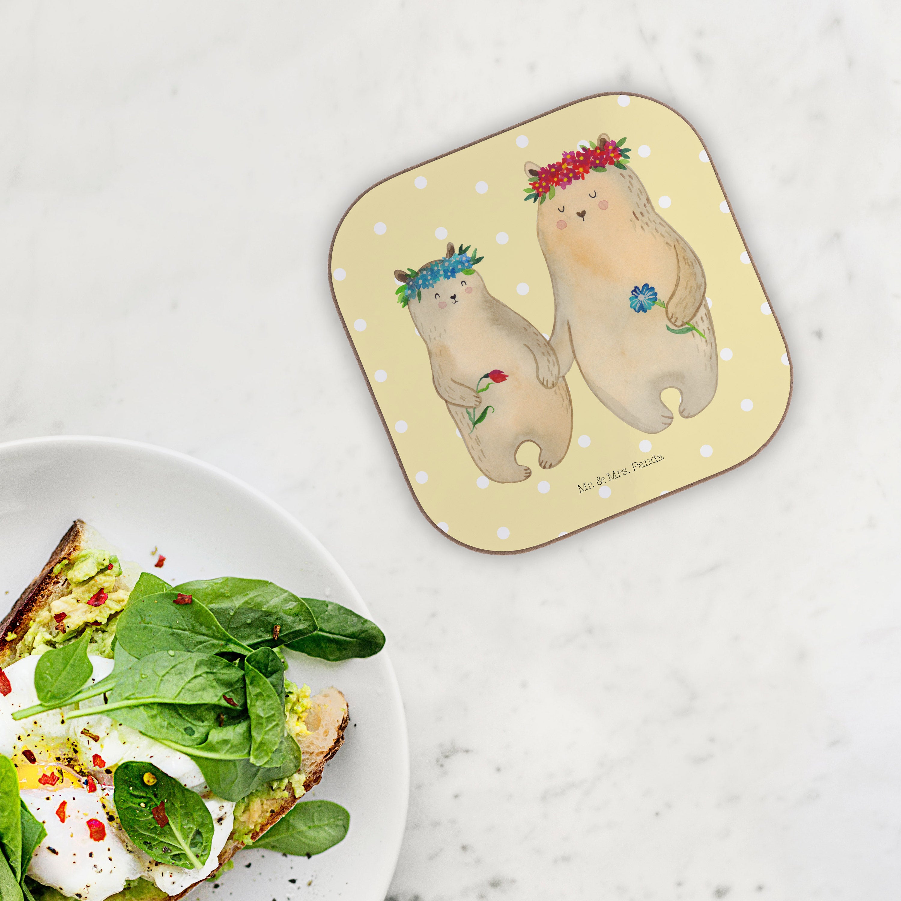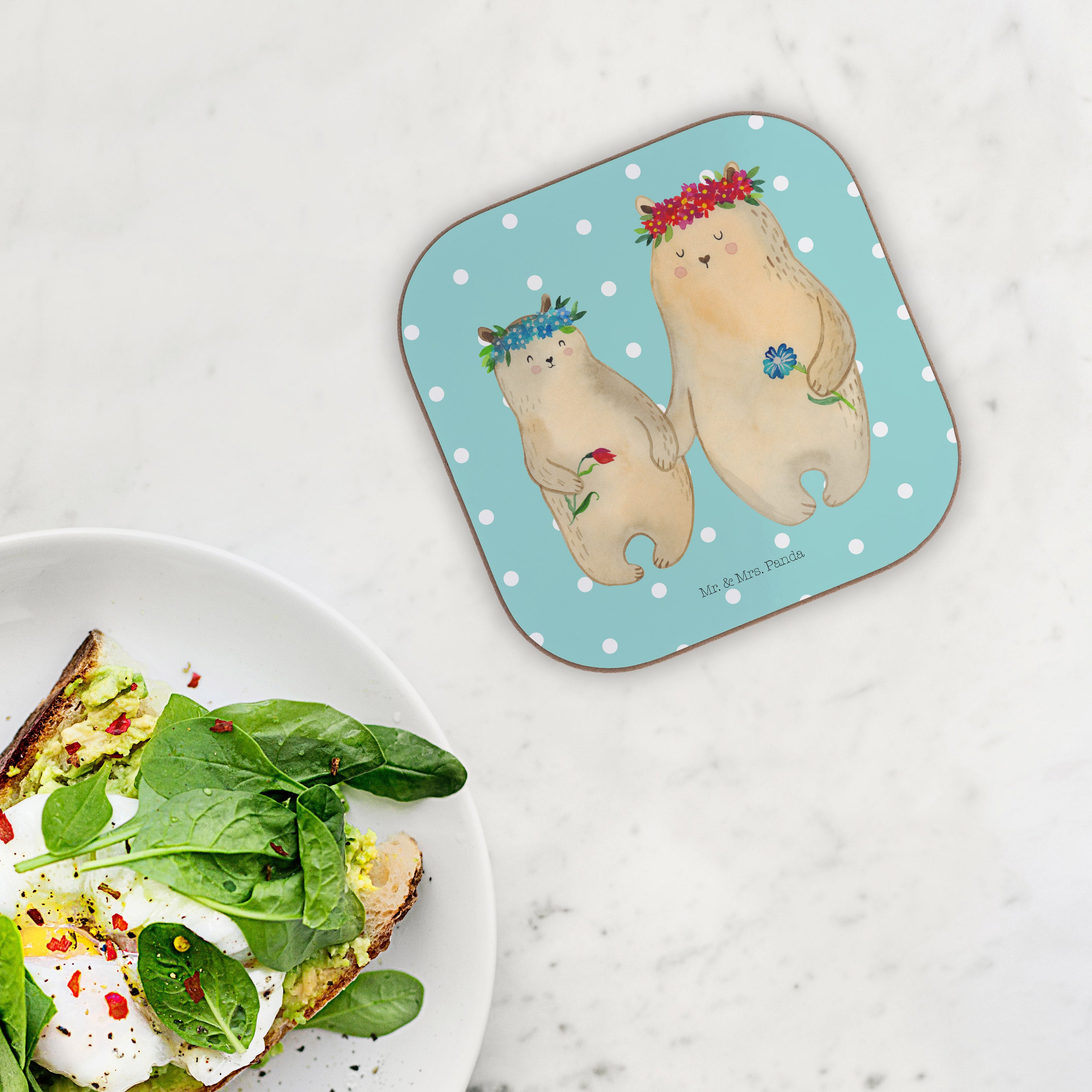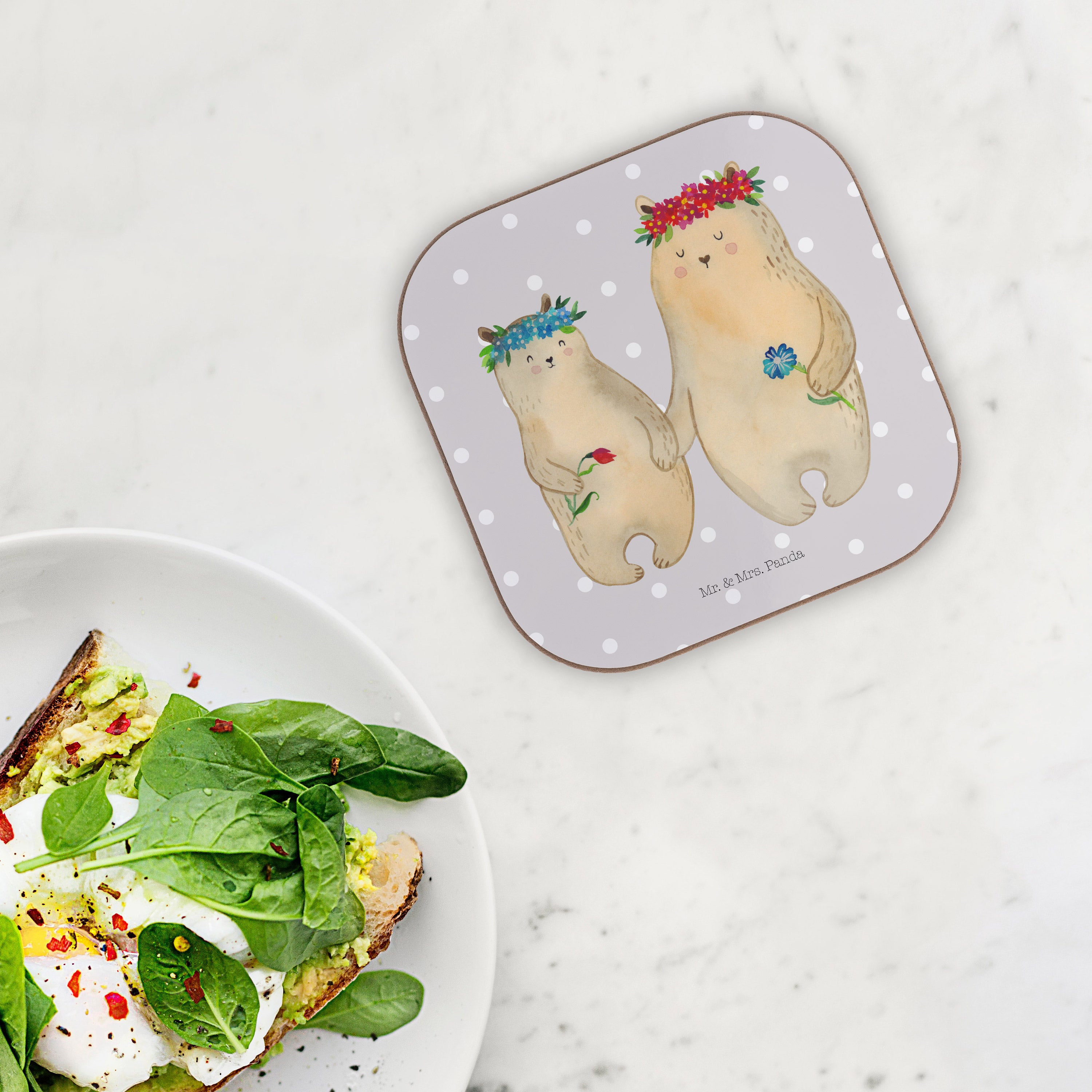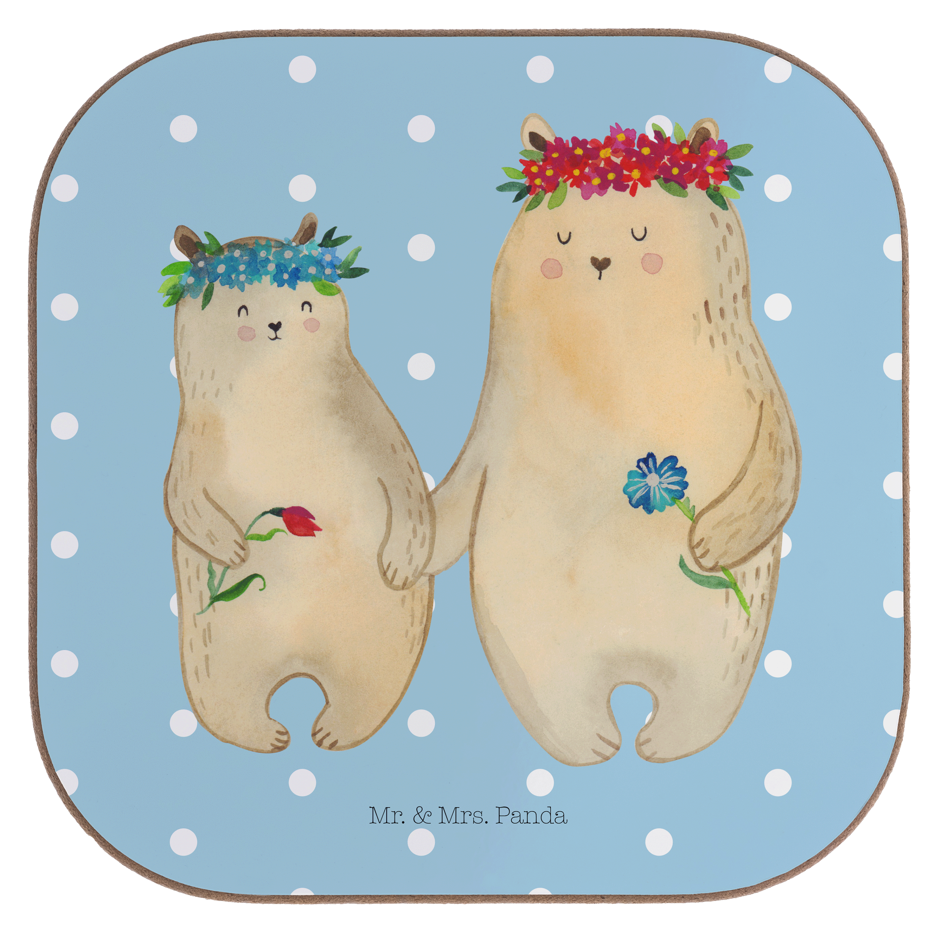 Quadratische Untersetzer Bären mit Blumenkranz - mit Spruch - Weiß