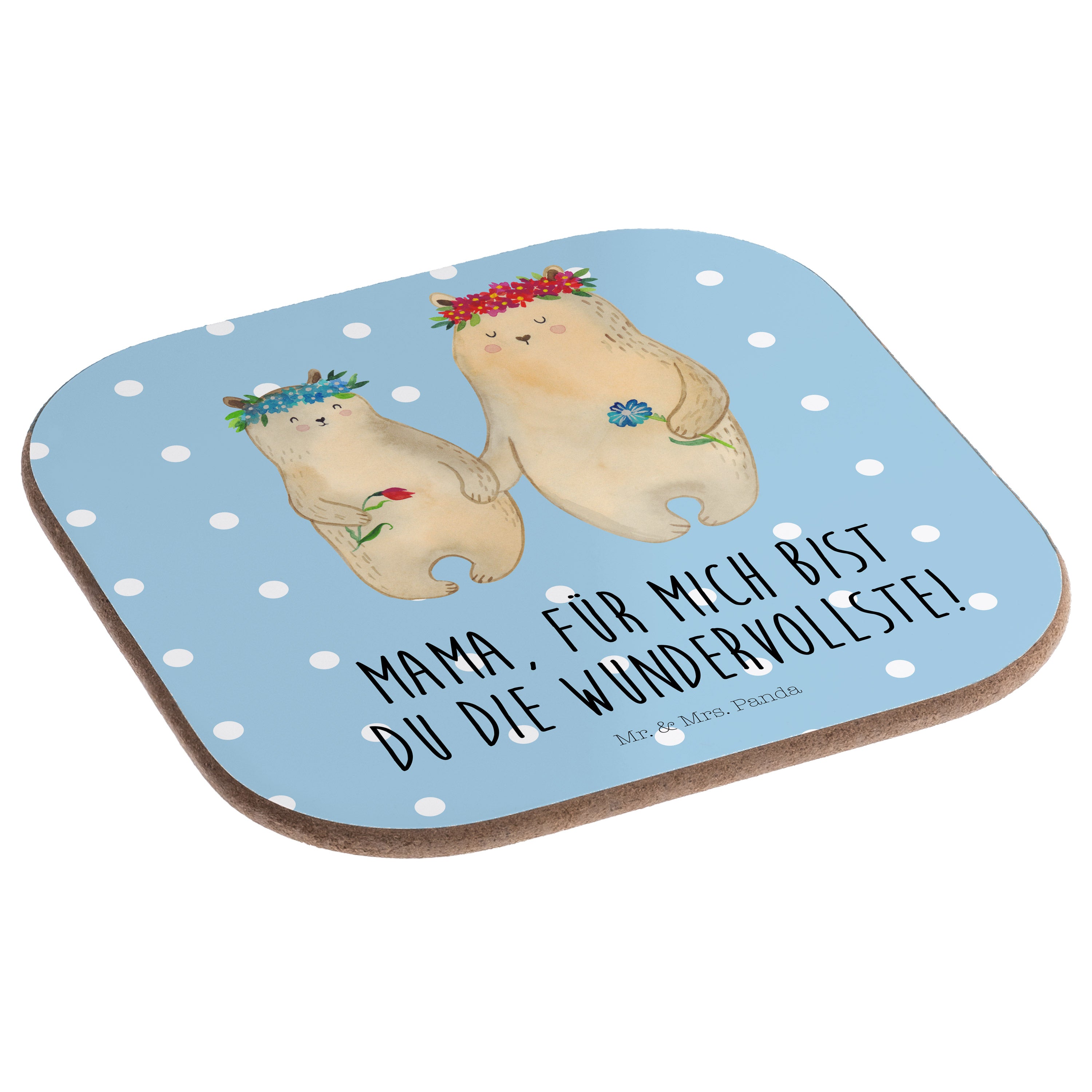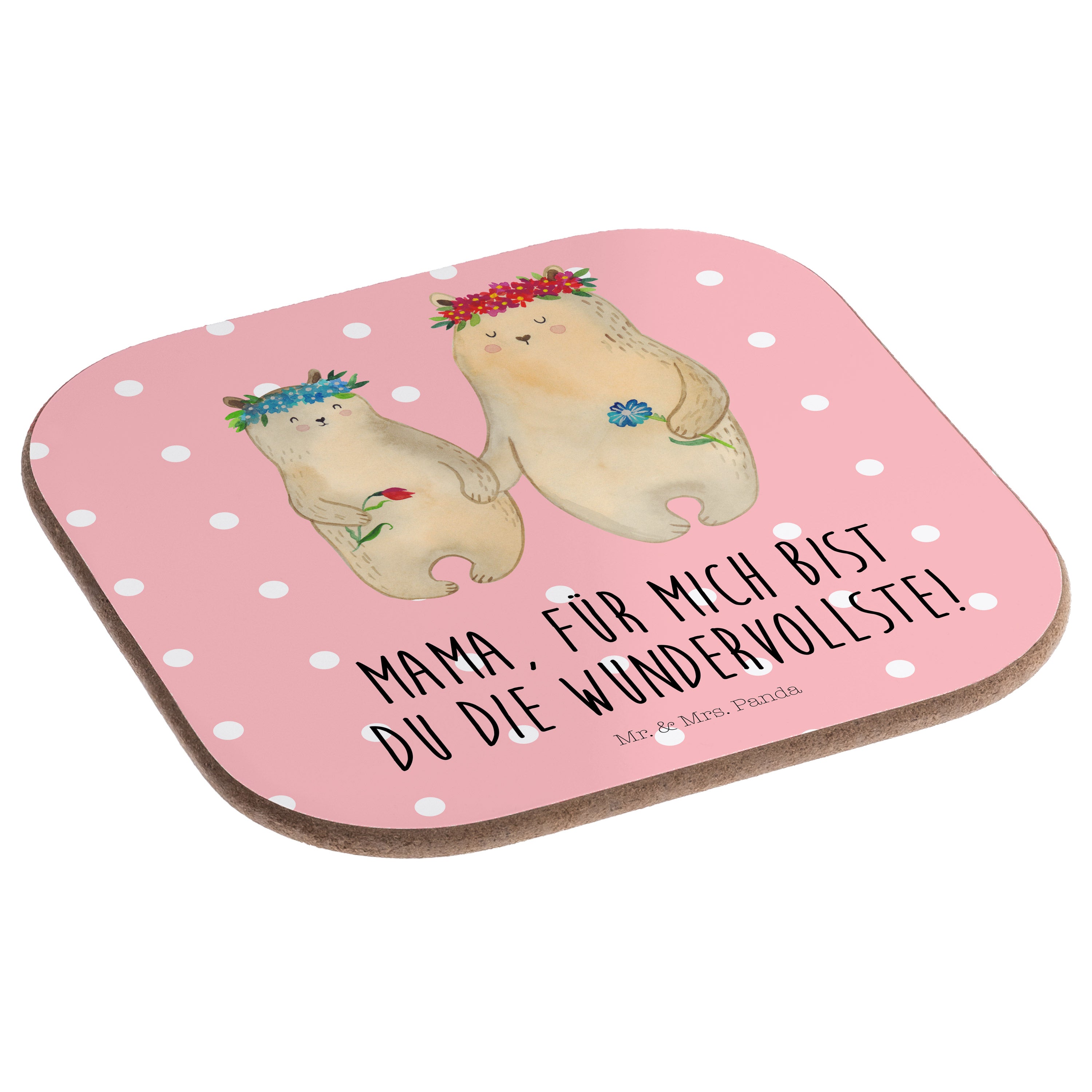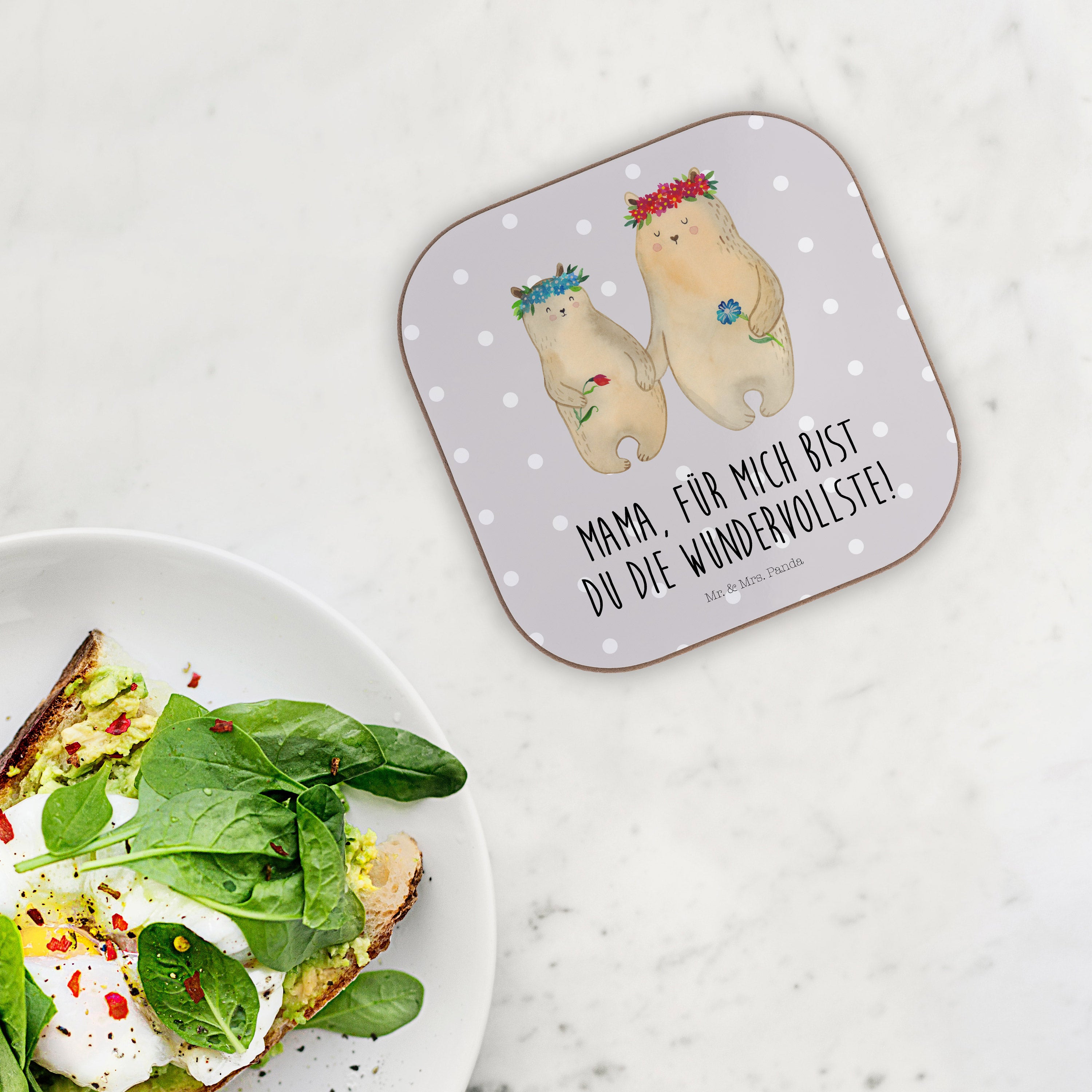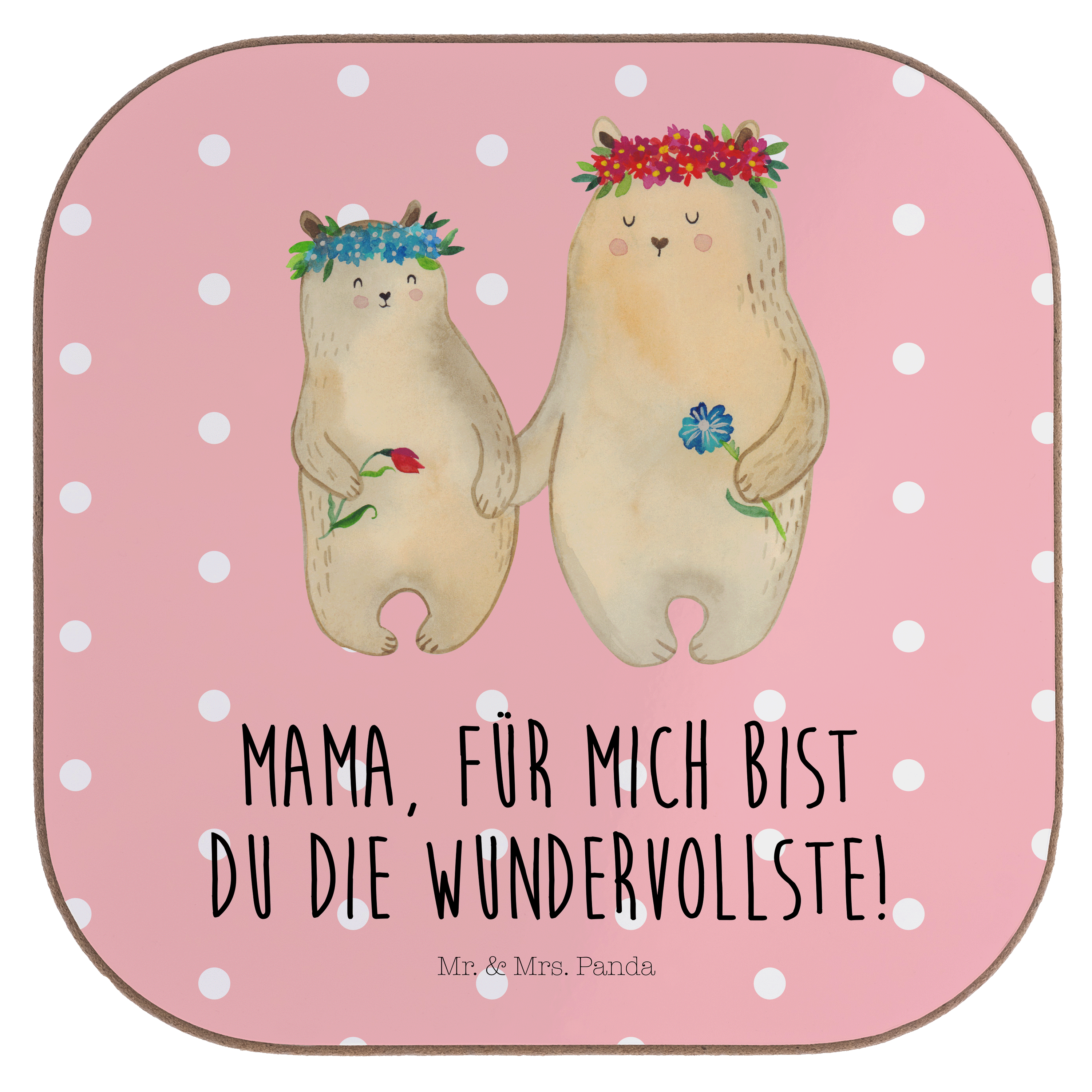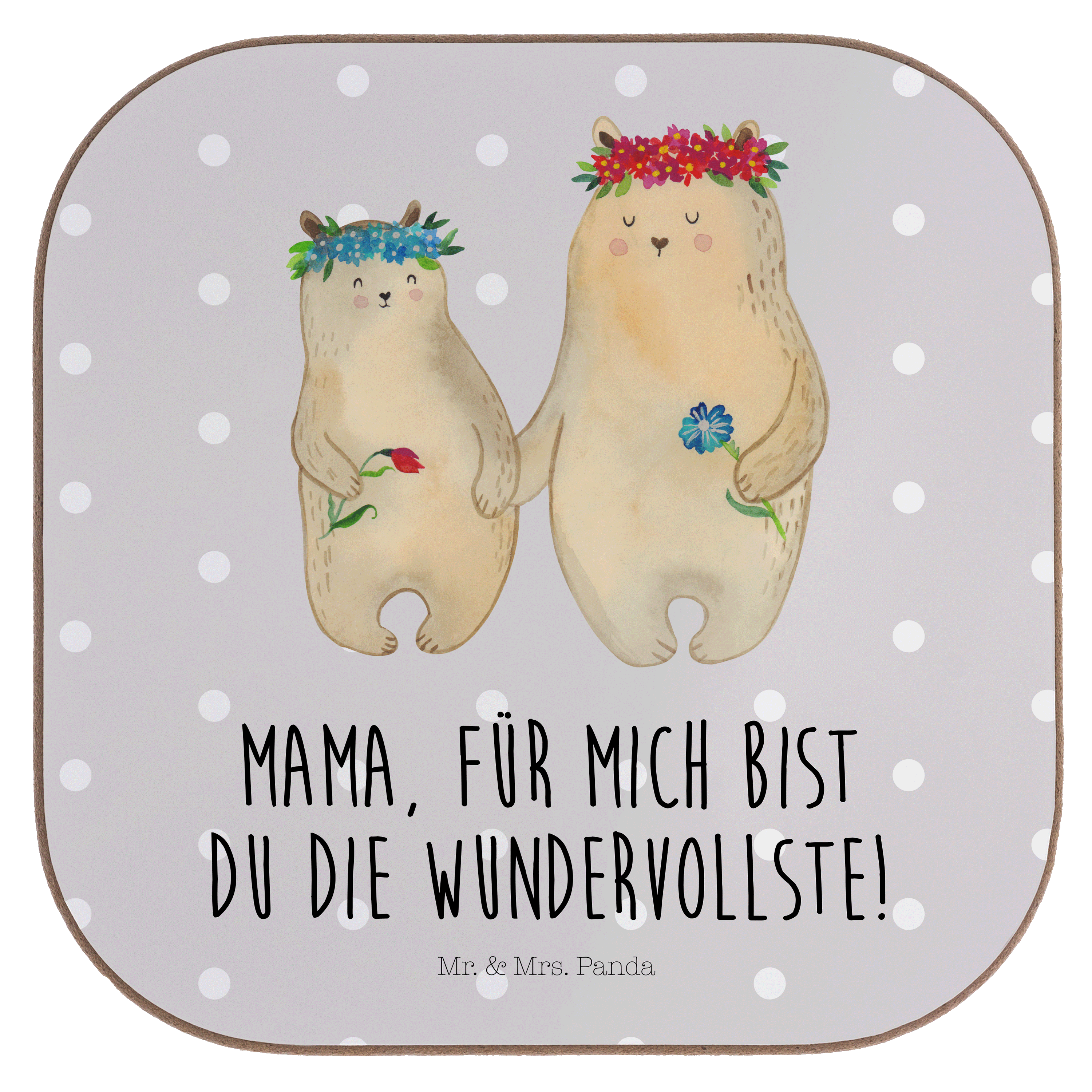 Quadratische Untersetzer Bären mit Blumenkranz - mit Spruch - Weiß