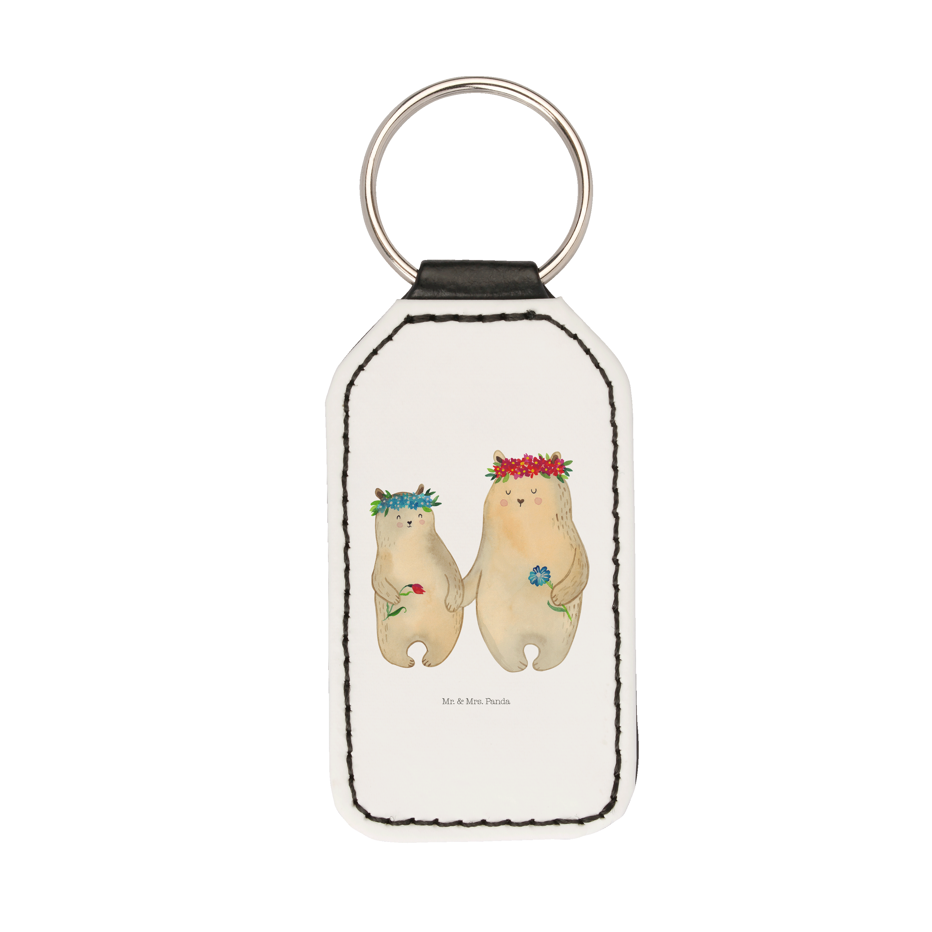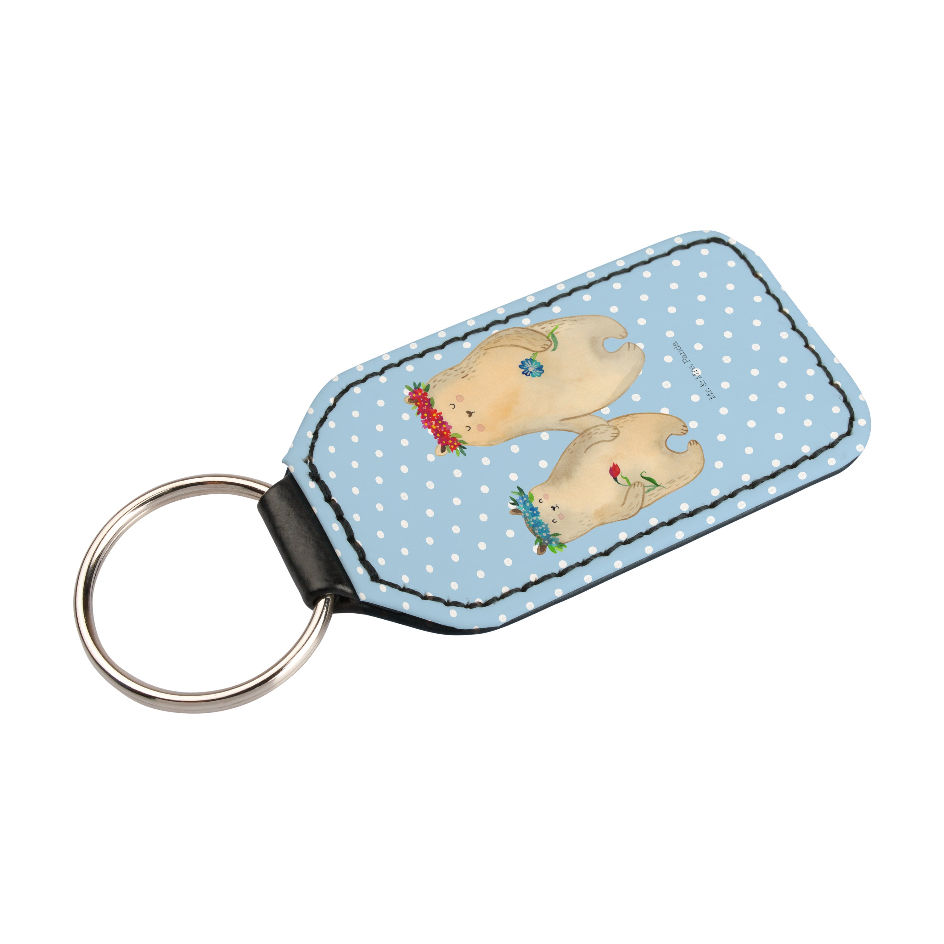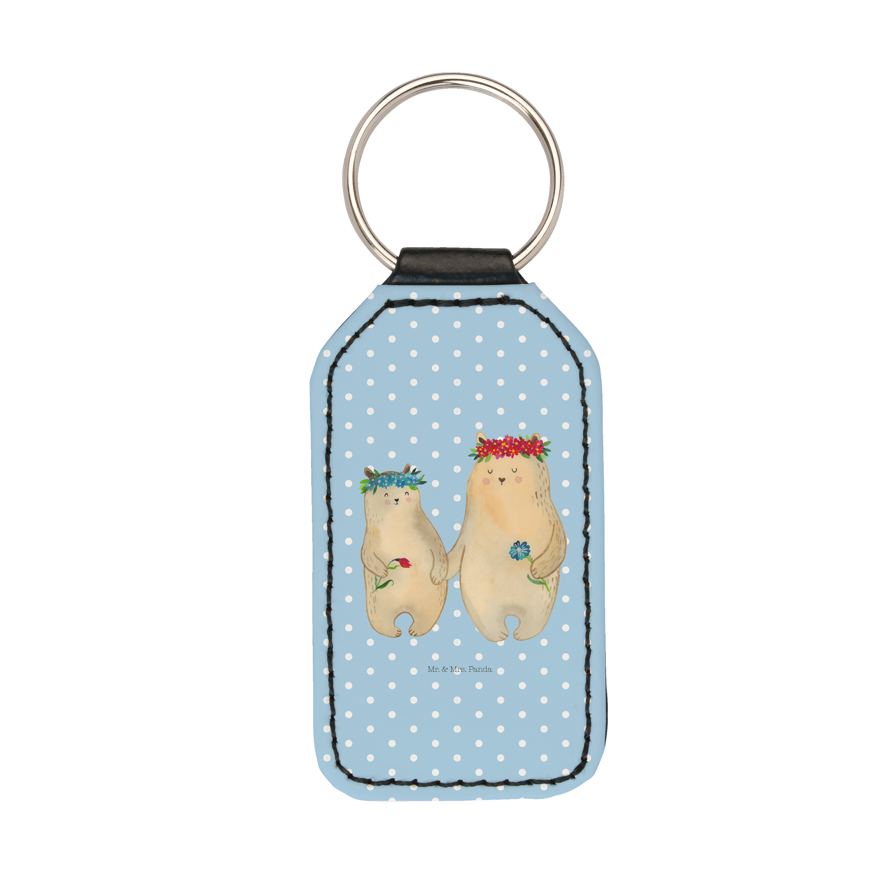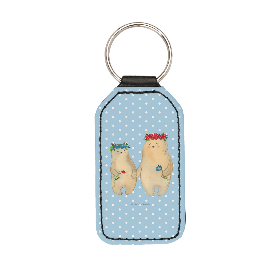 Rechteckig Schlüsselanhänger Bären mit Blumenkranz - Blau Pastell